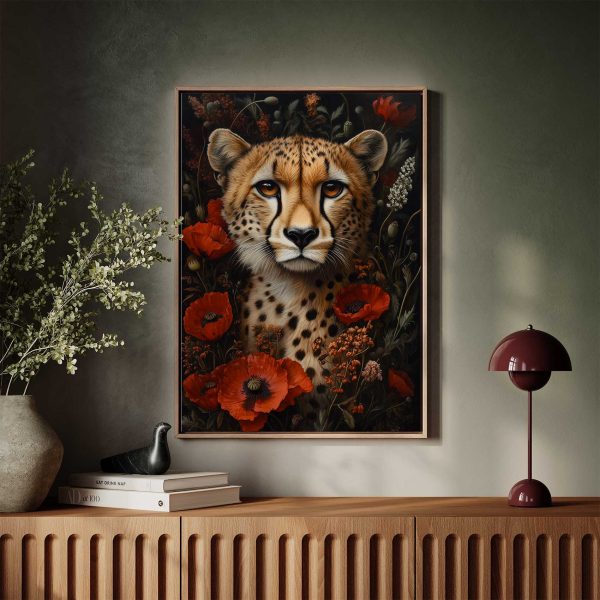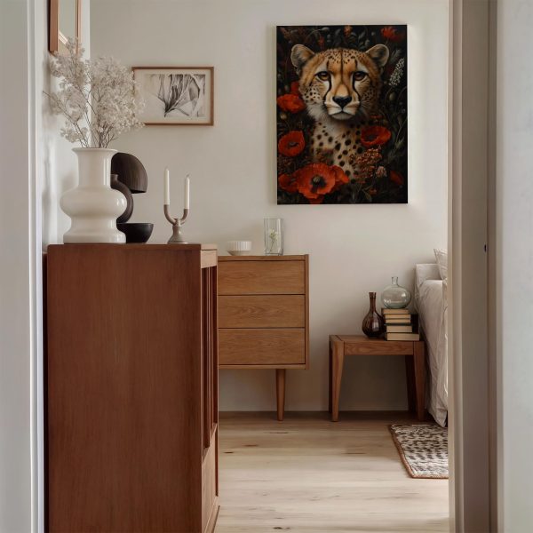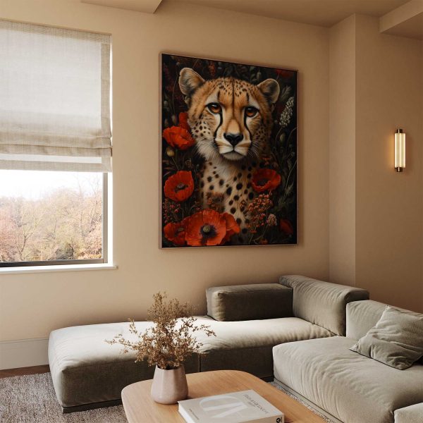 Terug naar collectie Canvas Cheetah tussen rode bloemen