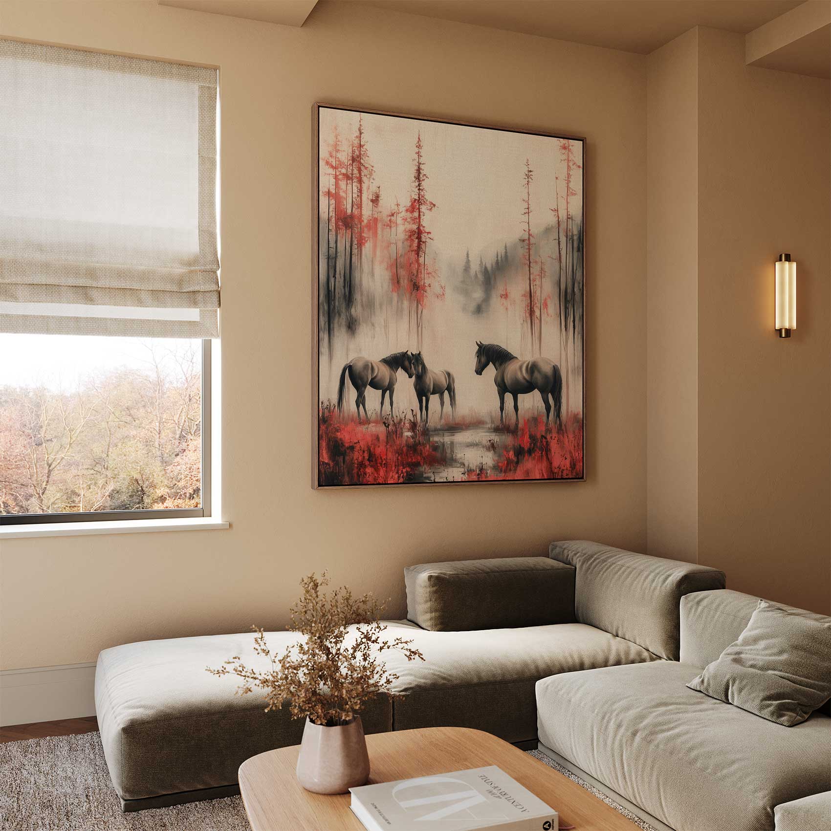 Dramatisch bos met paarden
