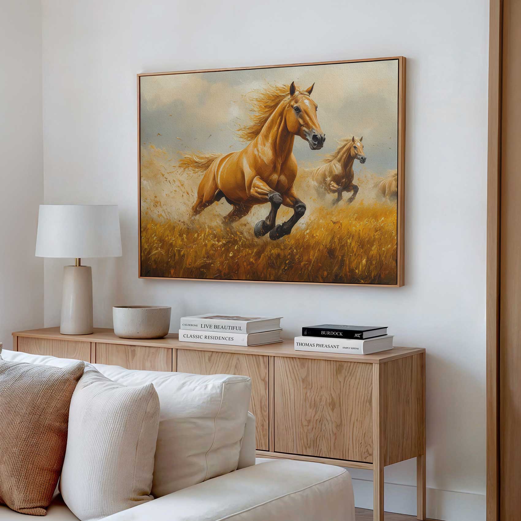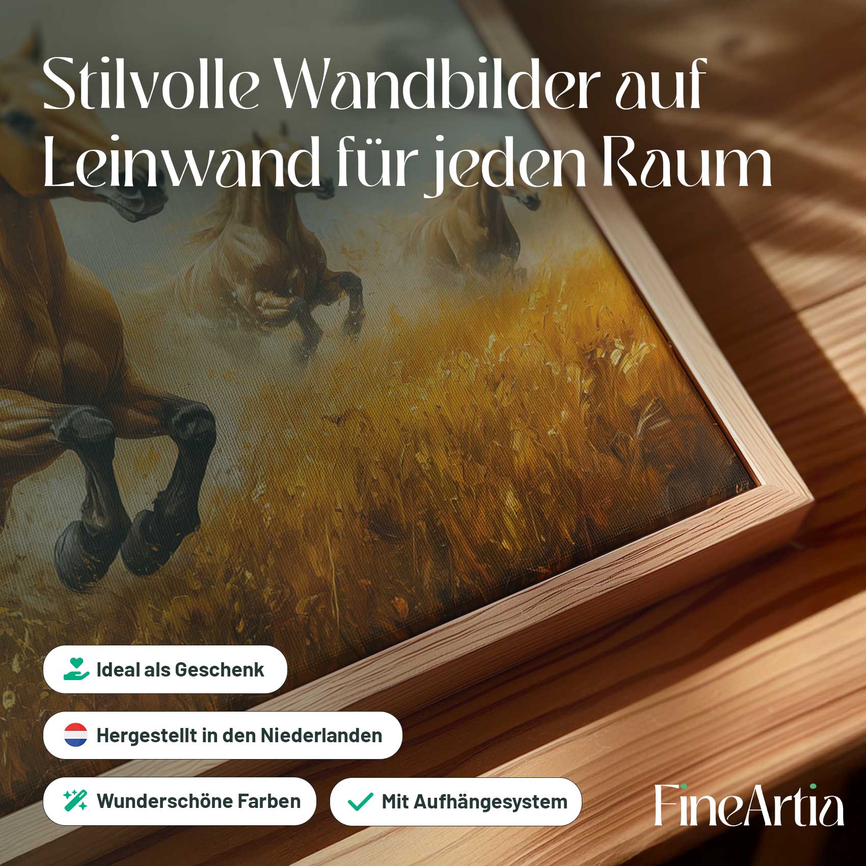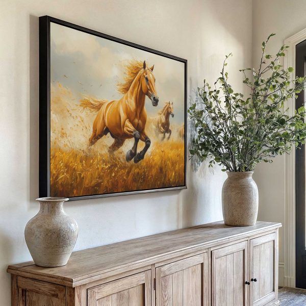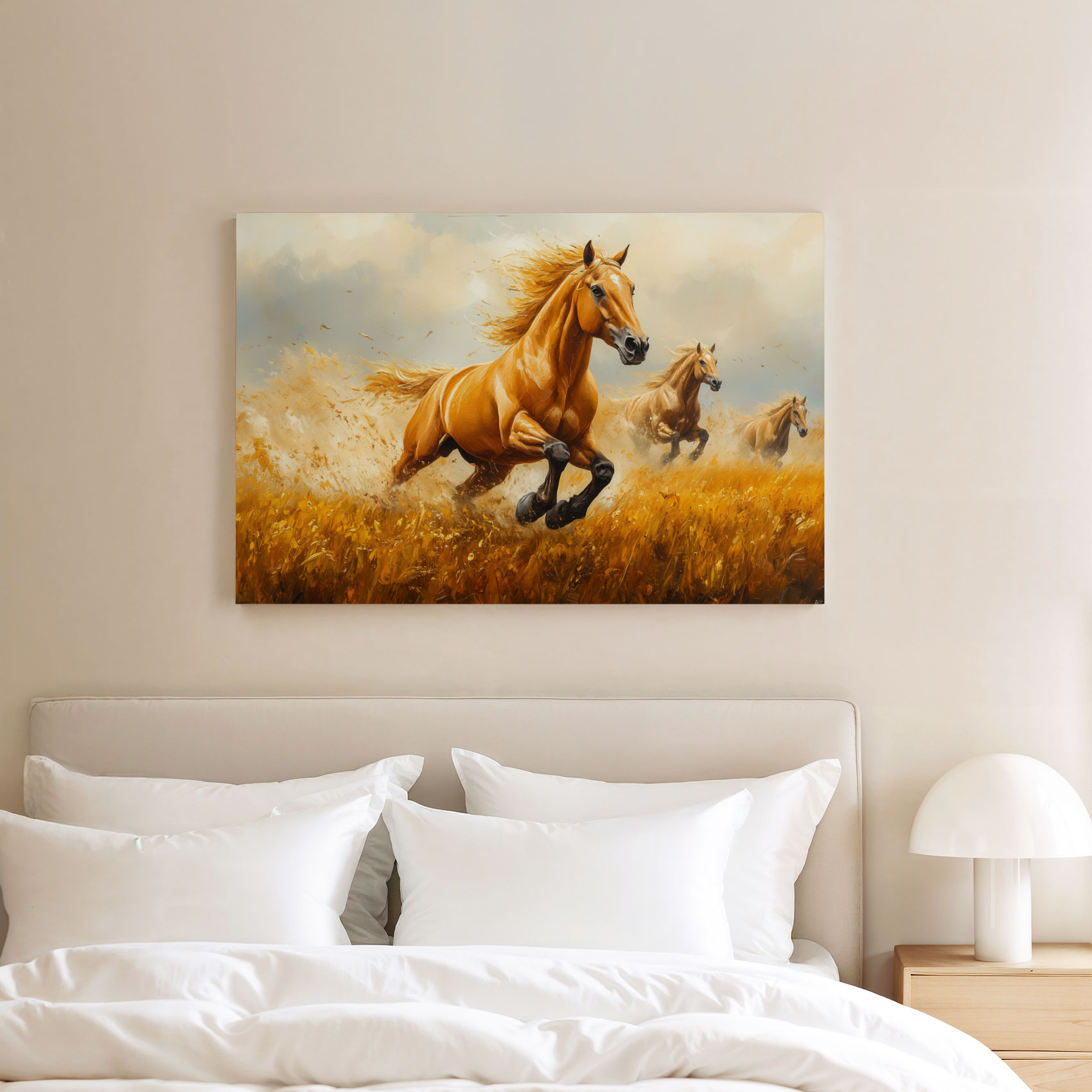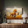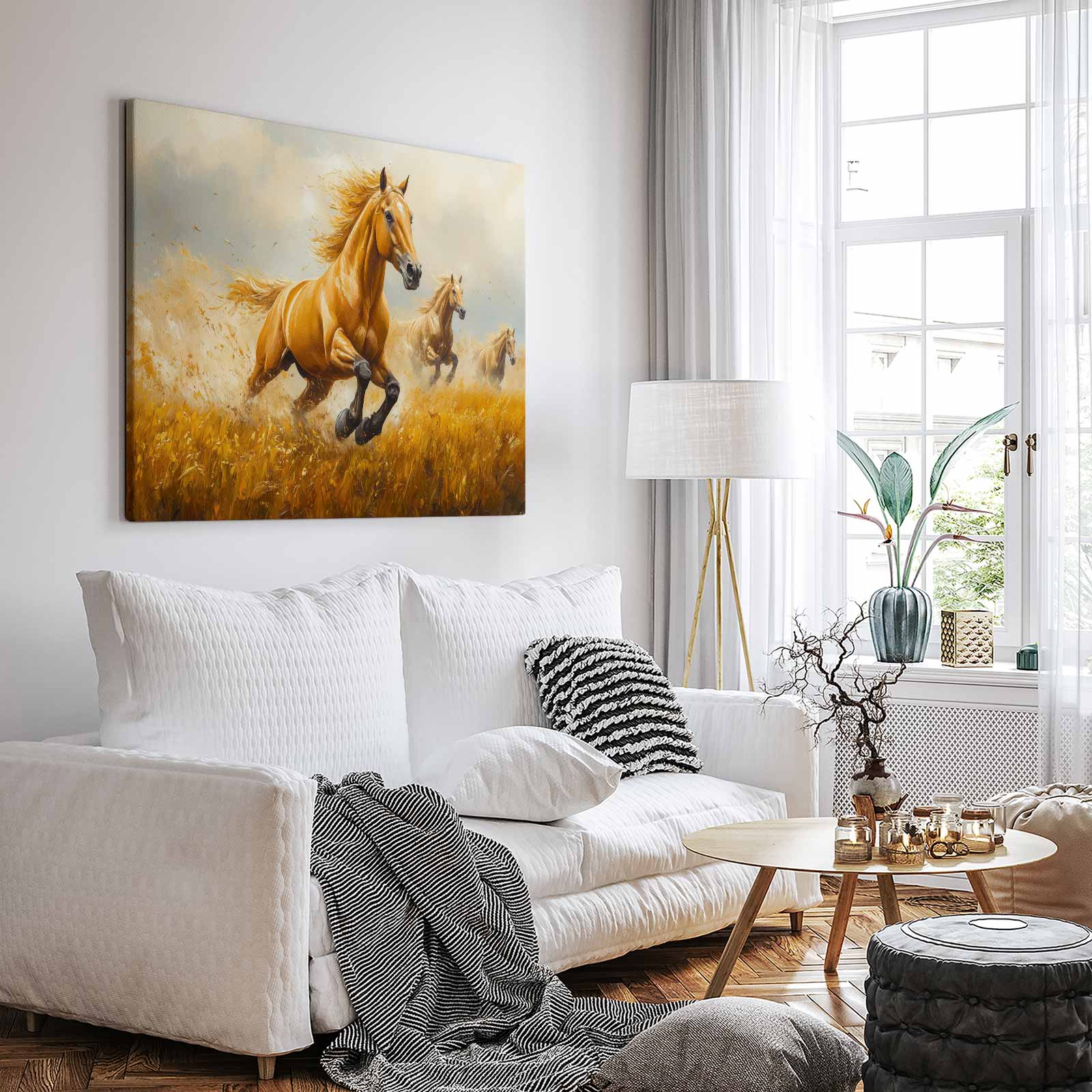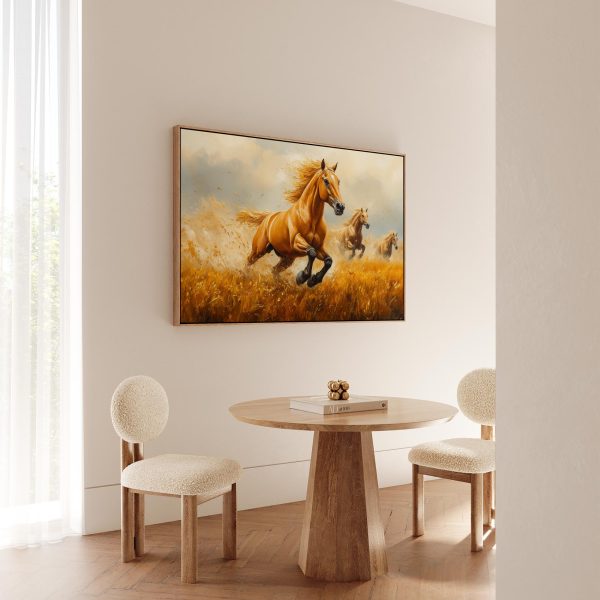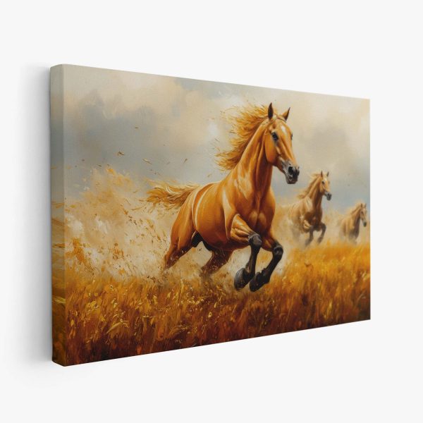 Drie galopperende gouden paarden
