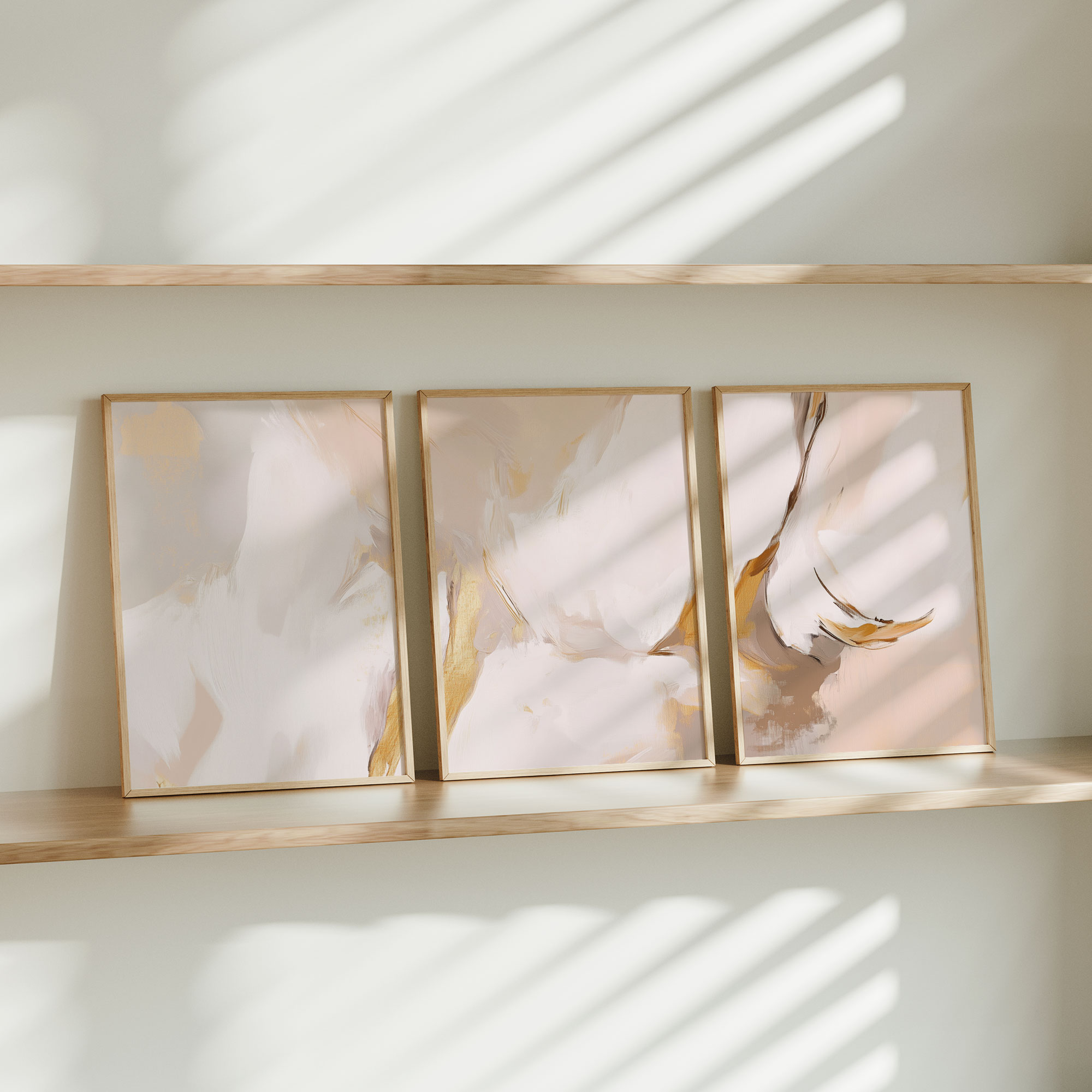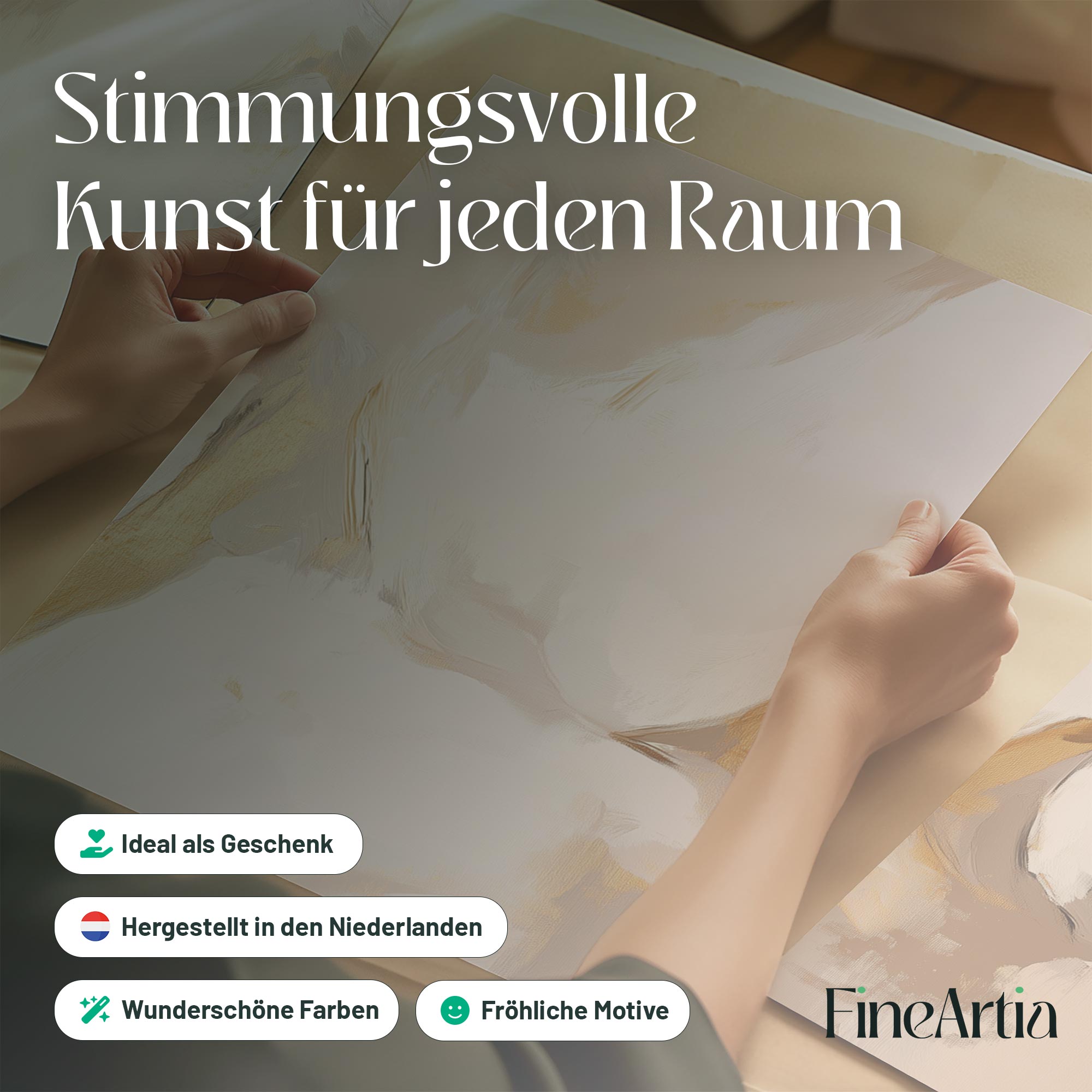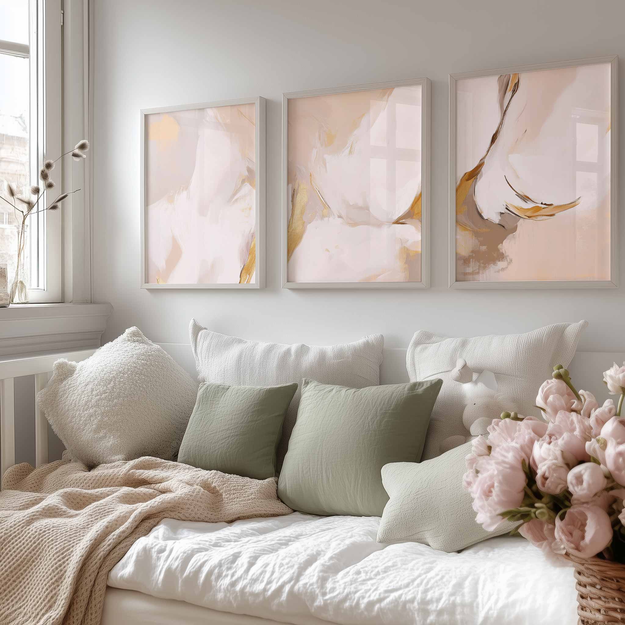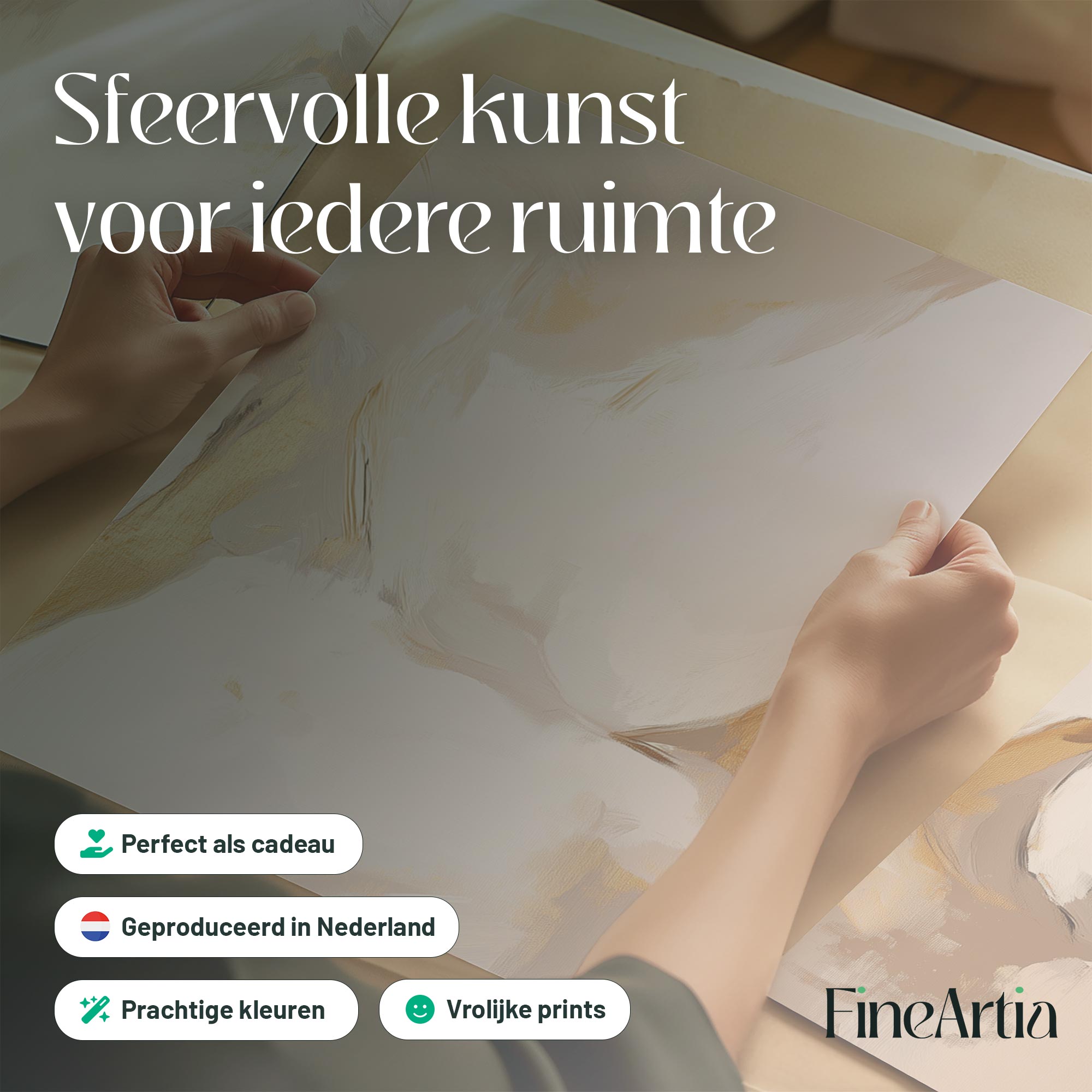 Dromerig abstract schilderij in zachte tinten wit en perzik