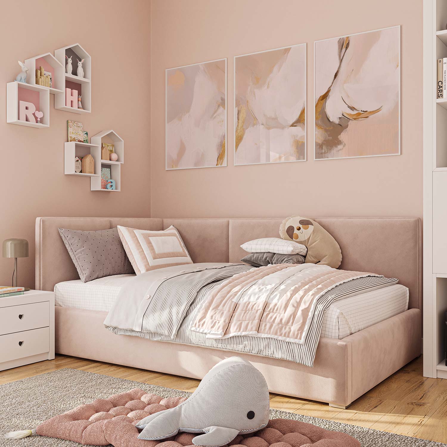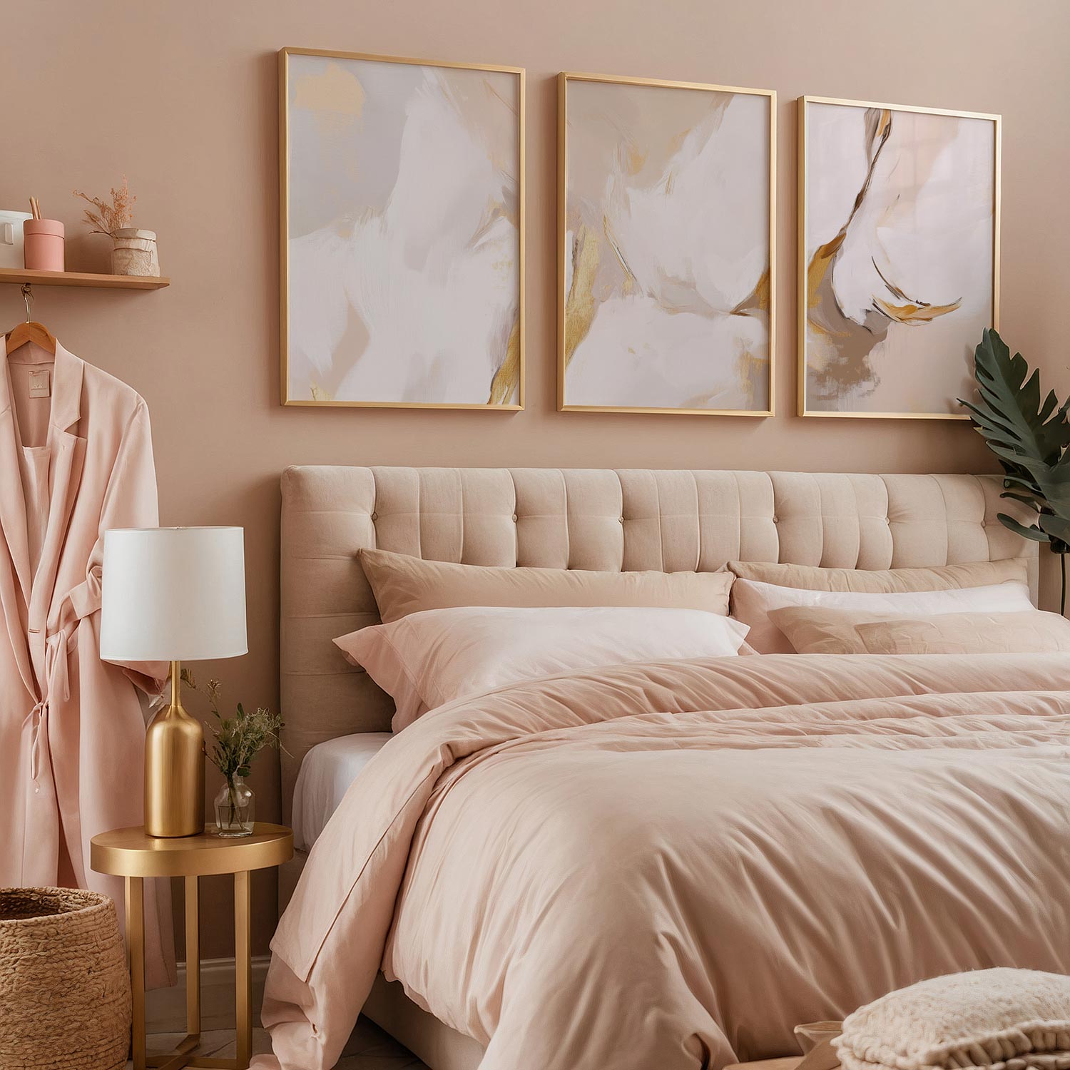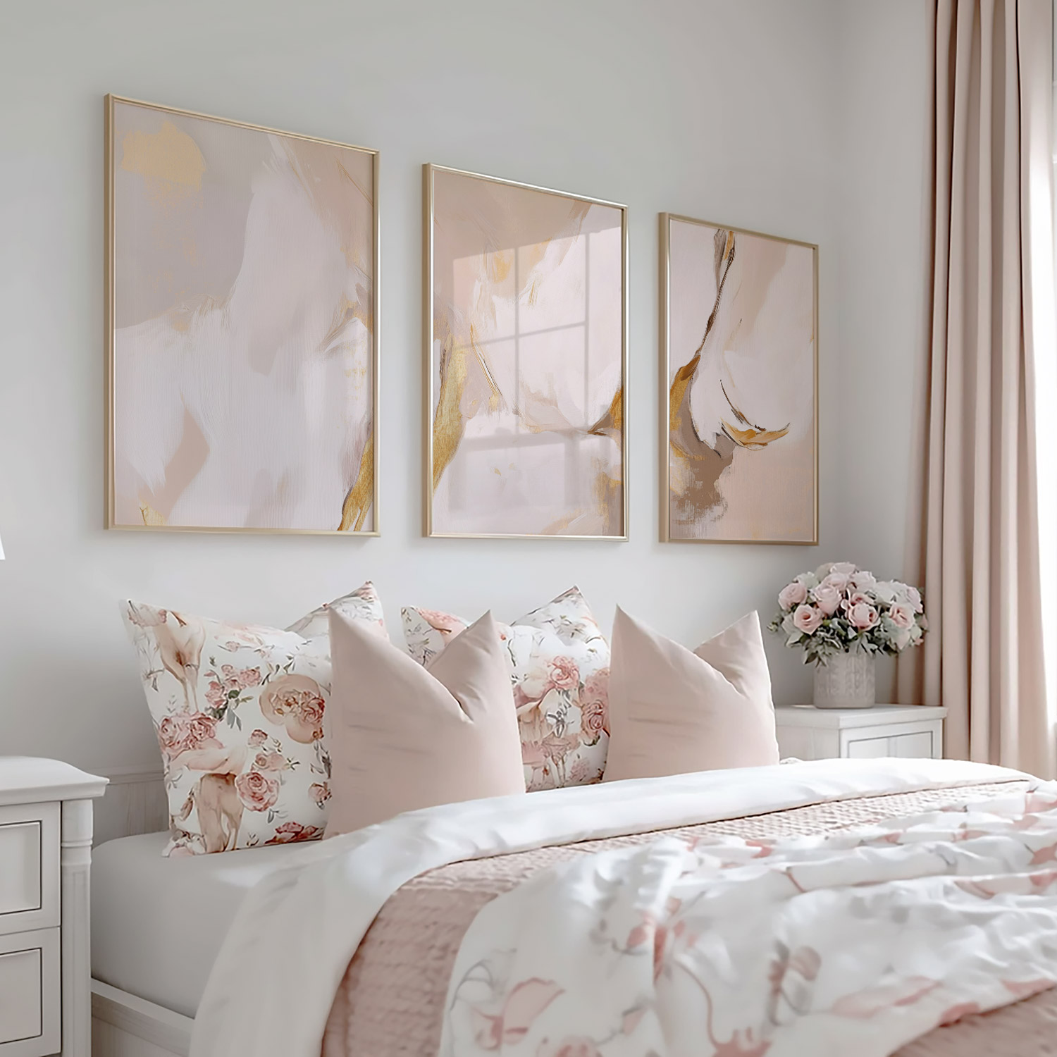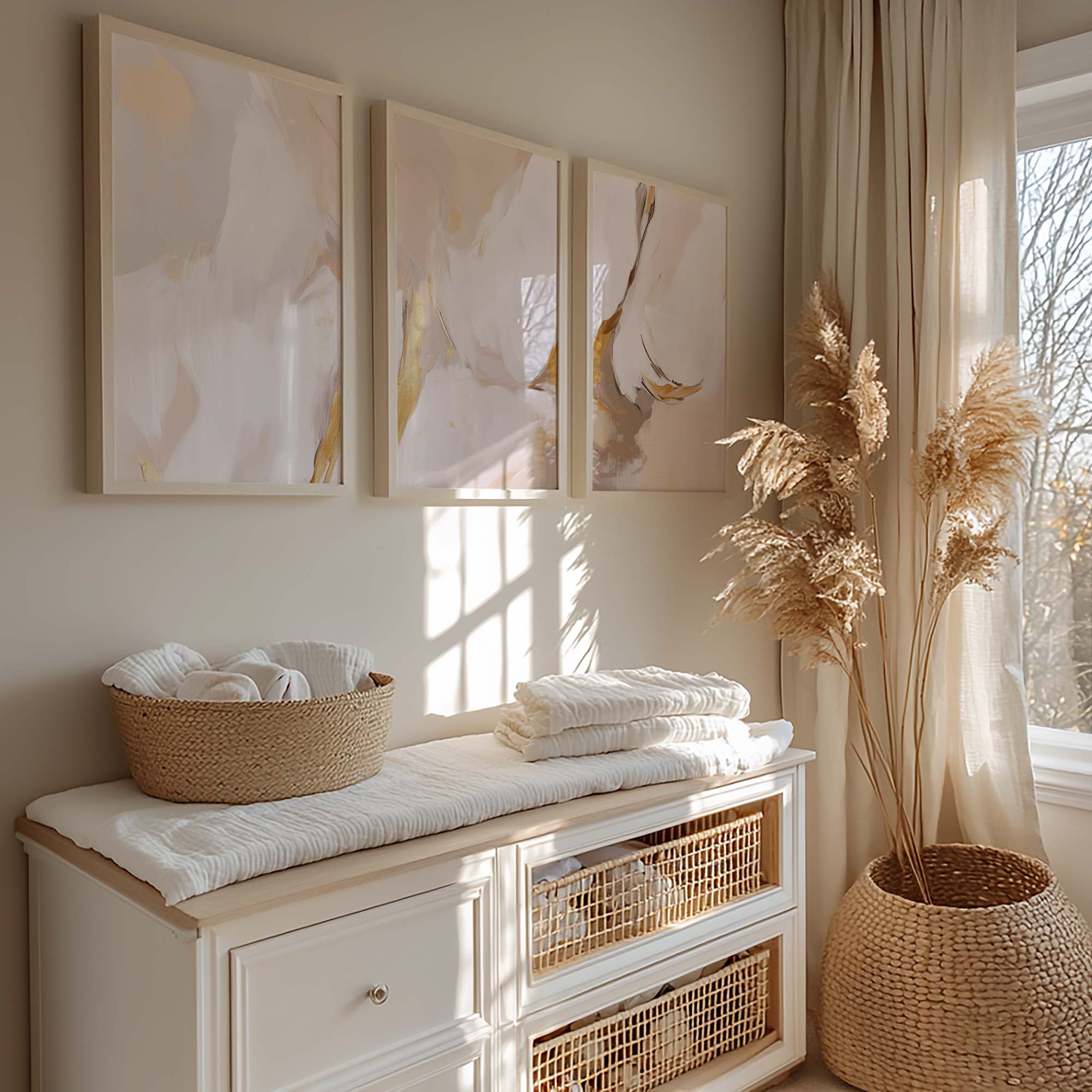 Dromerig abstract schilderij in zachte tinten wit en perzik