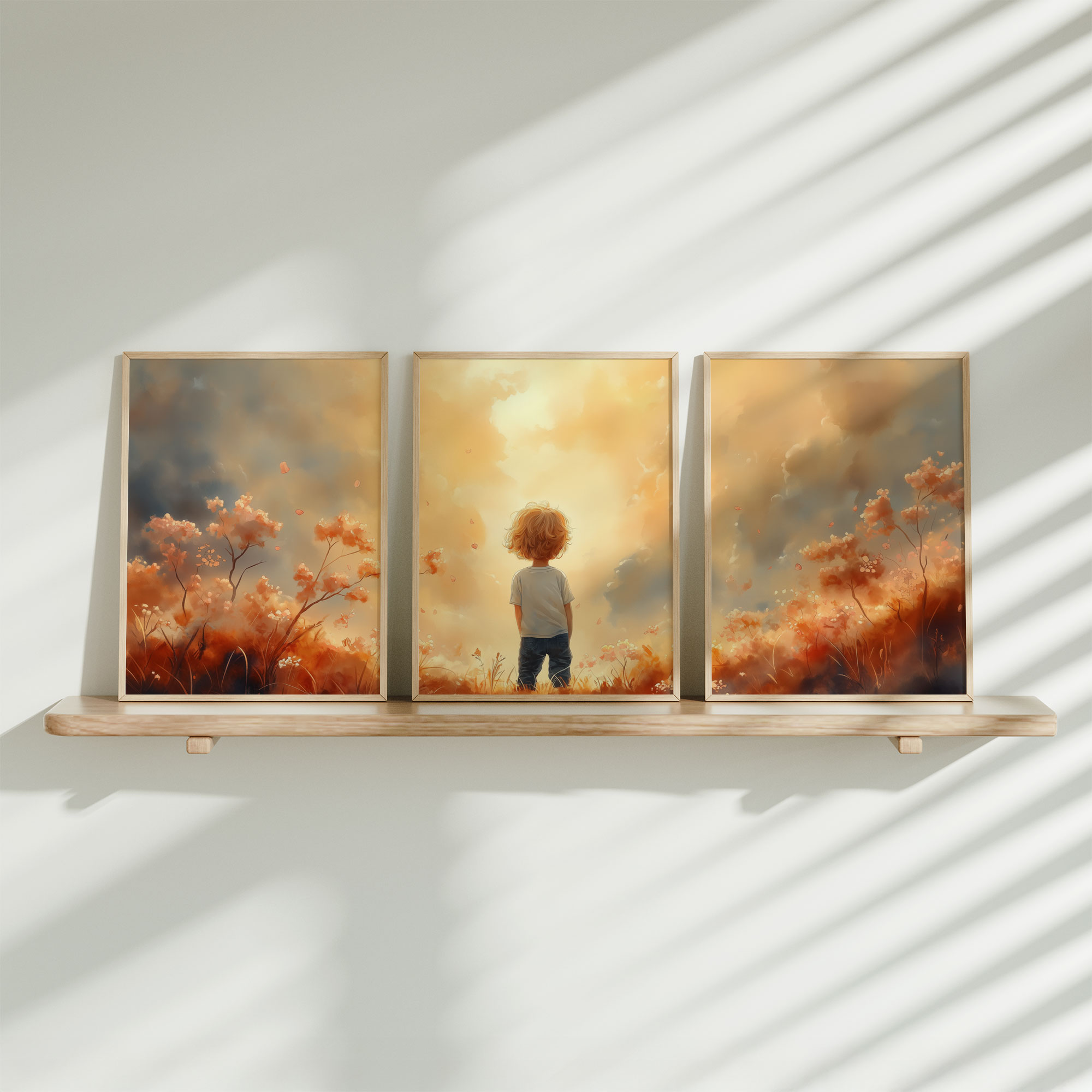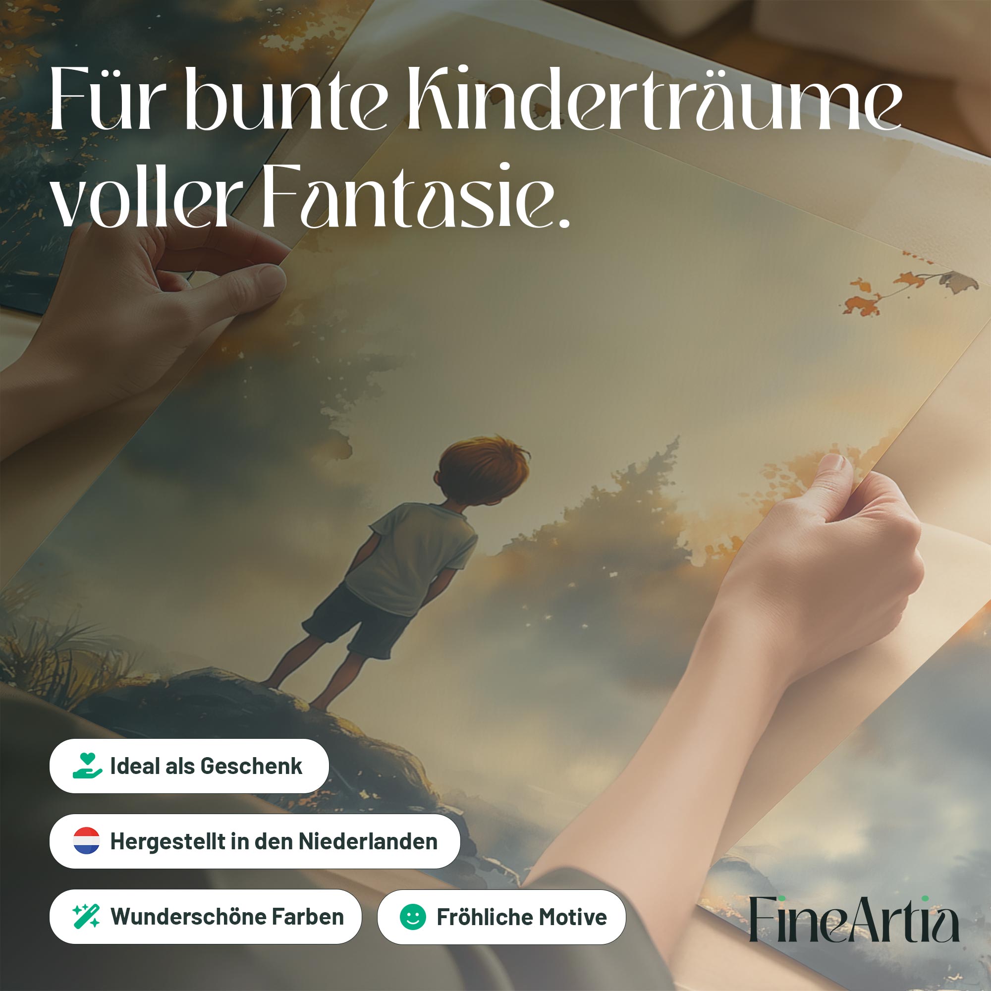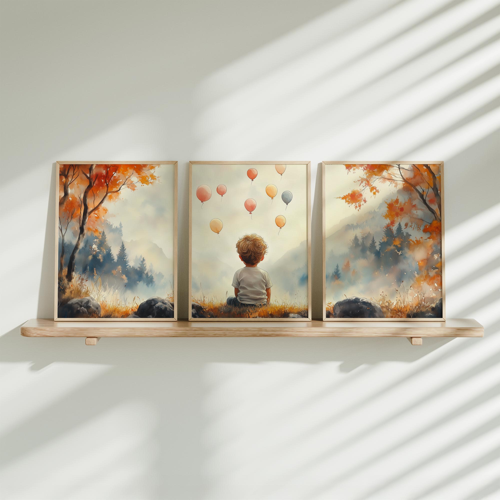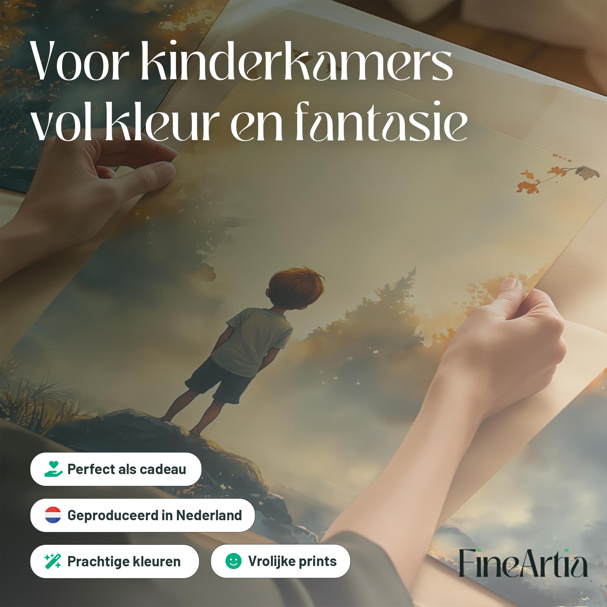 Dromerig Bosavontuur: Jongen op Rots in Kleurrijk Woud