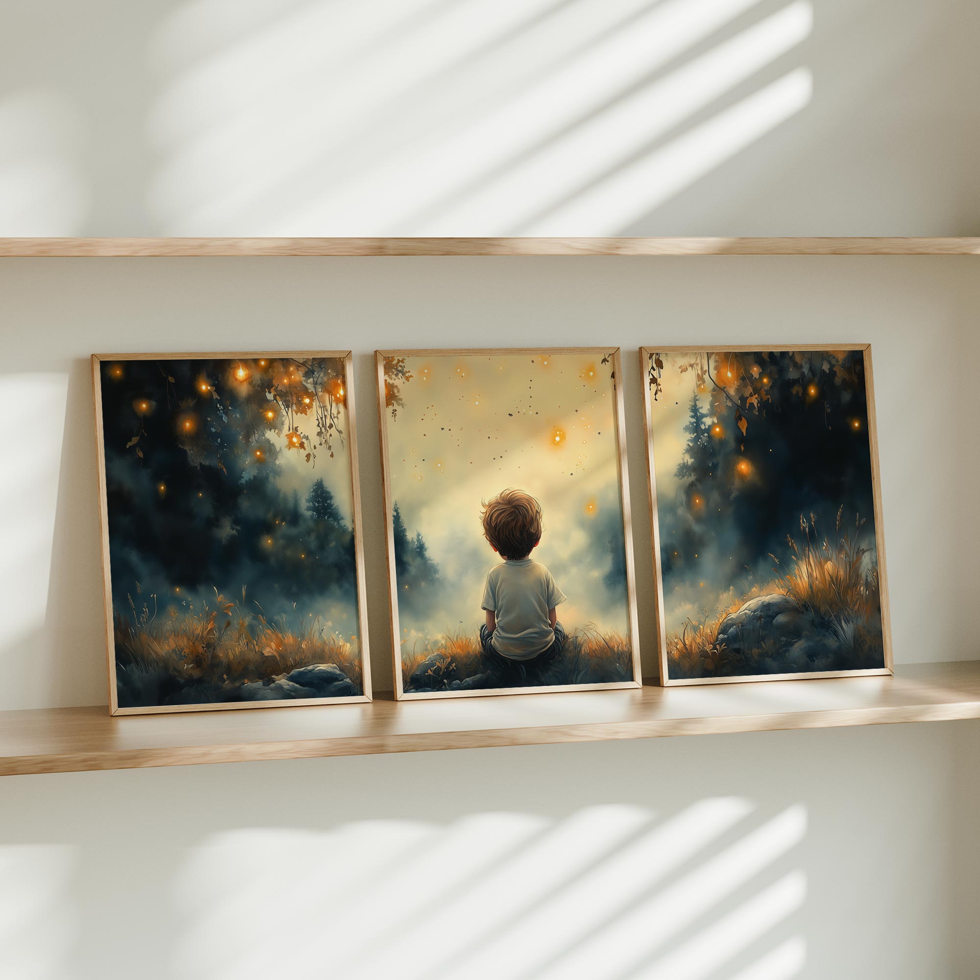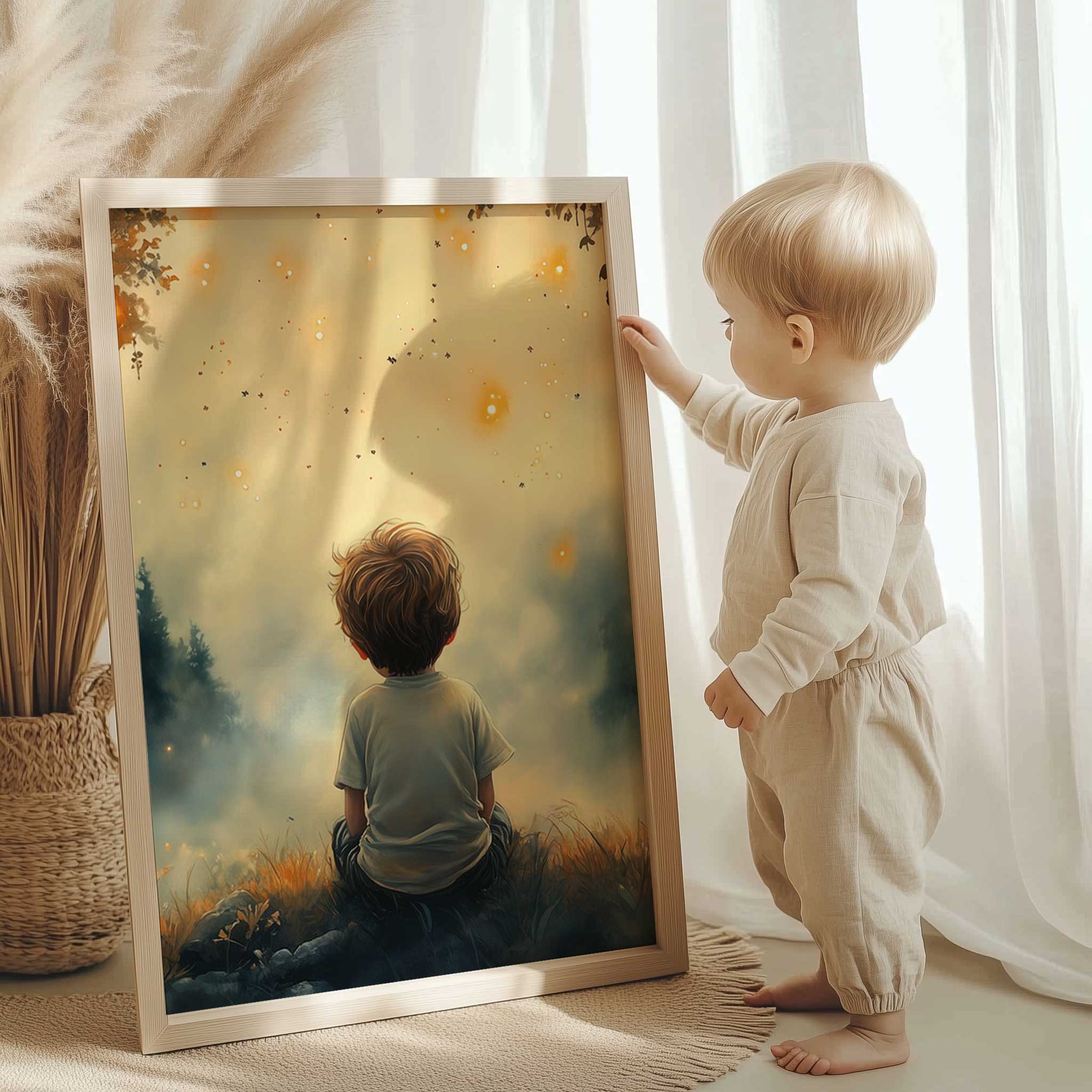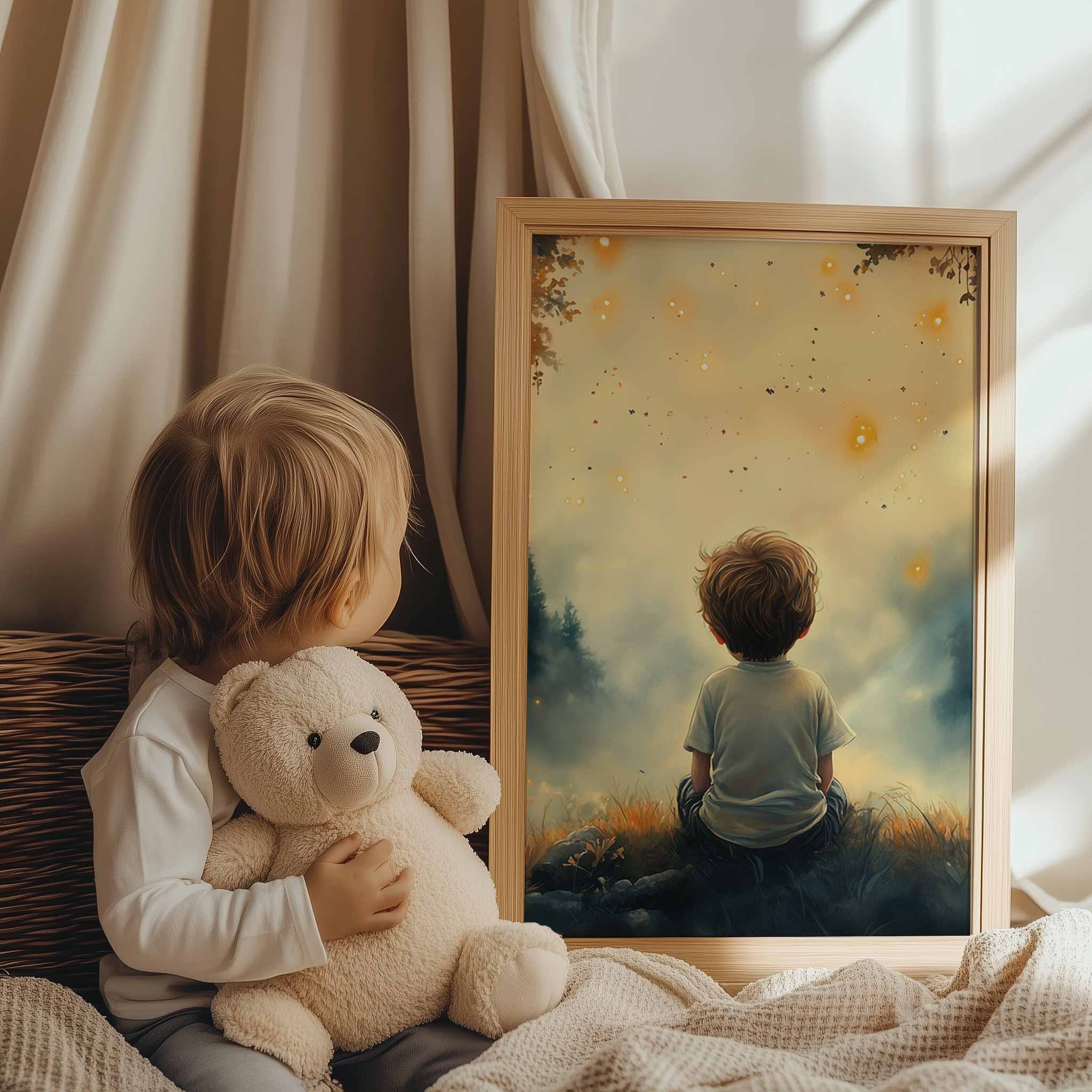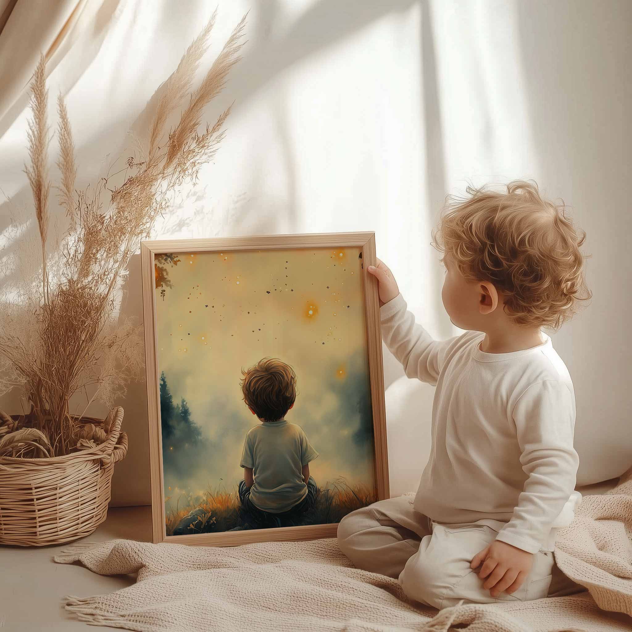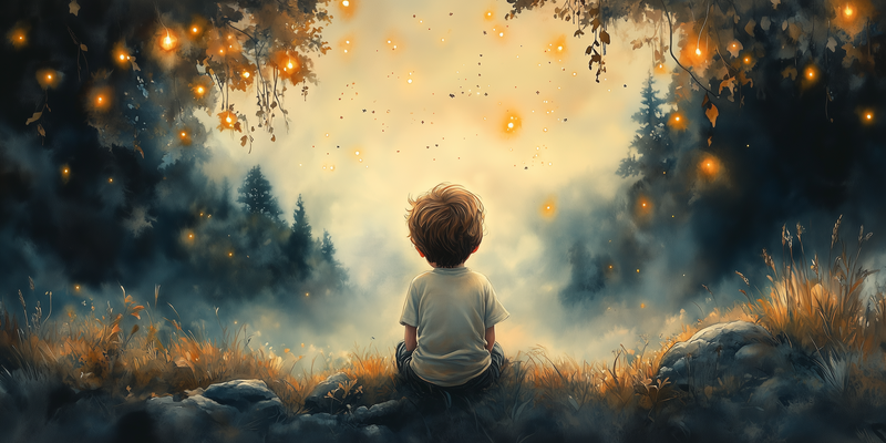 Dromerig Jongetje in Magisch Lichtbos