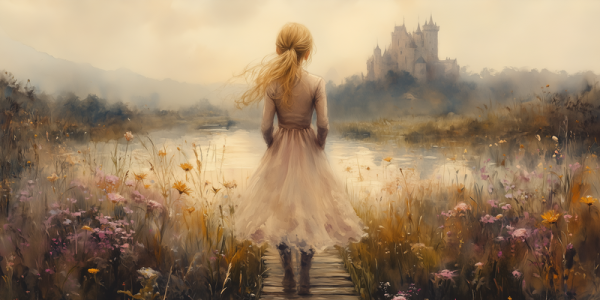 Terug naar collectie Posters Dromerig Kasteel in Pastel Landschap
