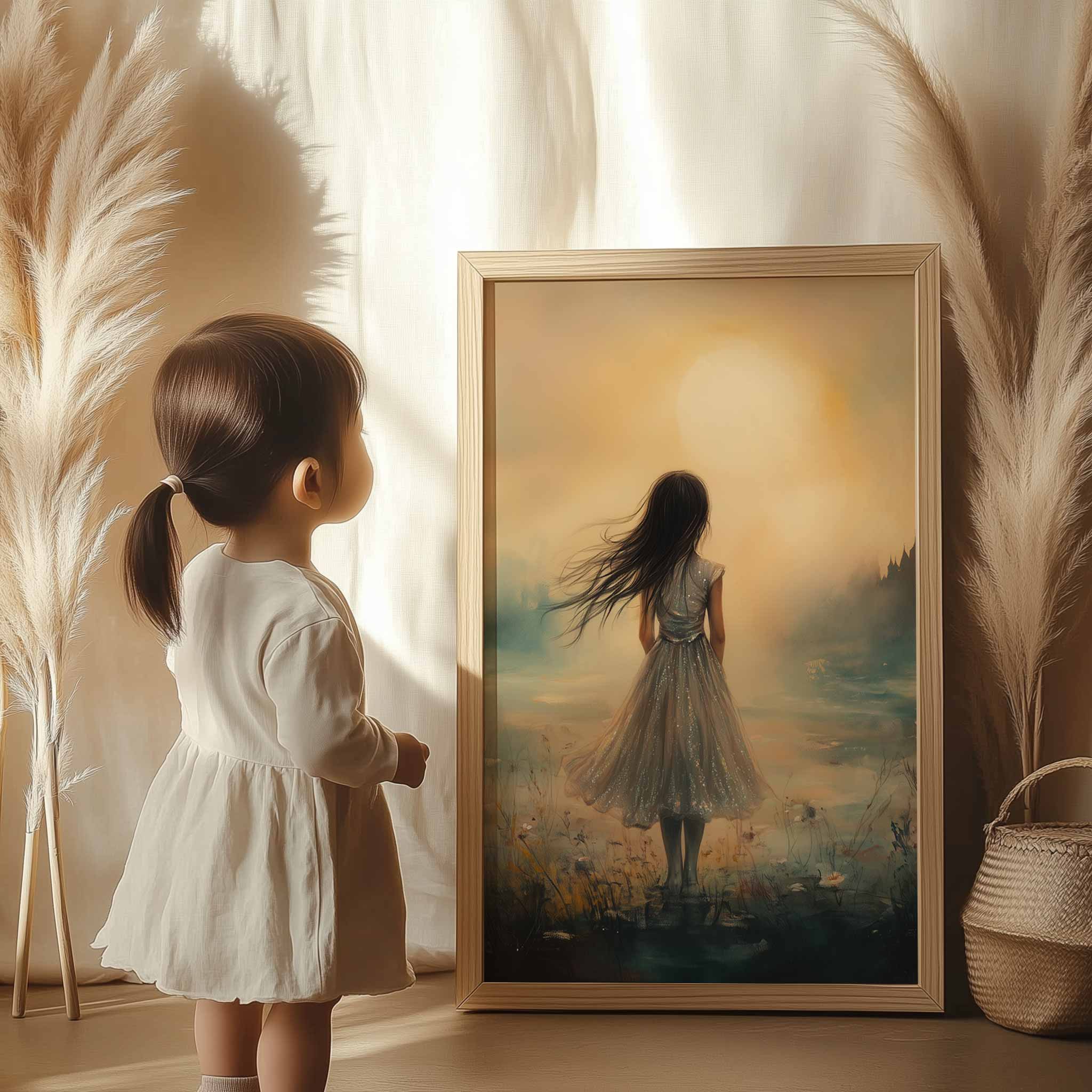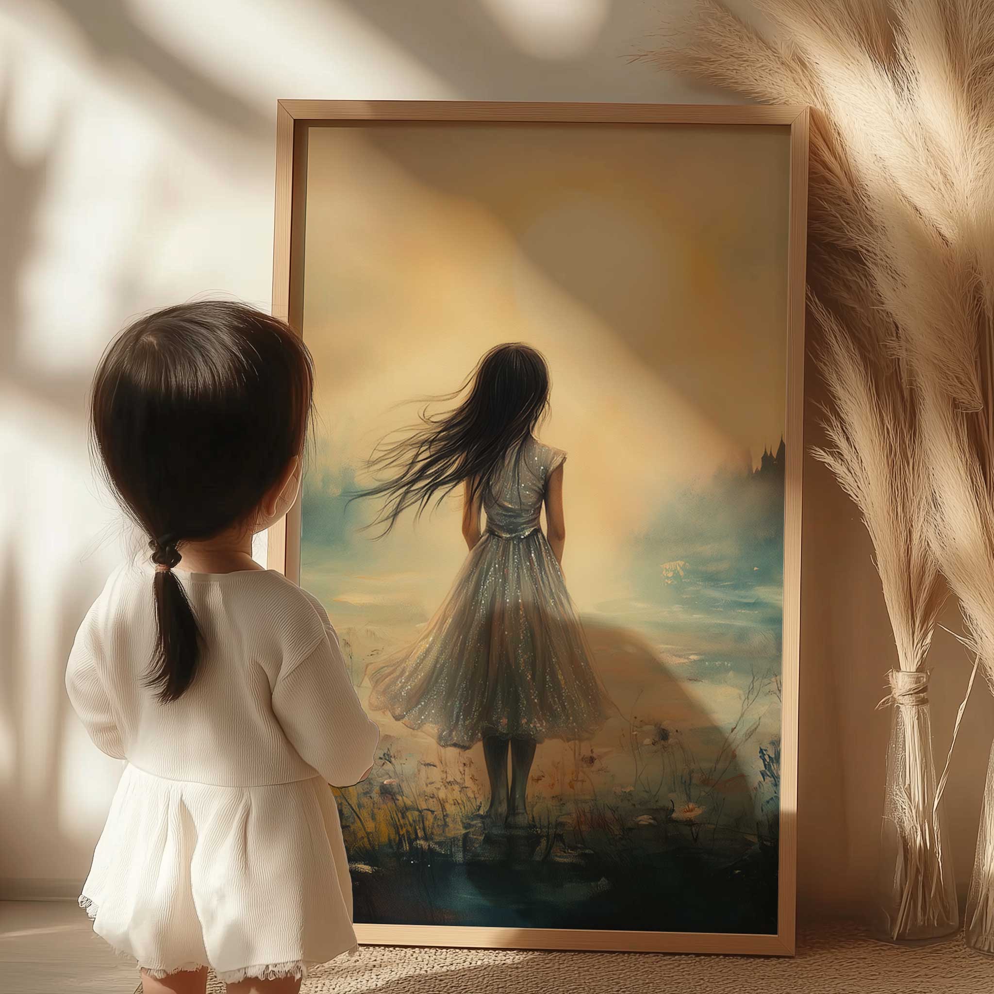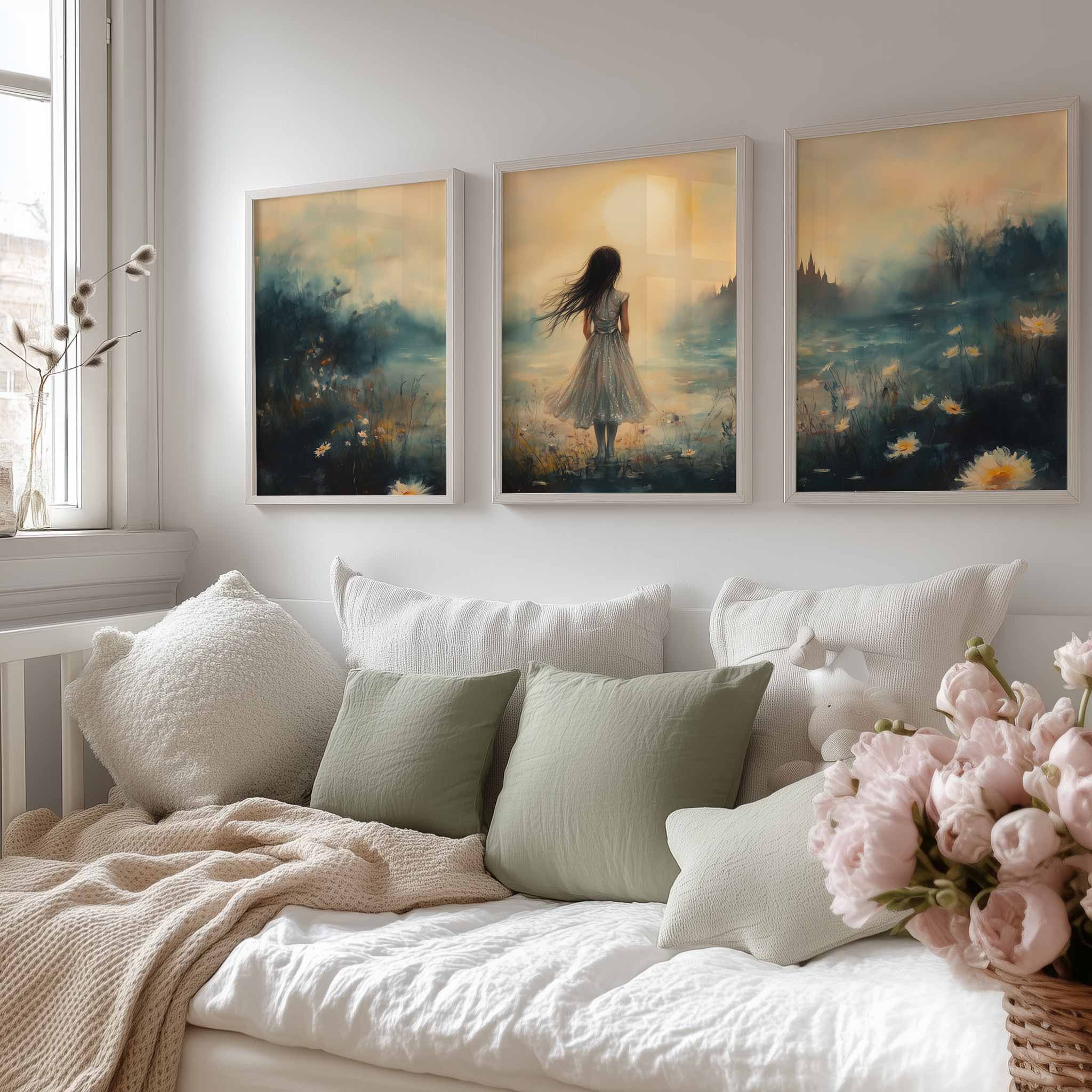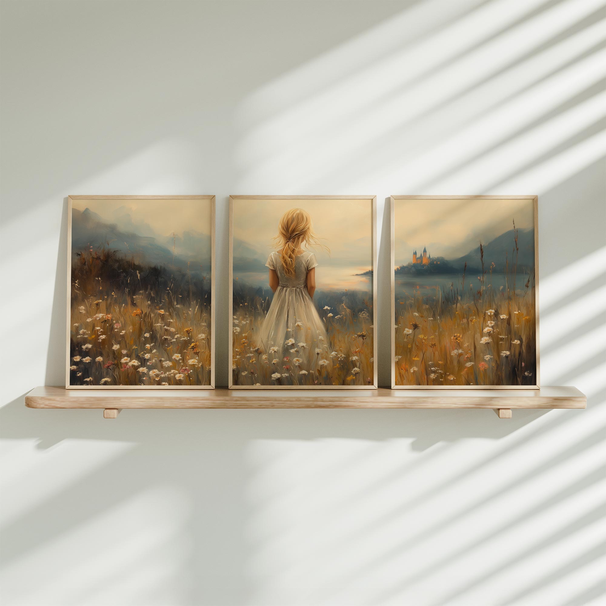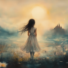 Terug naar collectie Posters Dromerig Landschap met Dame en Kasteel