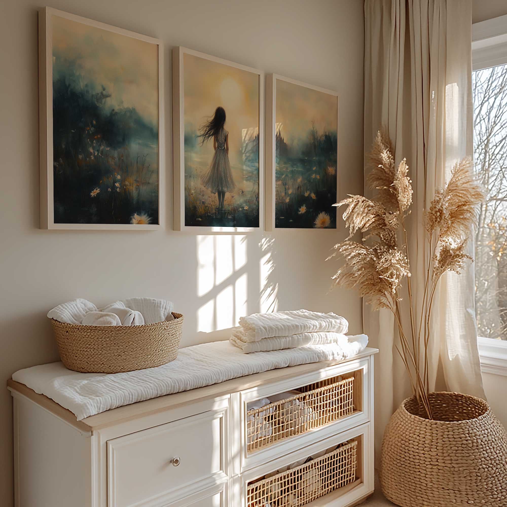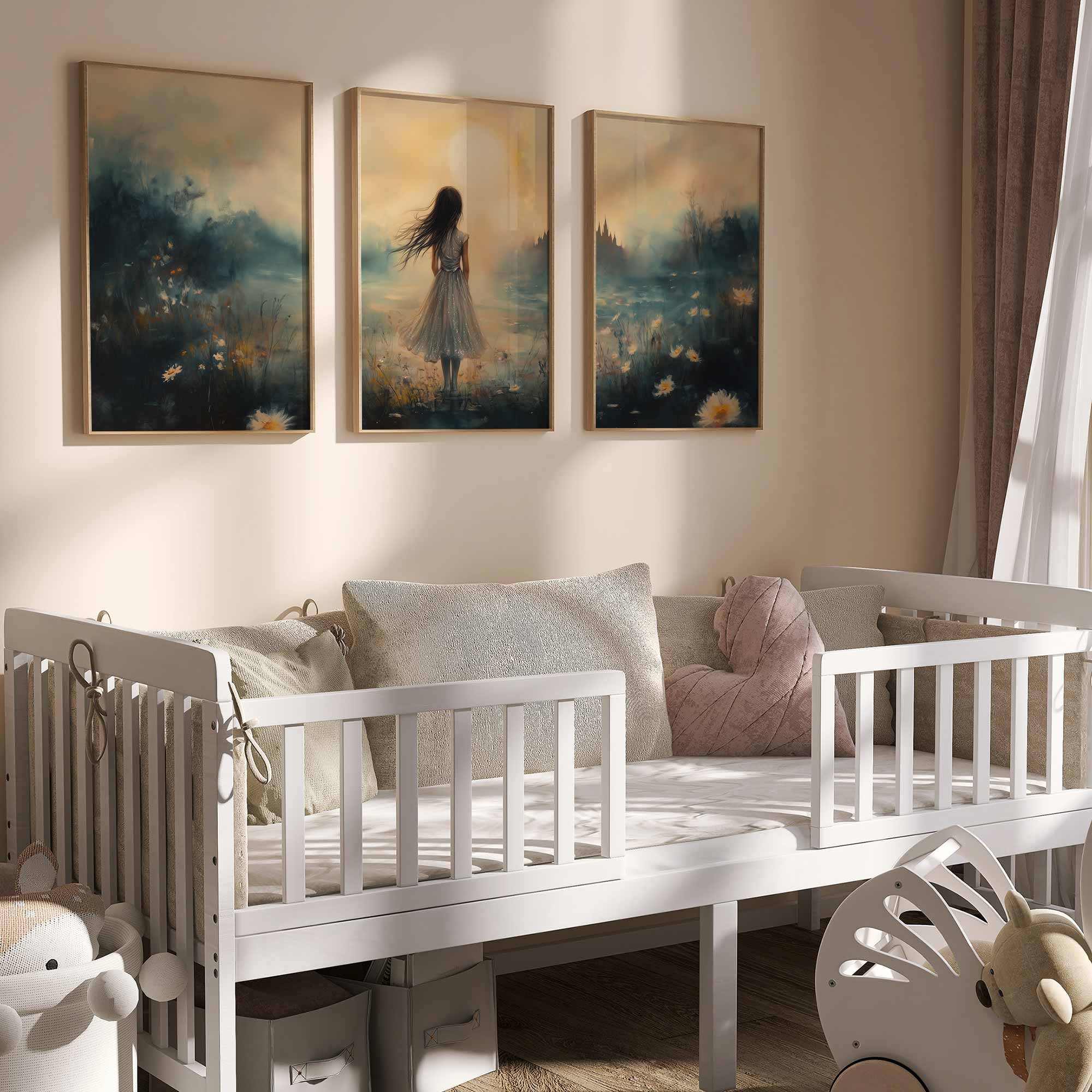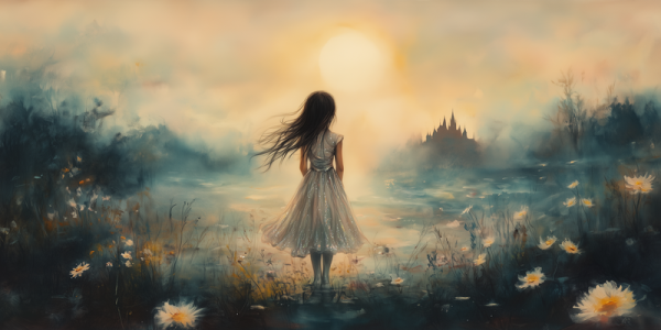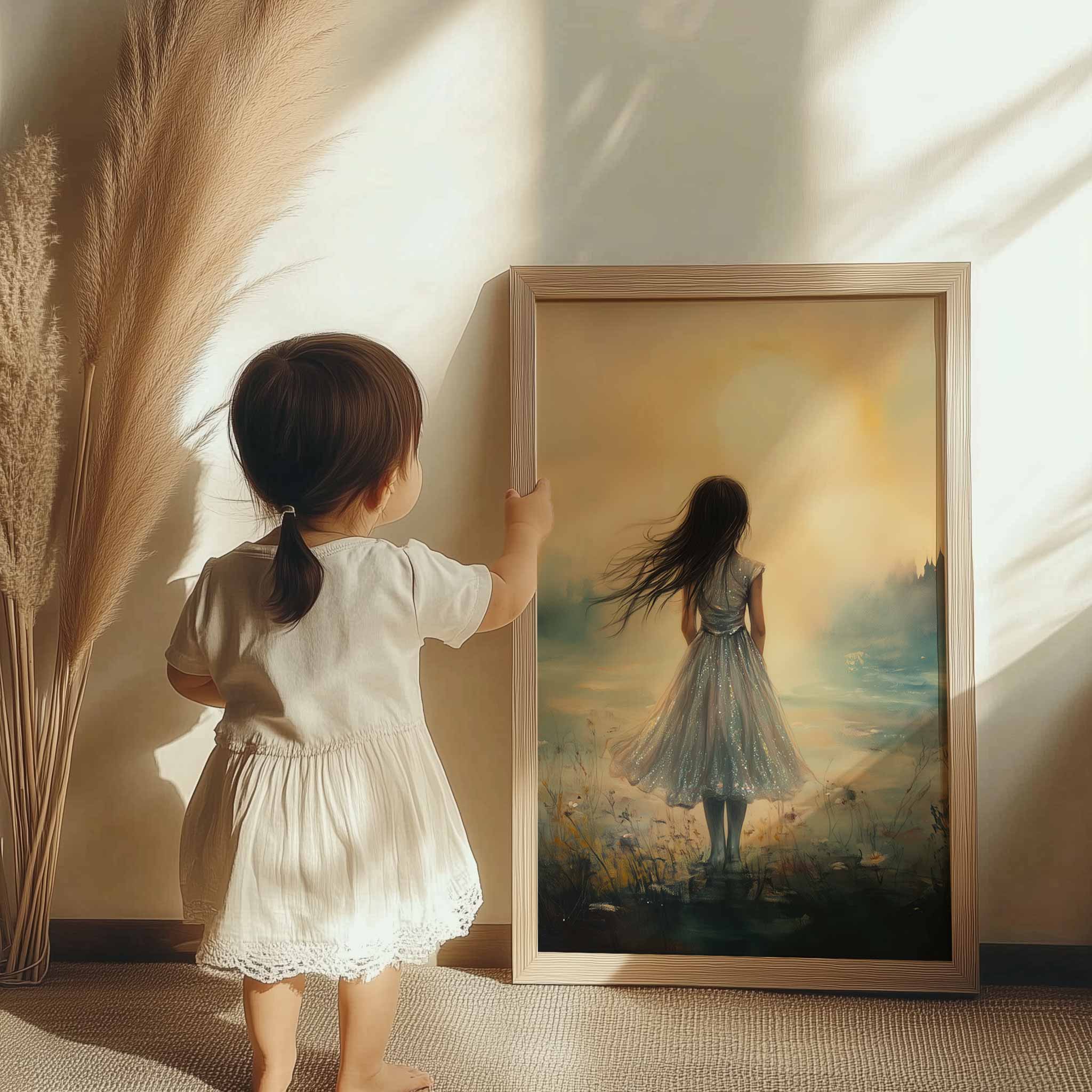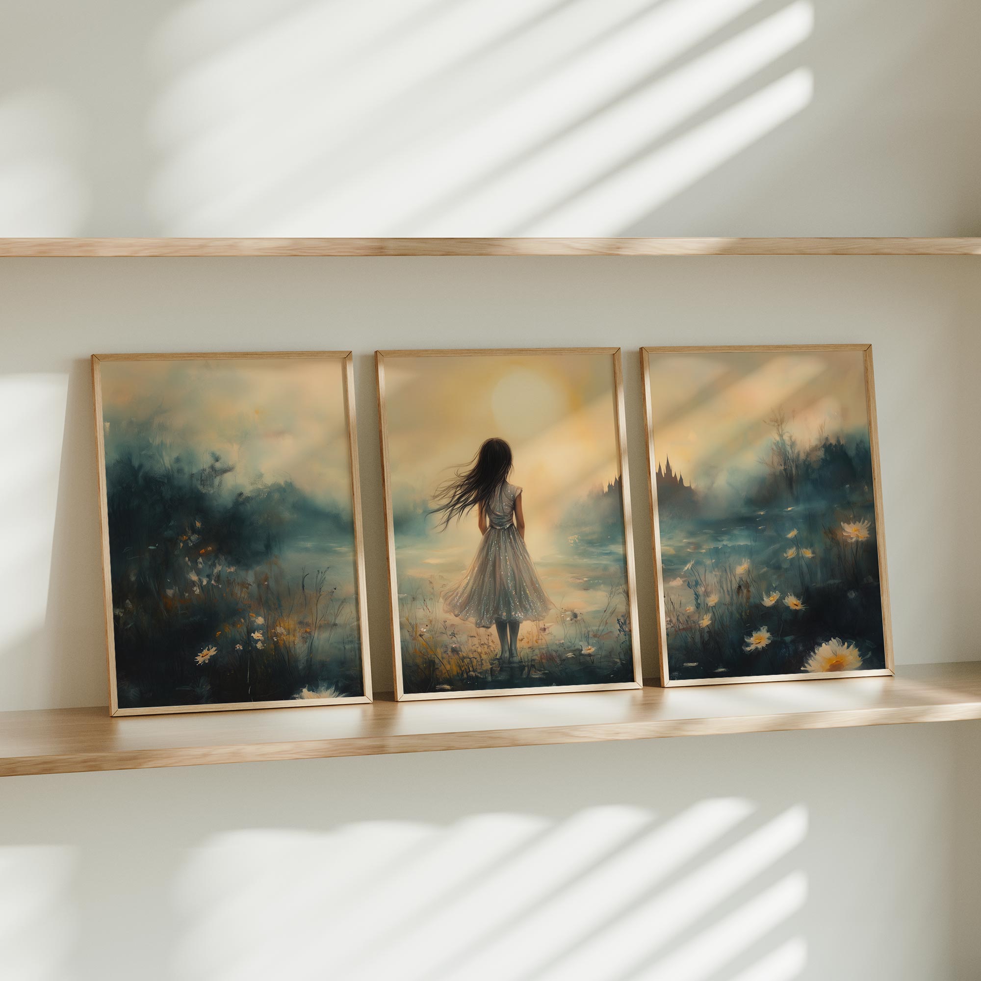 Terug naar collectie Posters Dromerig Landschap met Dame en Kasteel