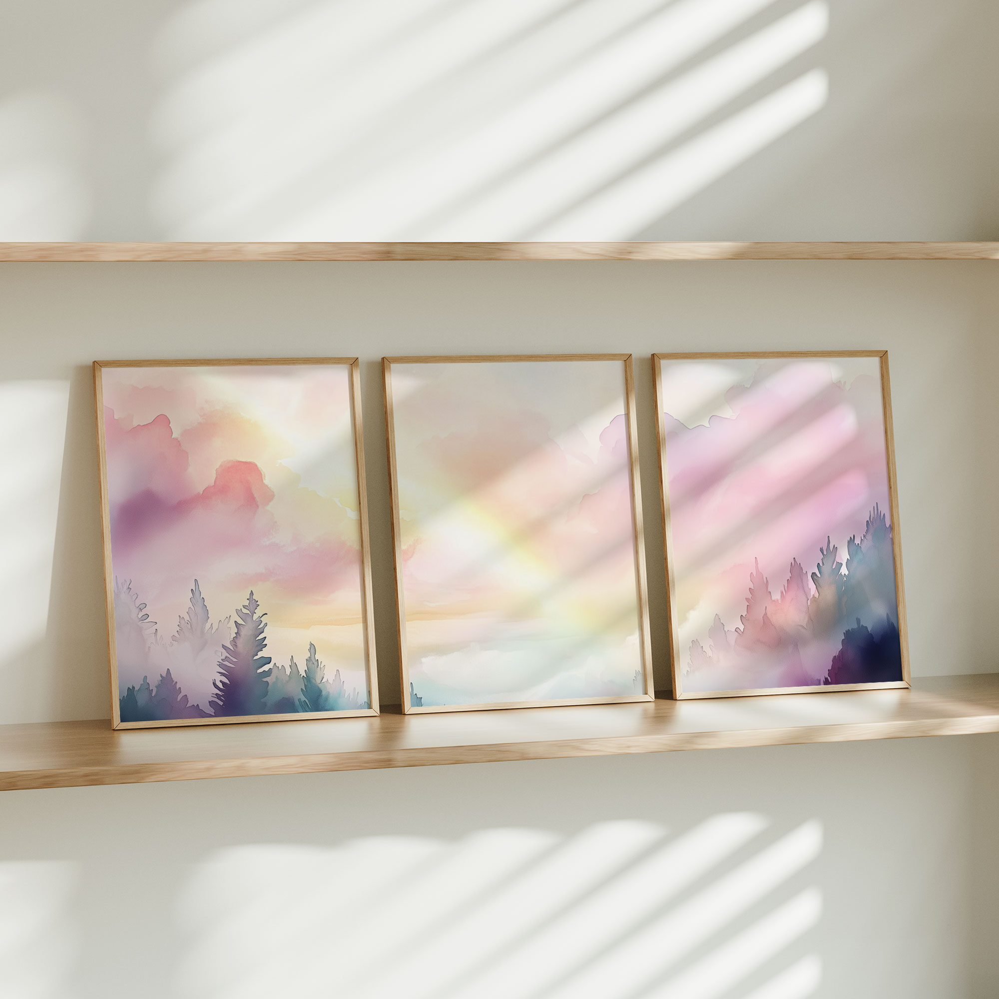 Dromerig Landschap met Pastel Wolken en Warme Zon