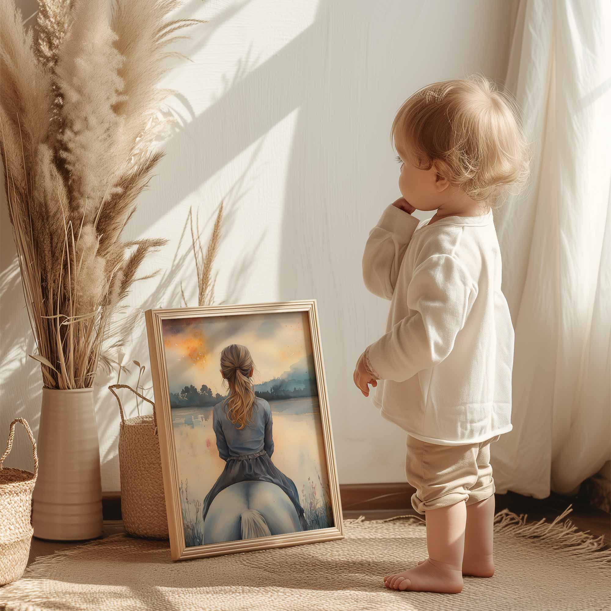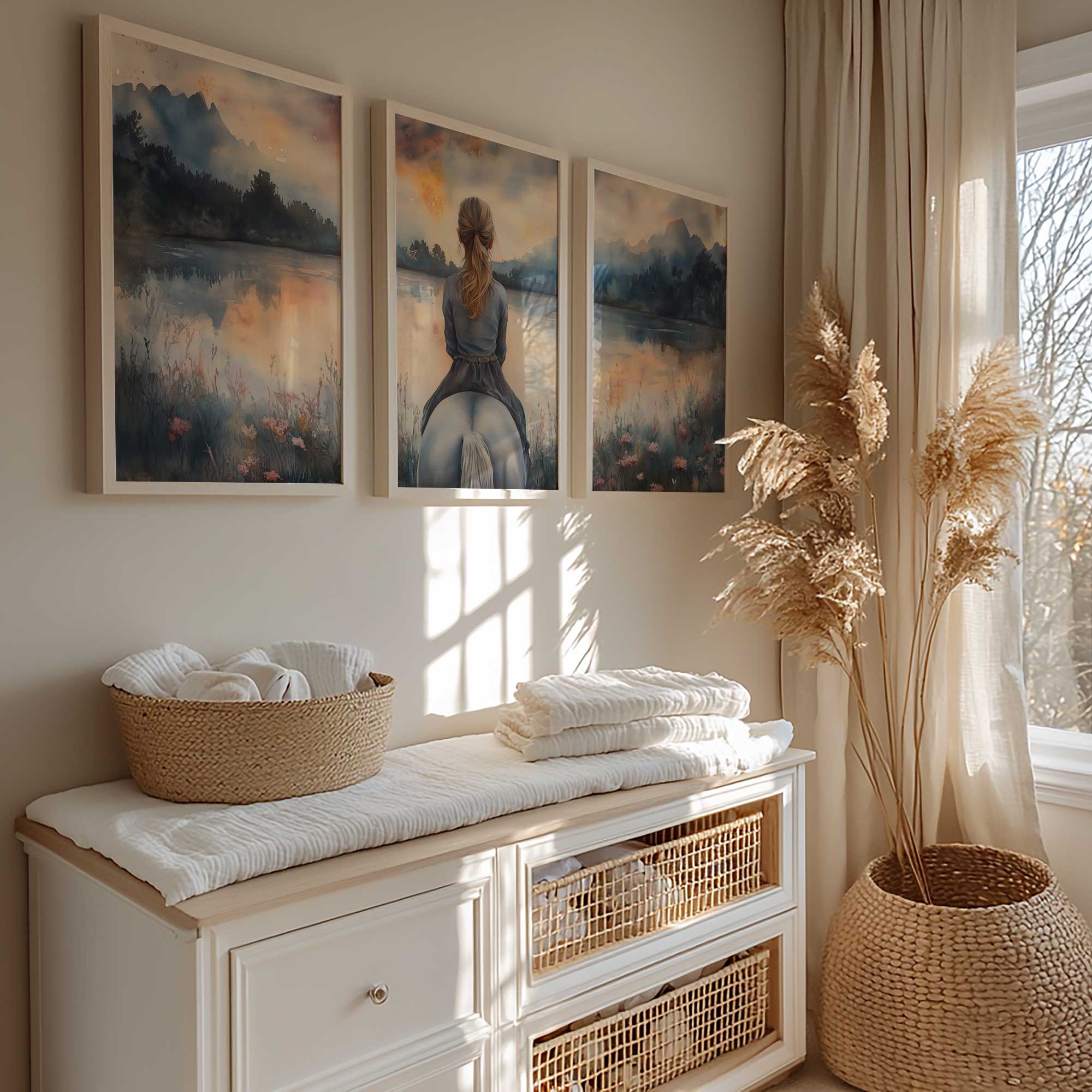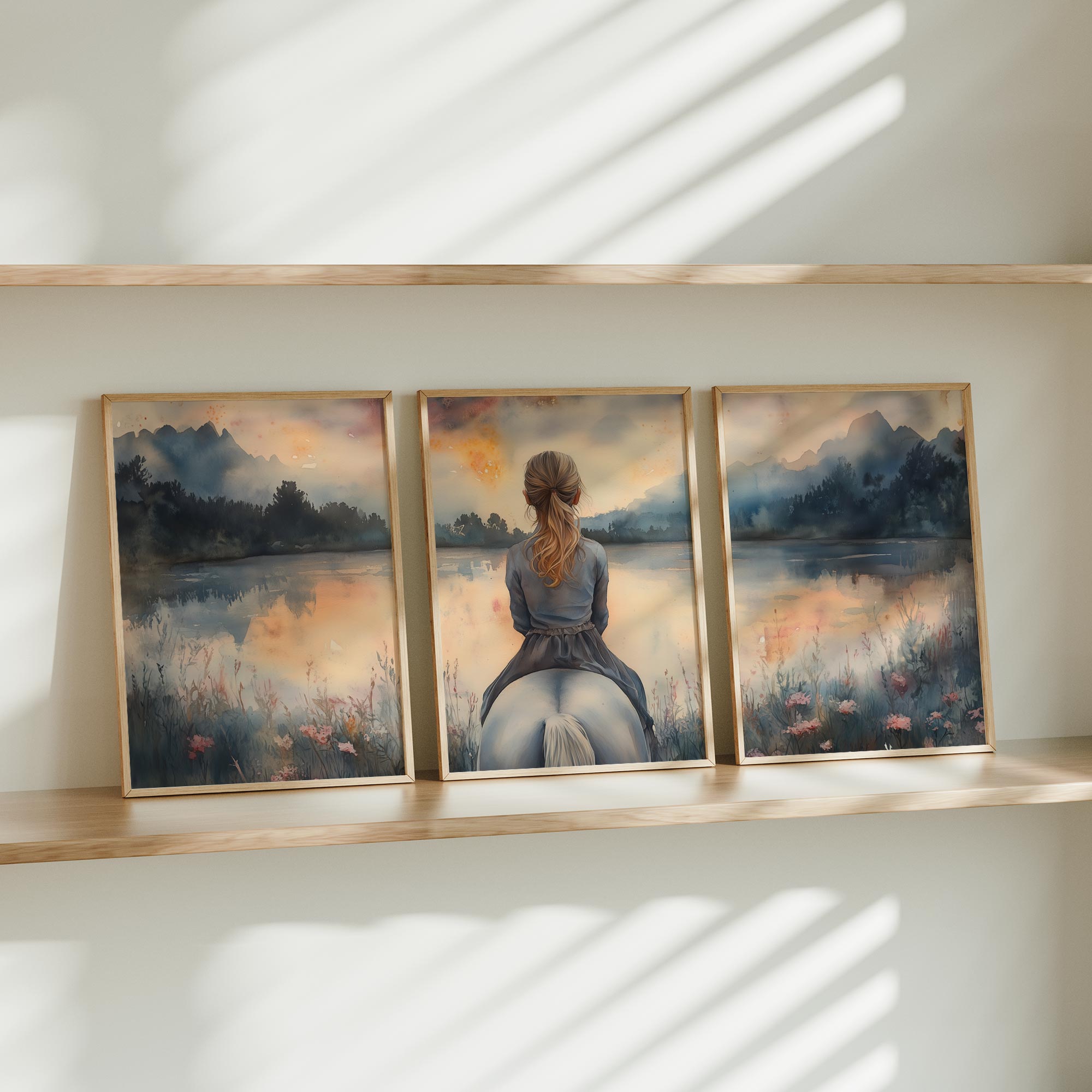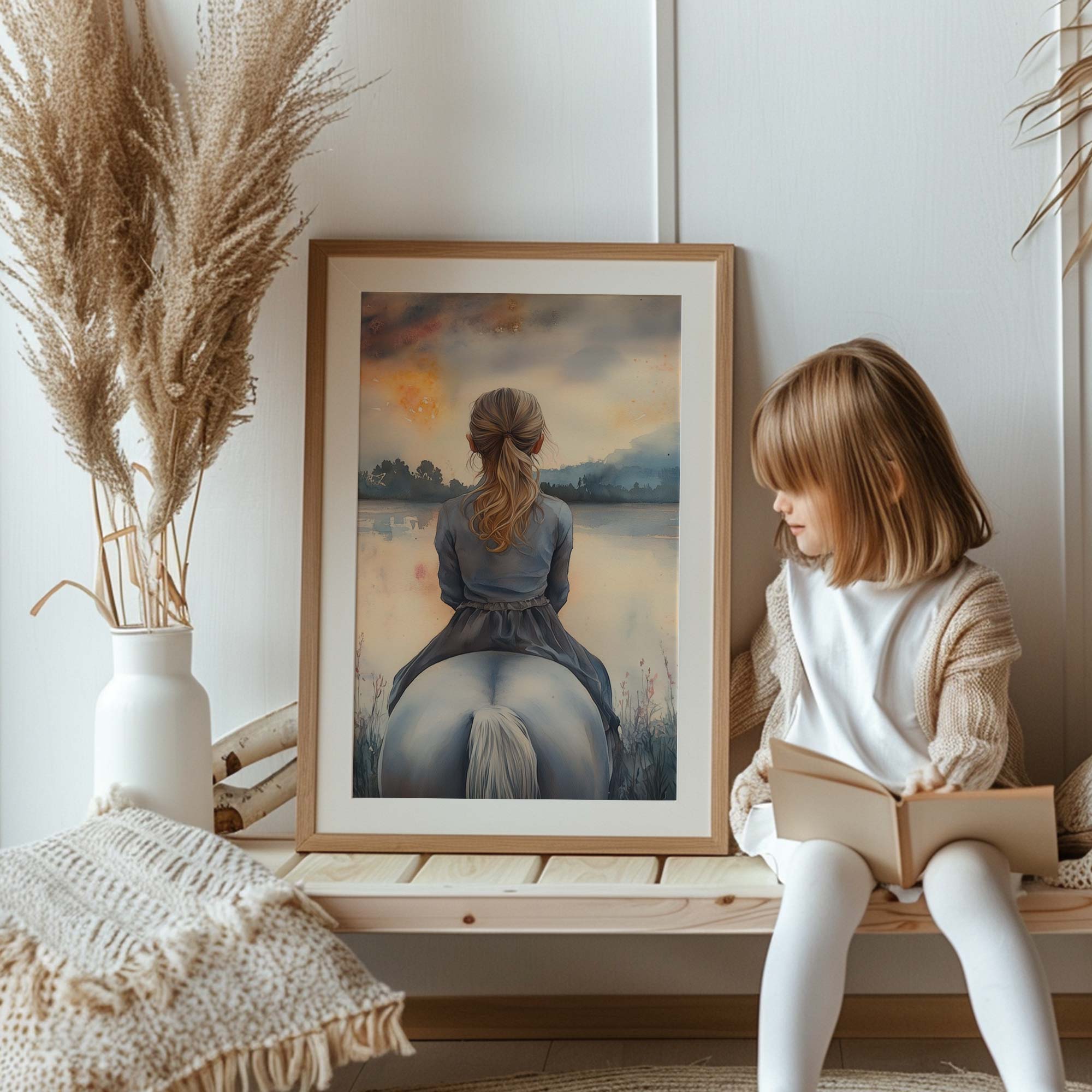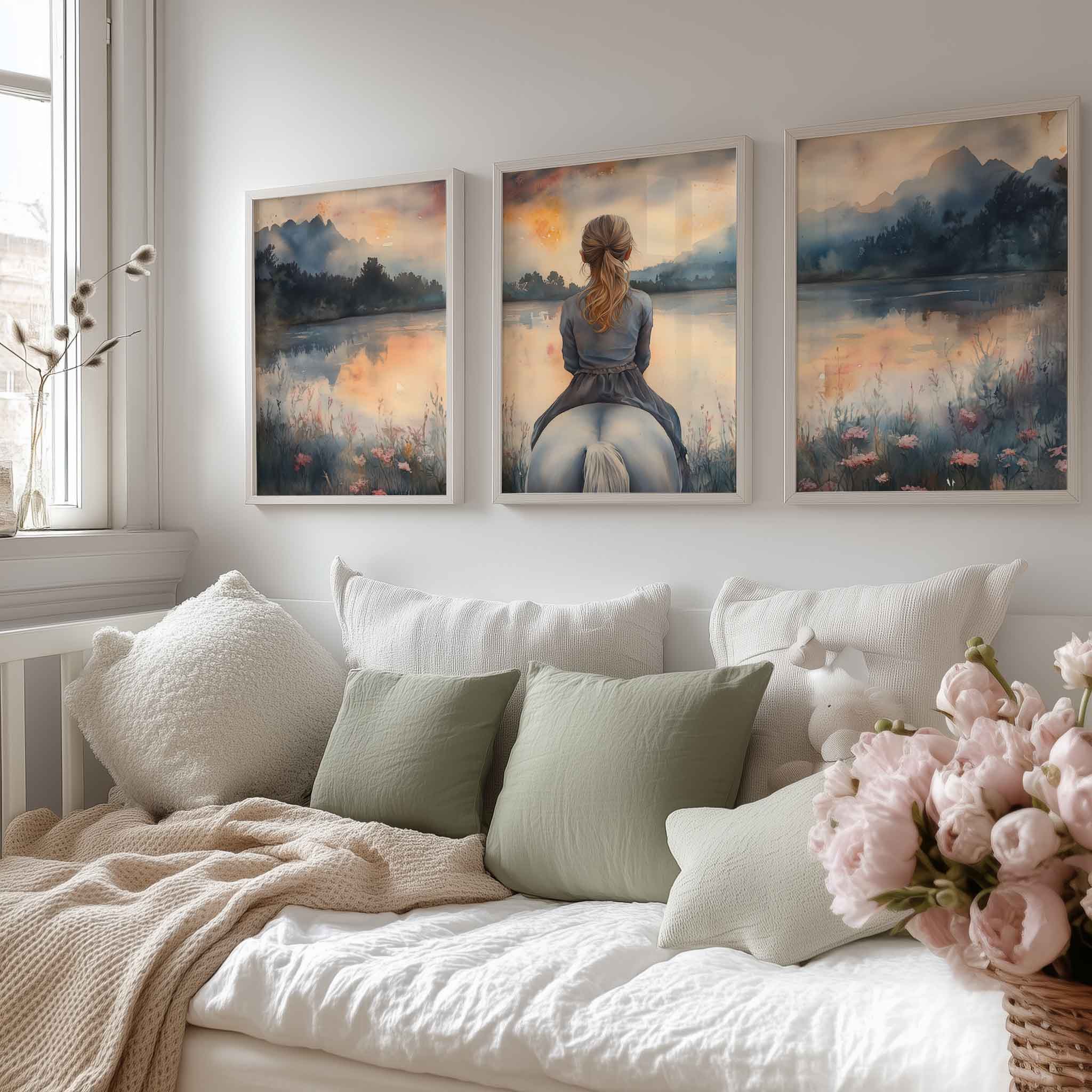 Terug naar collectie Posters Dromerig Landschap met Vrouw en Paard