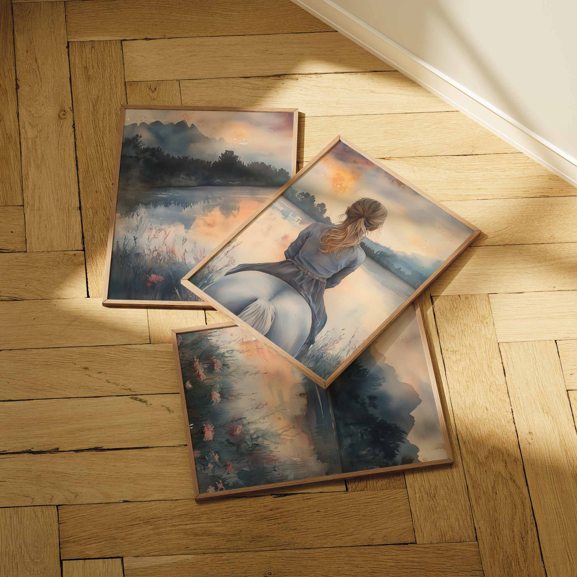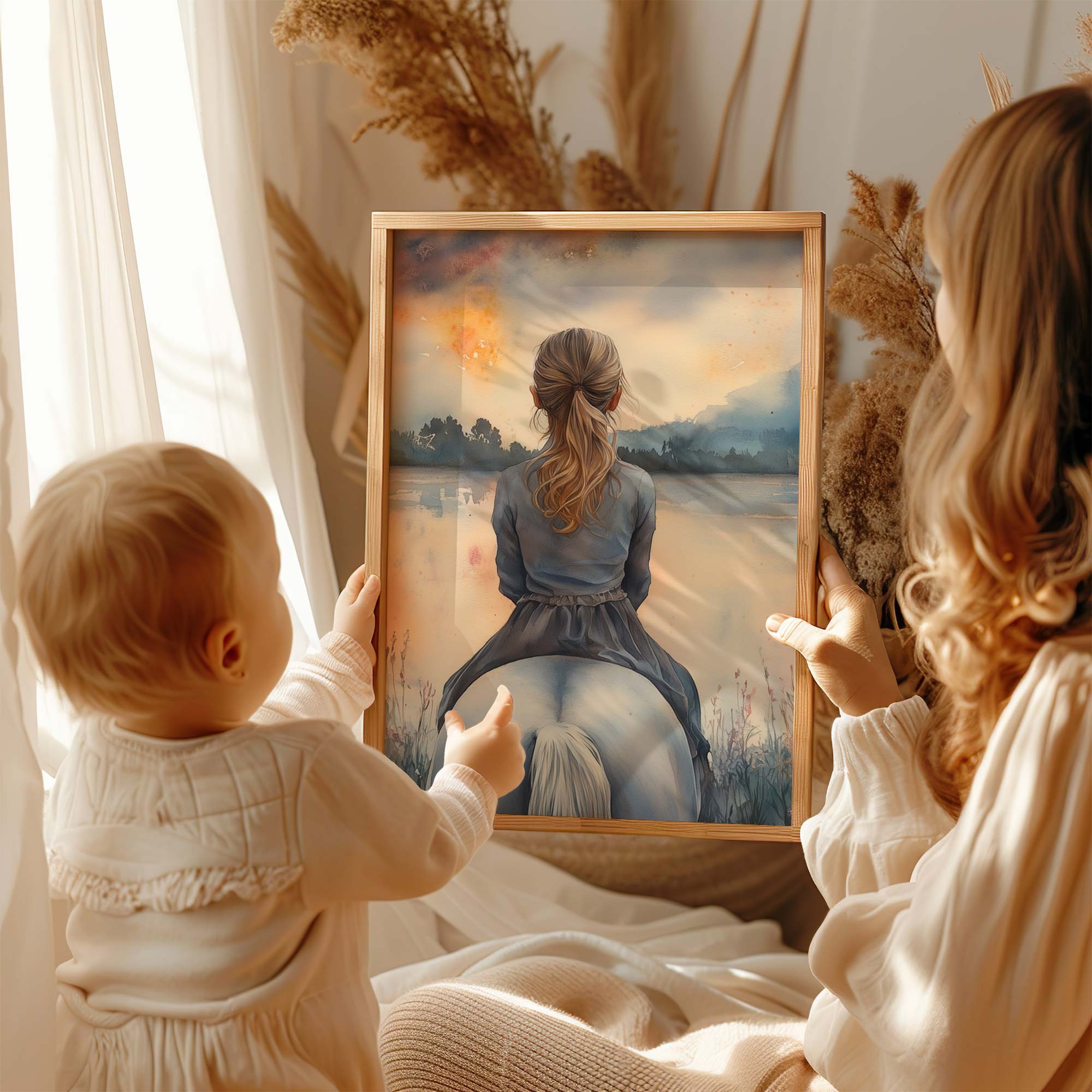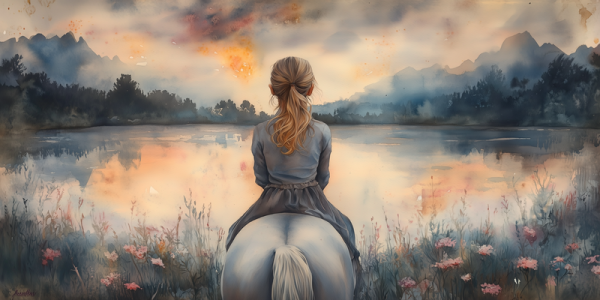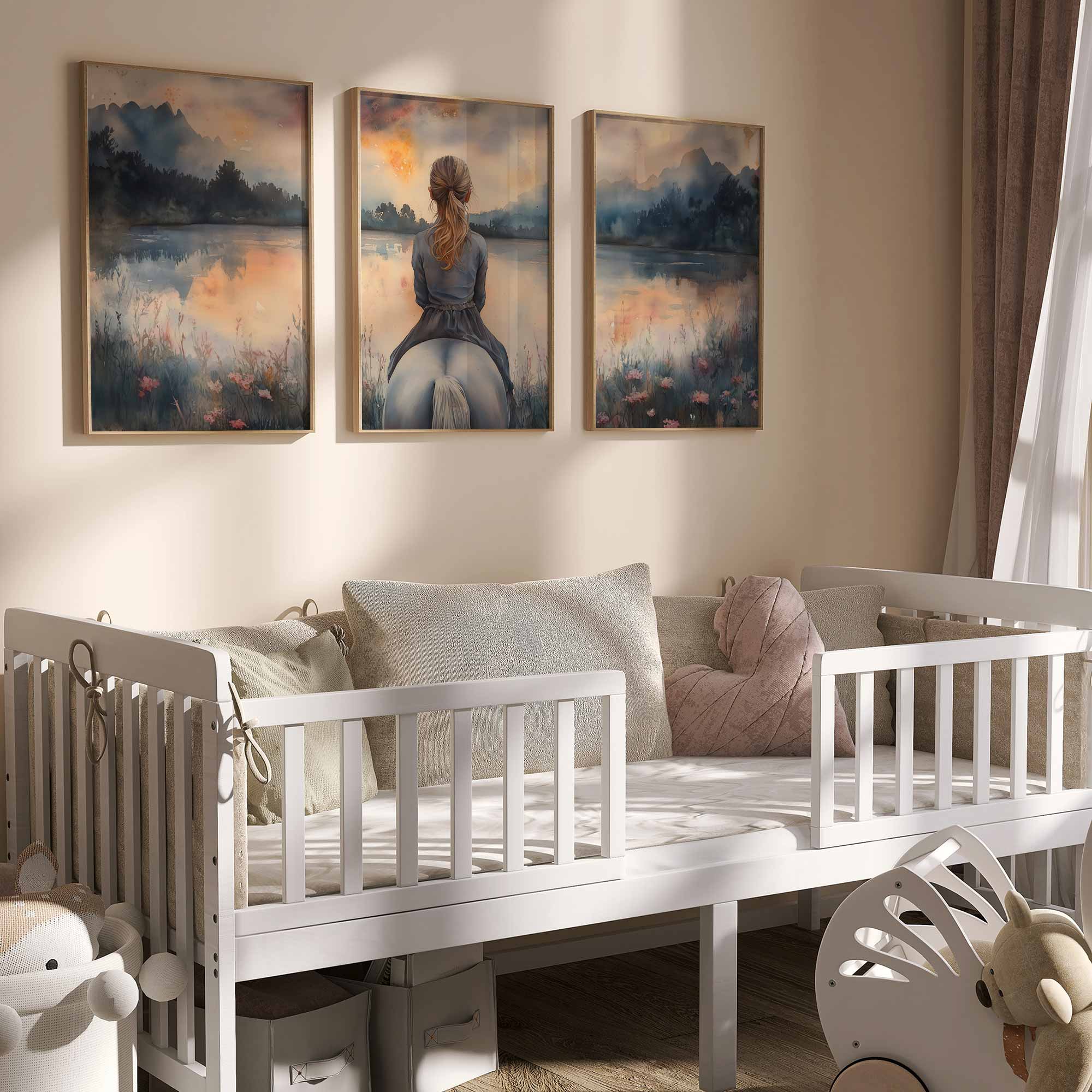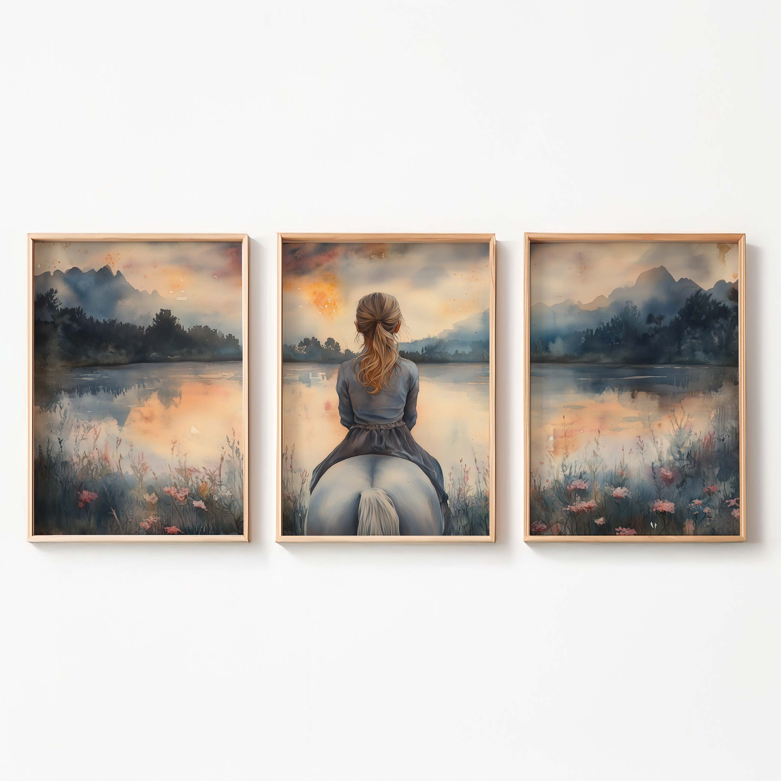 Terug naar collectie Posters Dromerig Landschap met Vrouw en Paard
