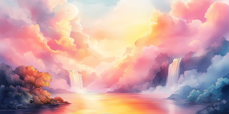 Dromerig Landschap met Watervallen en Wolken