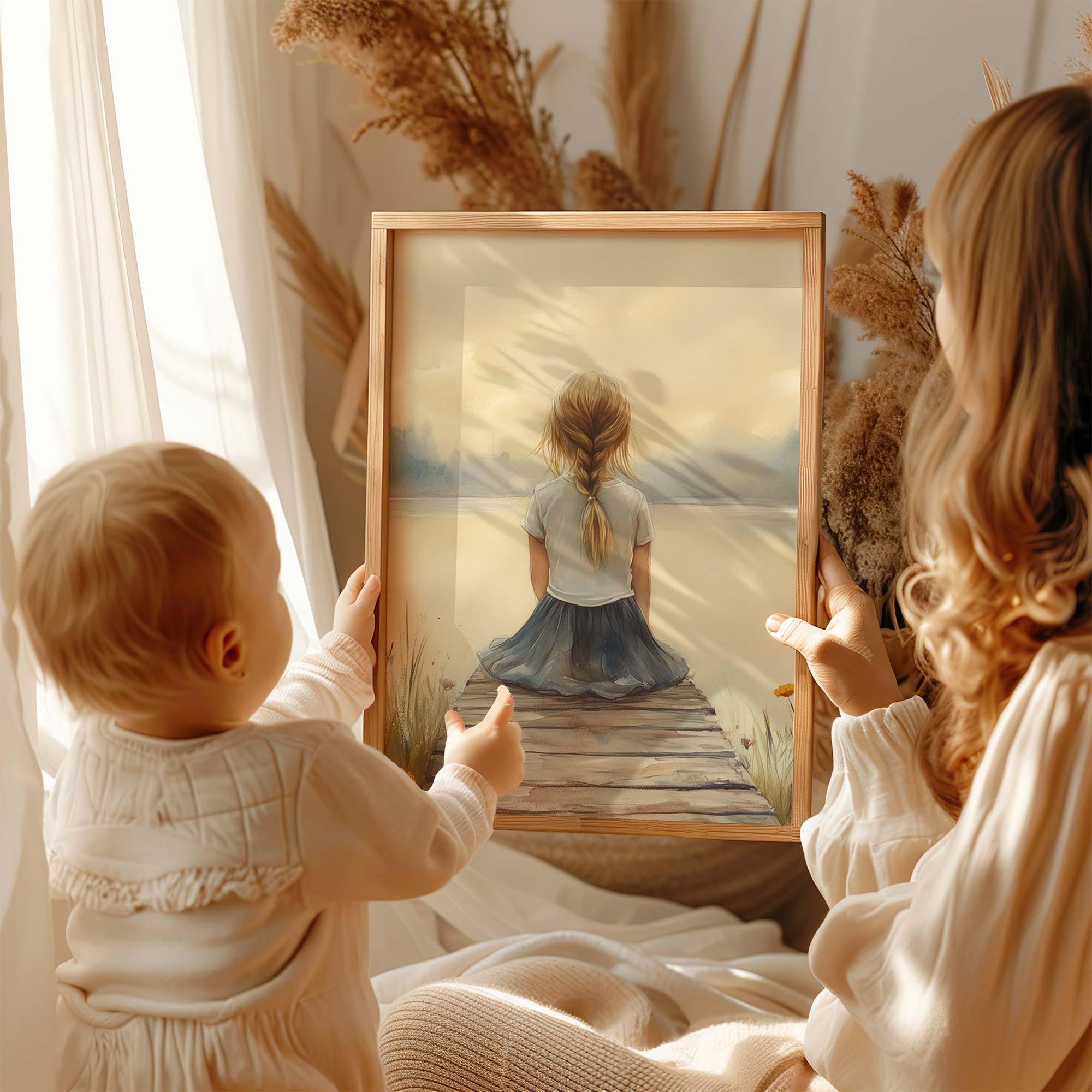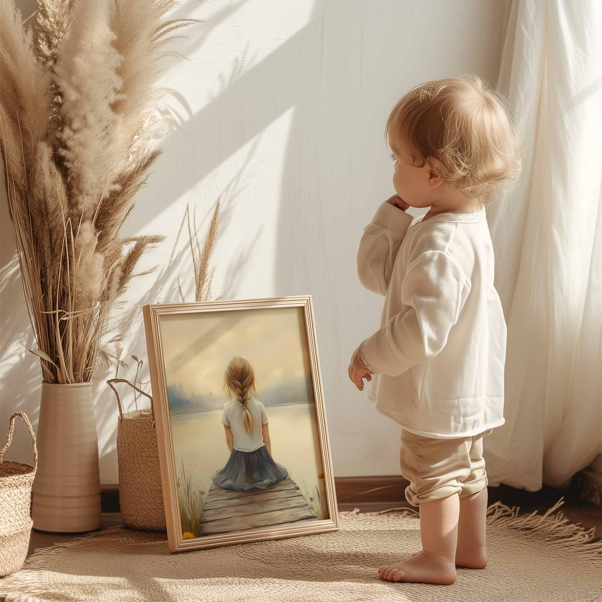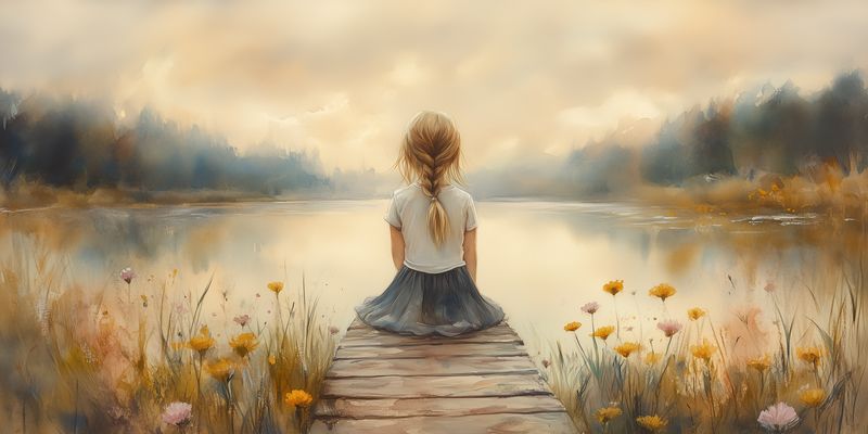 Dromerig Meisje aan het Meer – Pastel Sprookje