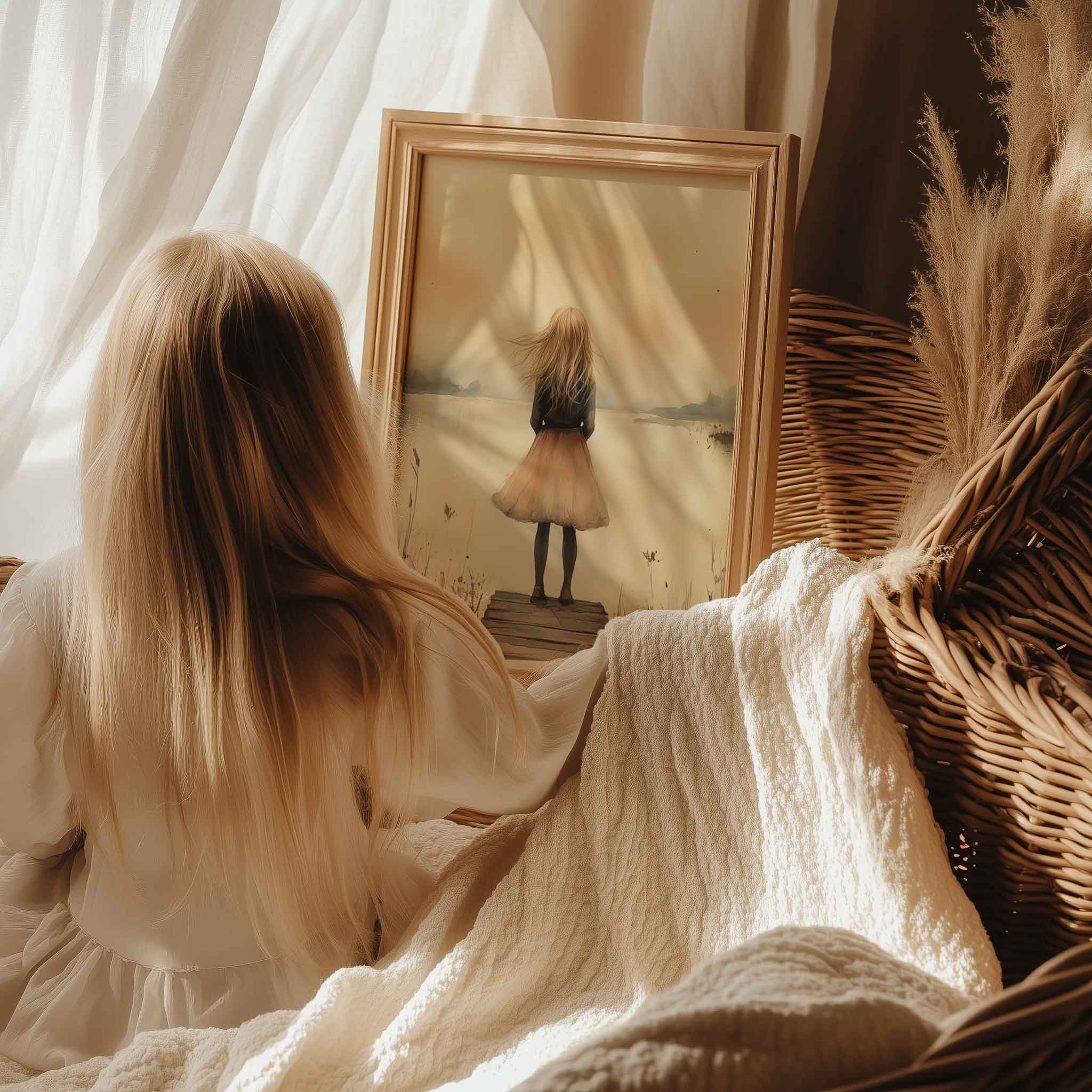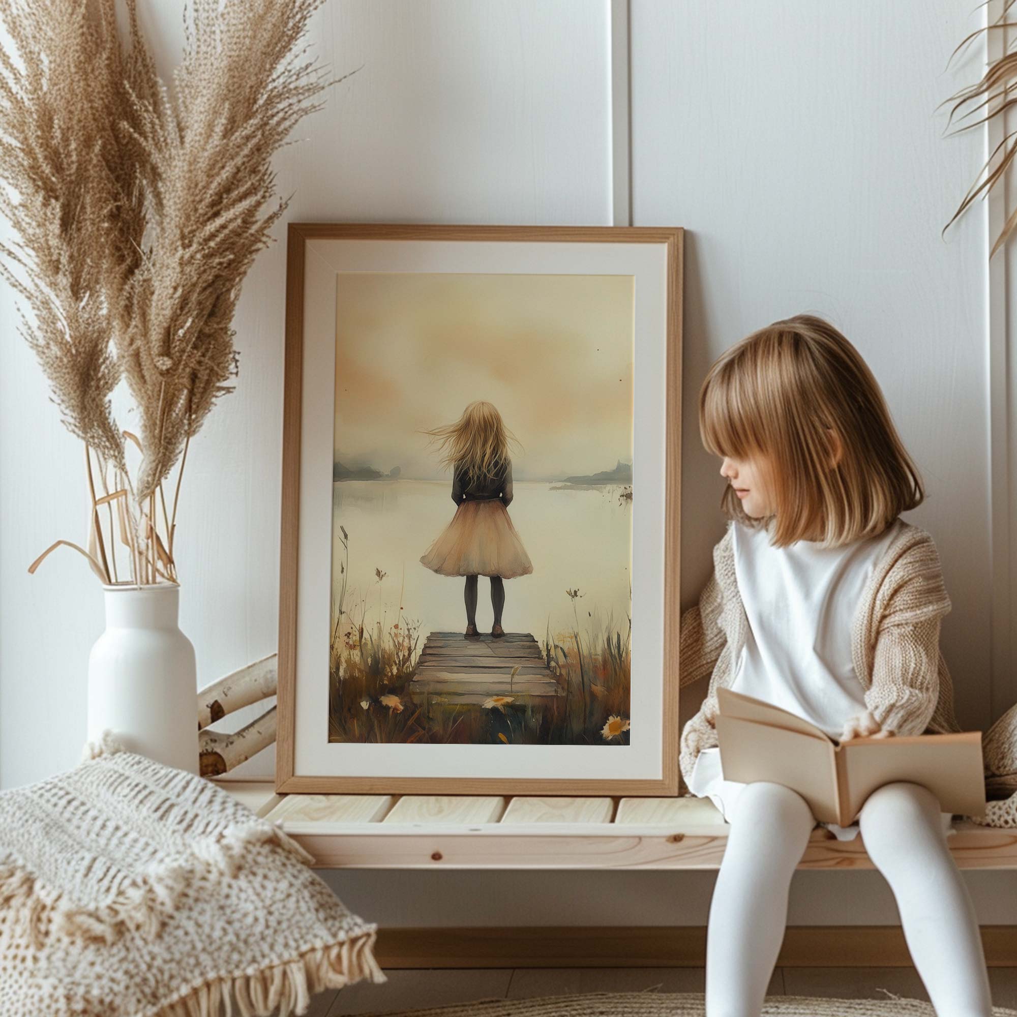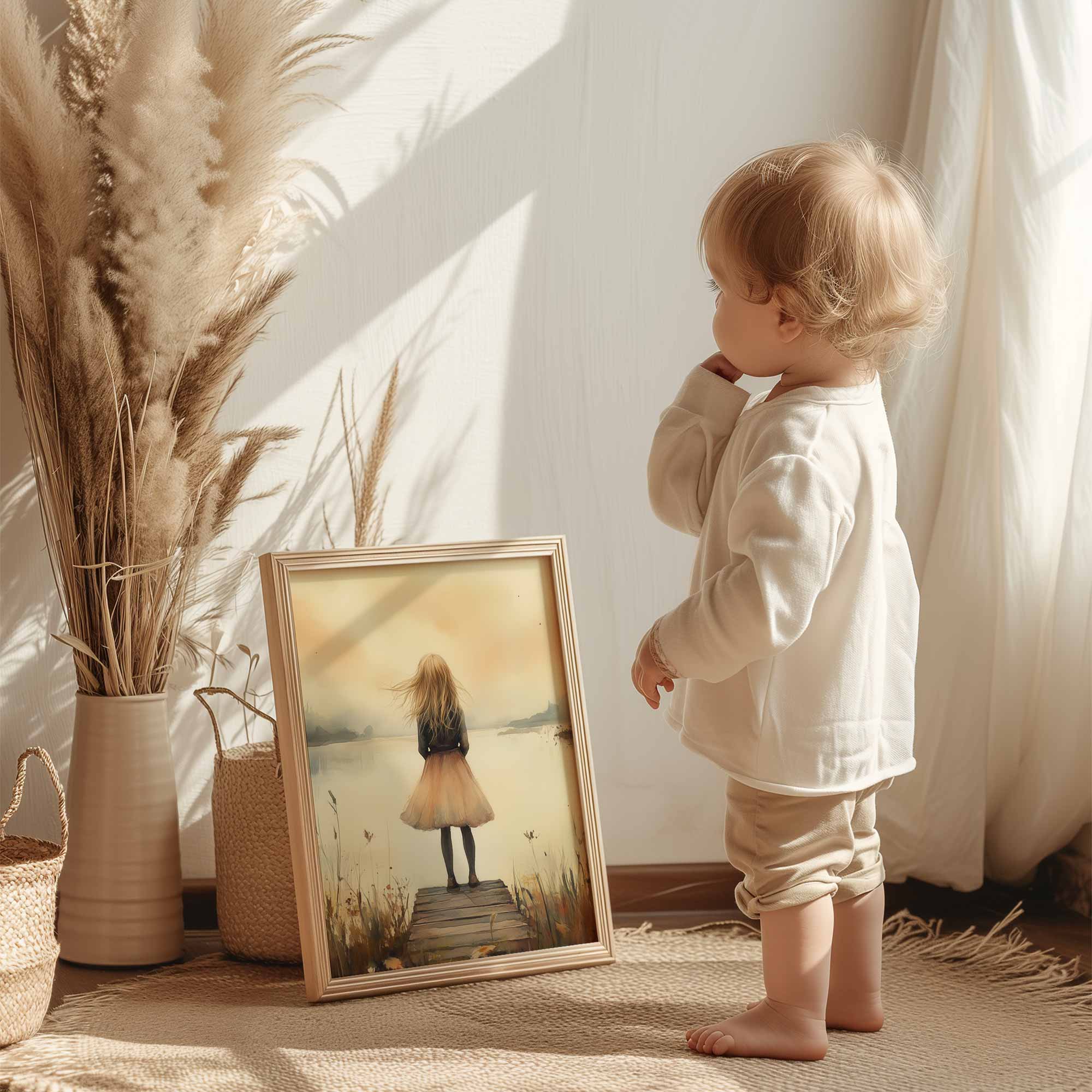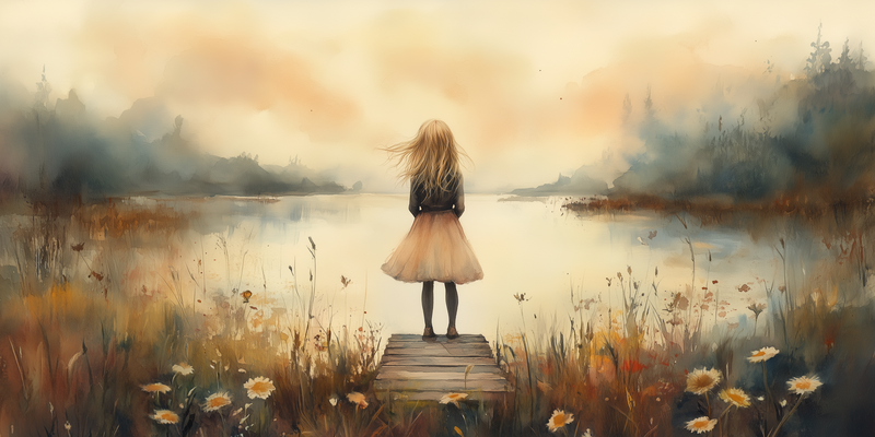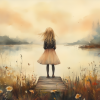 Dromerig Meisje aan het Water – Pastel Sfeer