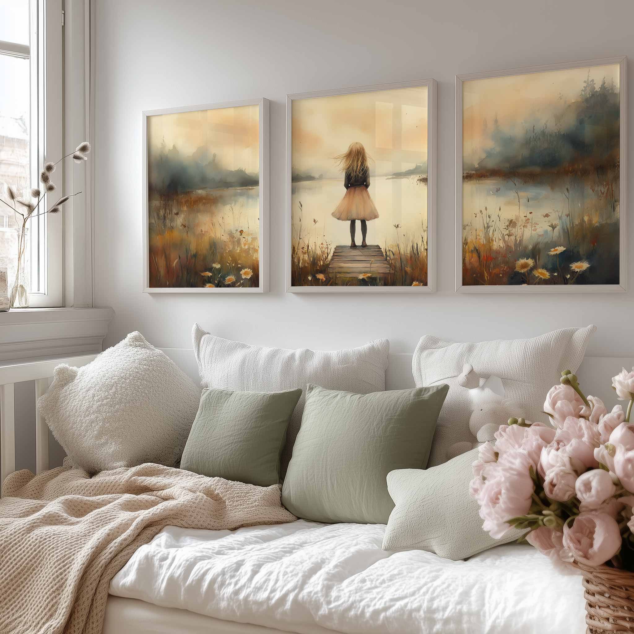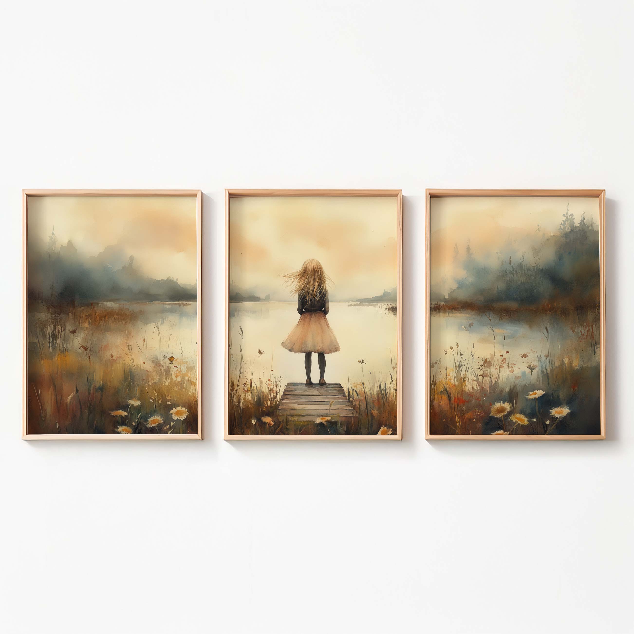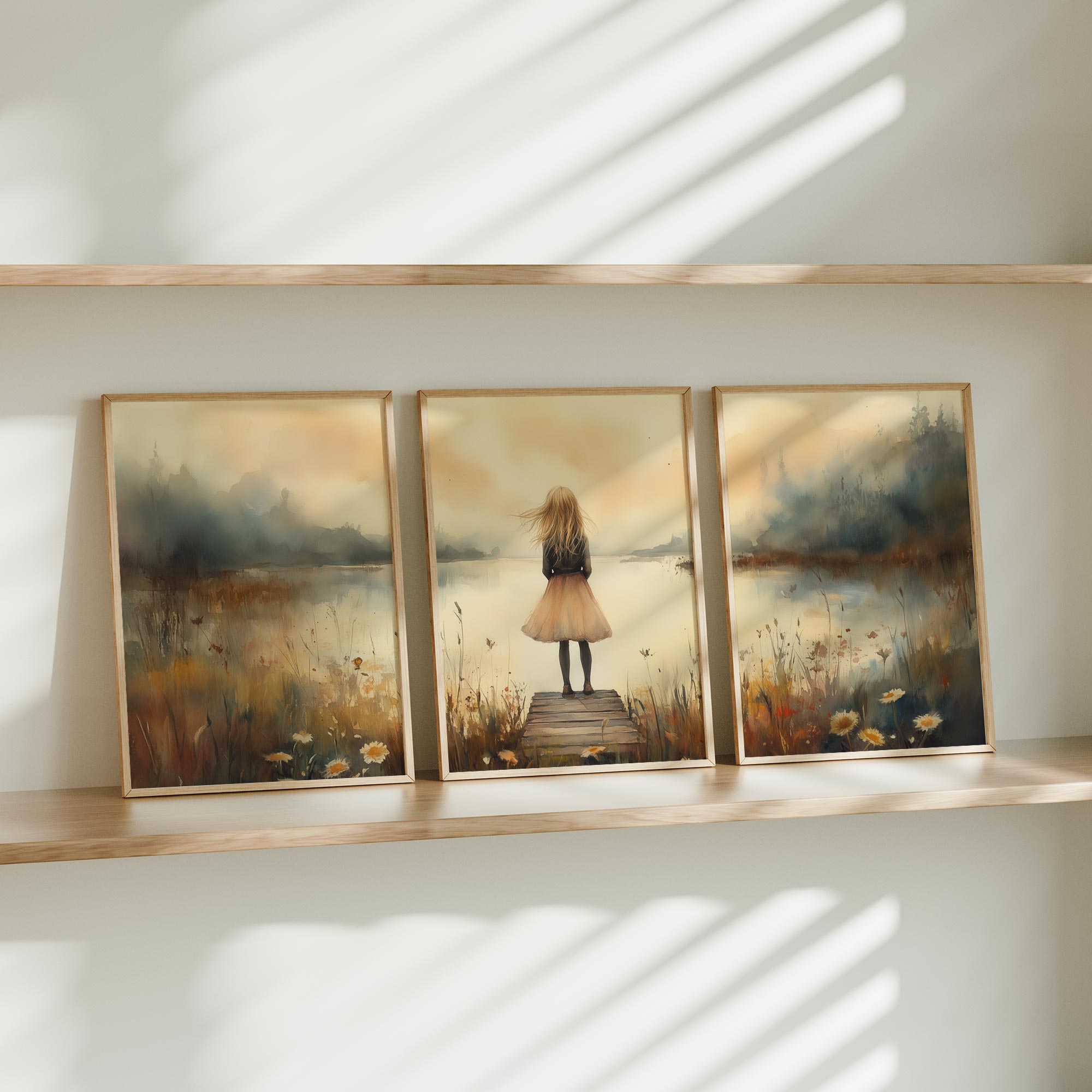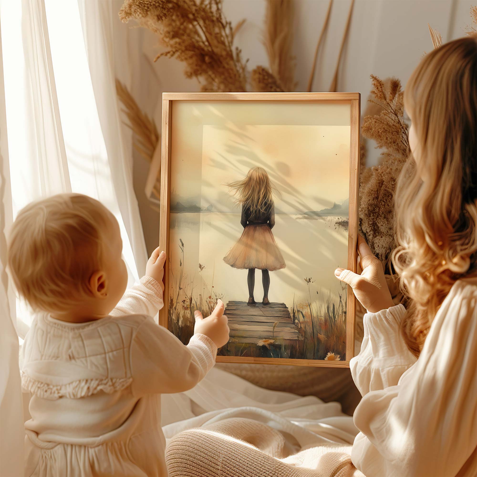 Dromerig Meisje aan het Water – Pastel Sfeer