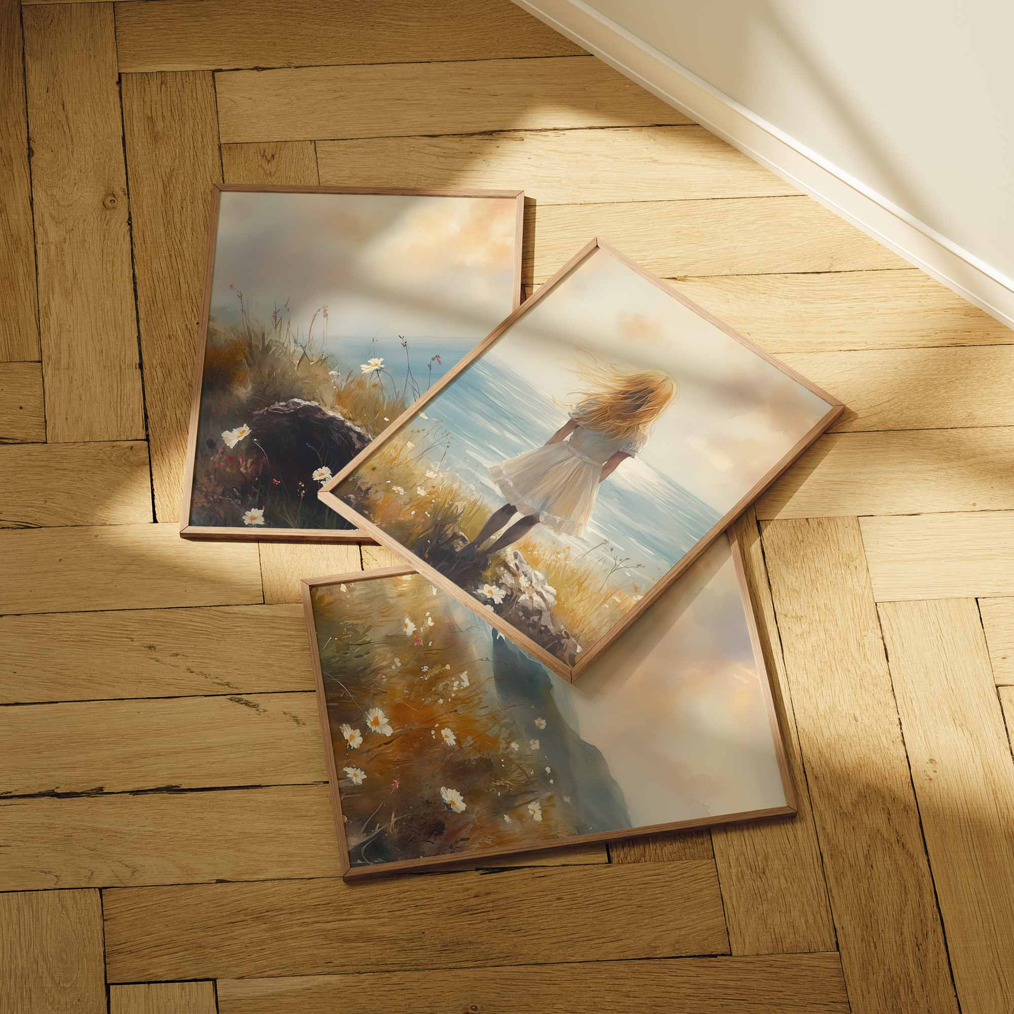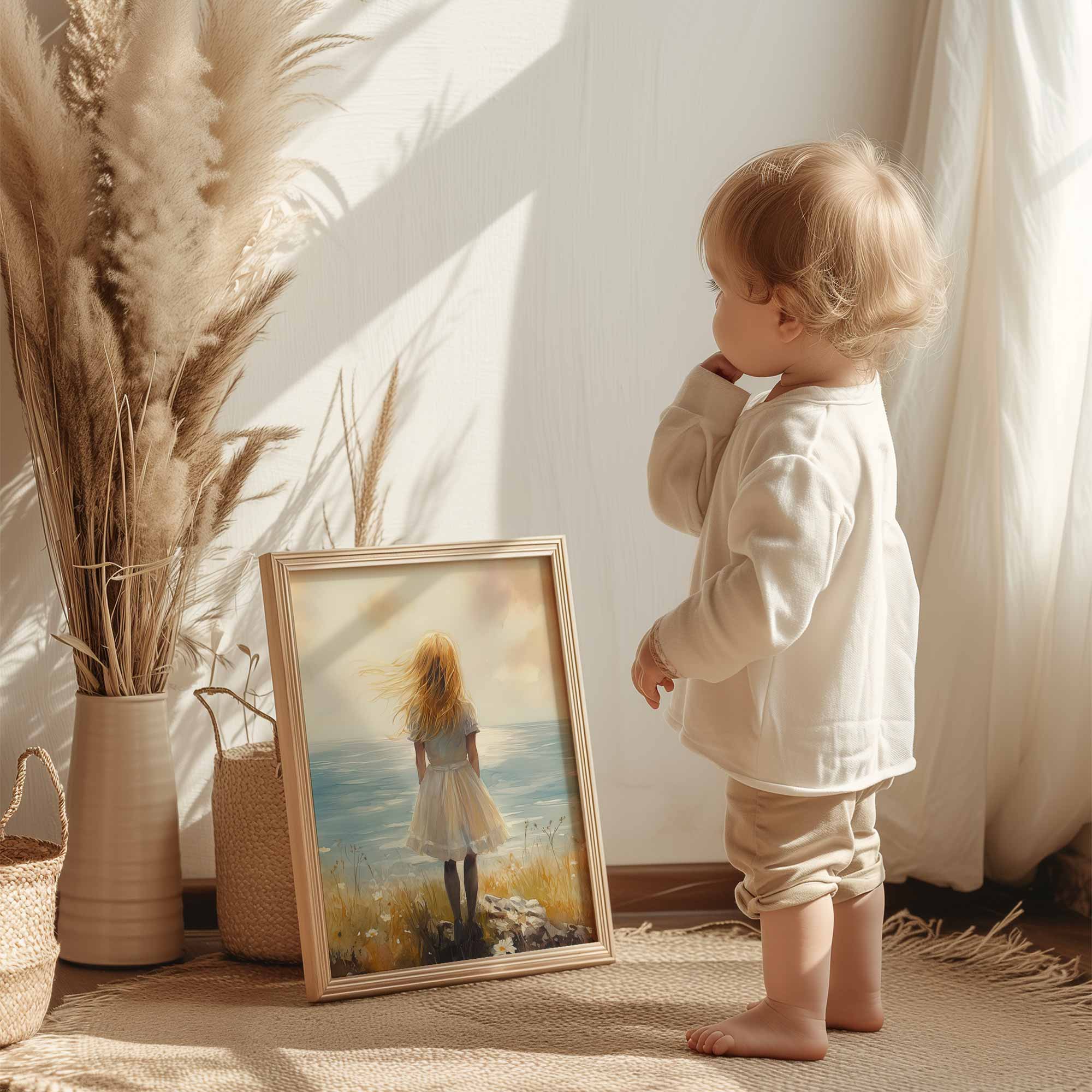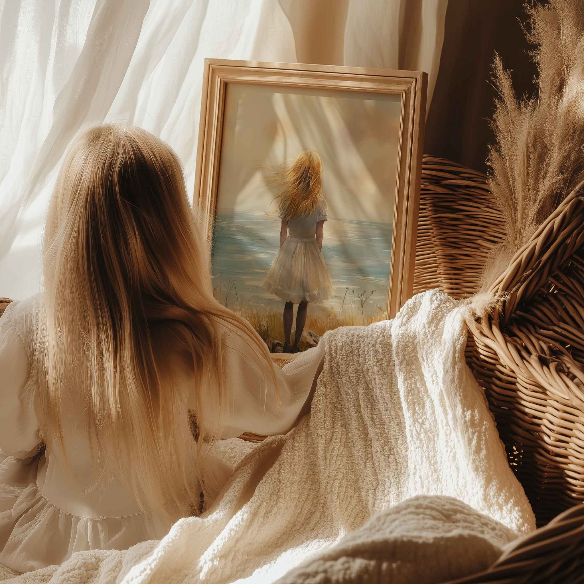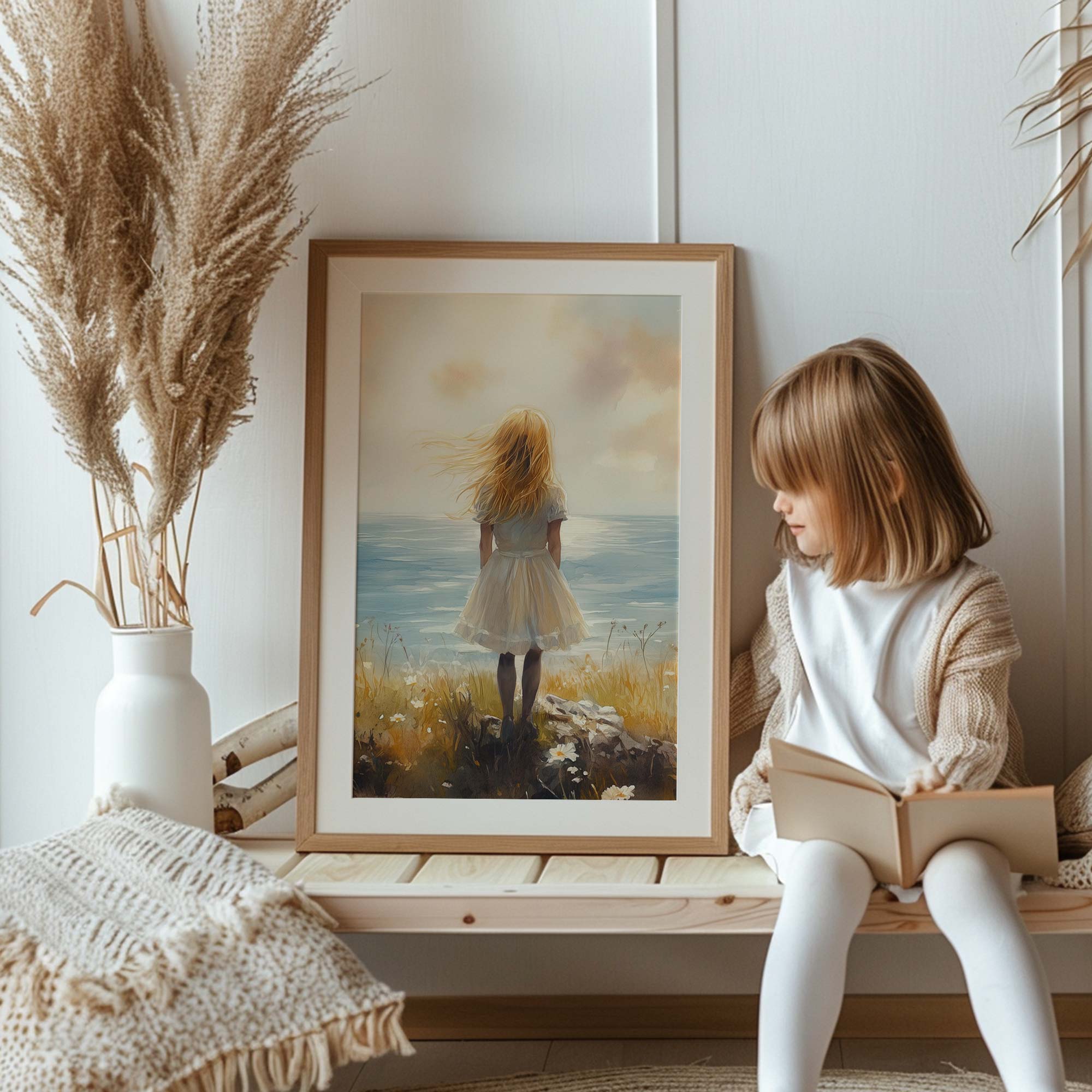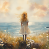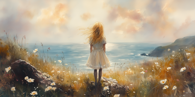 Dromerig Meisje aan Zee – Pastel Cliff Fantasie