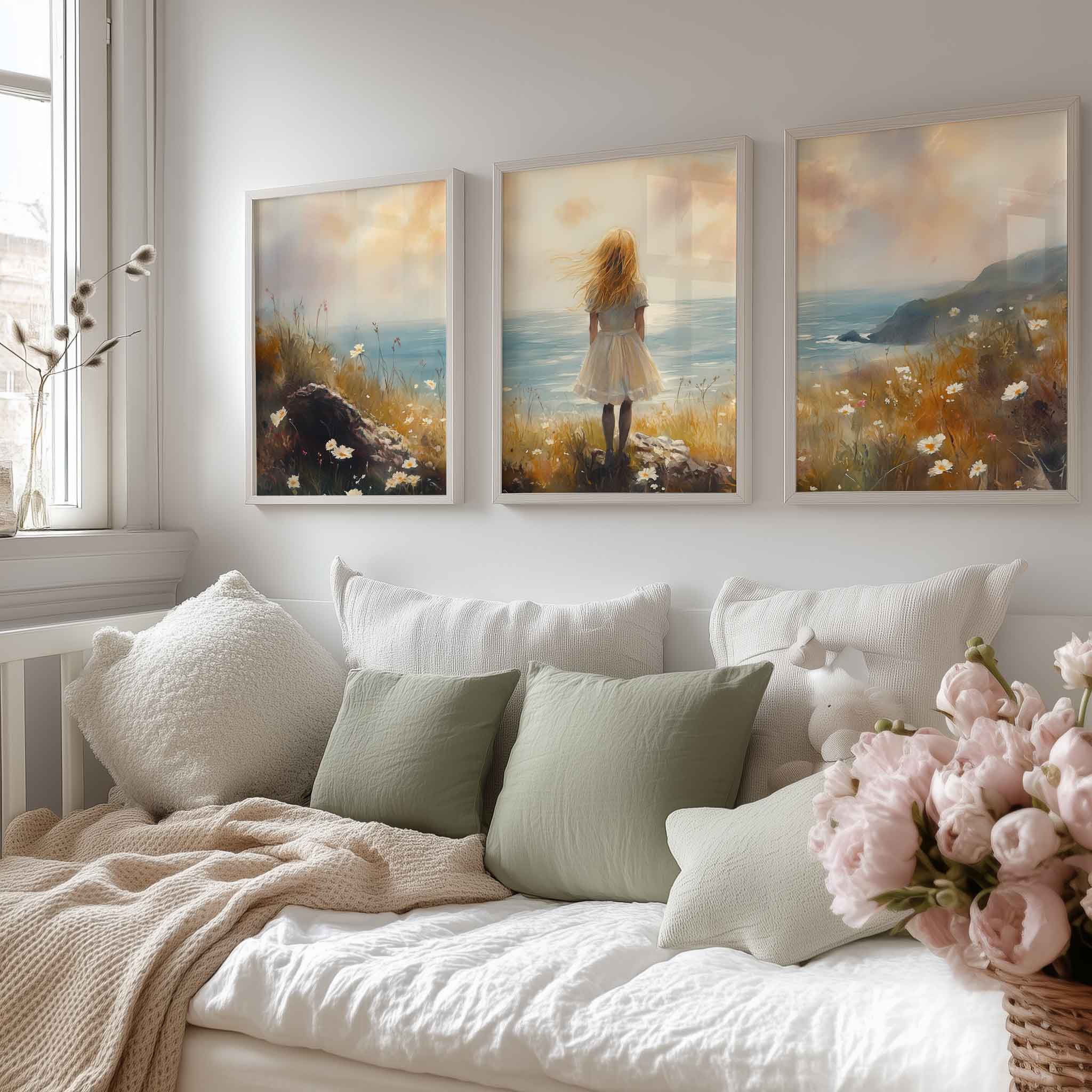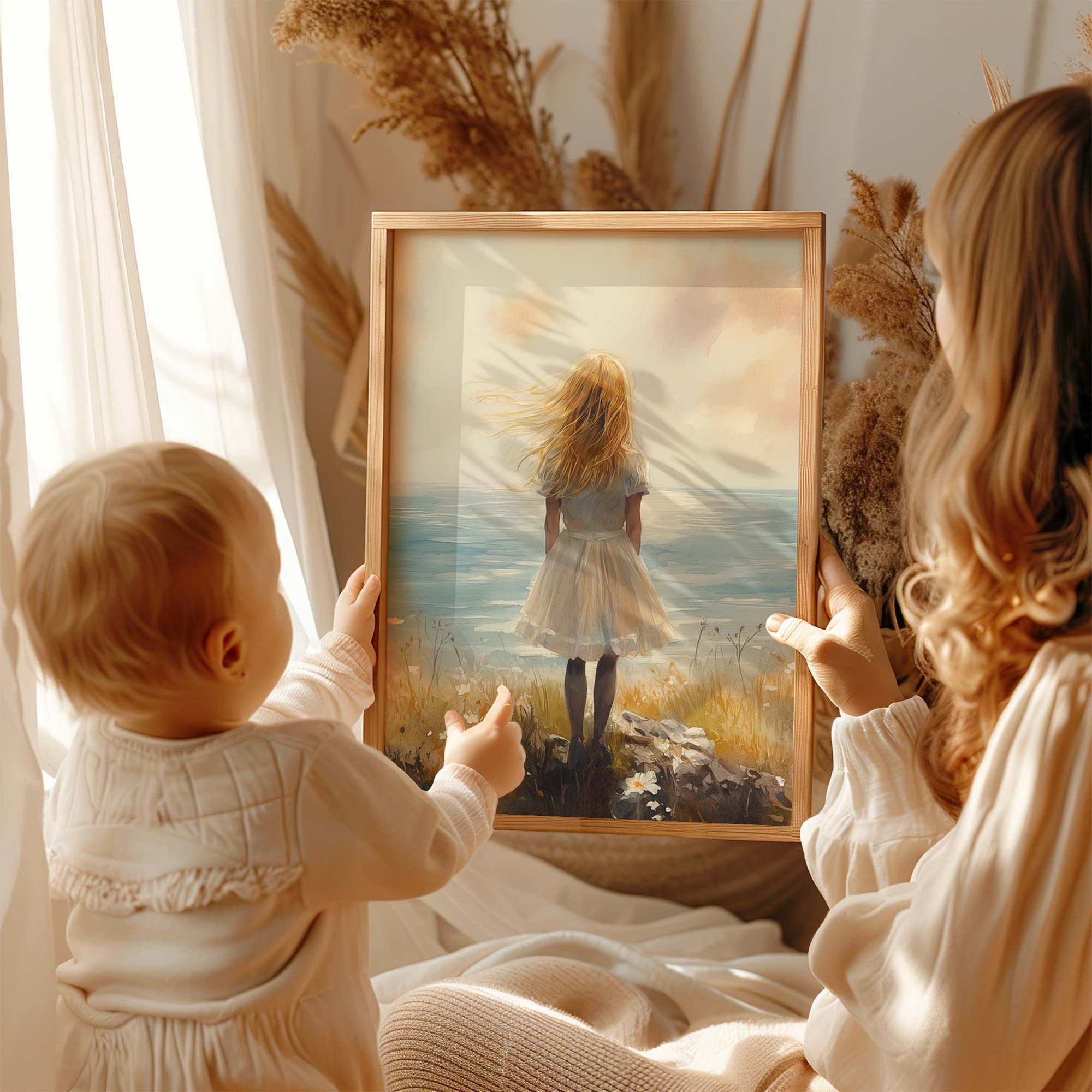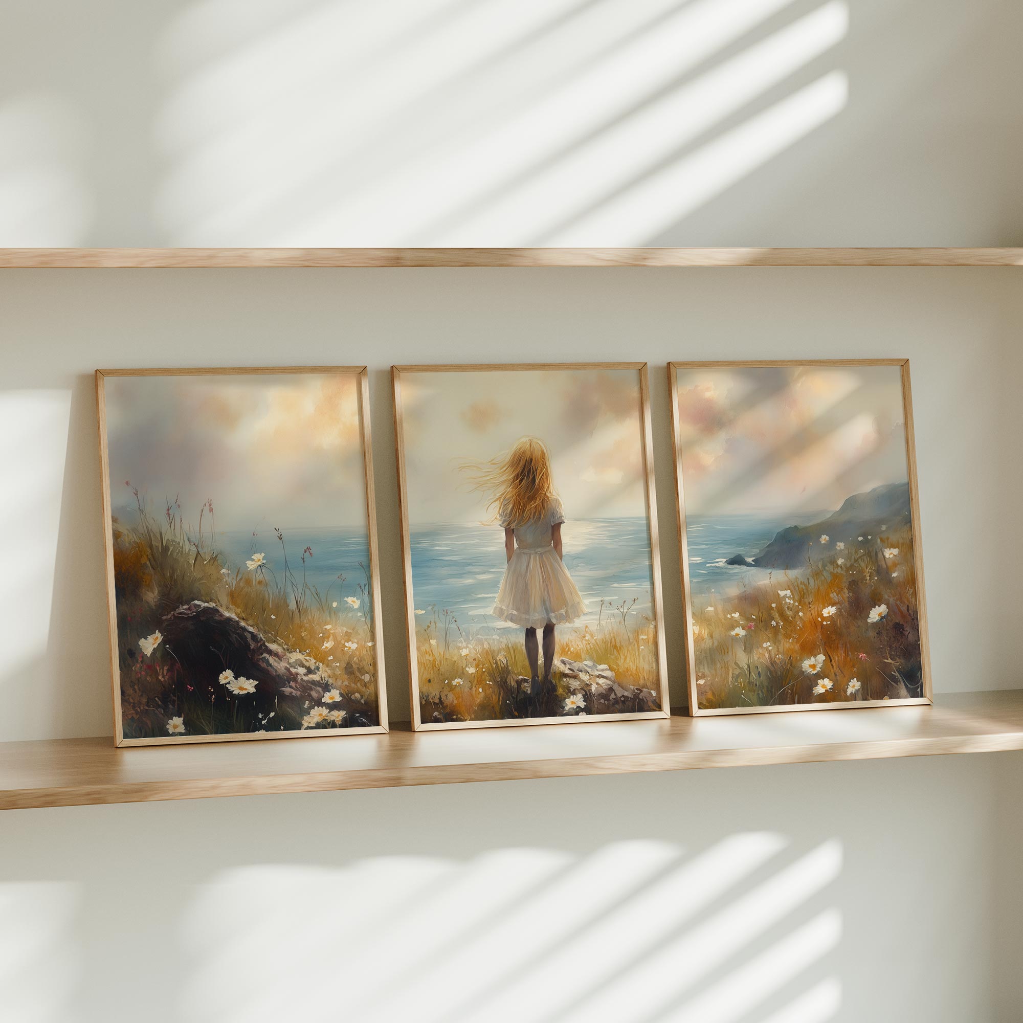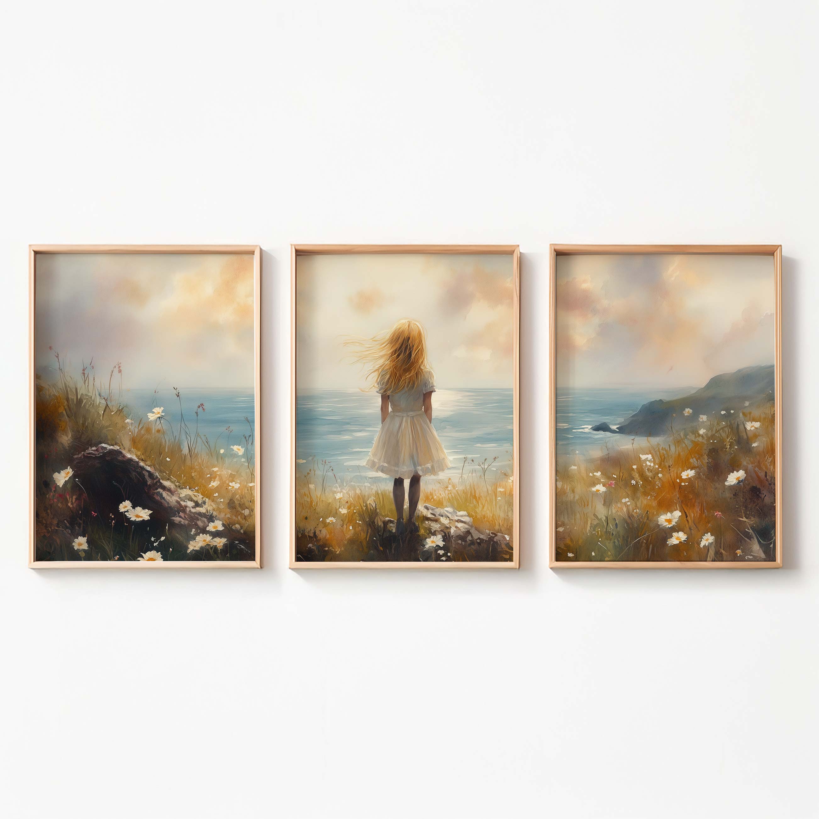 Dromerig Meisje aan Zee – Pastel Cliff Fantasie