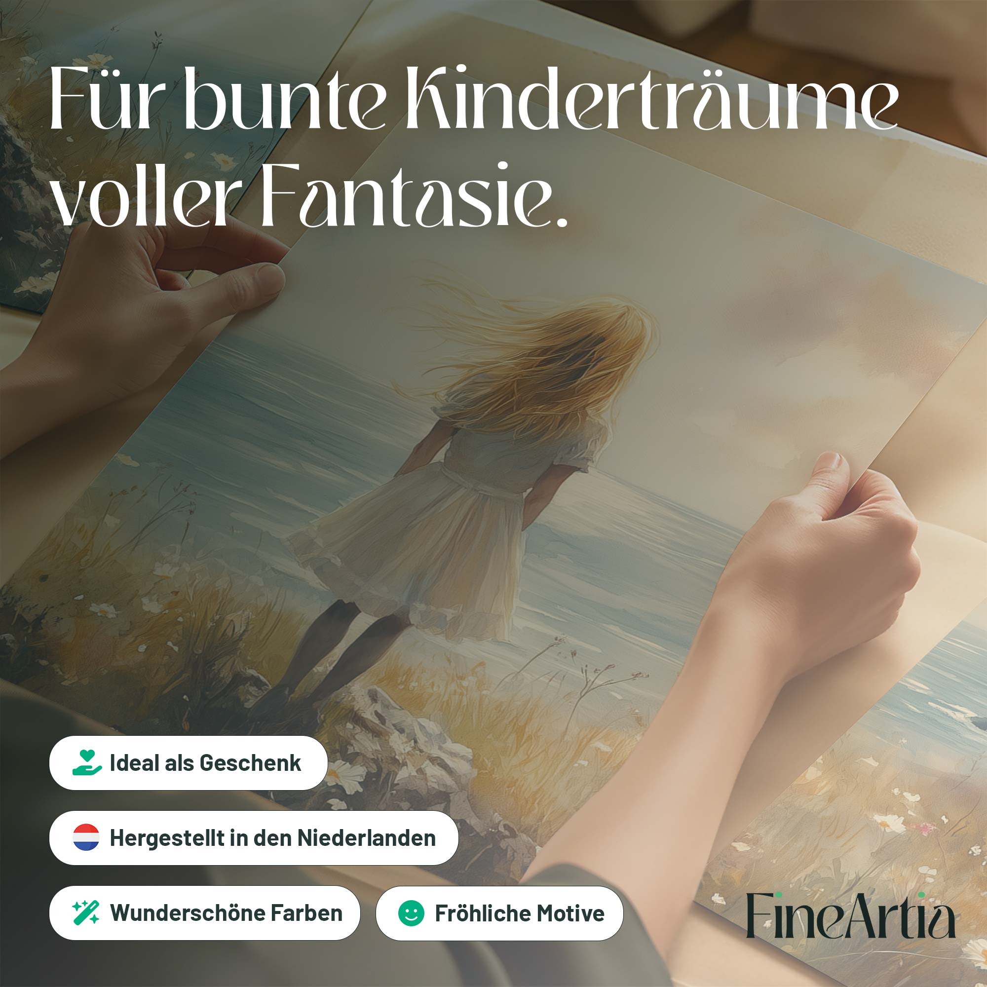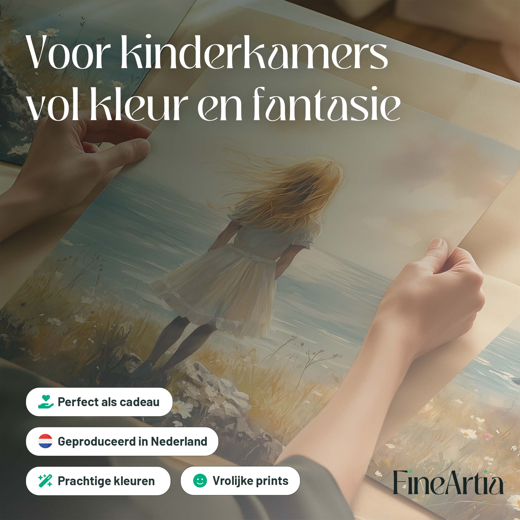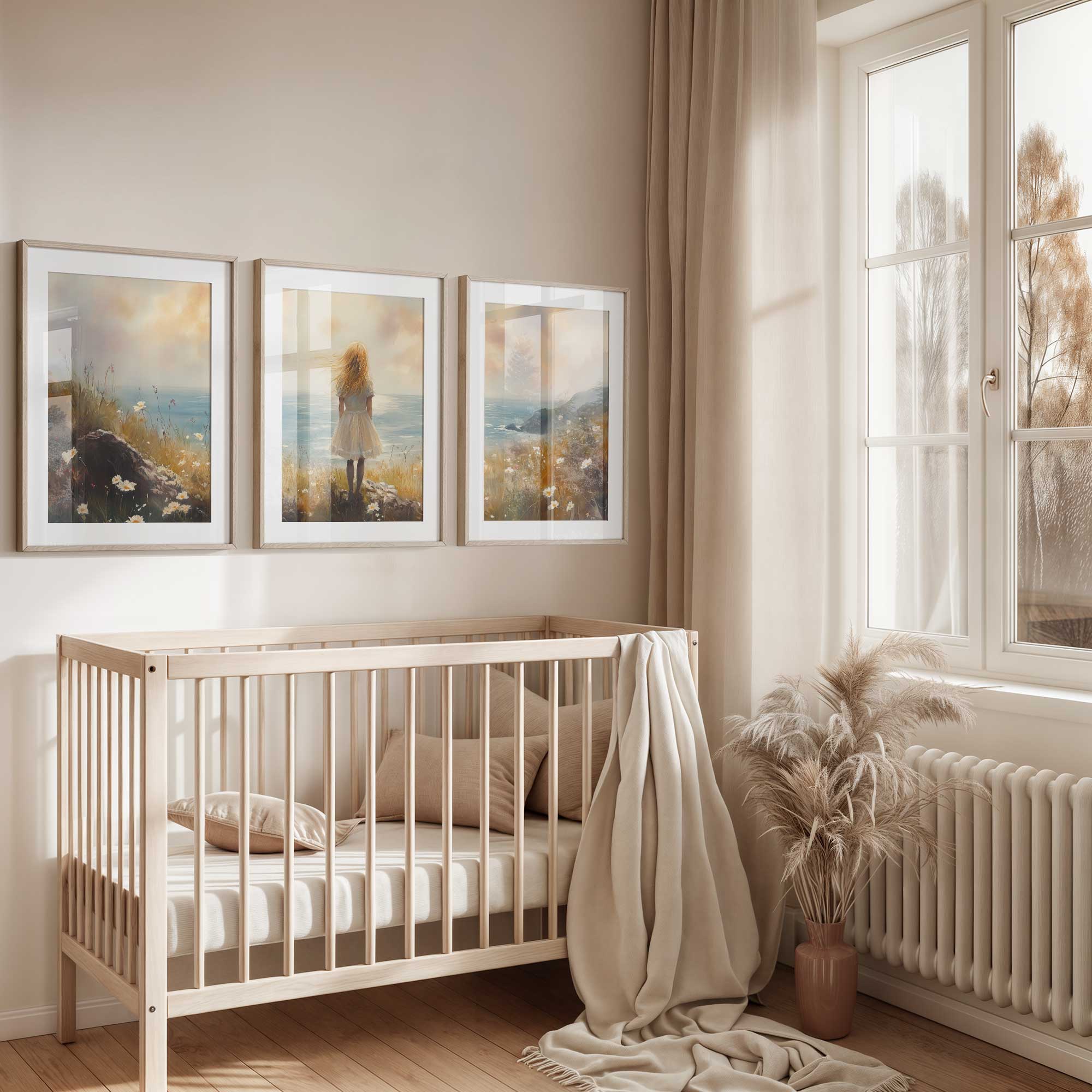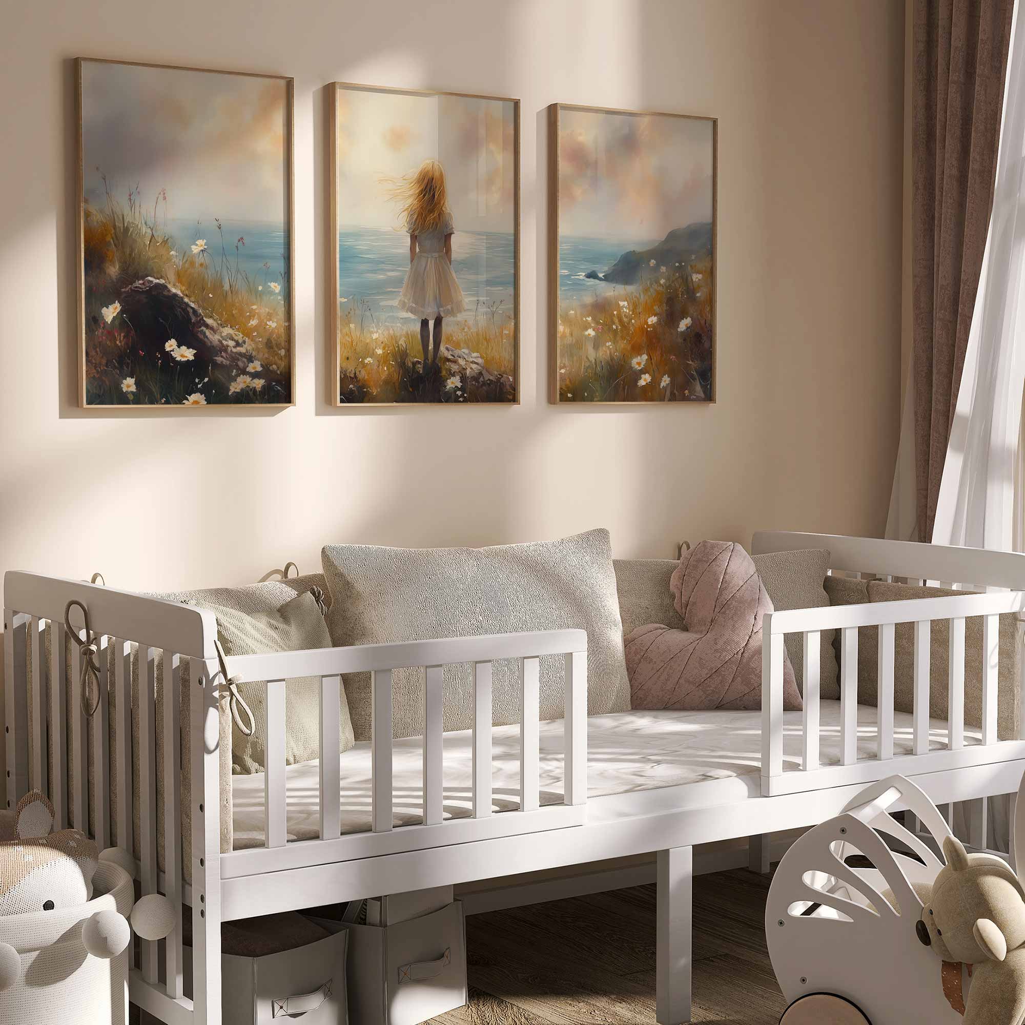 Dromerig Meisje aan Zee – Pastel Cliff Fantasie