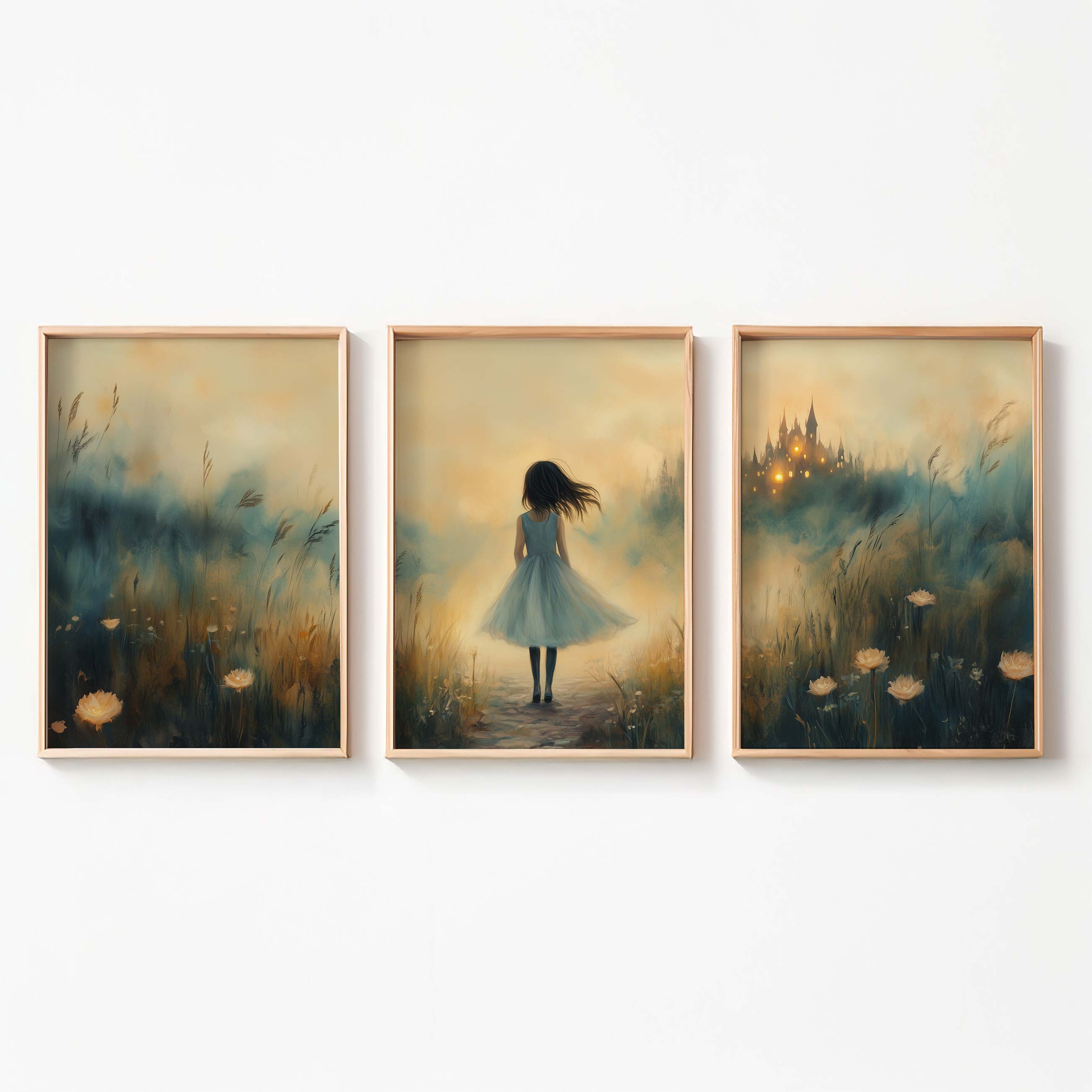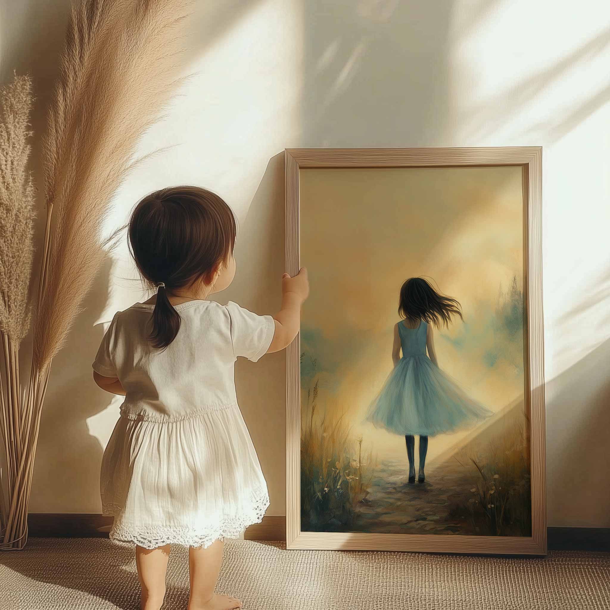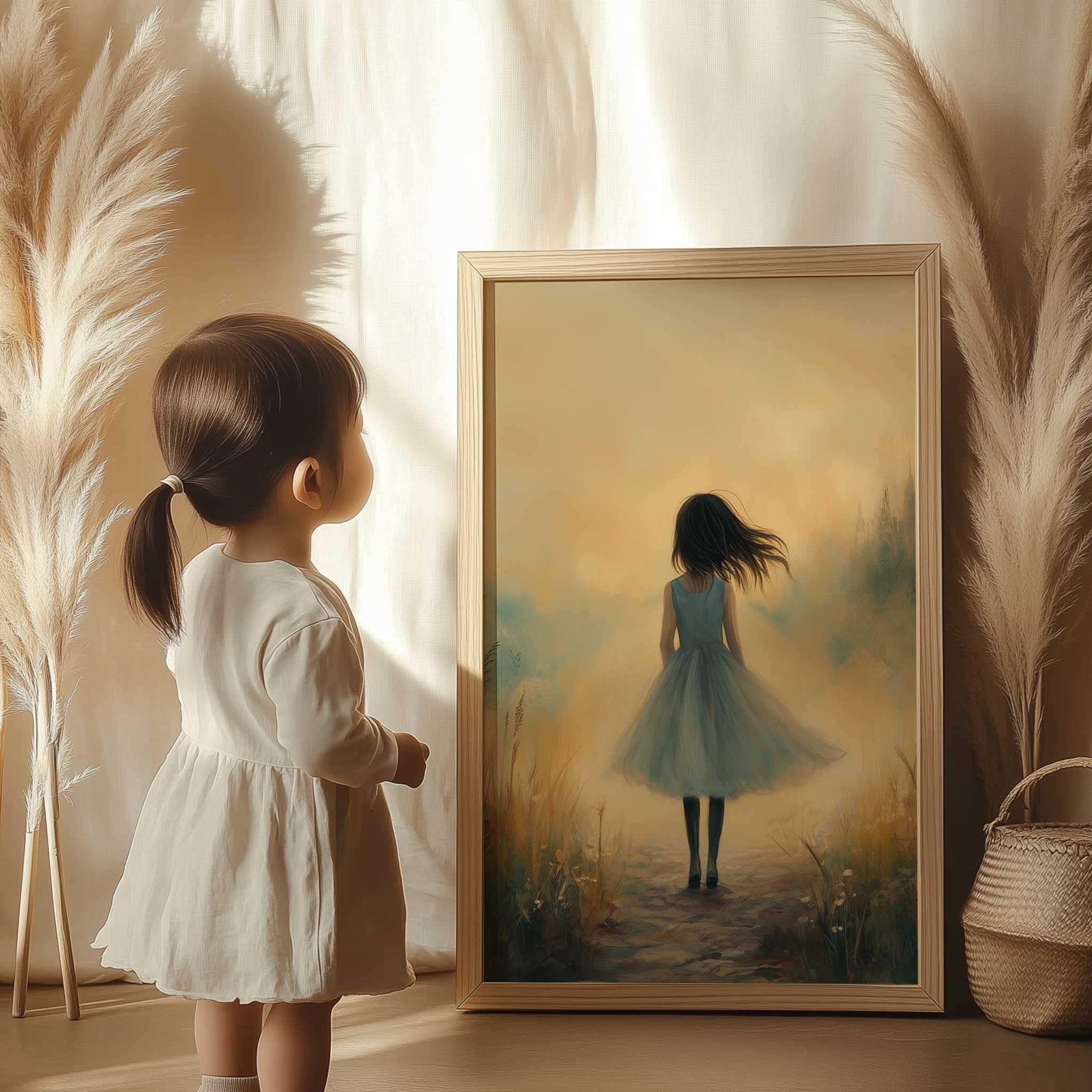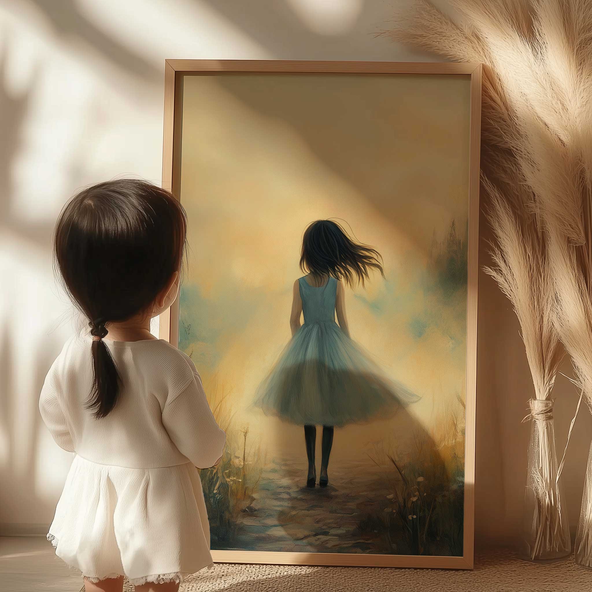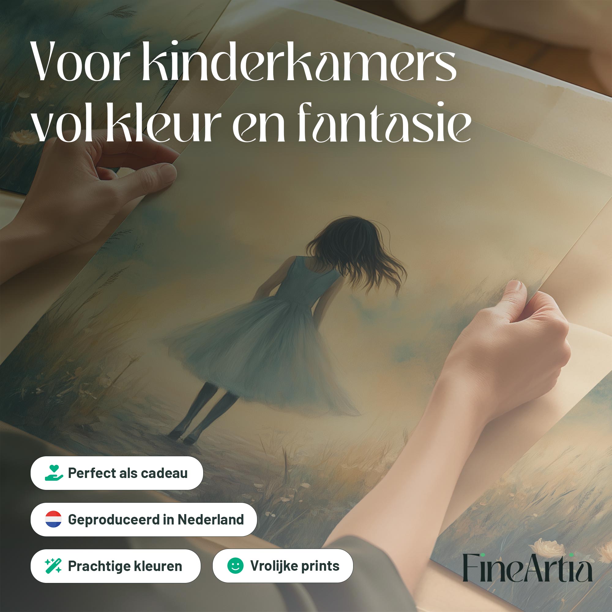 Terug naar collectie Posters Dromerig Meisje bij Betoverend Kasteel – Pastel Schilderij