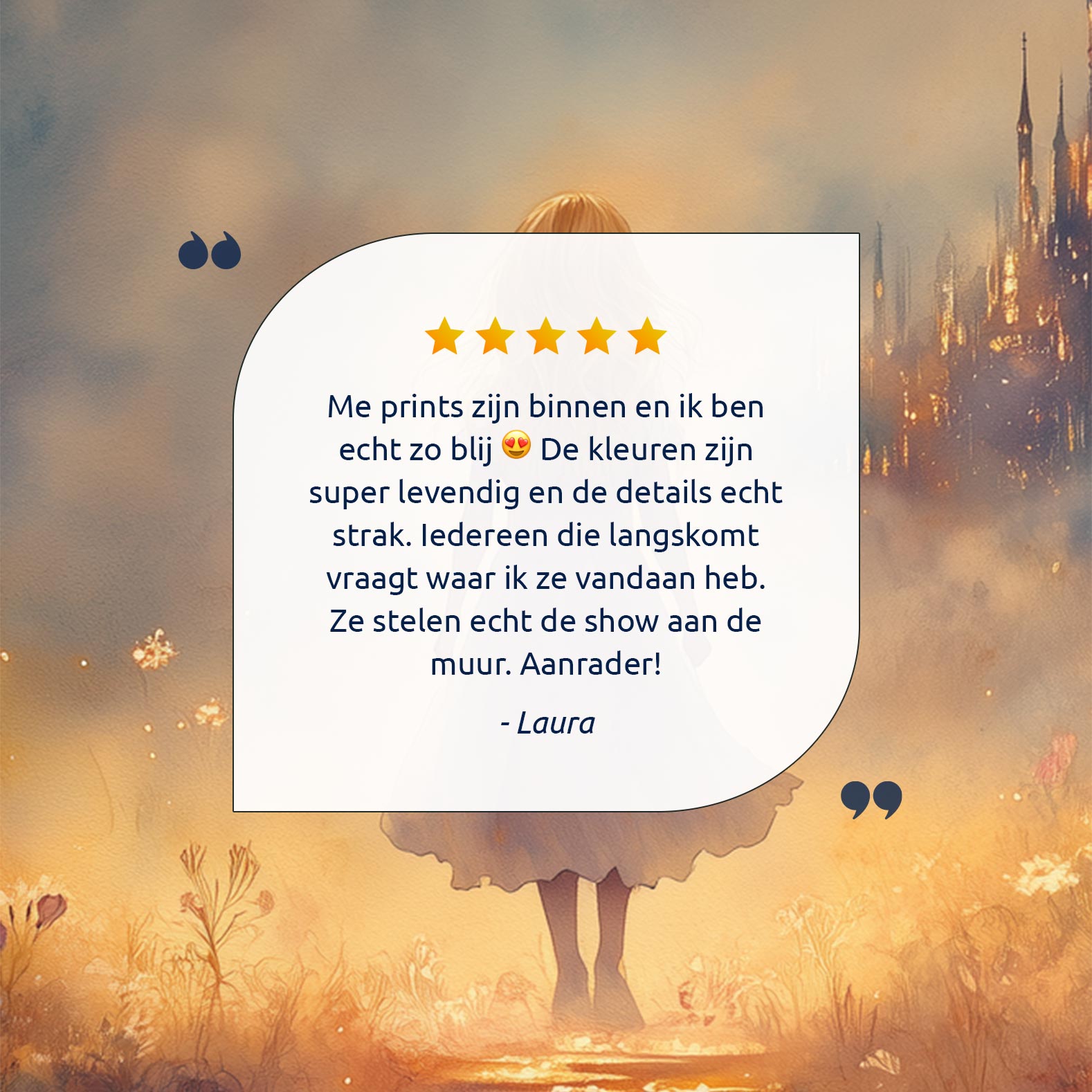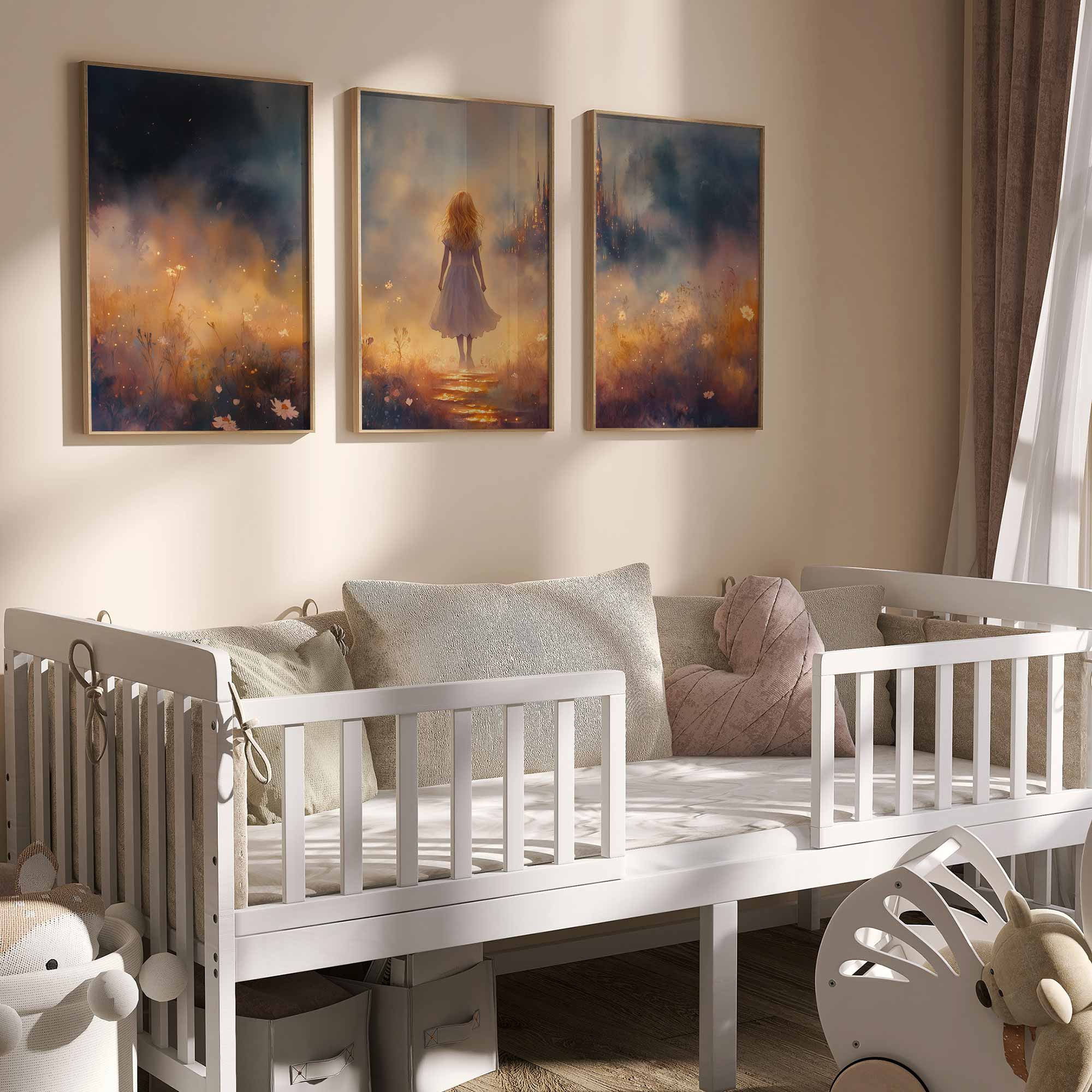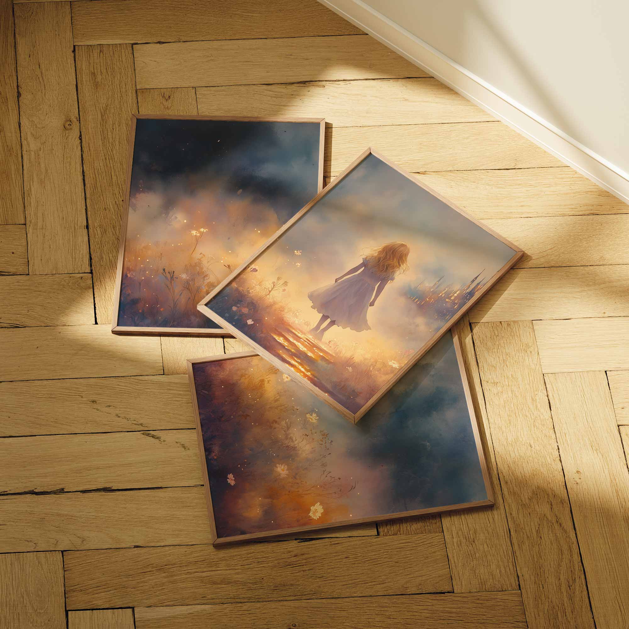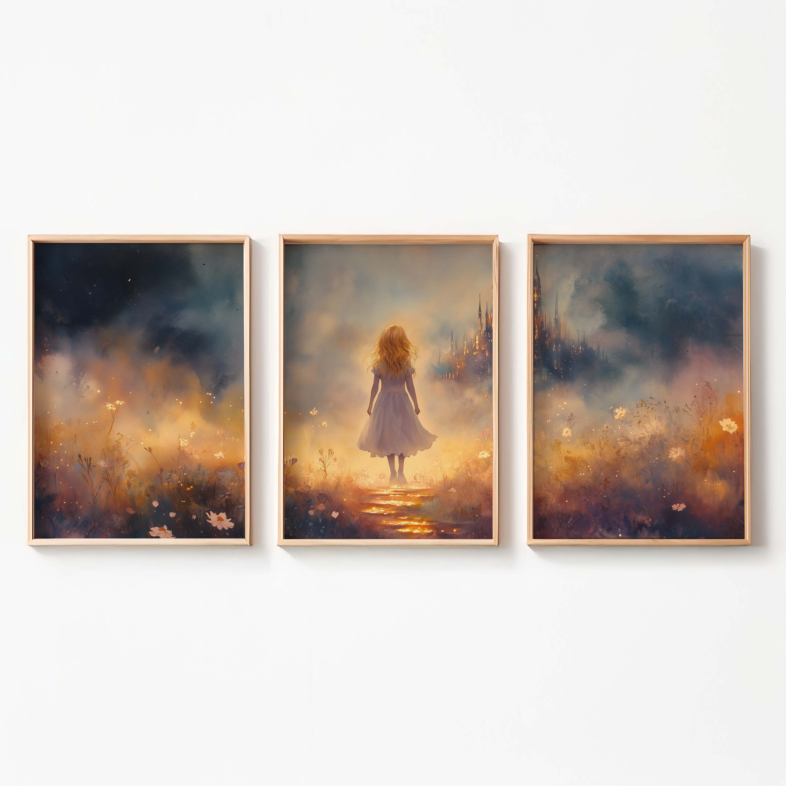 Terug naar collectie Posters Dromerig Meisje bij Betoverend Kasteel – Sprookjesachtig Kunstwerk