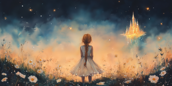 Dromerig Meisje bij Betoverend Luchtkasteel