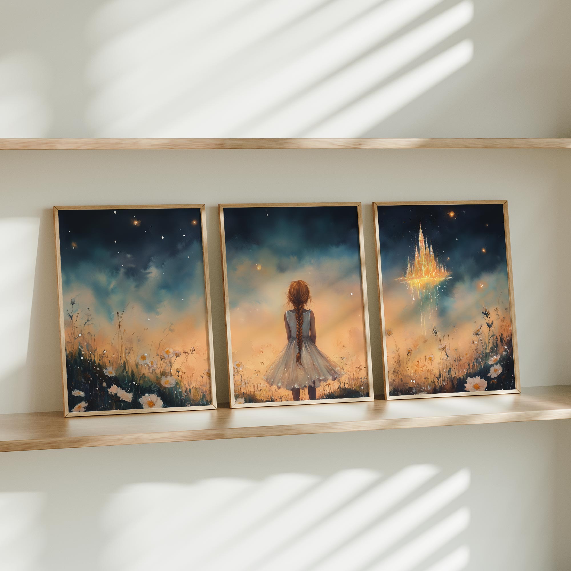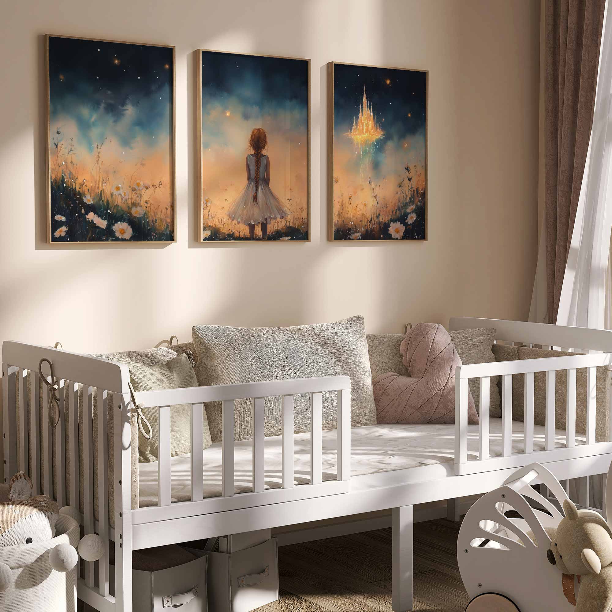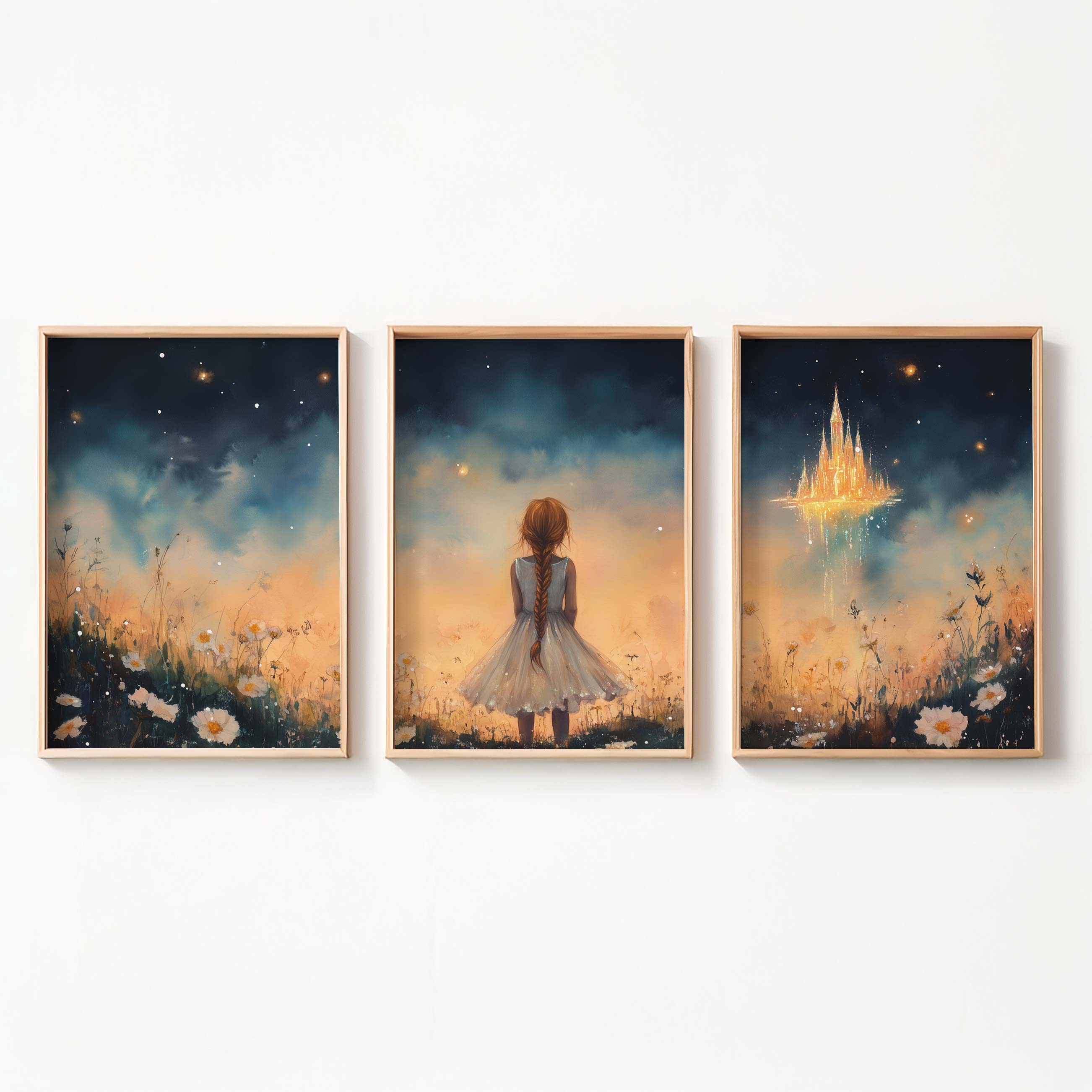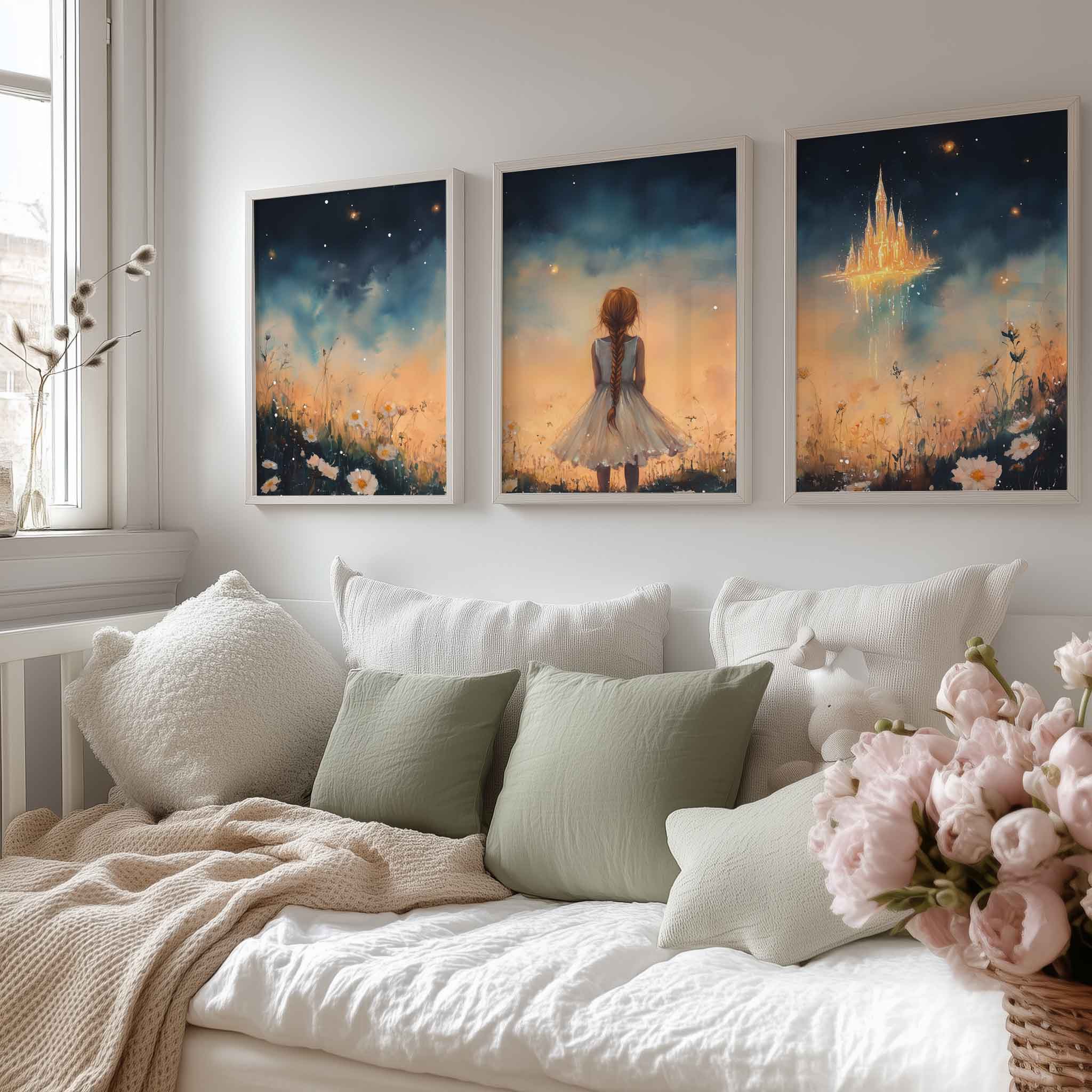 Terug naar collectie Posters Dromerig Meisje bij Betoverend Luchtkasteel