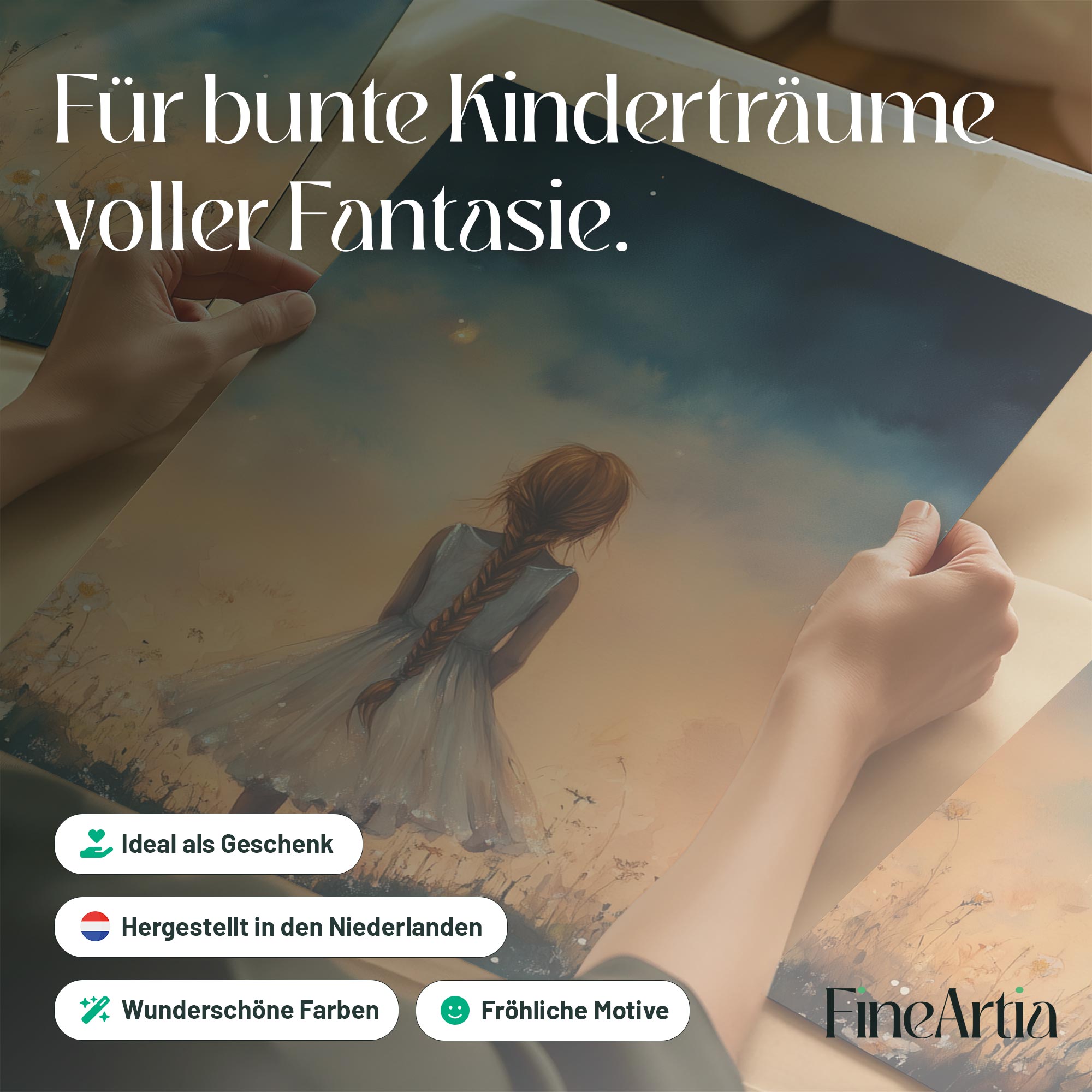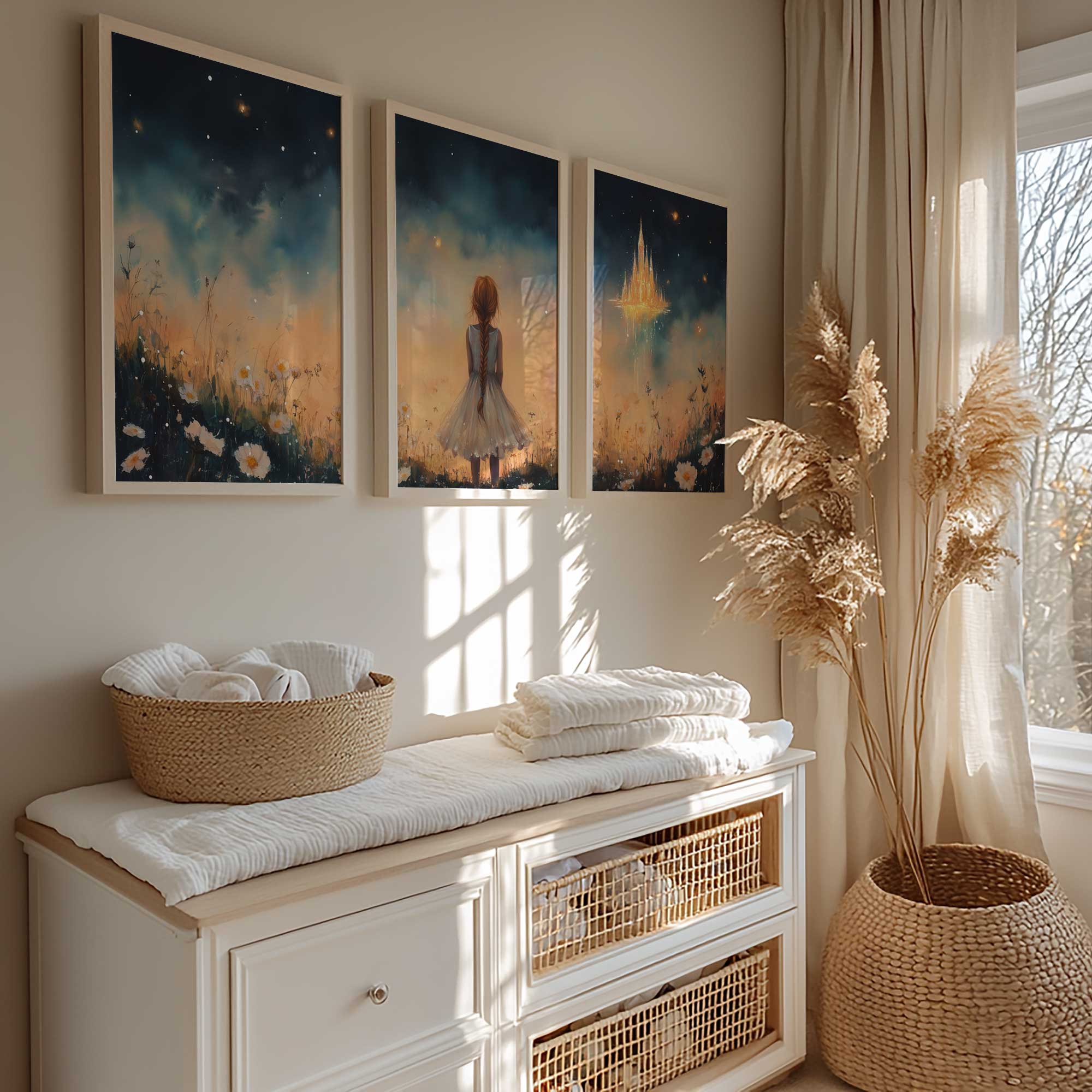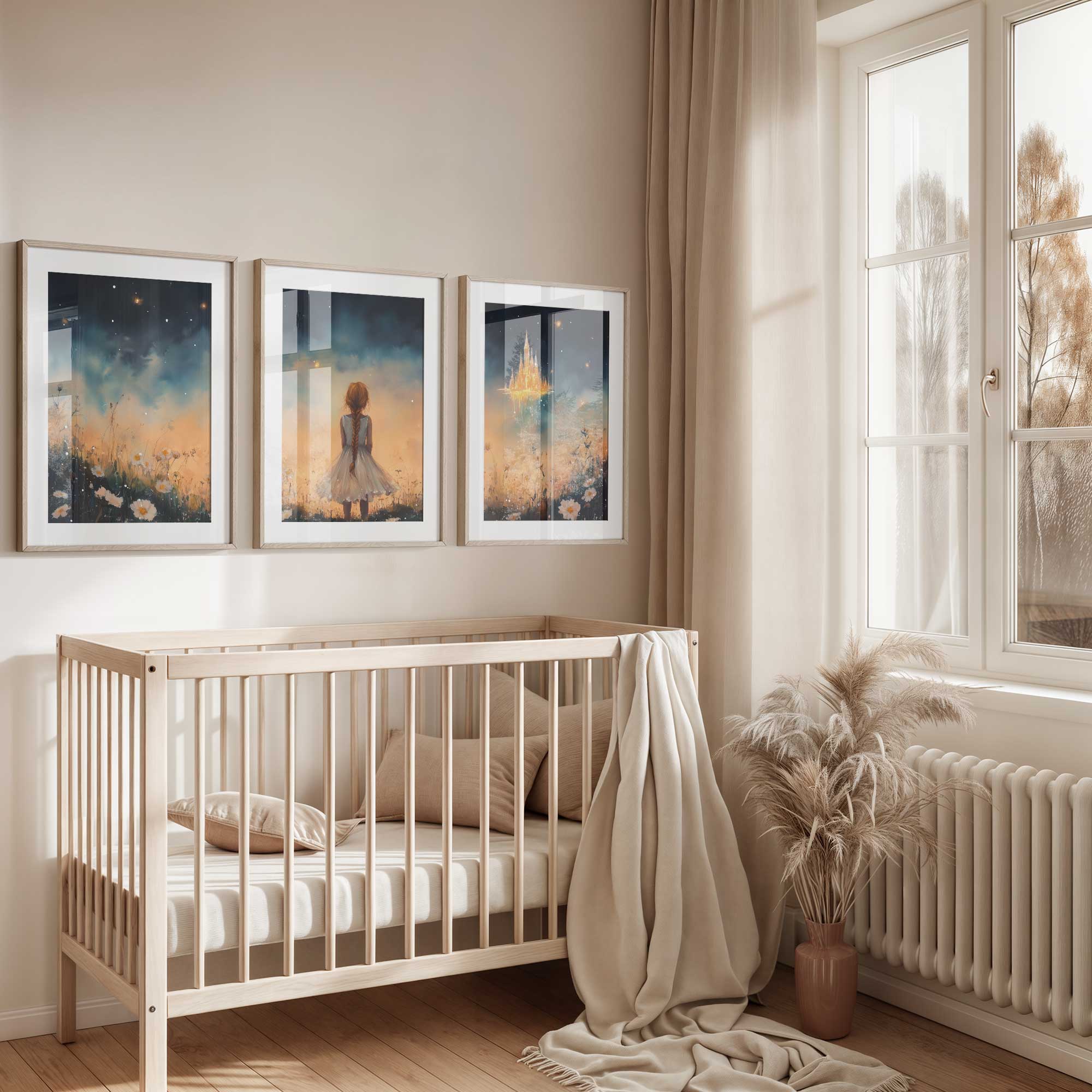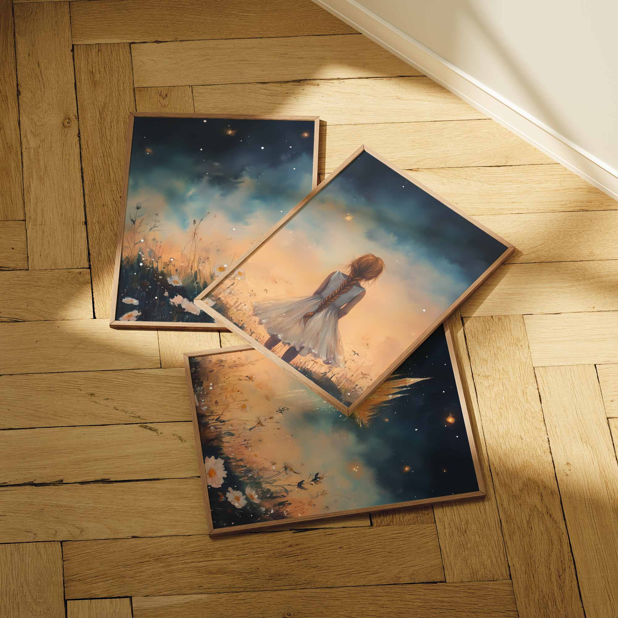 Terug naar collectie Posters Dromerig Meisje bij Betoverend Luchtkasteel