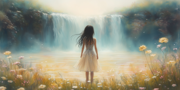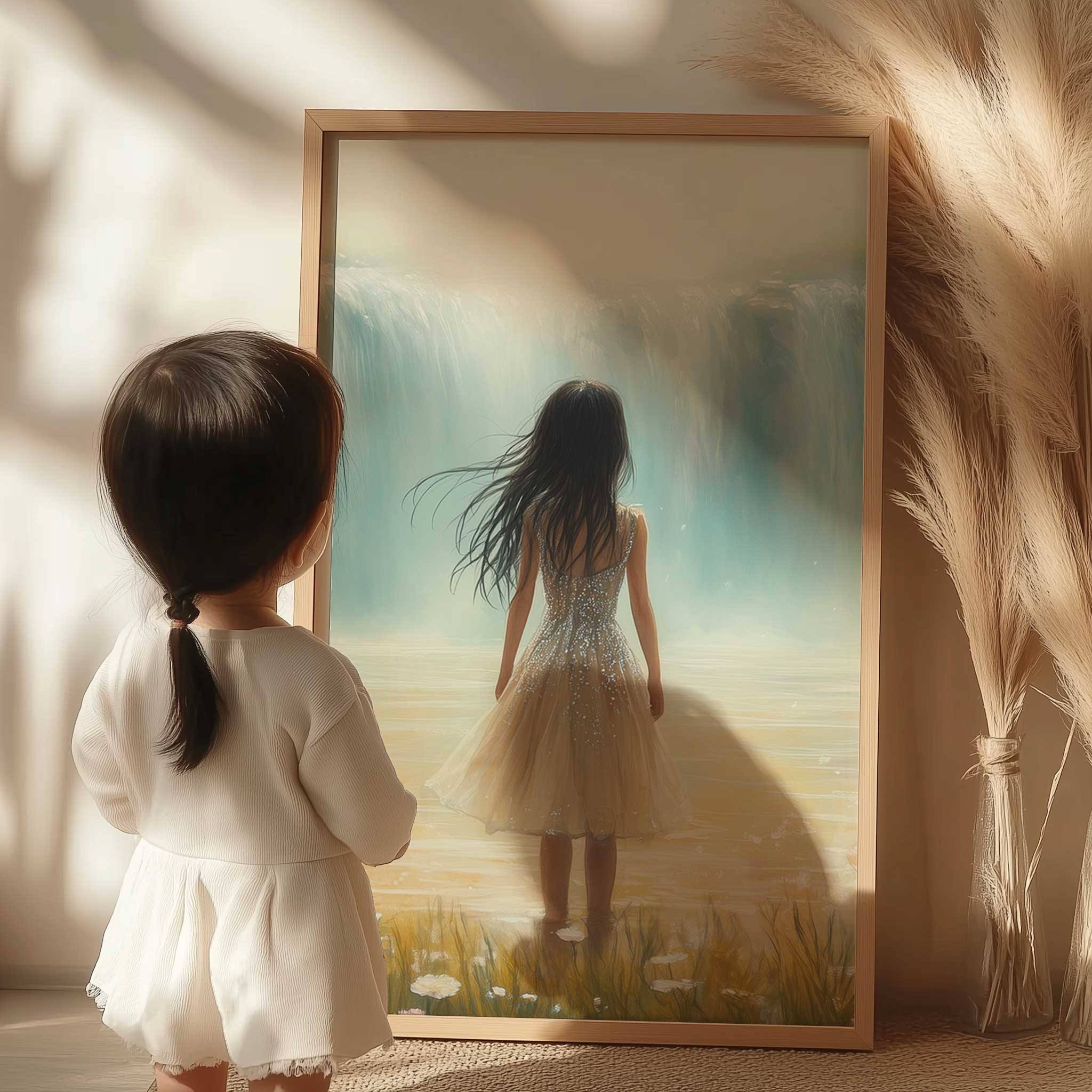 Terug naar collectie Posters Dromerig Meisje bij Betoverende Waterval