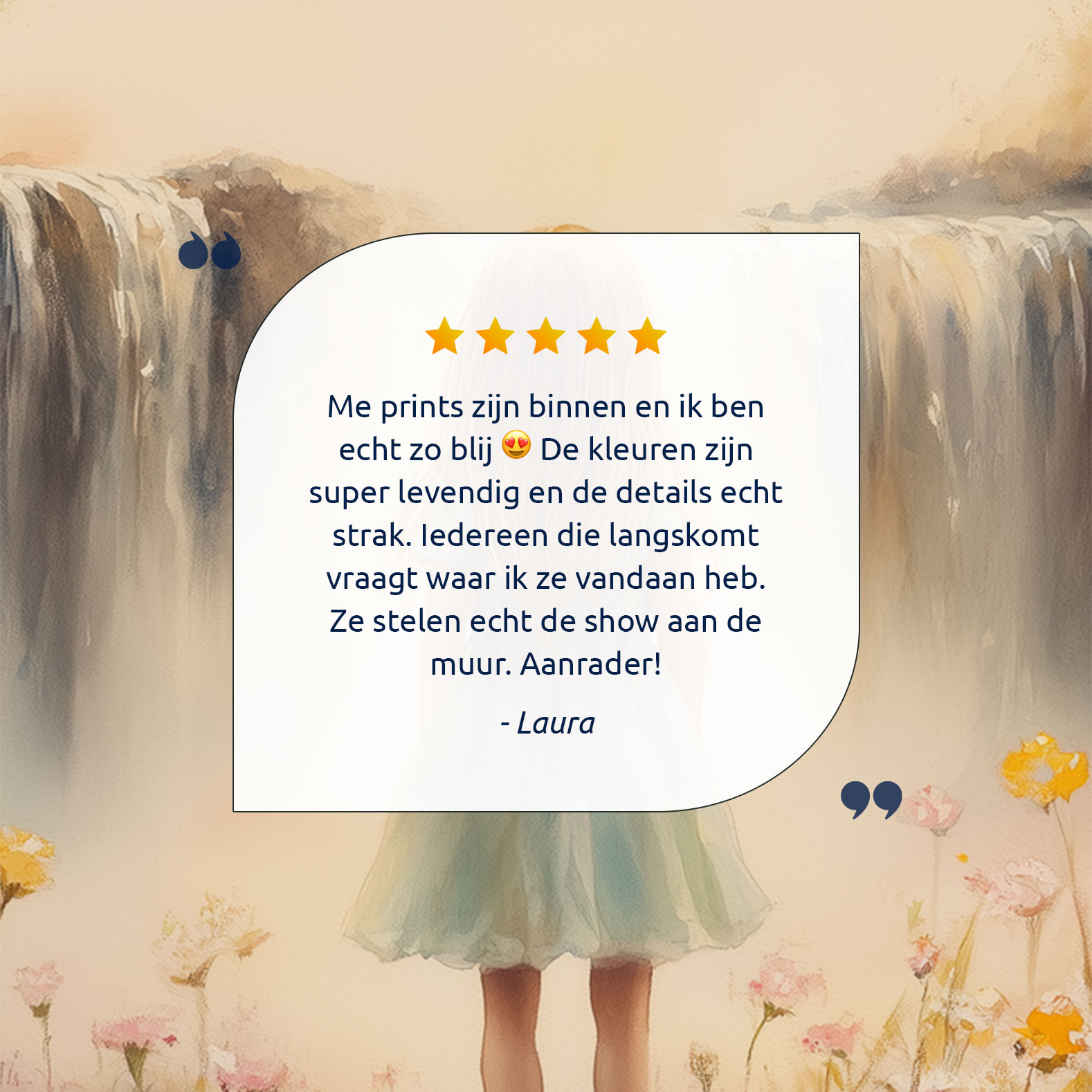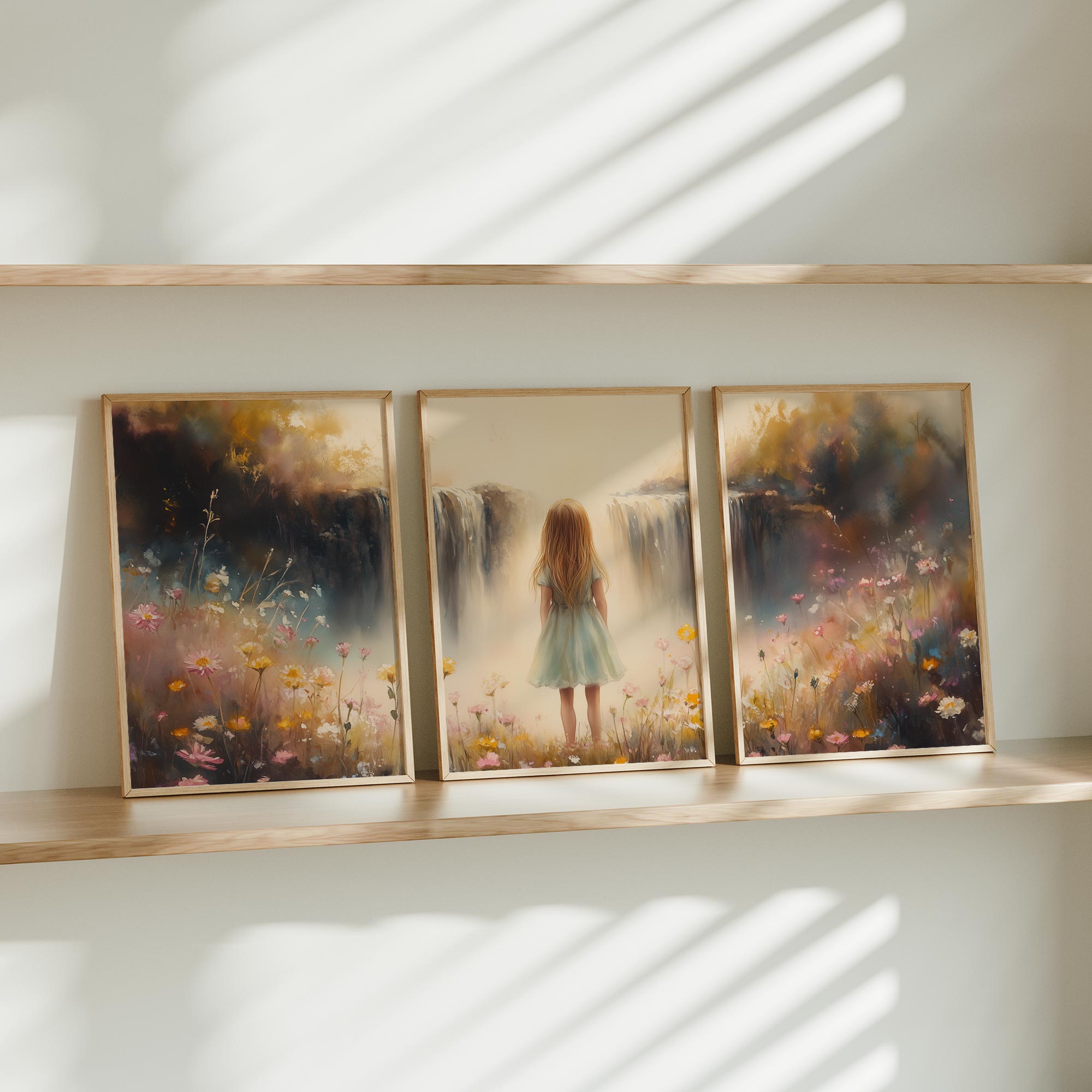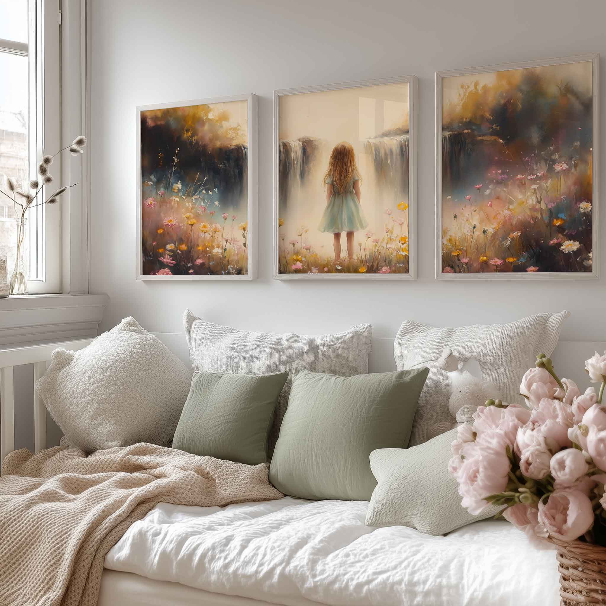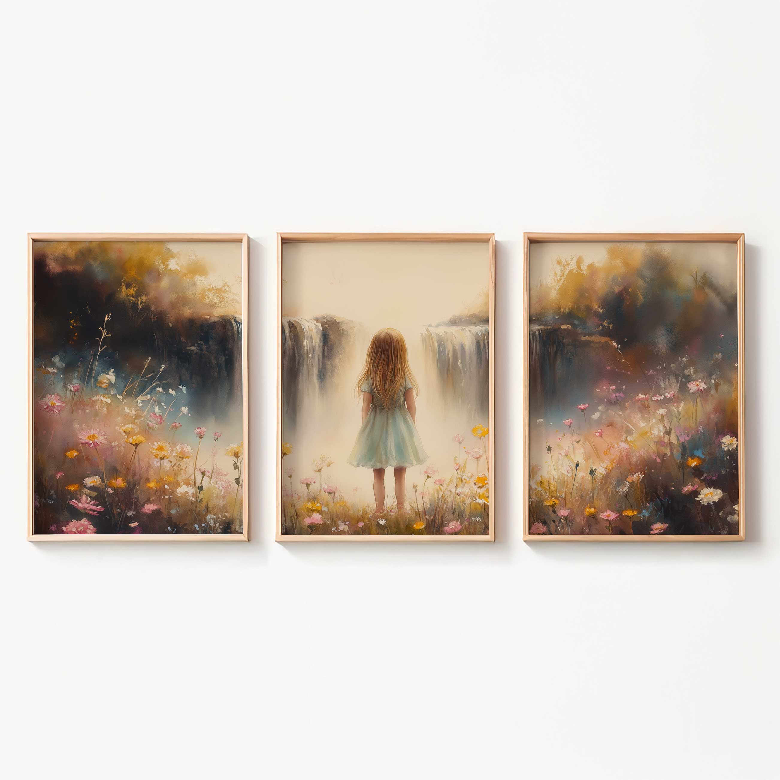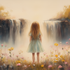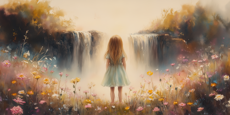 Dromerig Meisje bij Bloemen en Waterval