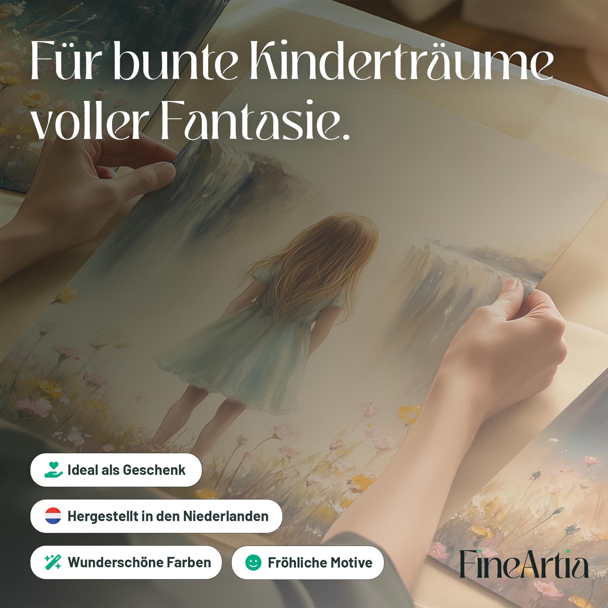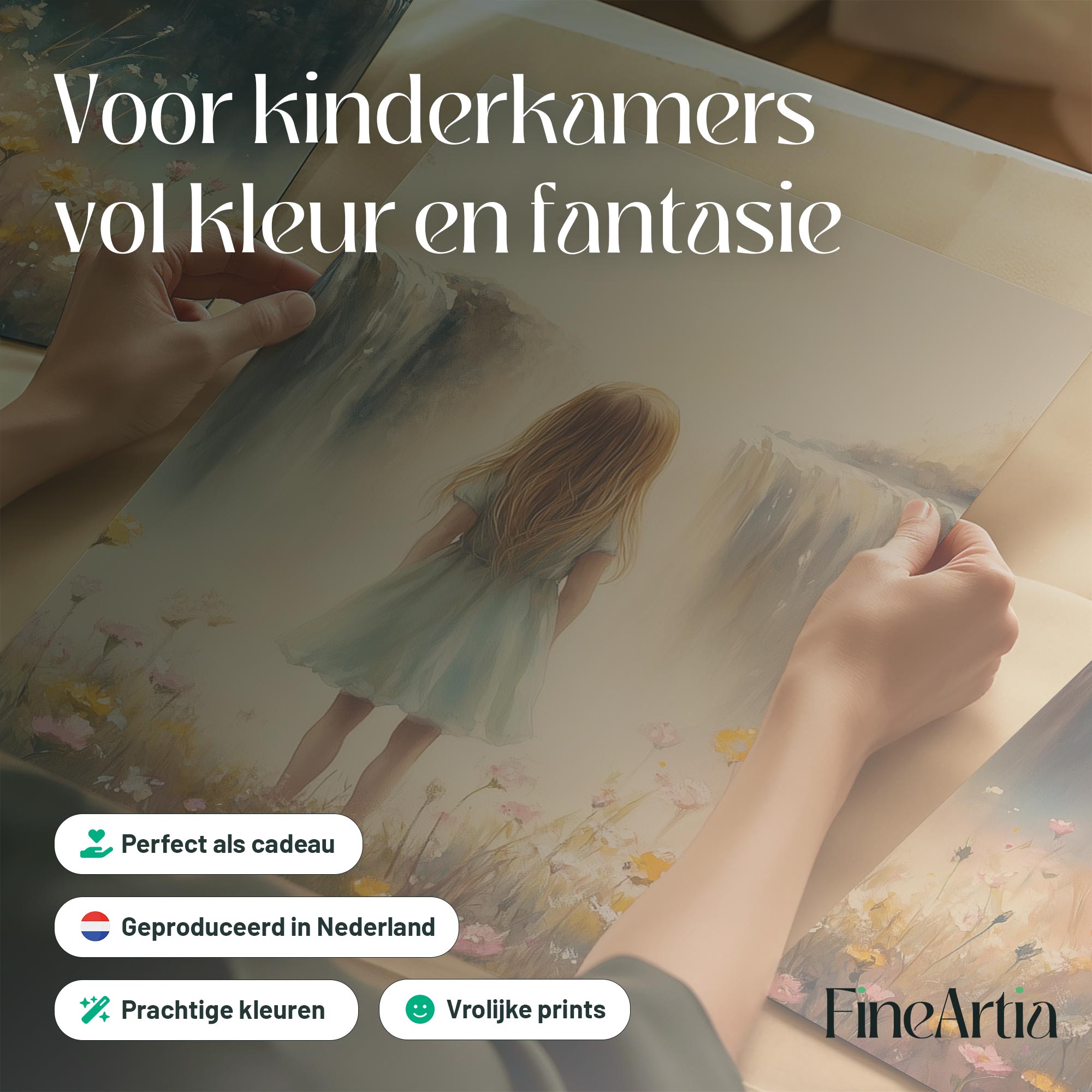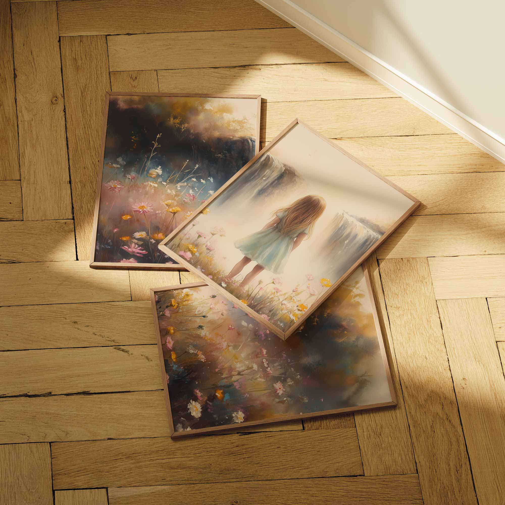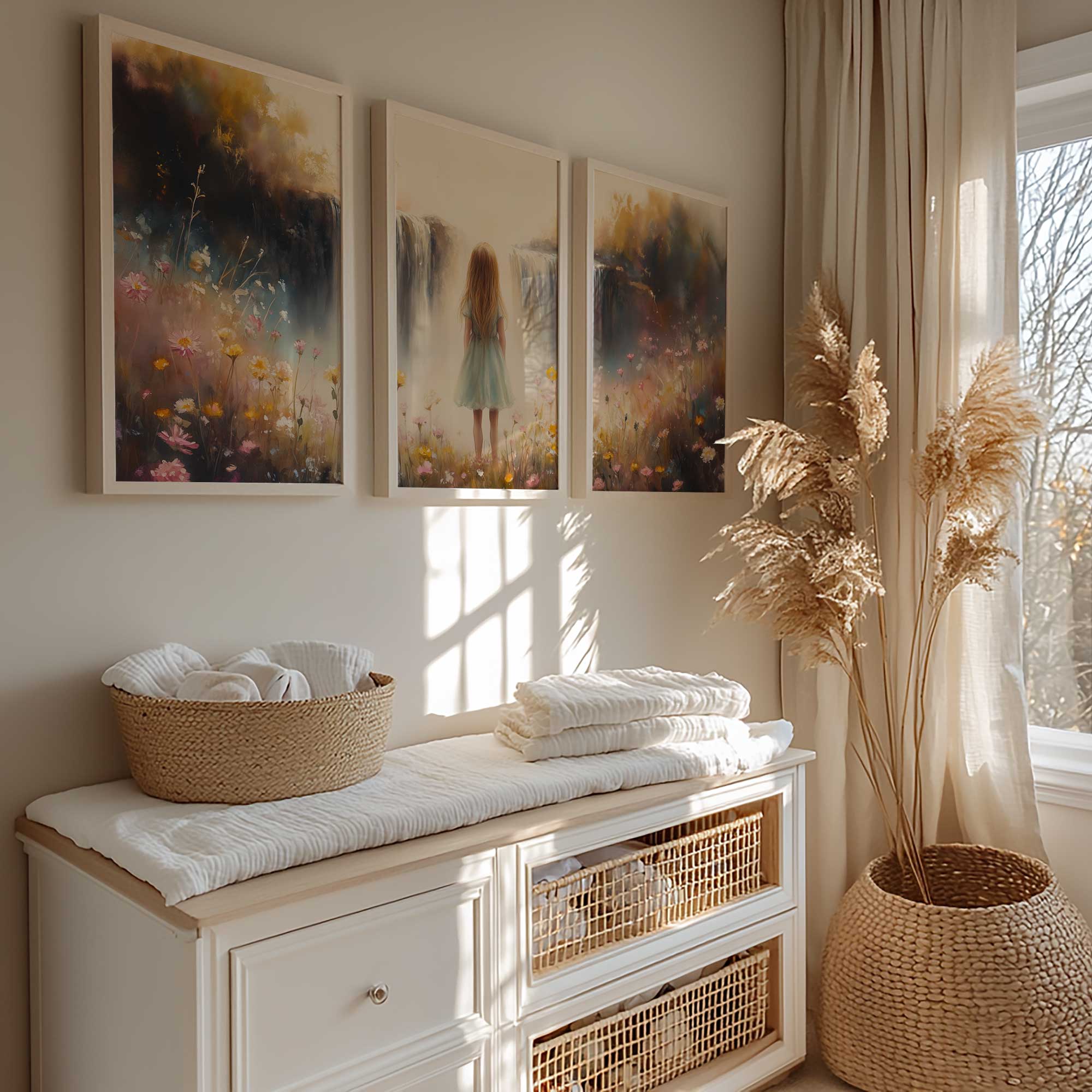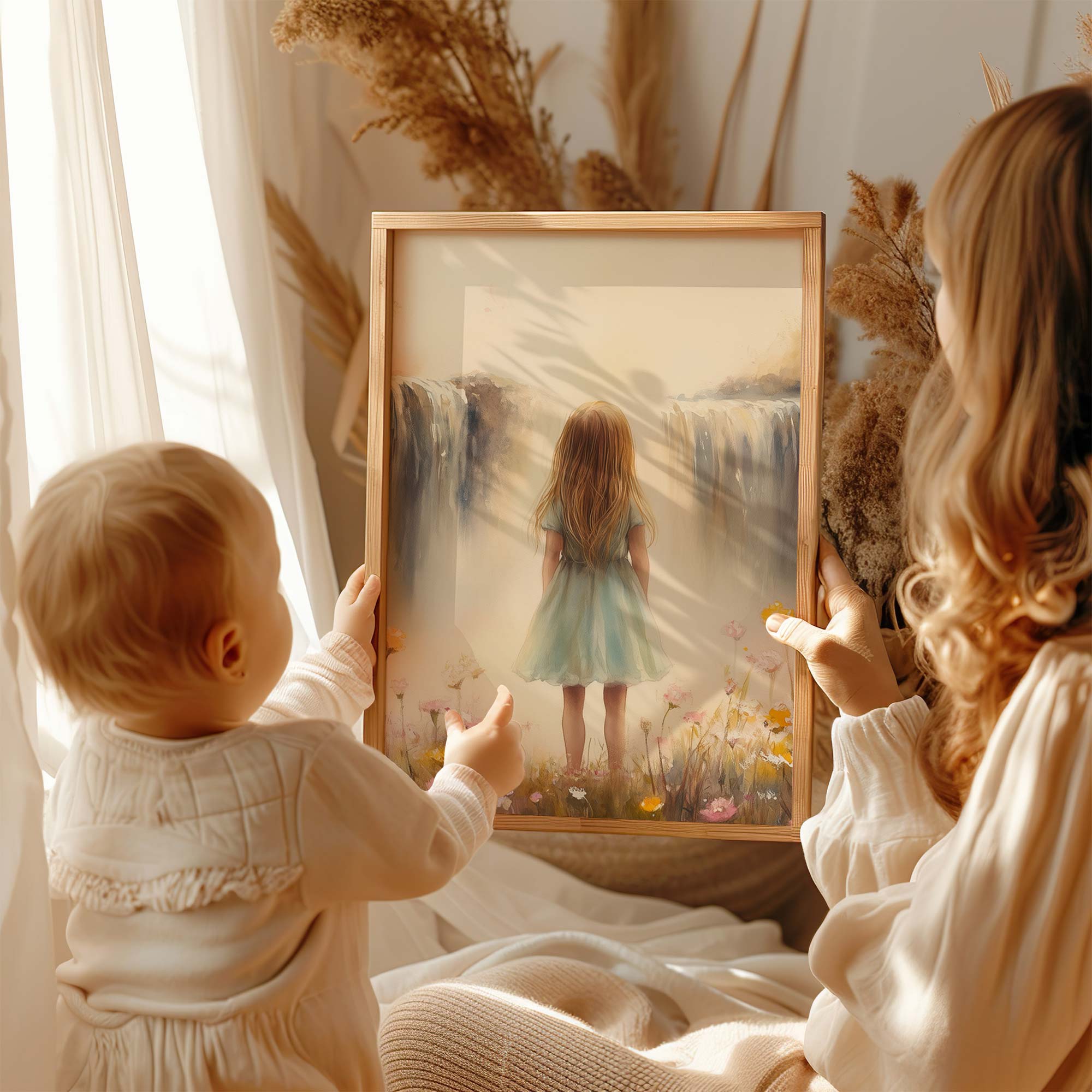 Dromerig Meisje bij Bloemen en Waterval