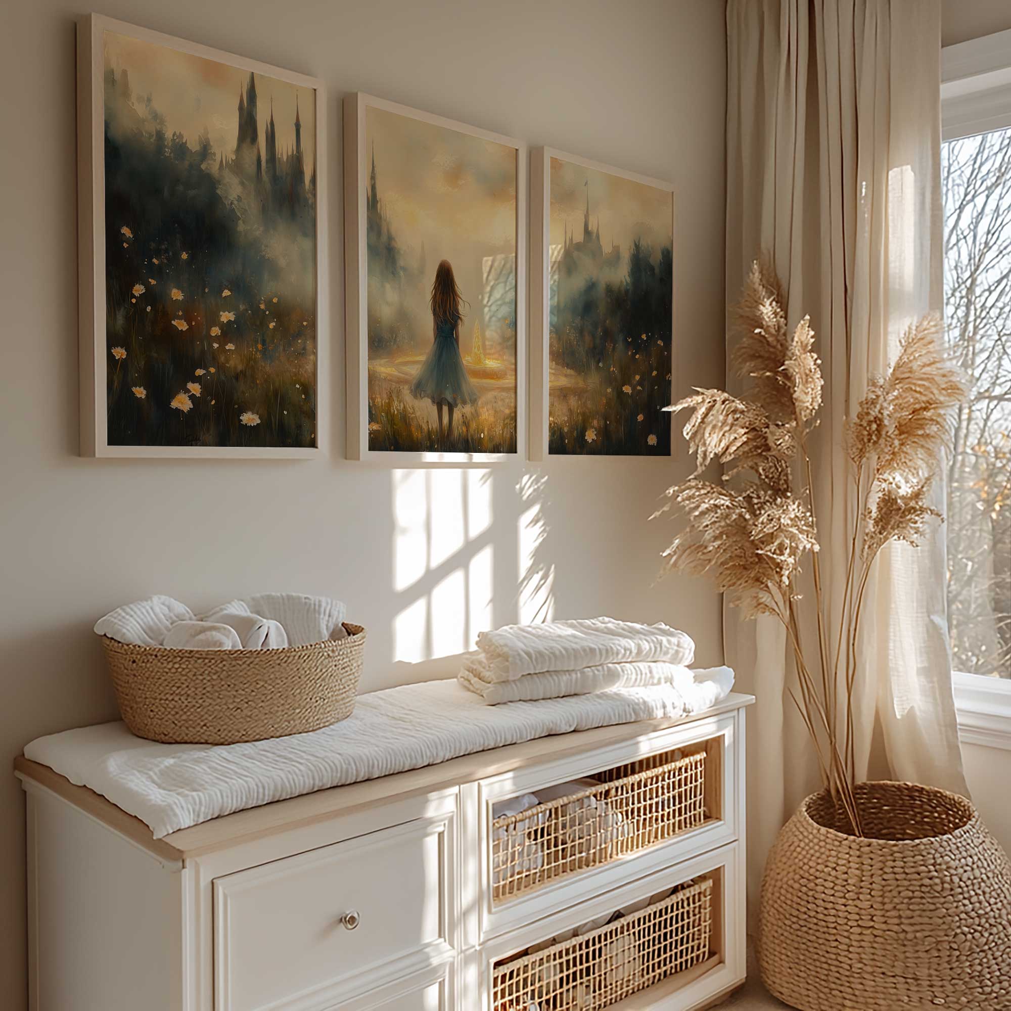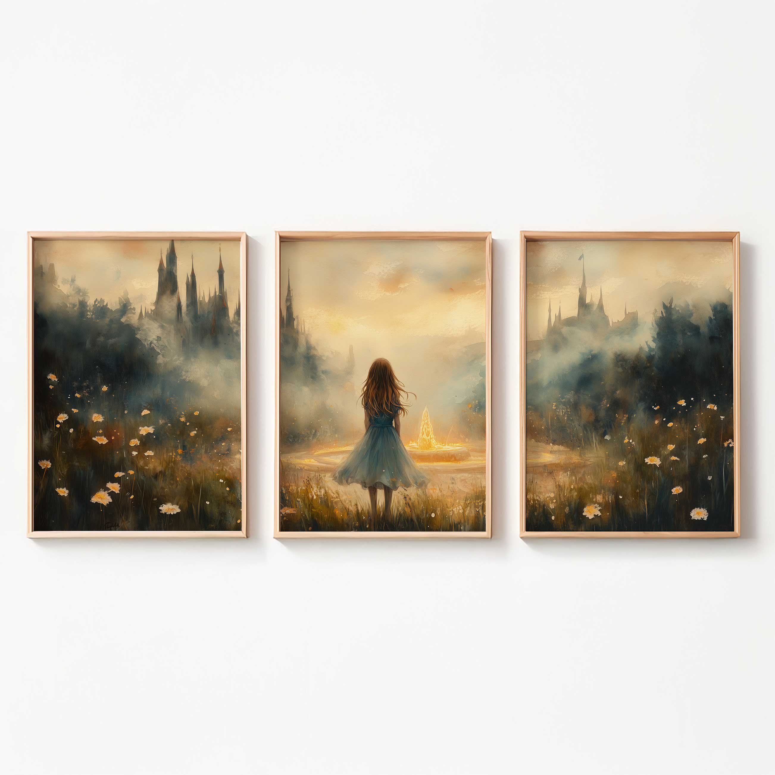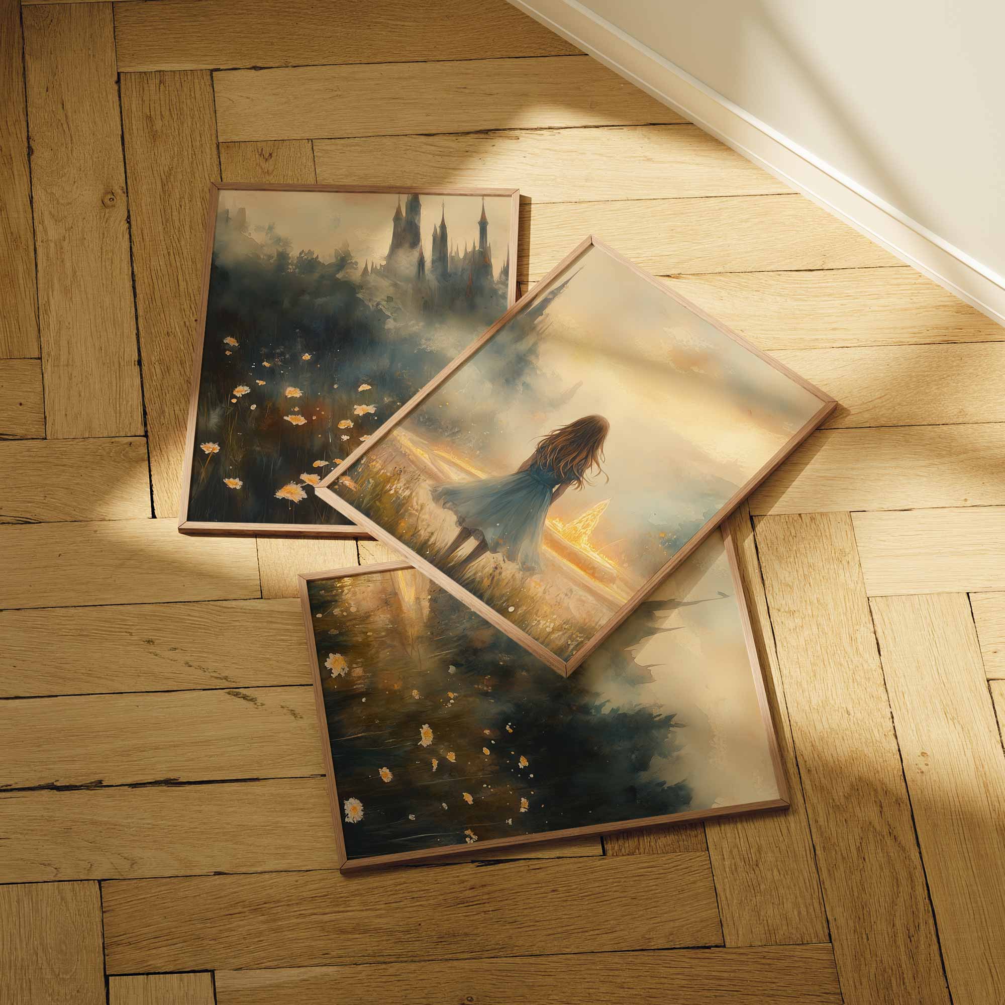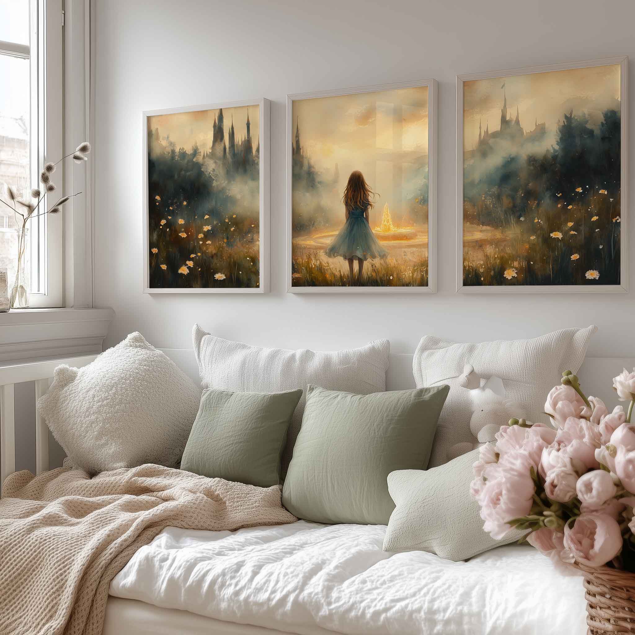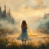 Terug naar collectie Posters Dromerig Meisje bij Fontein in Betoverend Landschap