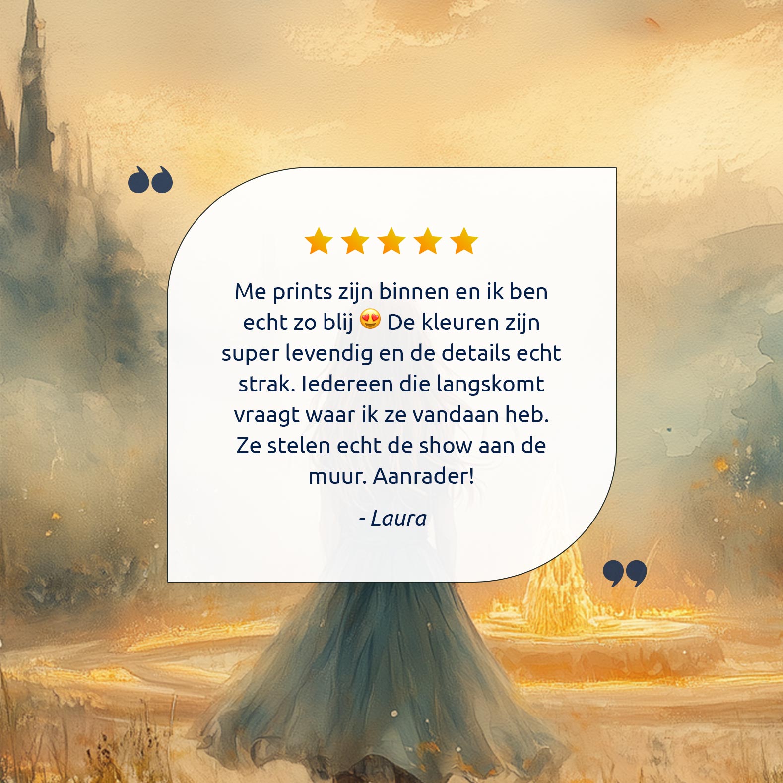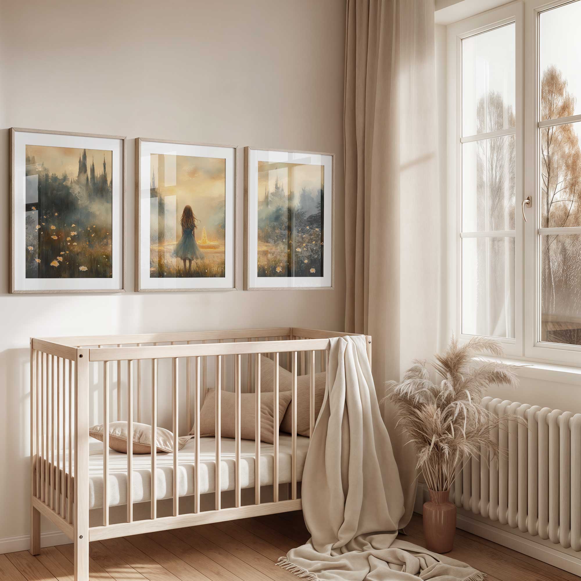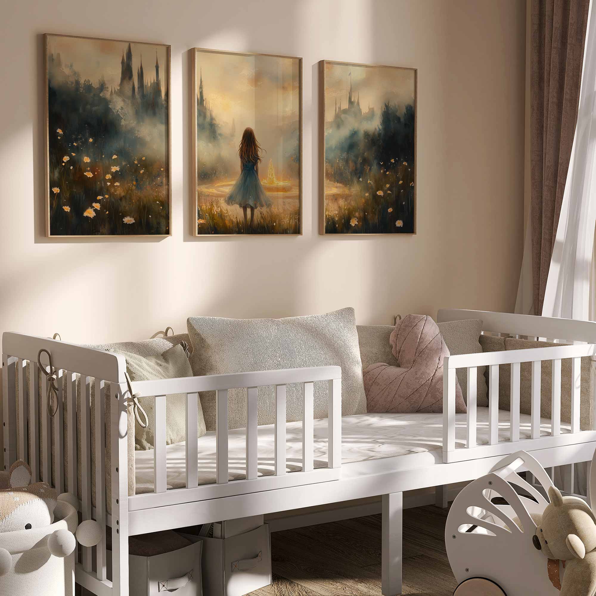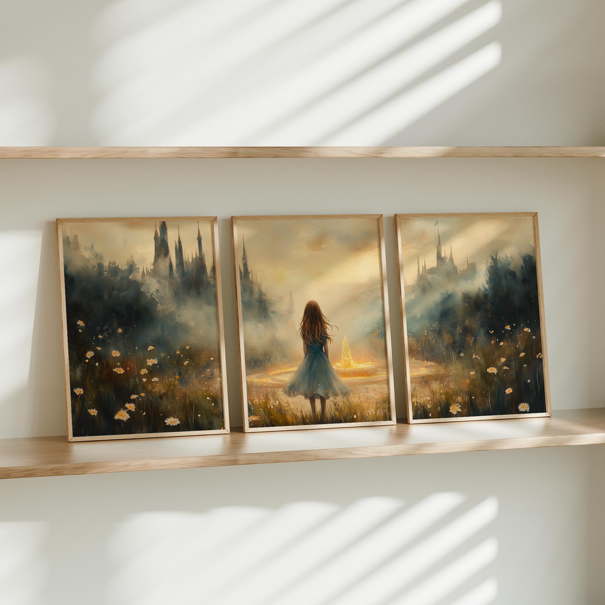 Terug naar collectie Posters Dromerig Meisje bij Fontein in Betoverend Landschap