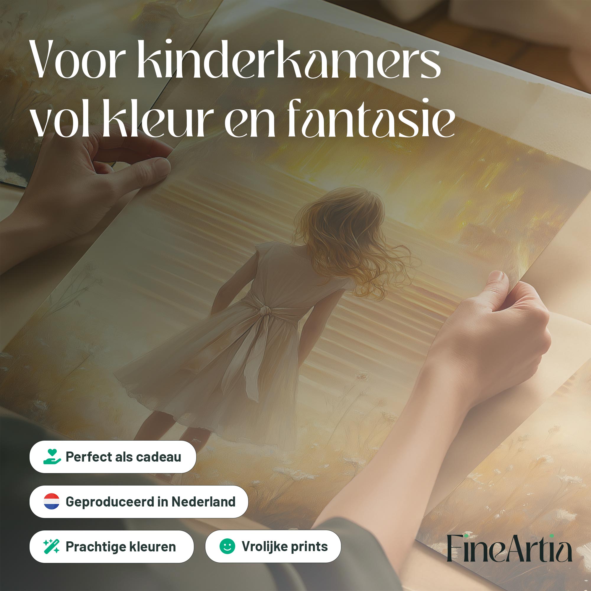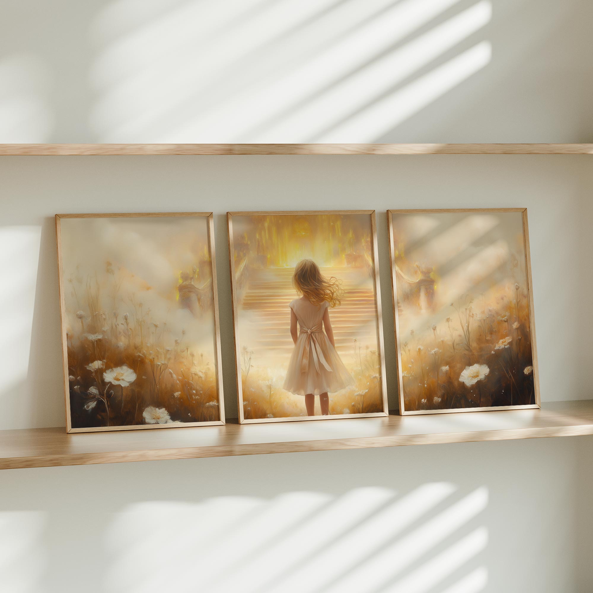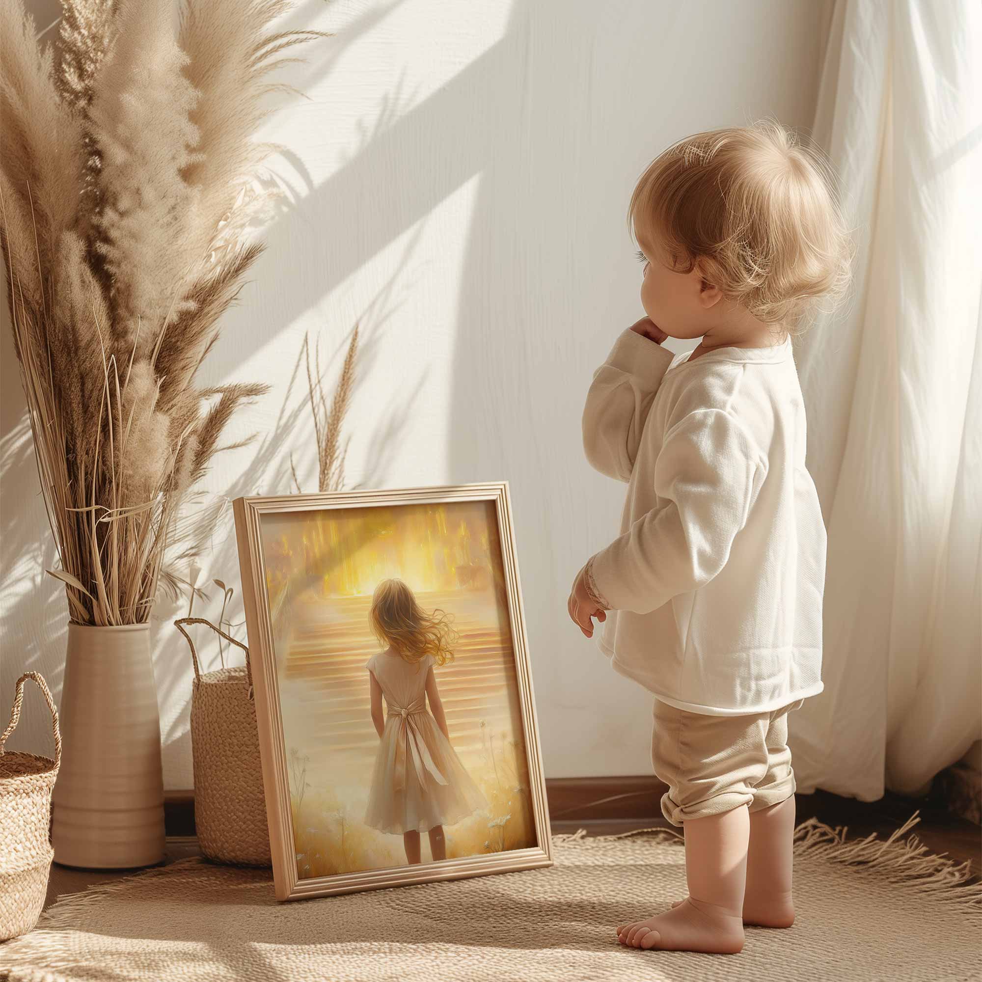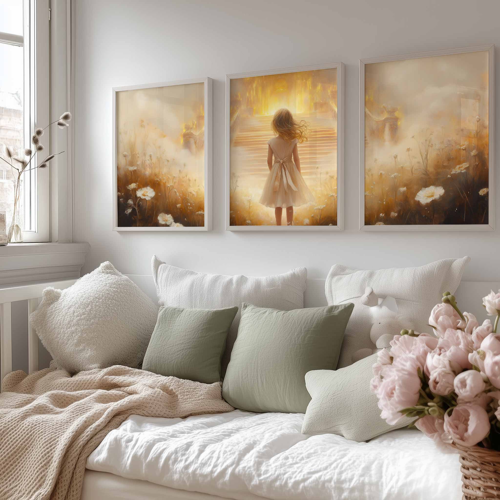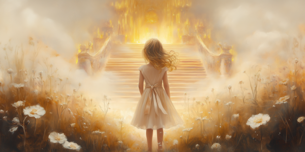 Dromerig Meisje bij Gouden Troon in Bloemenveld
