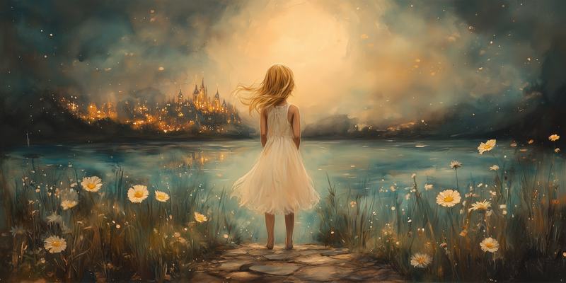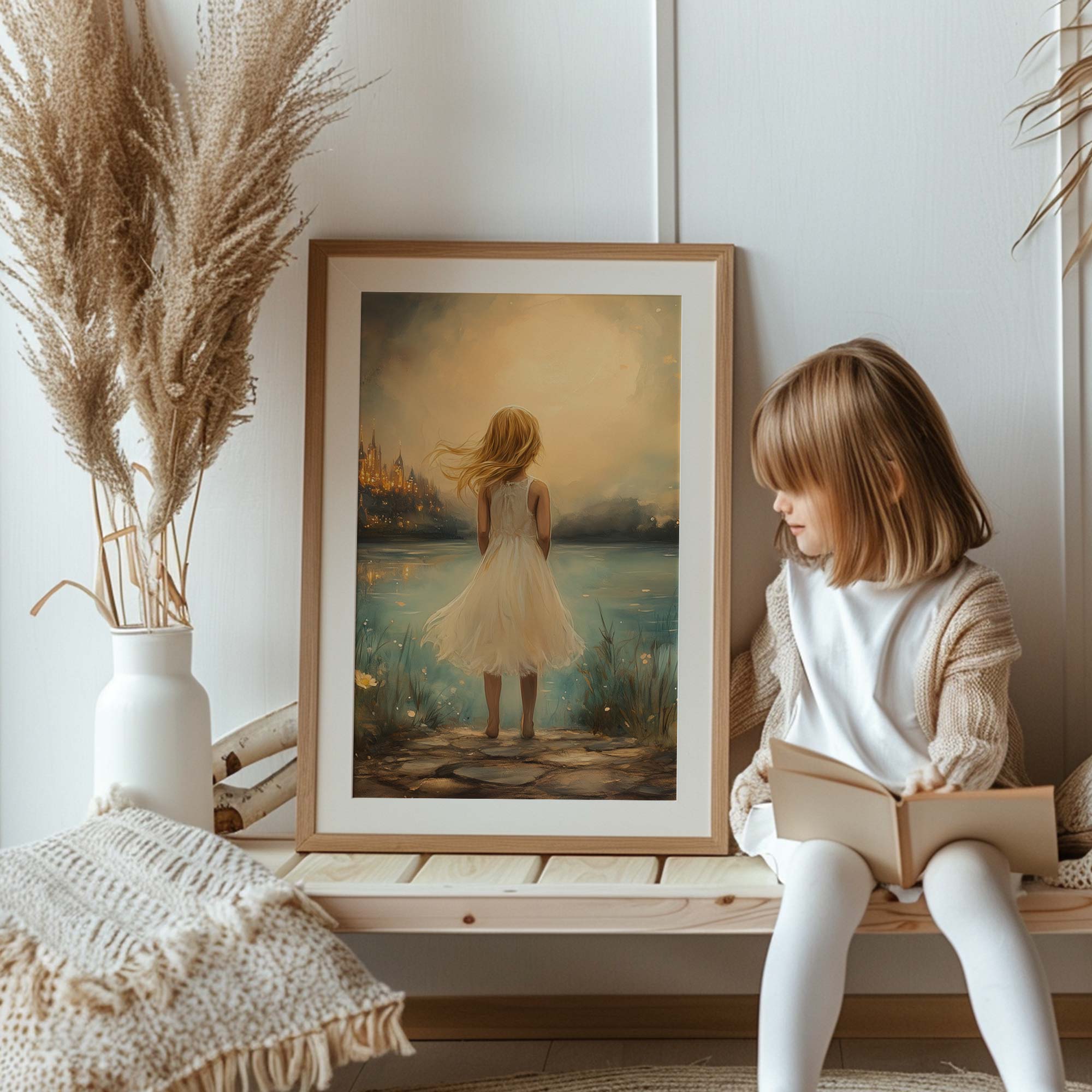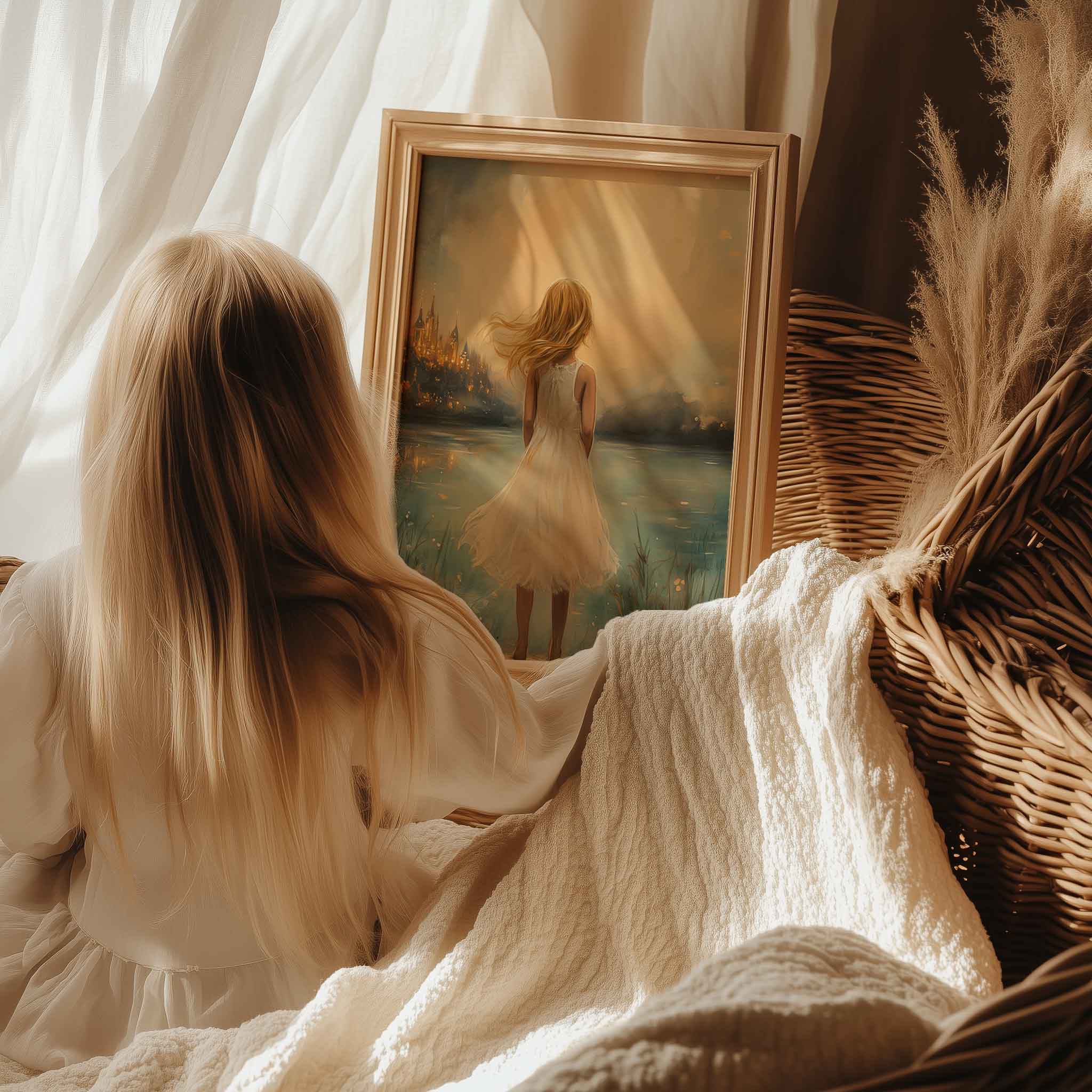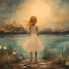 Dromerig Meisje bij het Meer – Pastel Schilderij