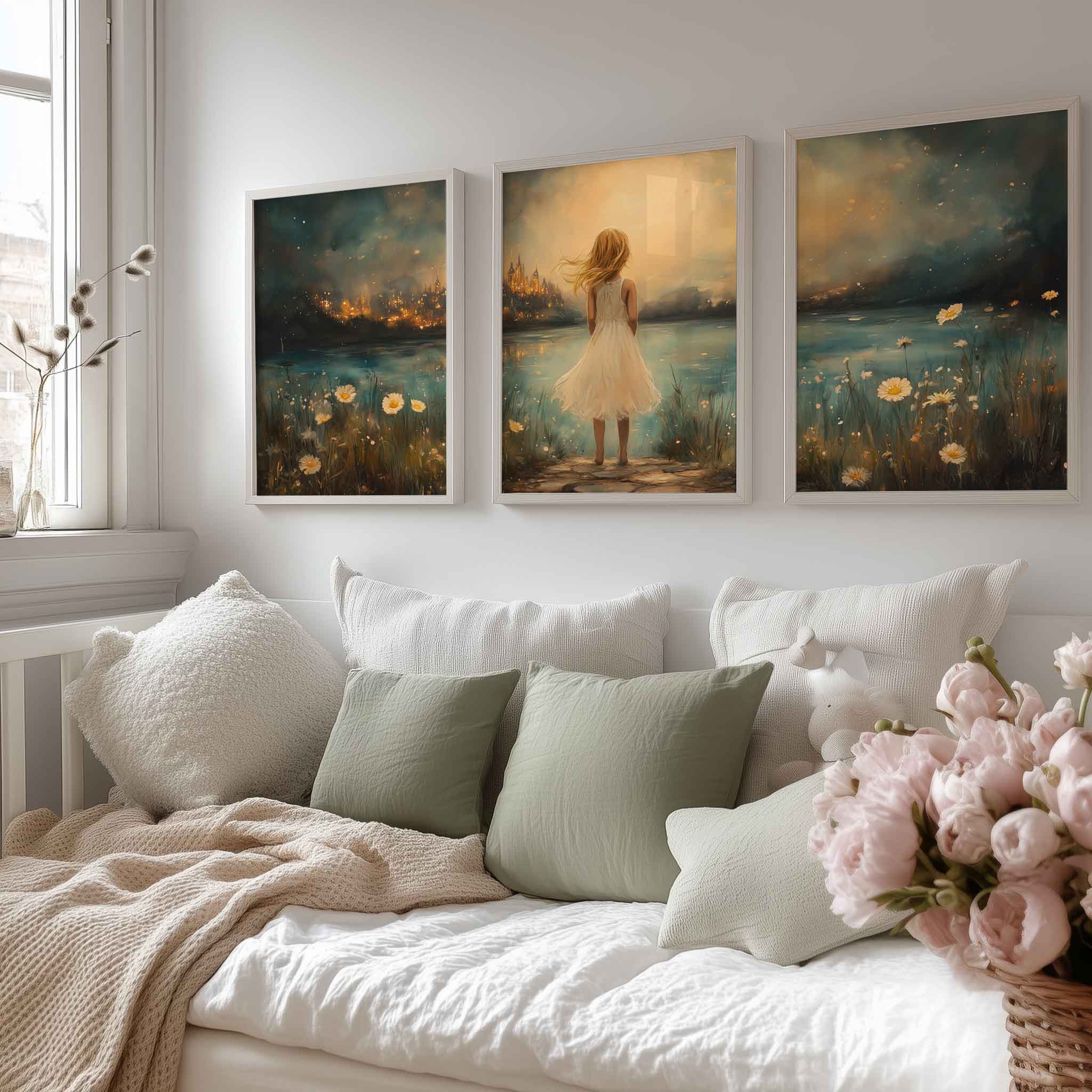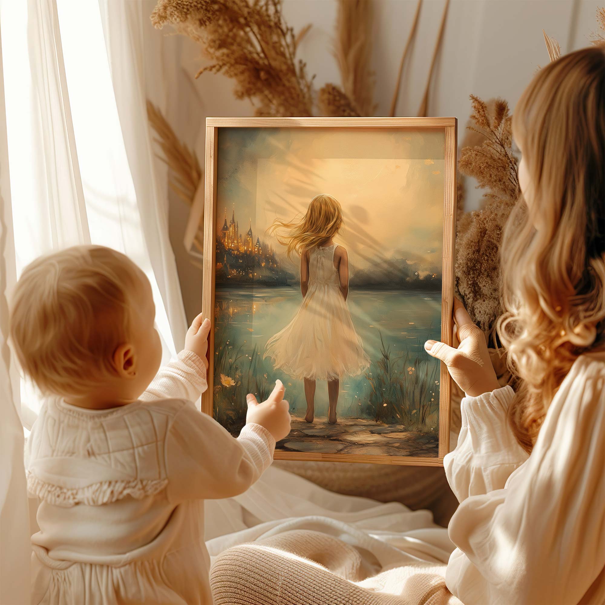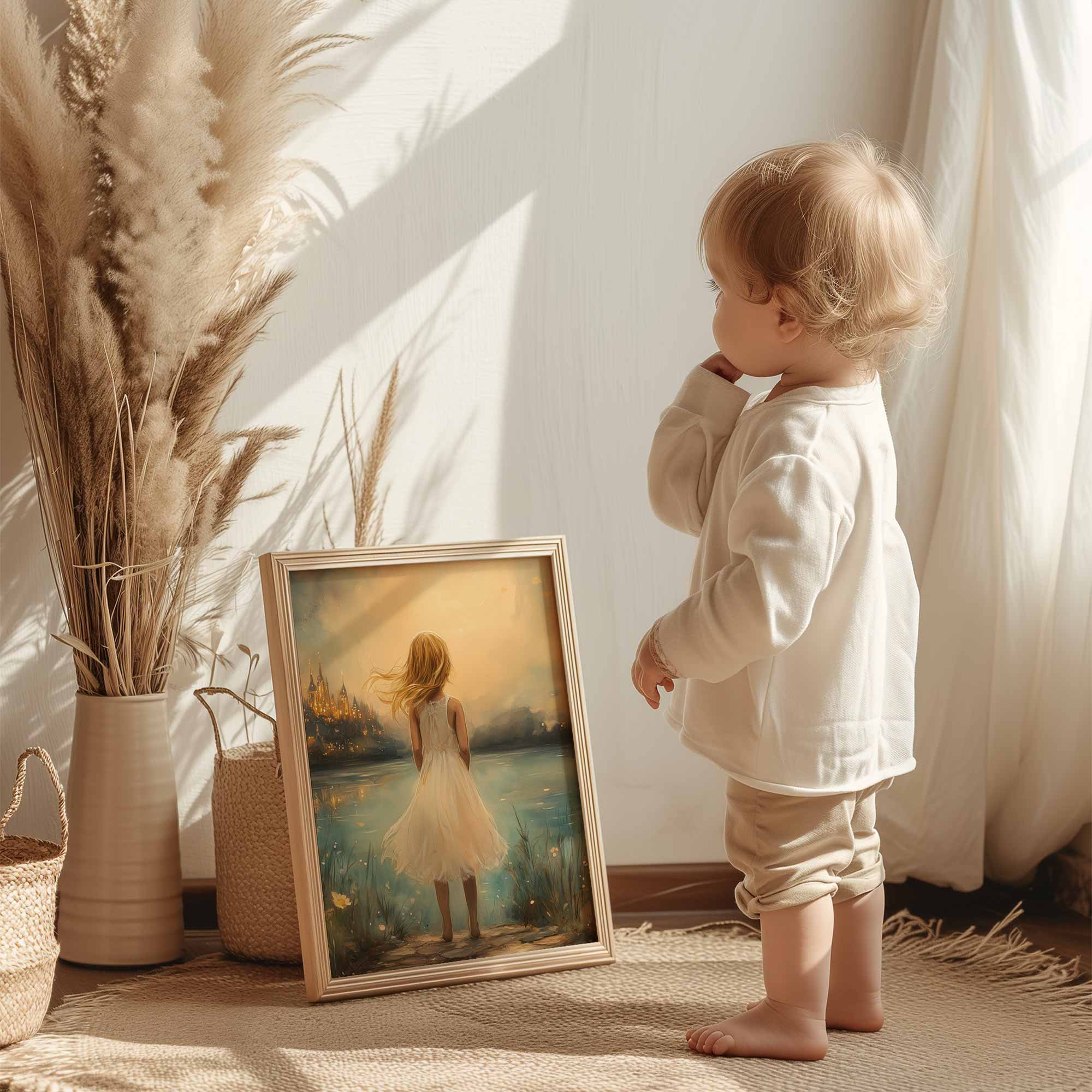 Dromerig Meisje bij het Meer – Pastel Schilderij