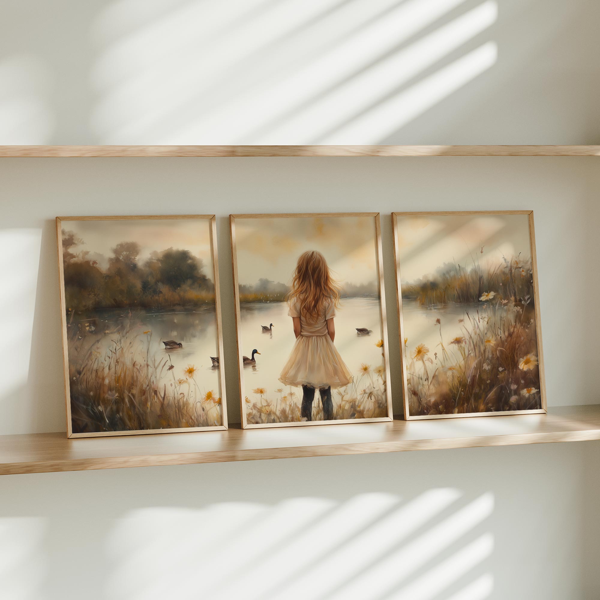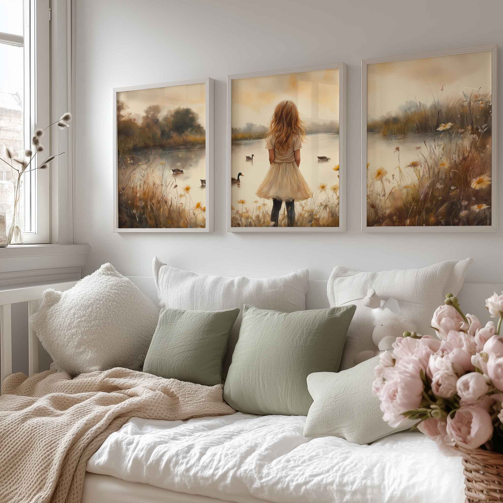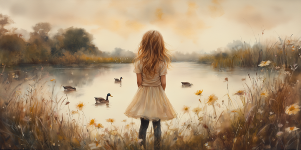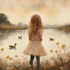 Dromerig Meisje bij het Meer – Tranquilliteit in Pastel