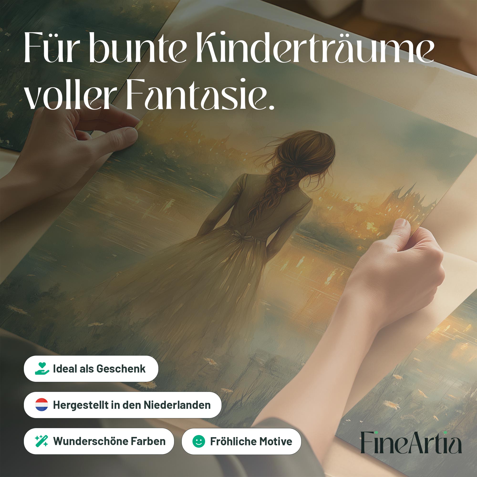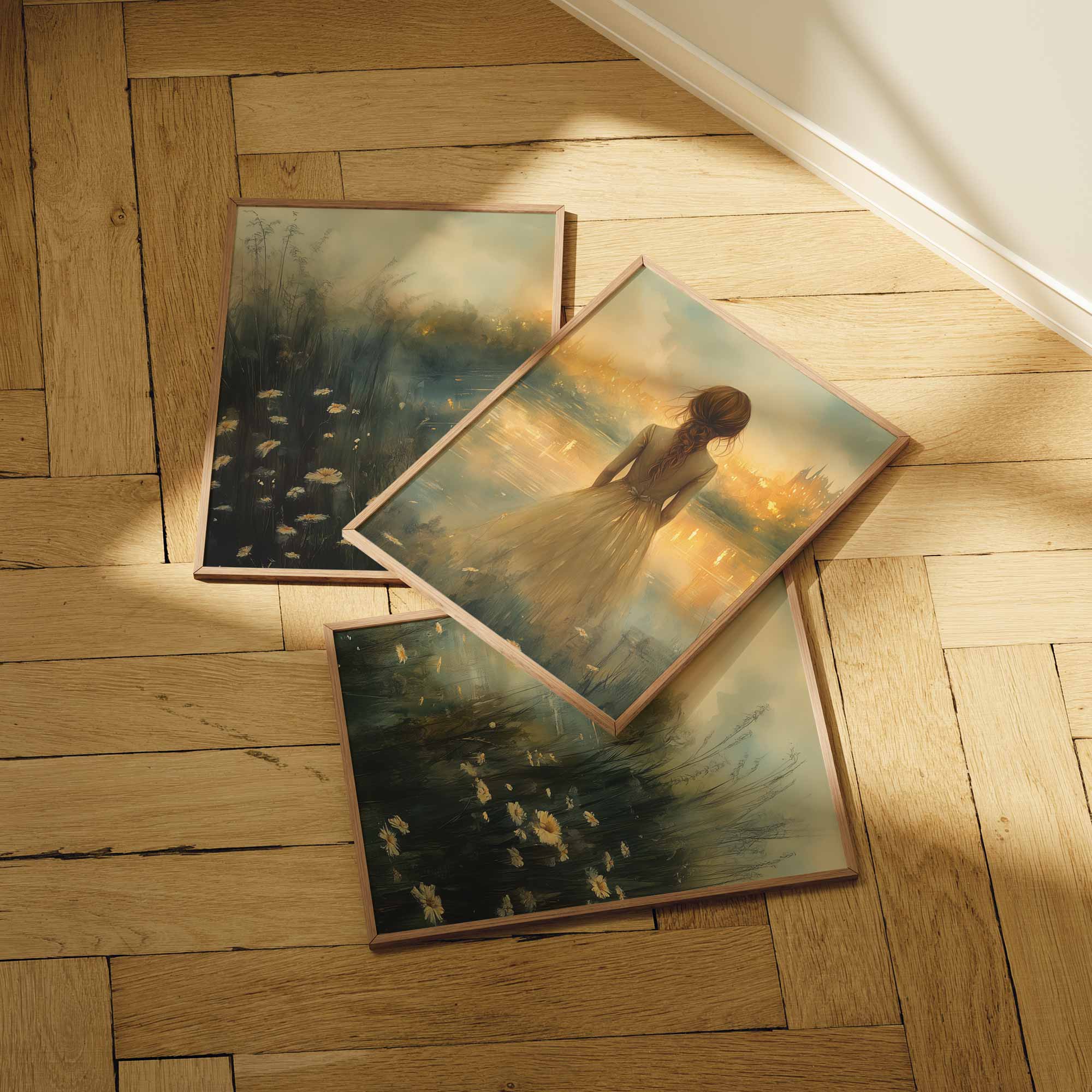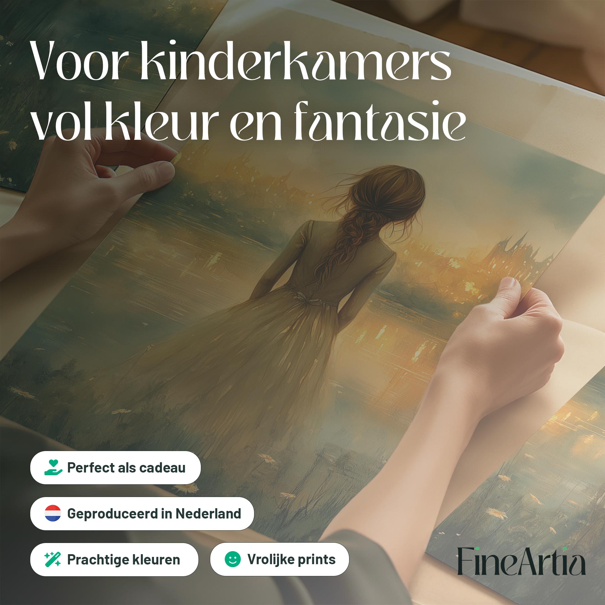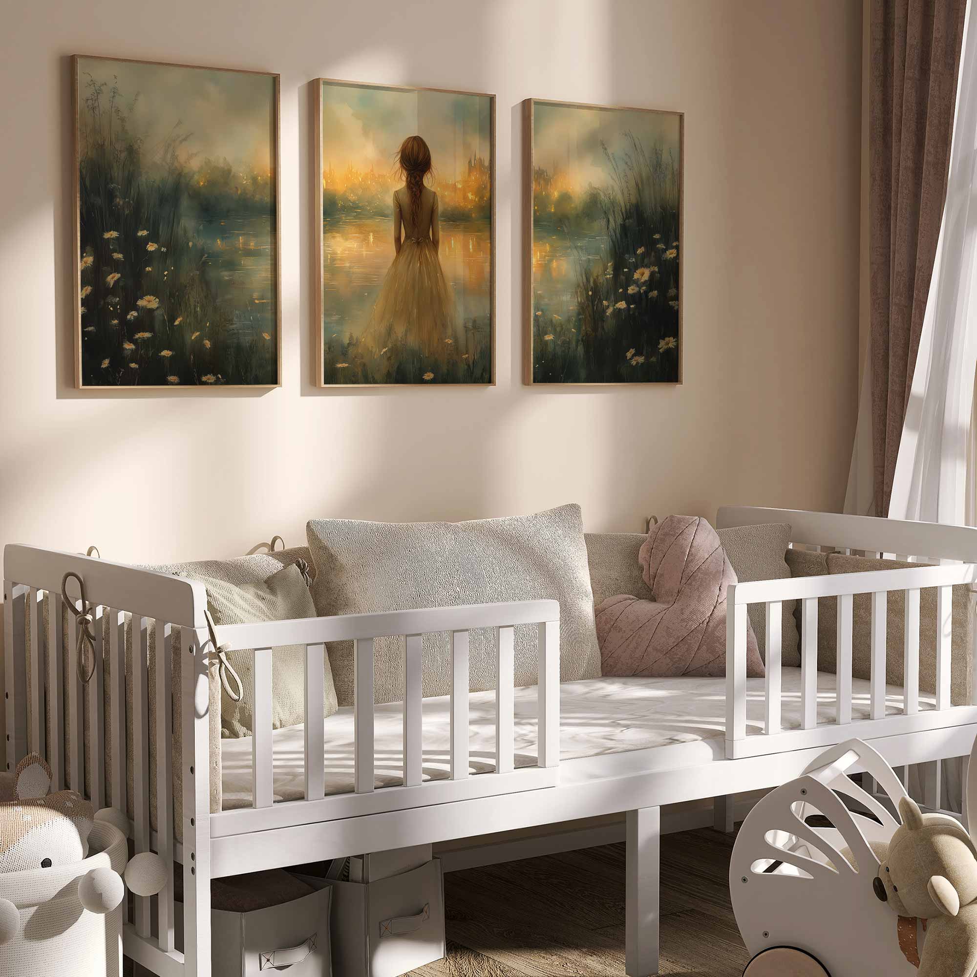 Dromerig Meisje bij het Water – Pastel Groen en Geel