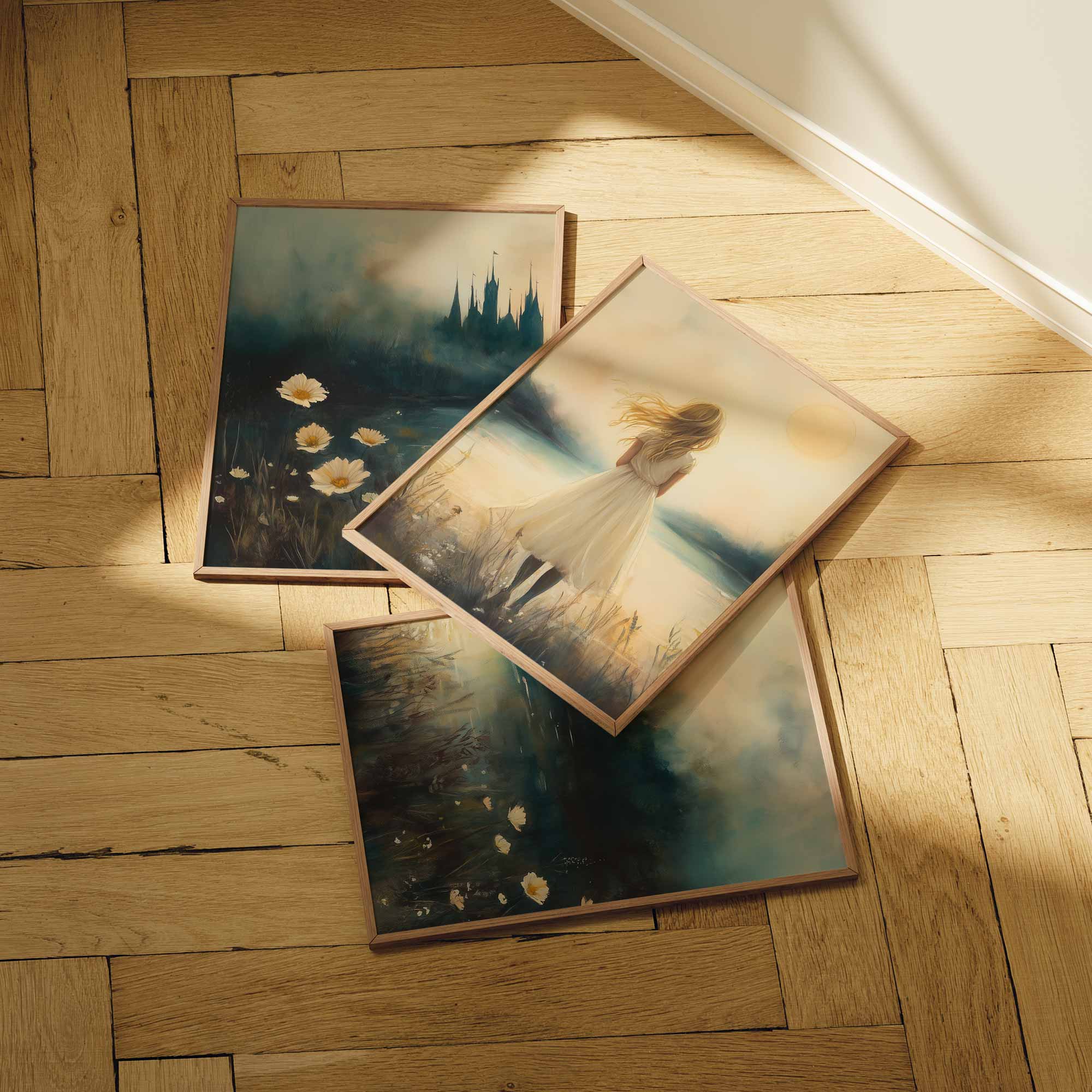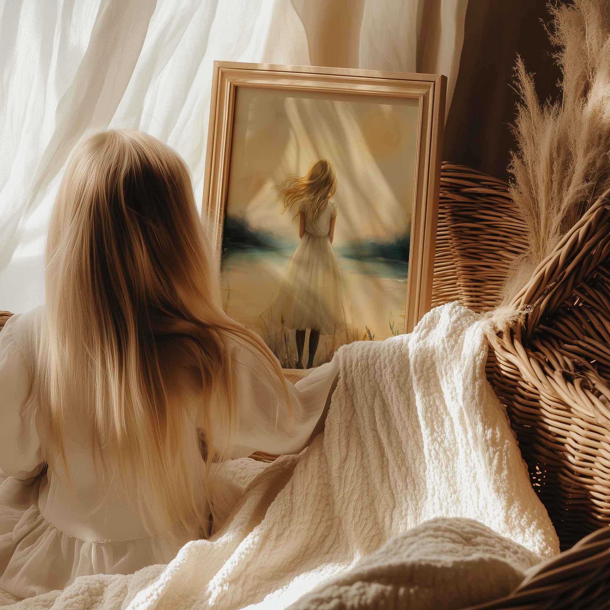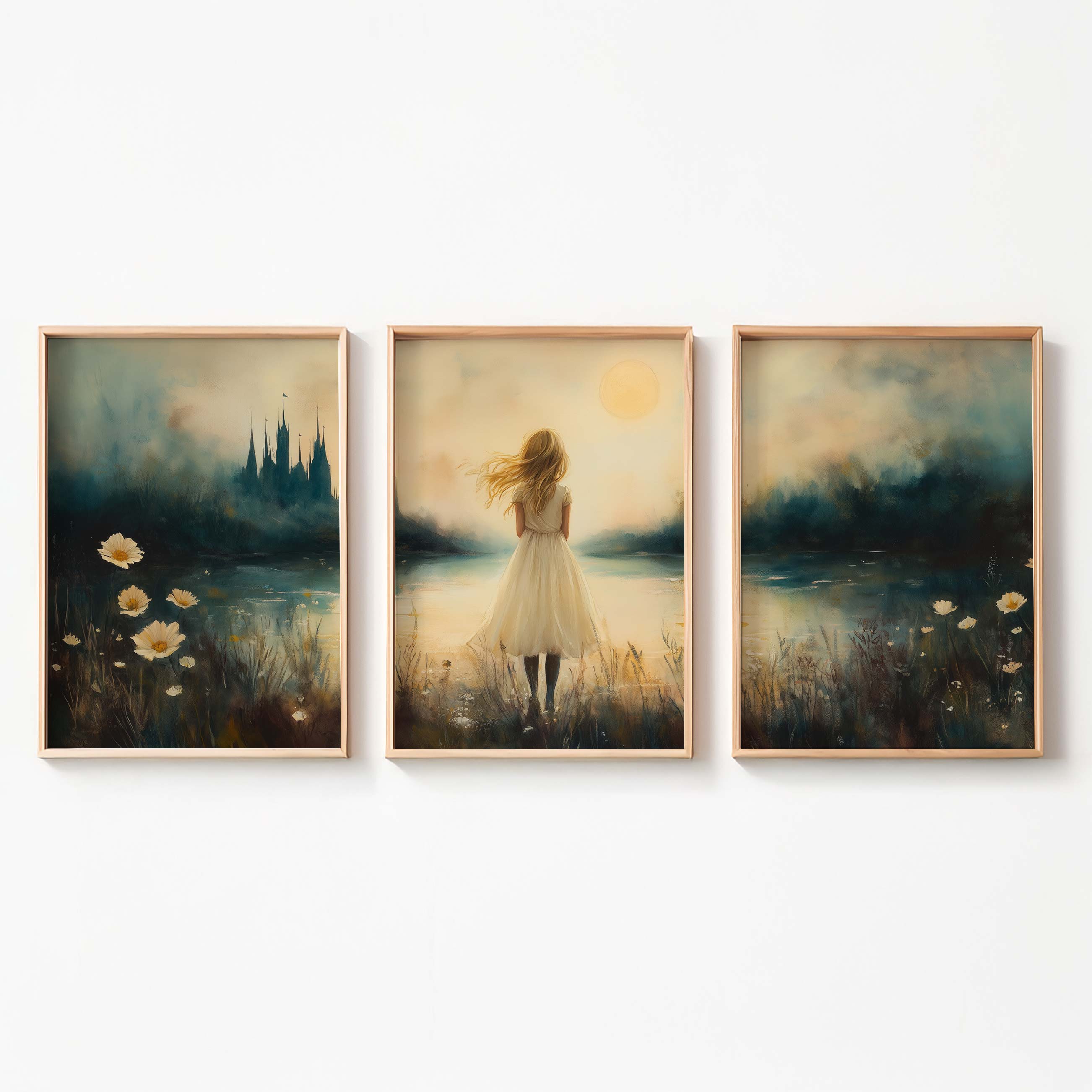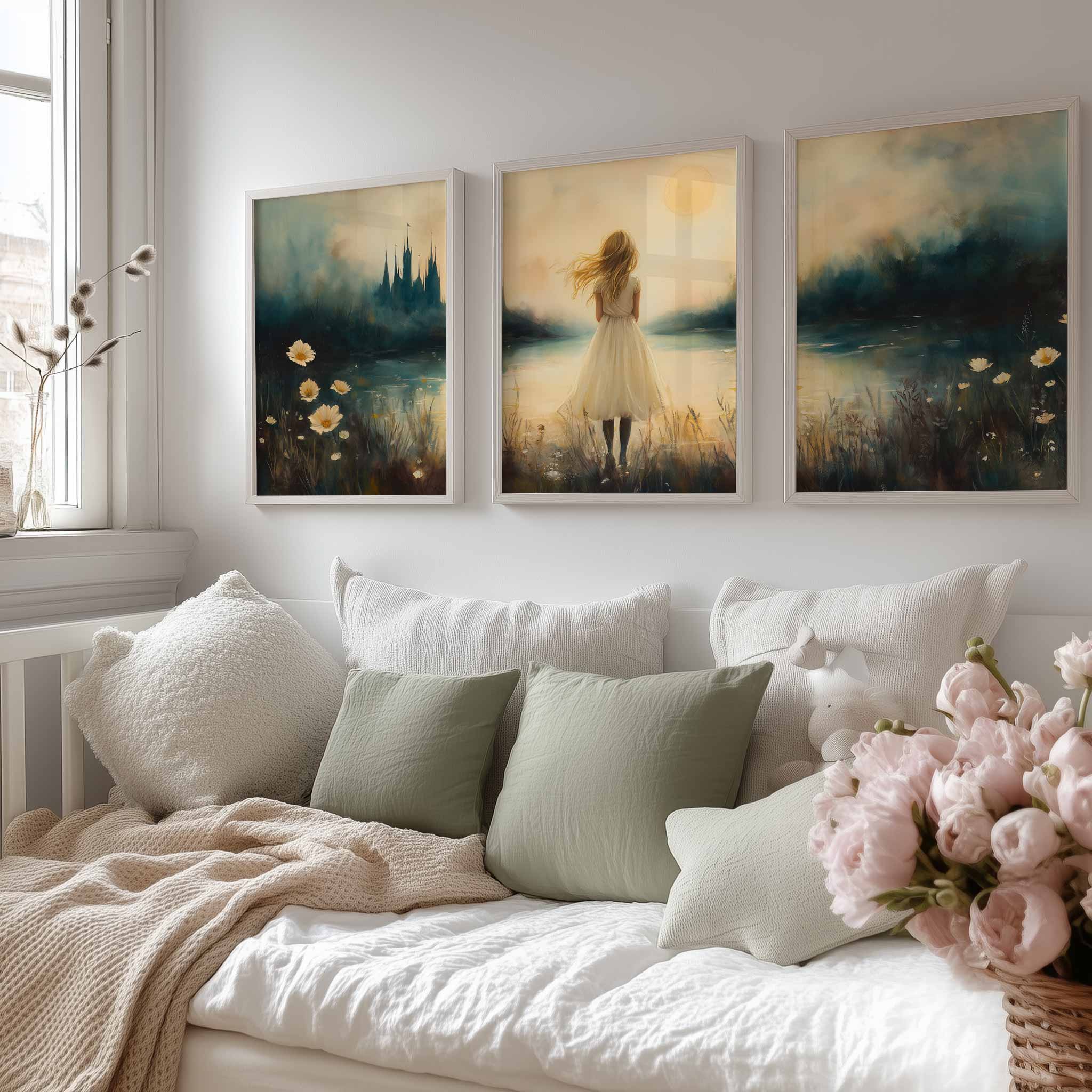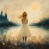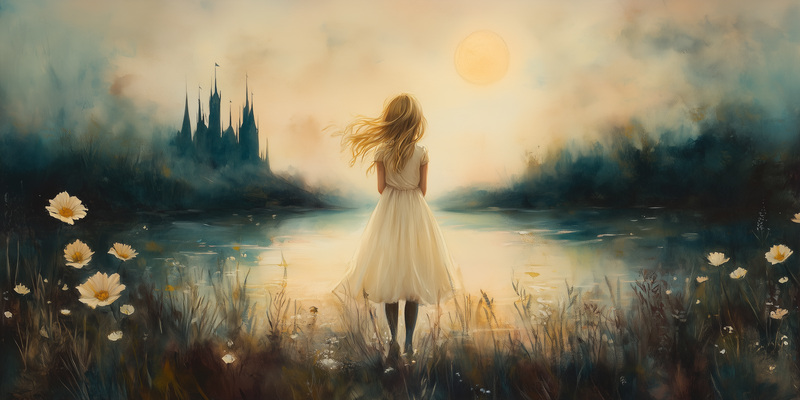 Dromerig Meisje bij Kasteel in Betoverend Landschap