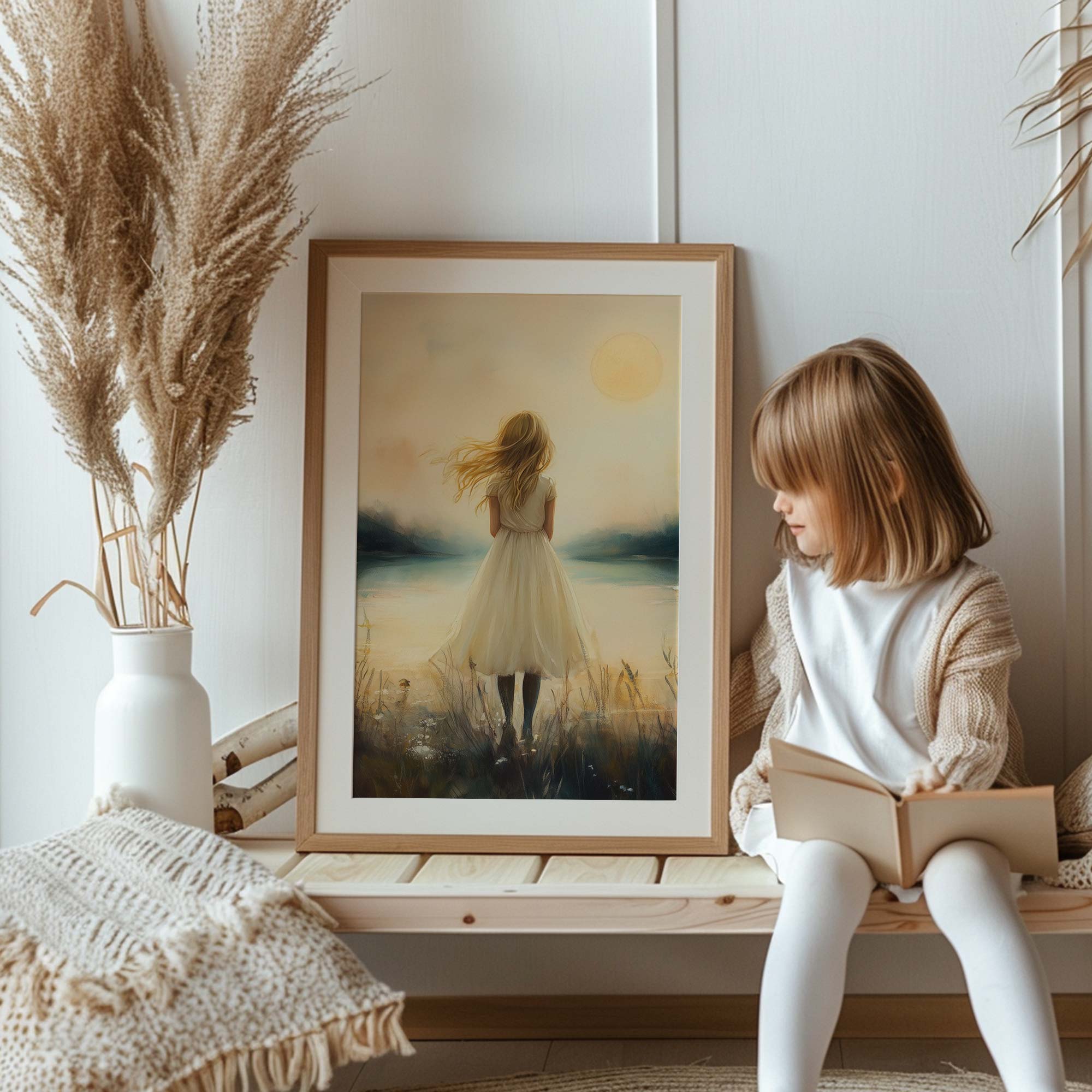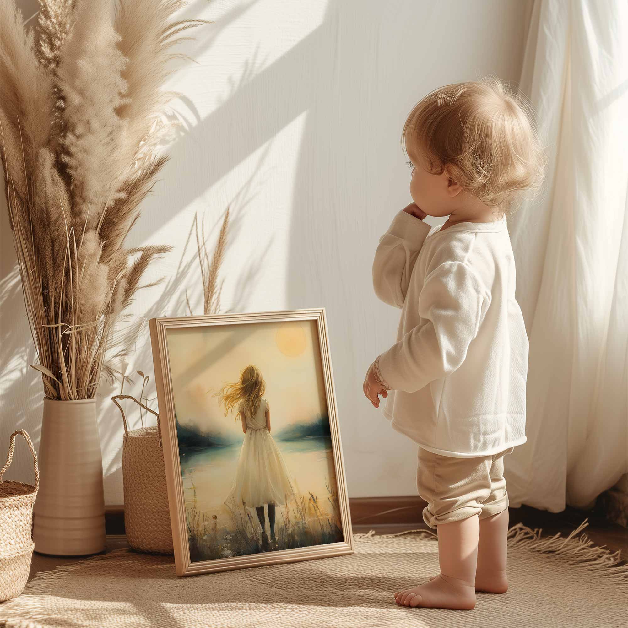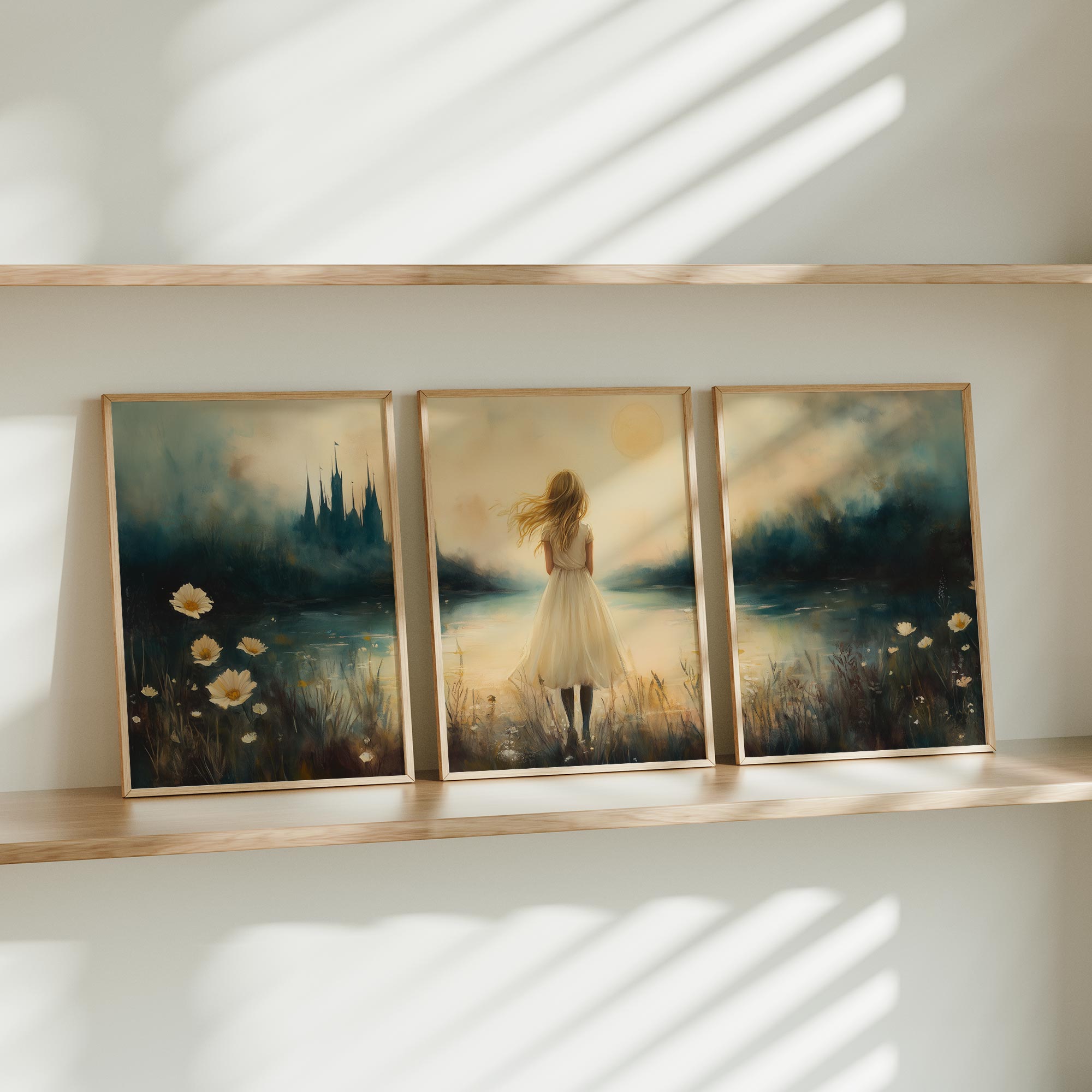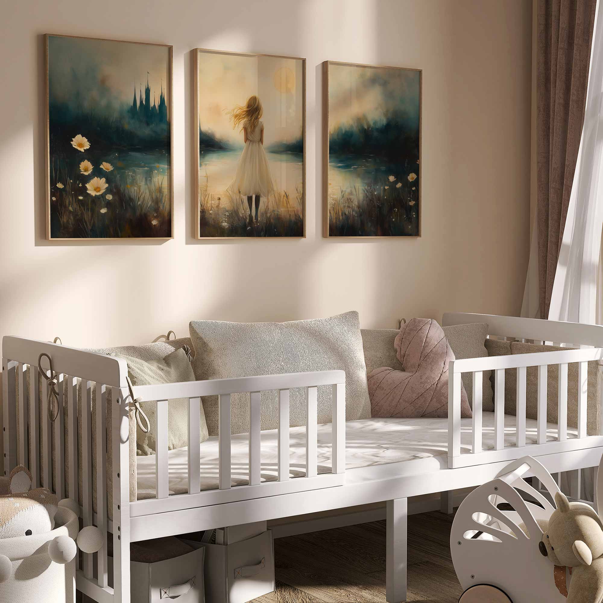 Dromerig Meisje bij Kasteel in Betoverend Landschap