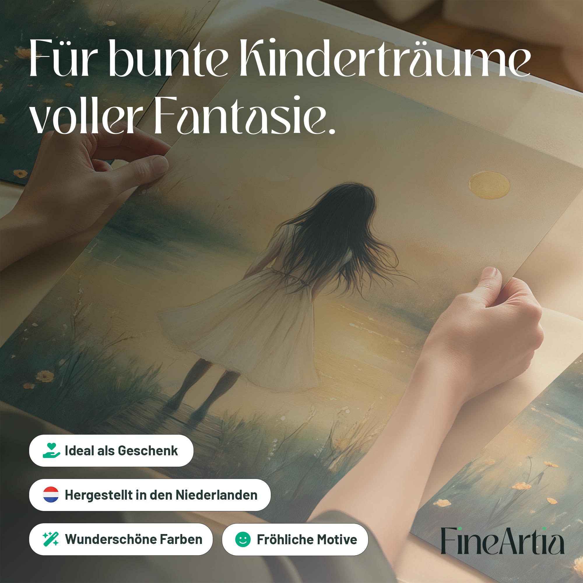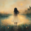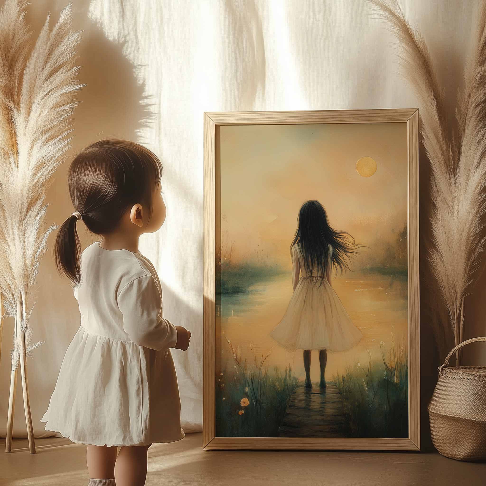 Dromerig Meisje bij Kasteel – Pastel Schilderij
