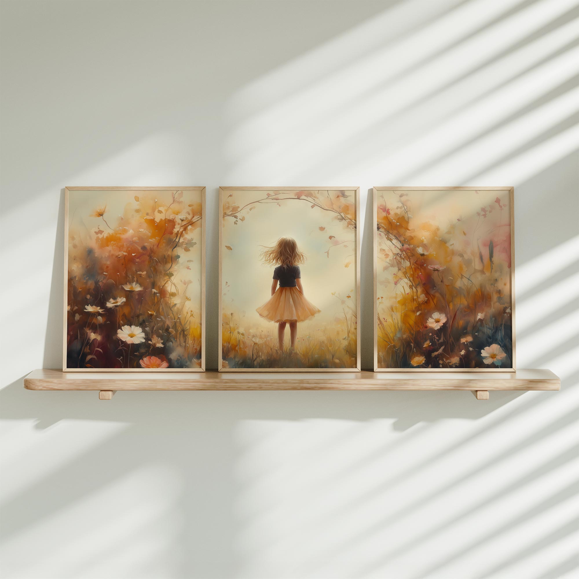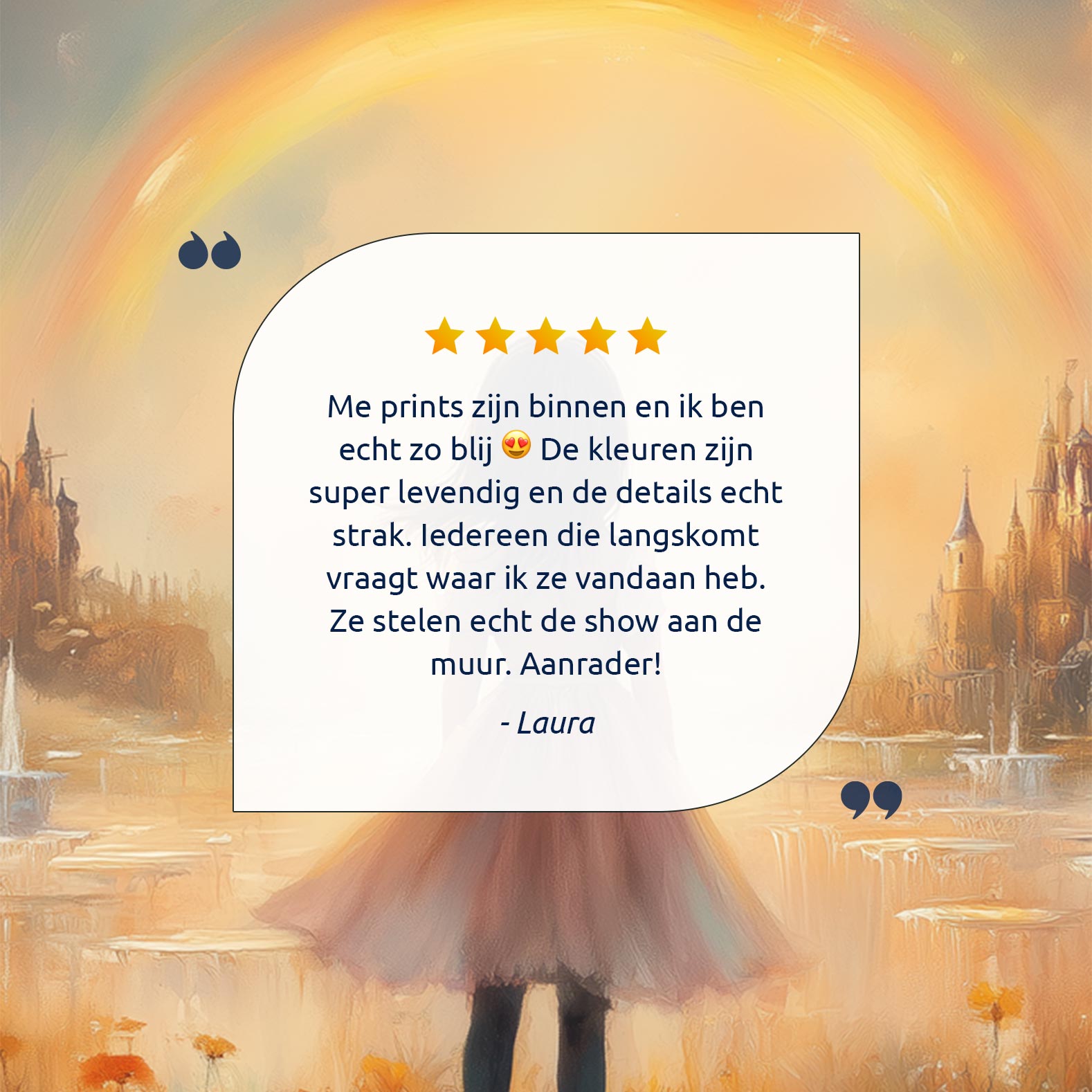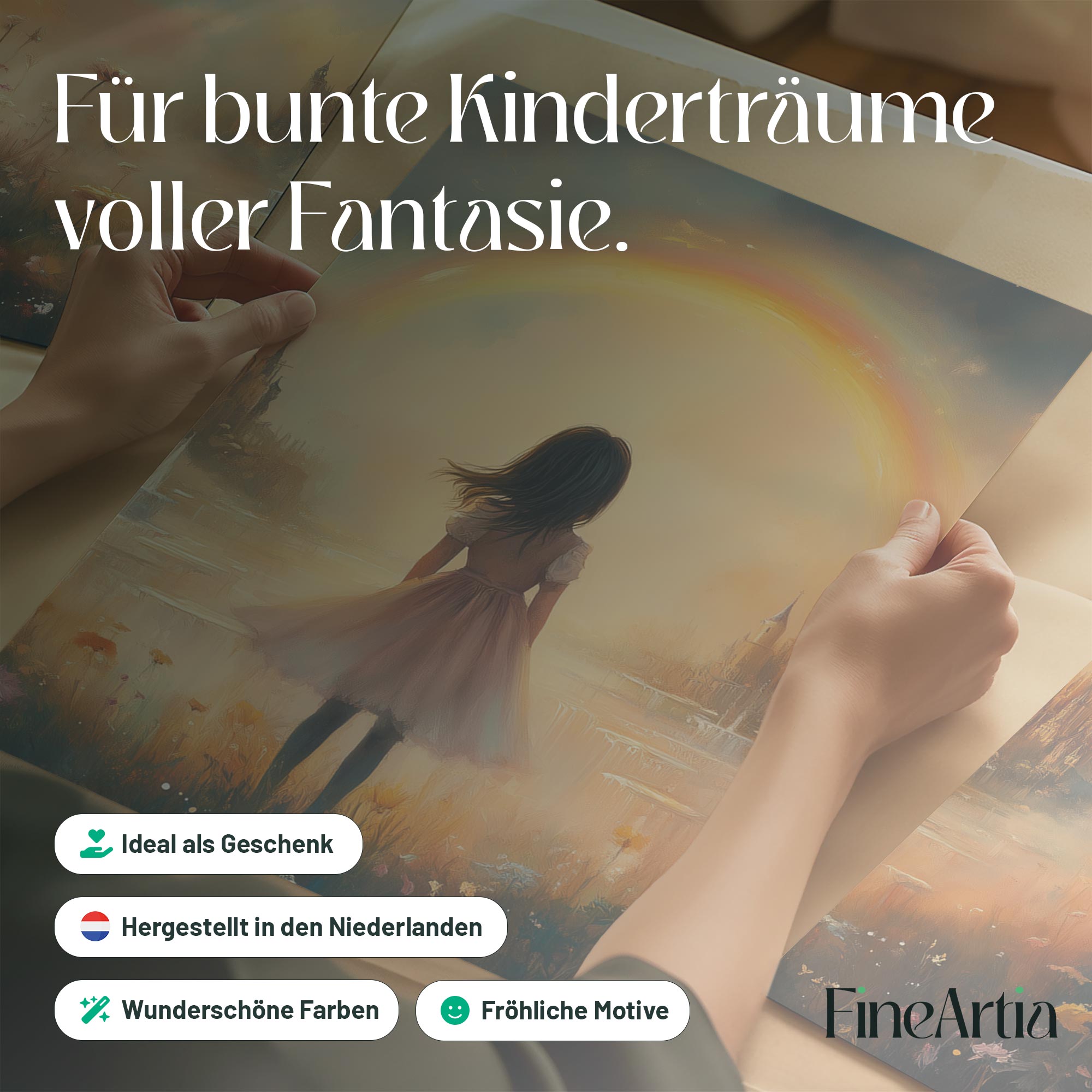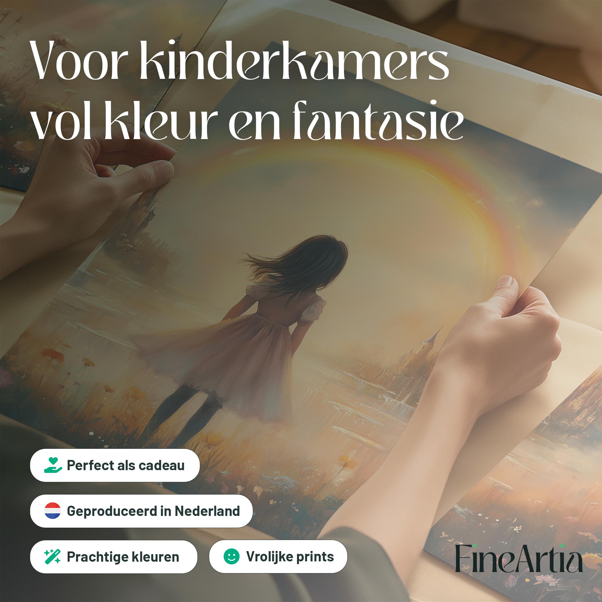Dromerig Meisje bij Regenboog en Bloemenveld