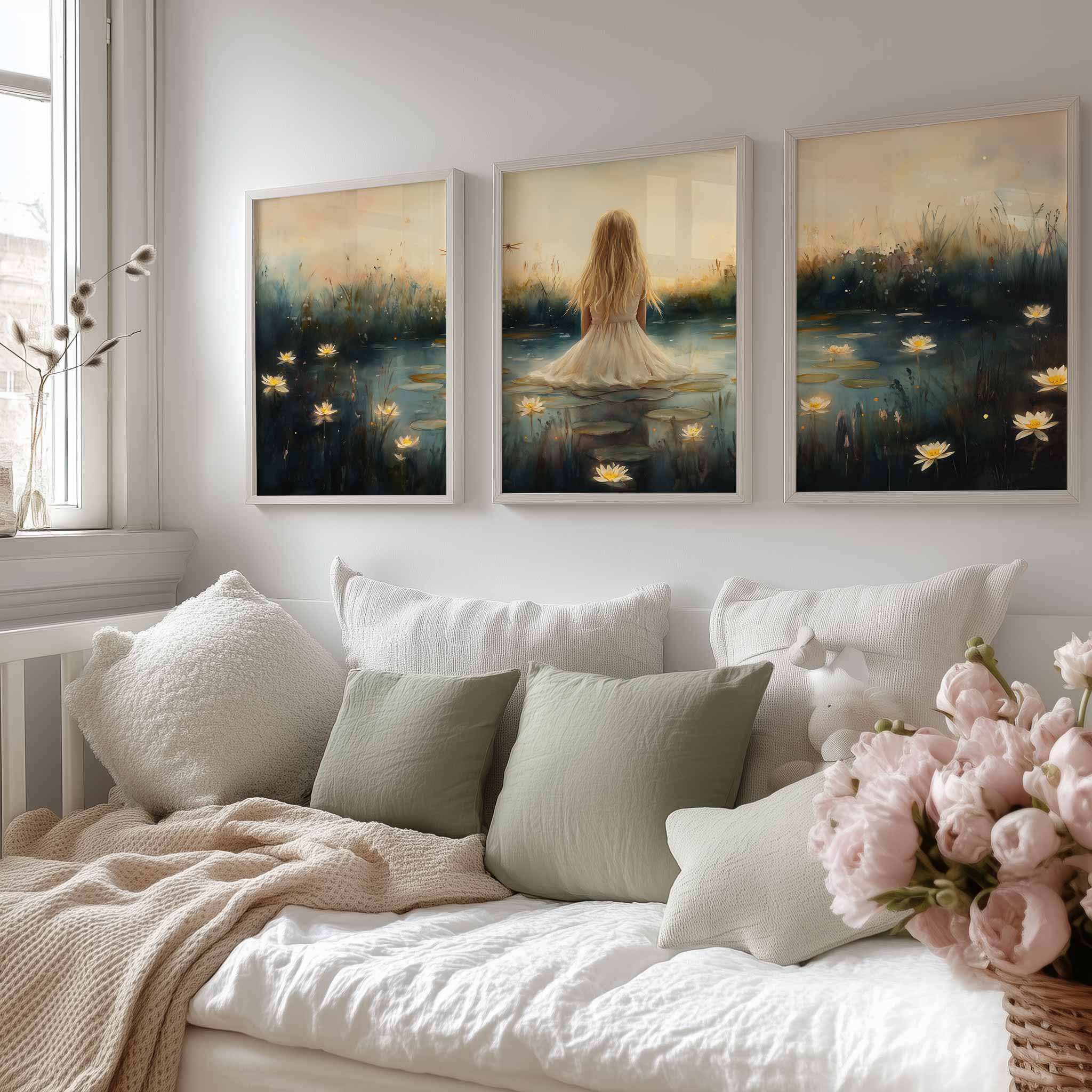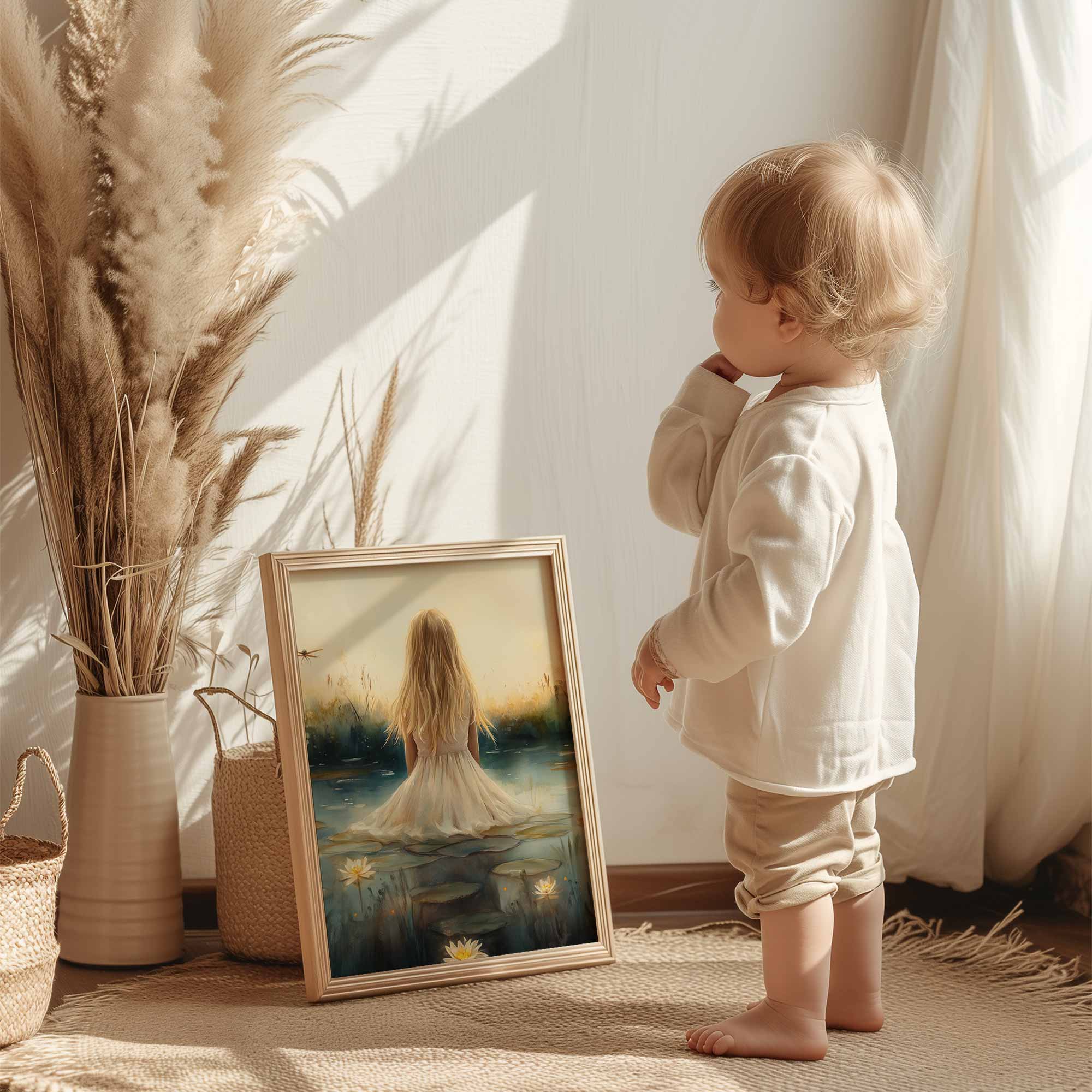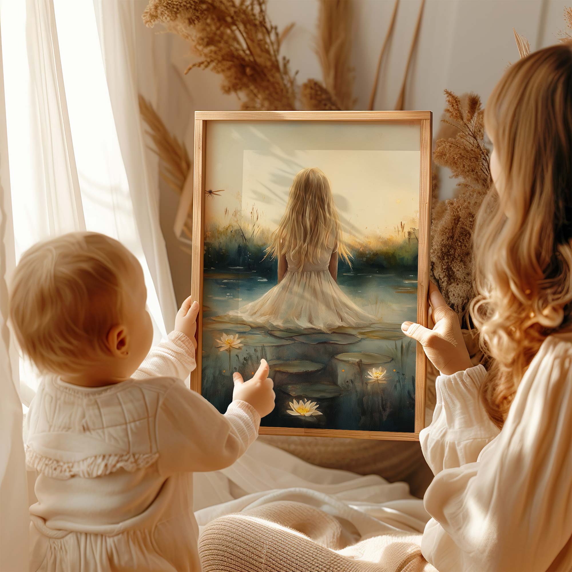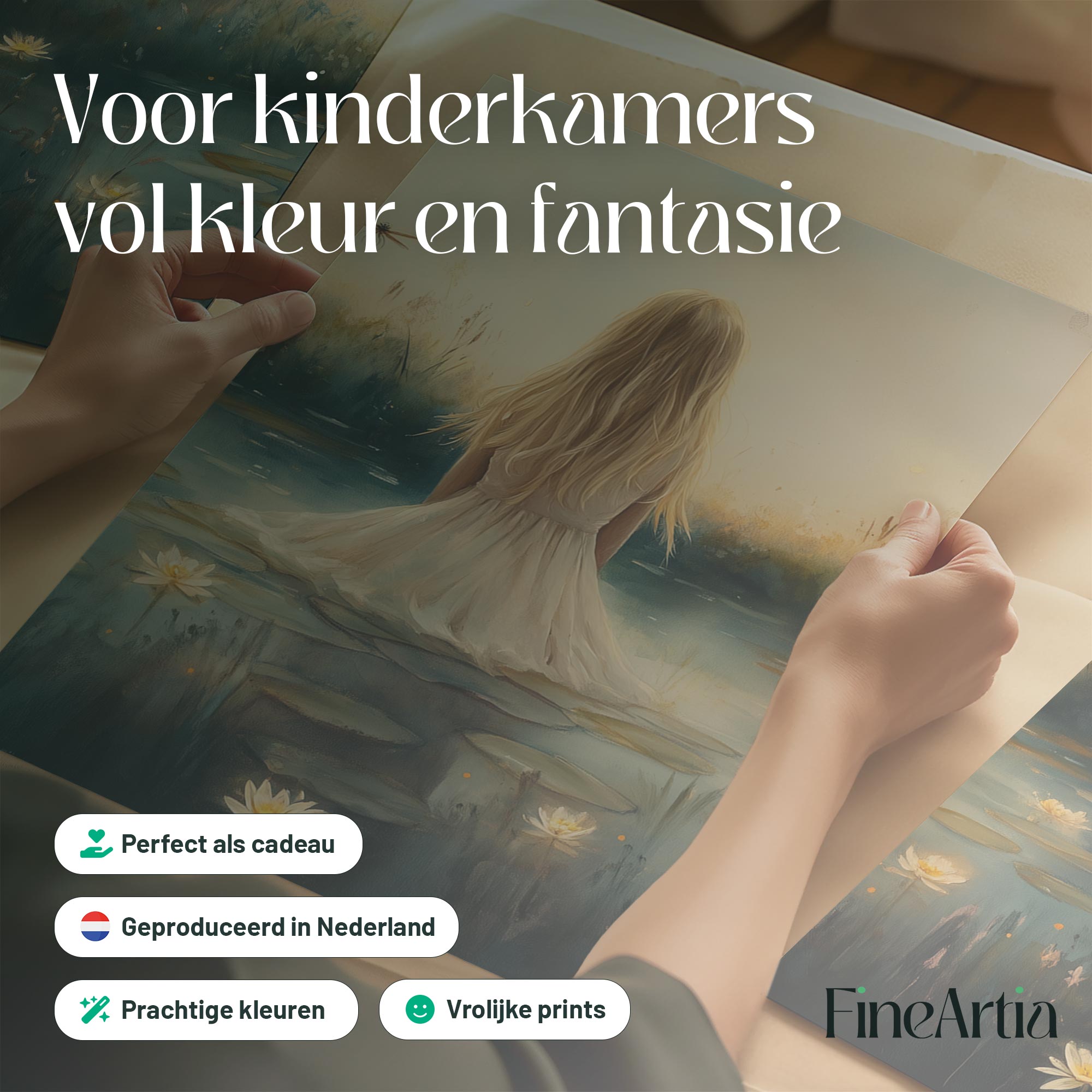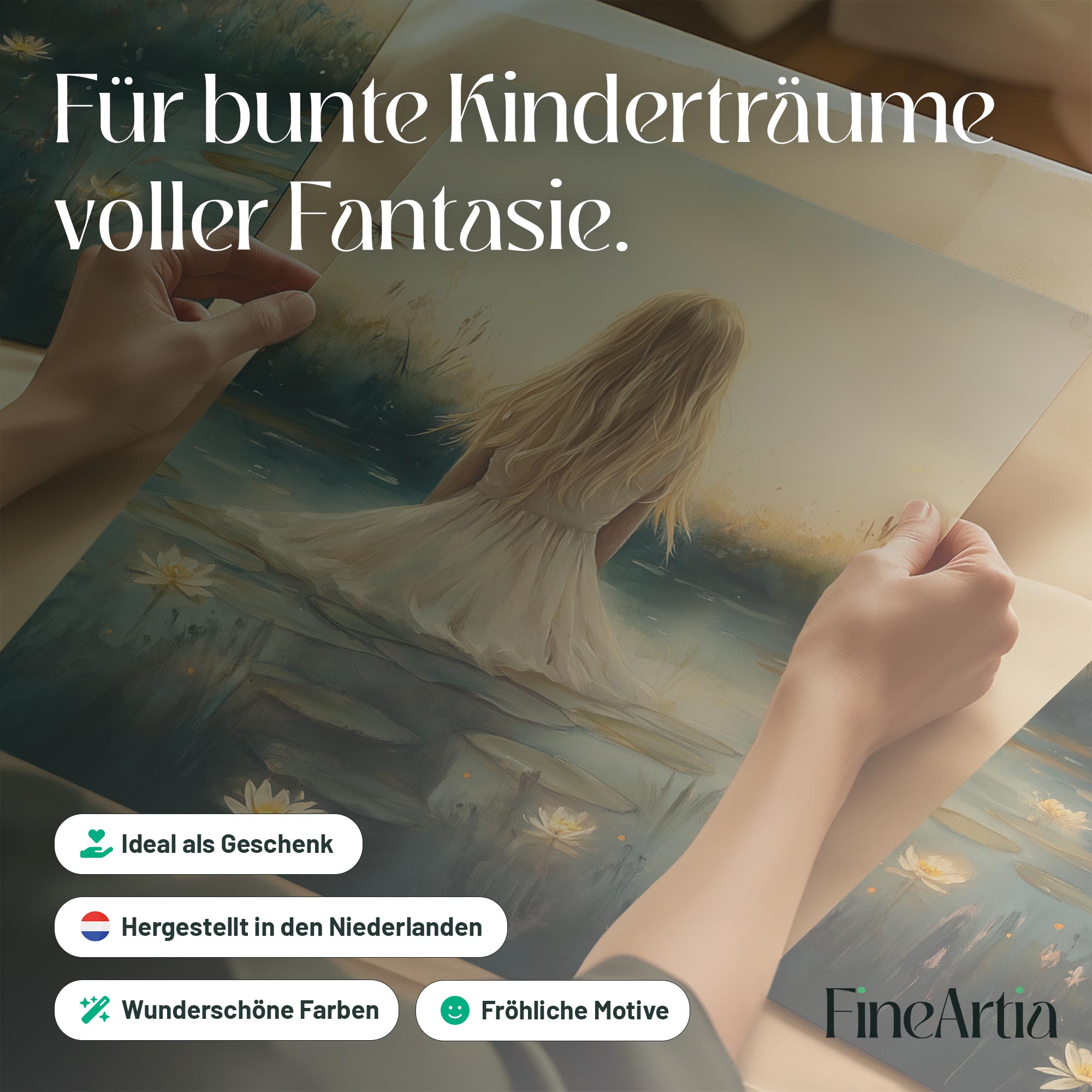 Terug naar collectie Posters Dromerig Meisje bij Waterlelies en Bloemen
