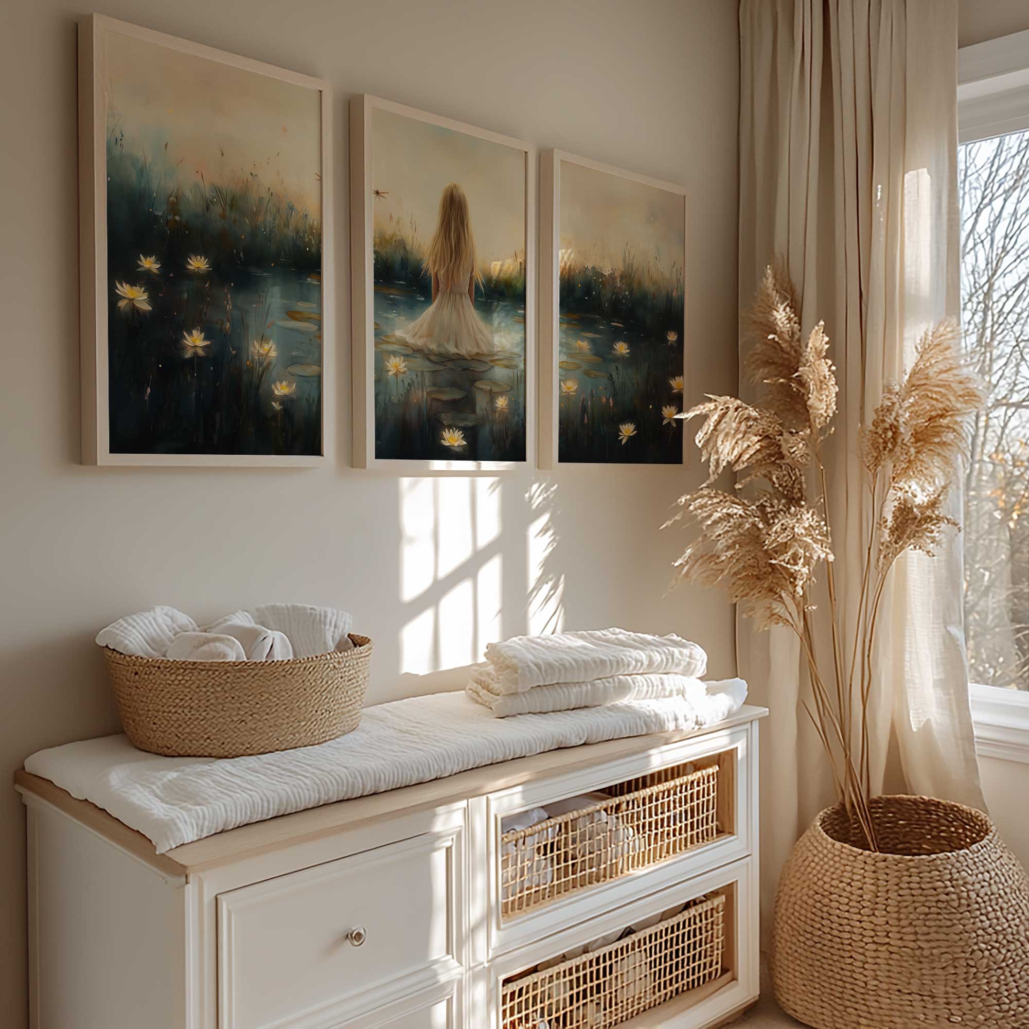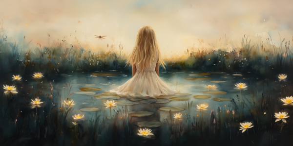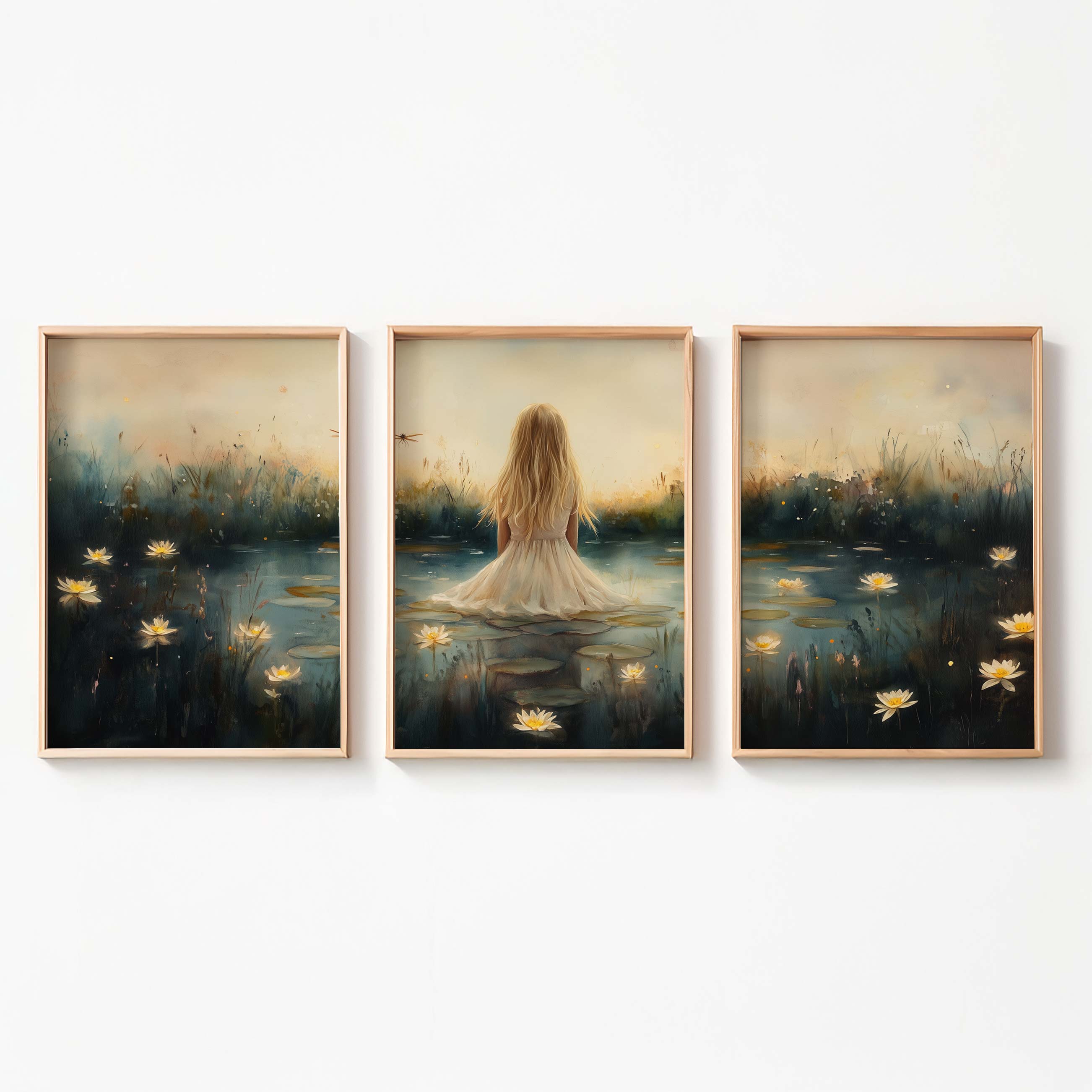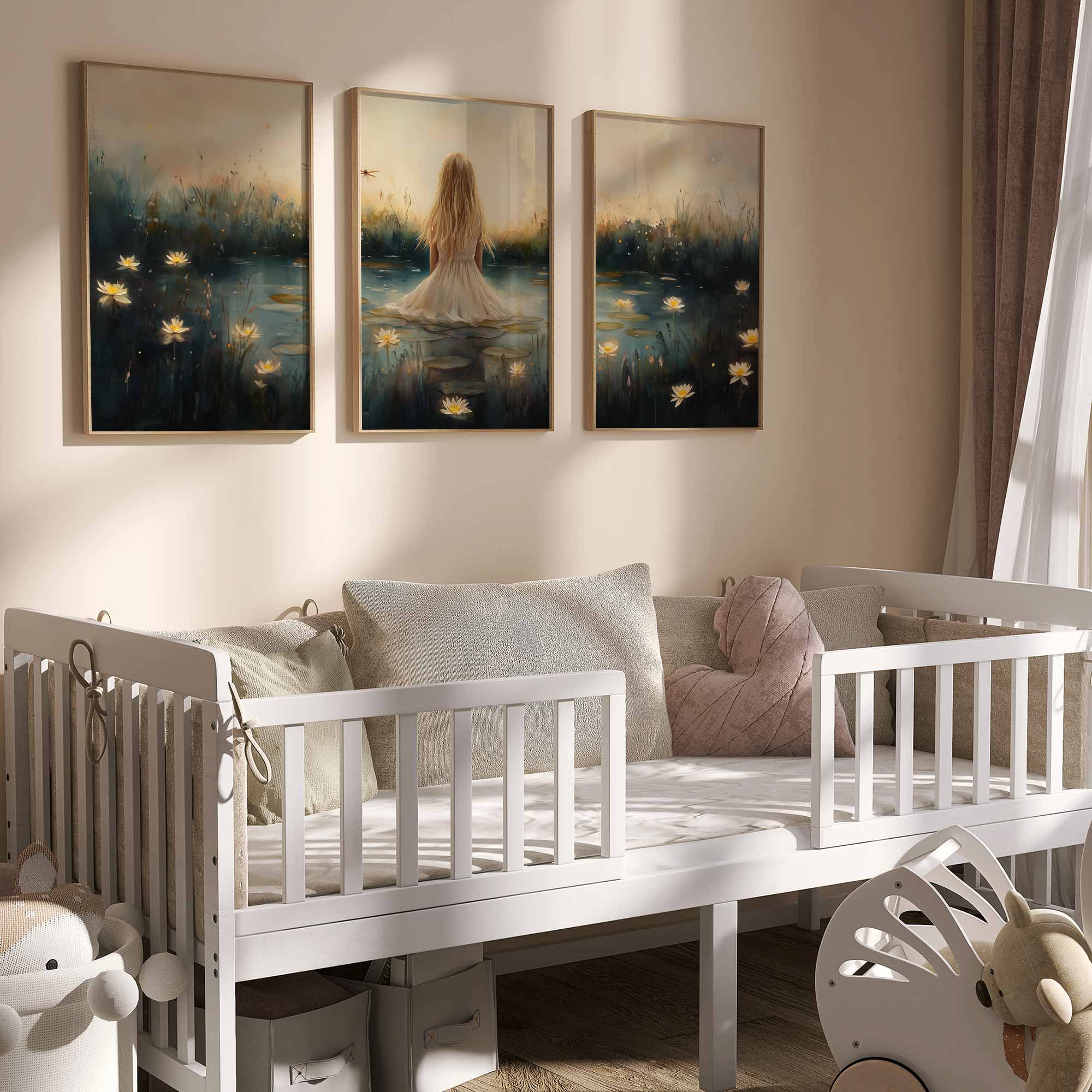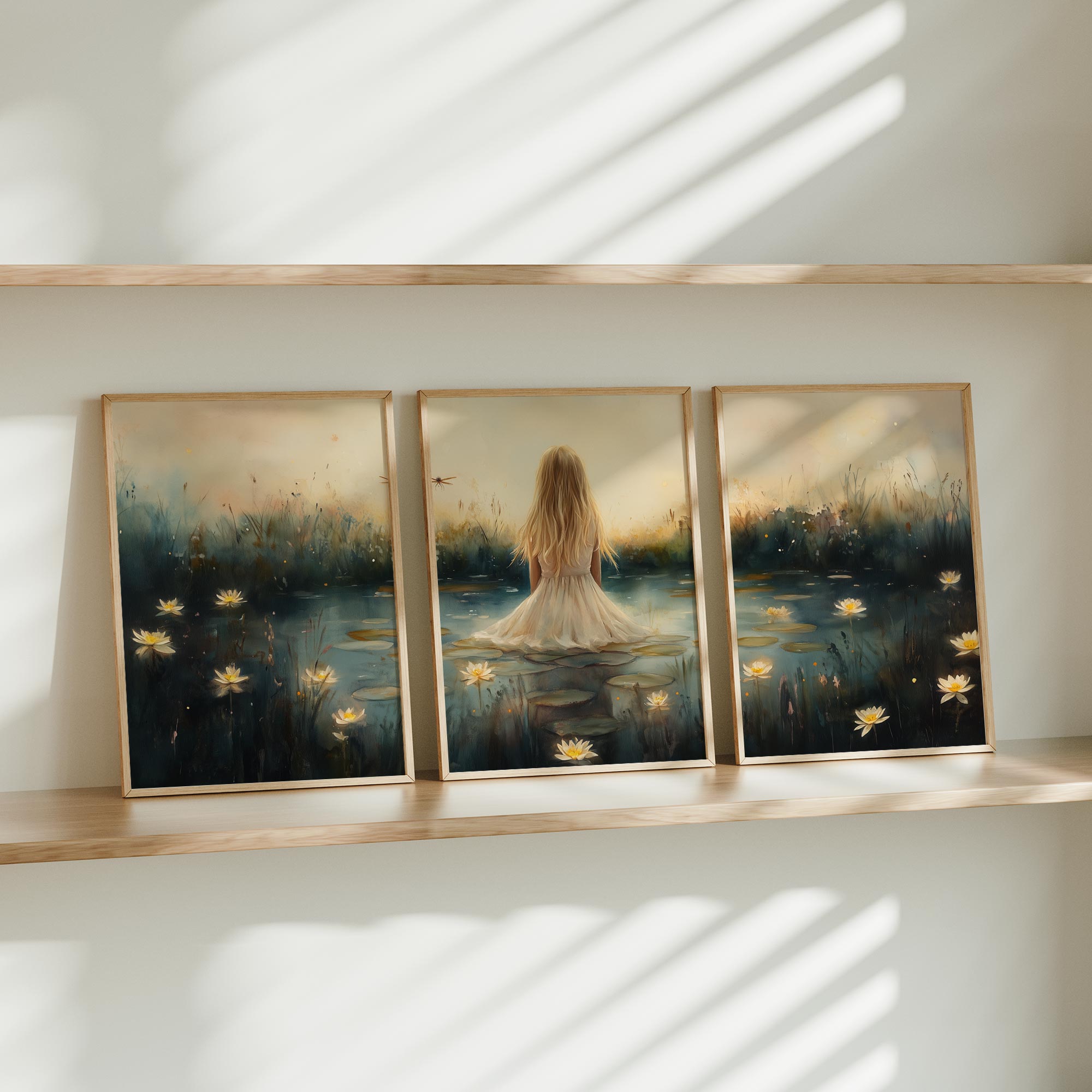Terug naar collectie Posters Dromerig Meisje bij Waterlelies en Bloemen