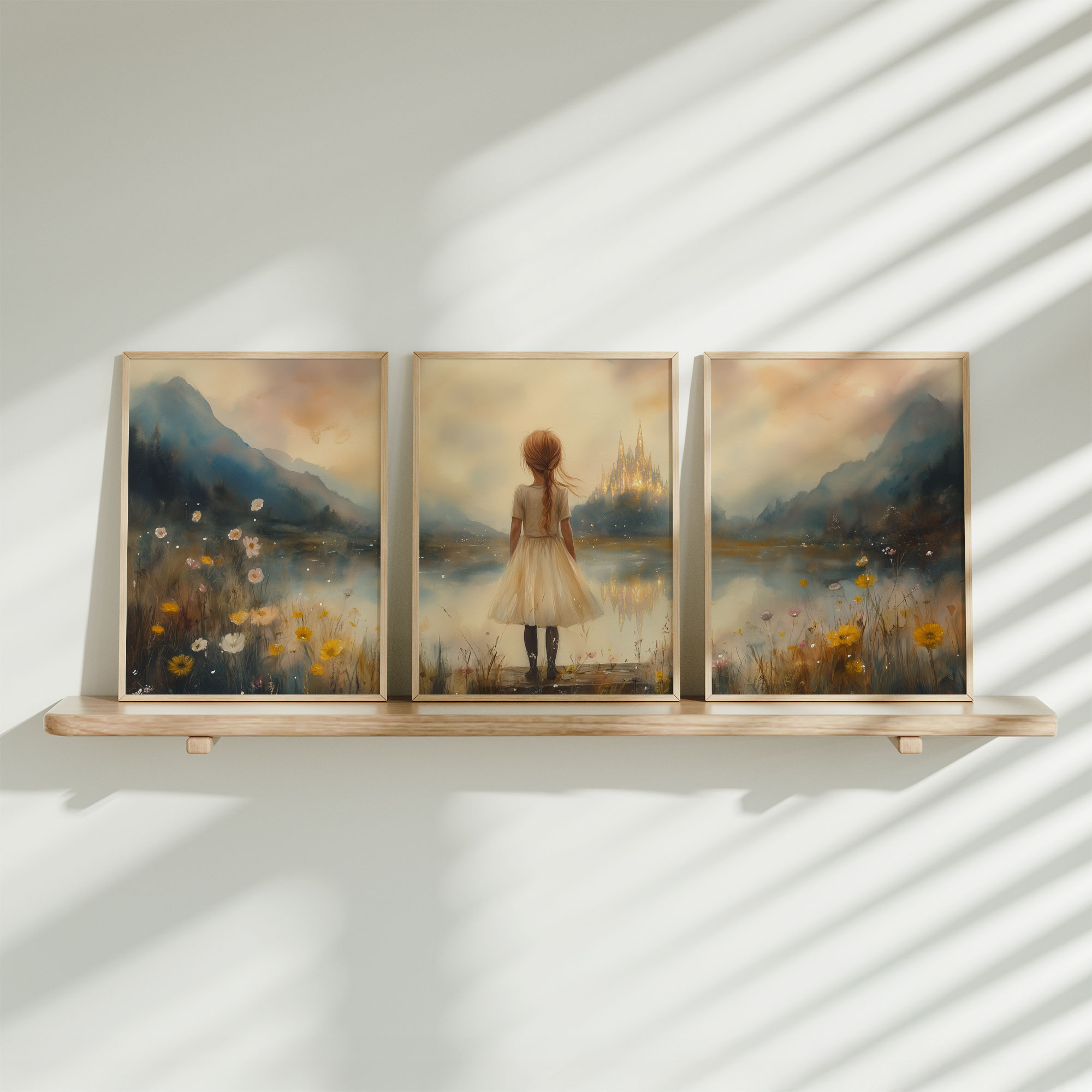 Dromerig Meisje bij Waterval in Pastelkleuren