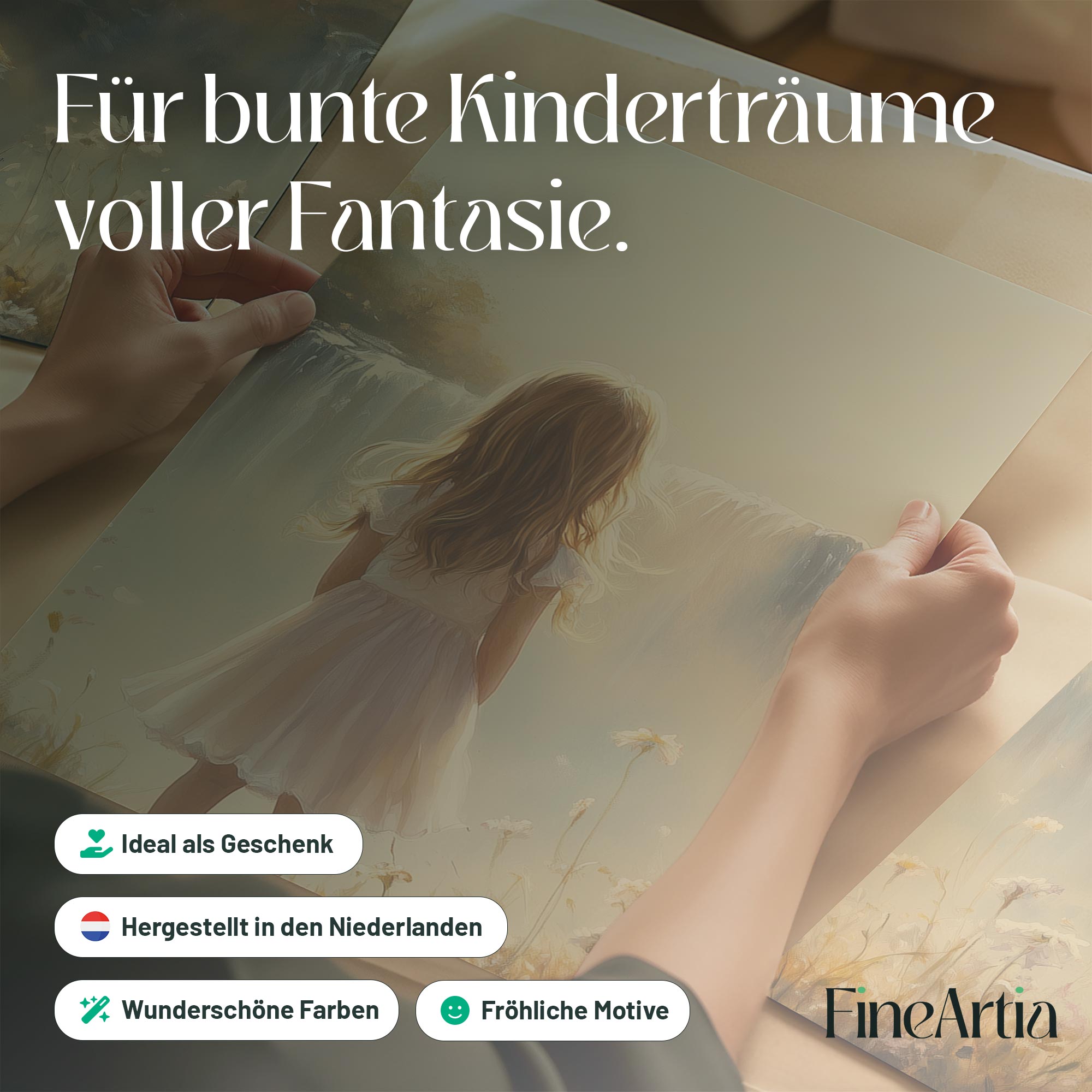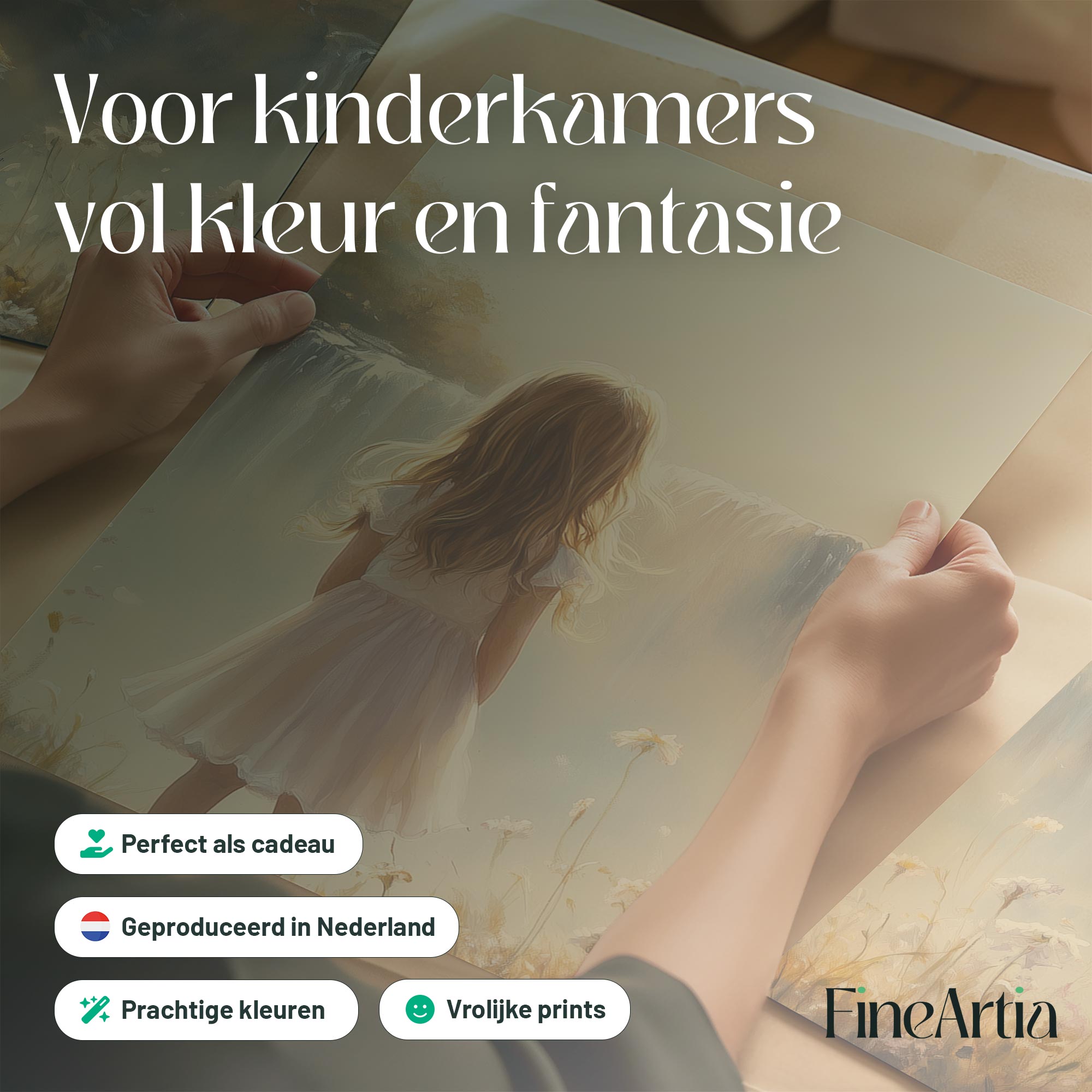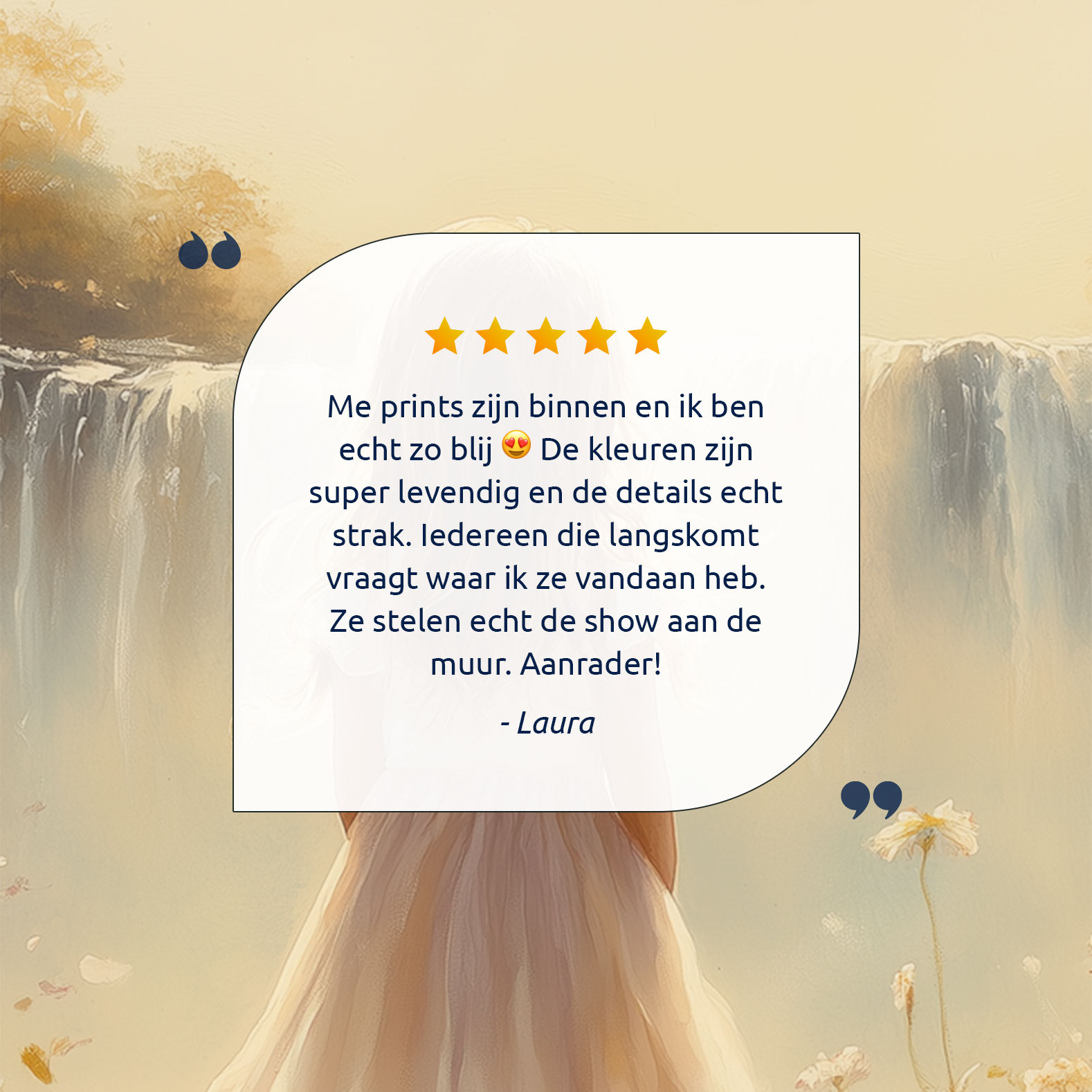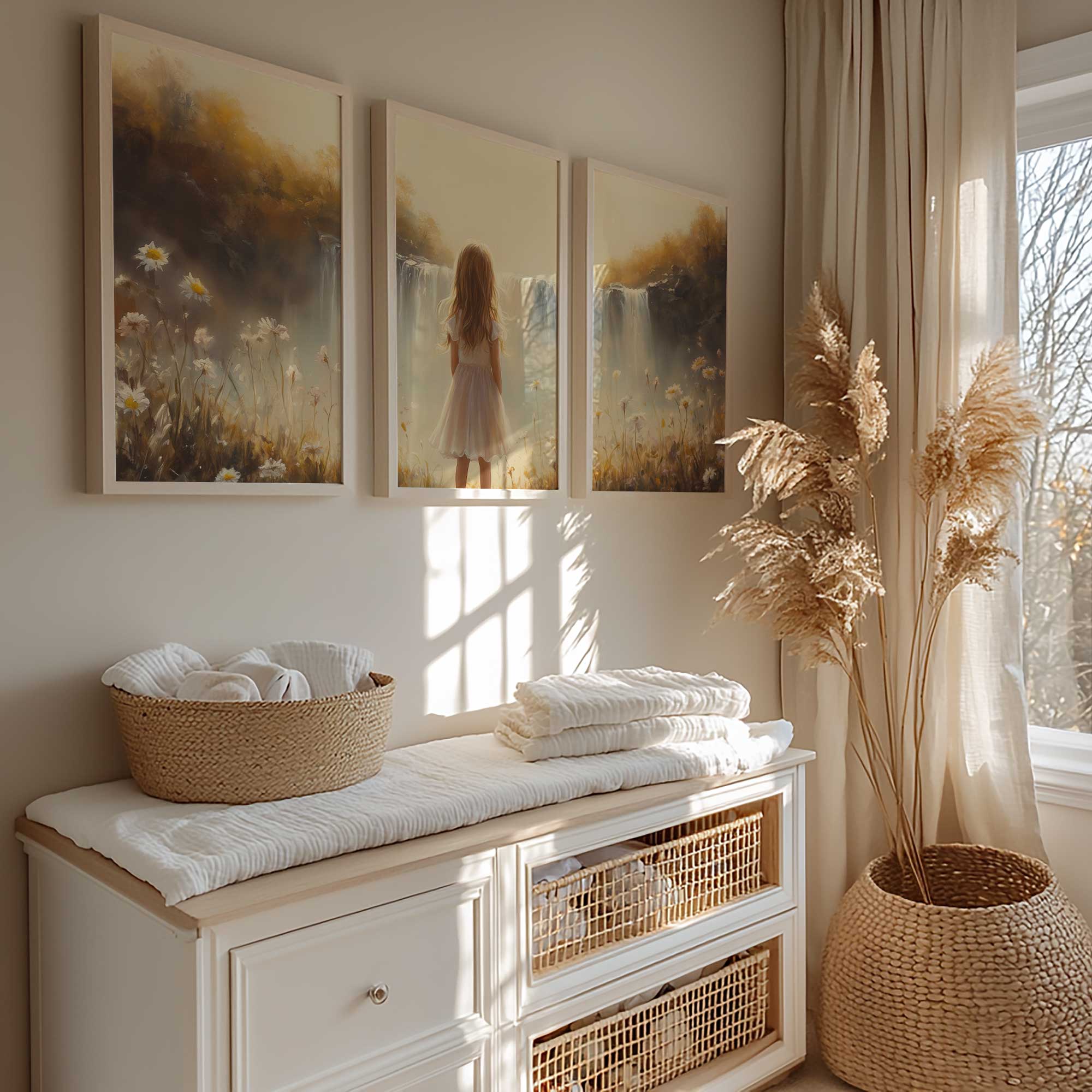 Terug naar collectie Posters Dromerig Meisje bij Waterval – Pastel Bloemenveld