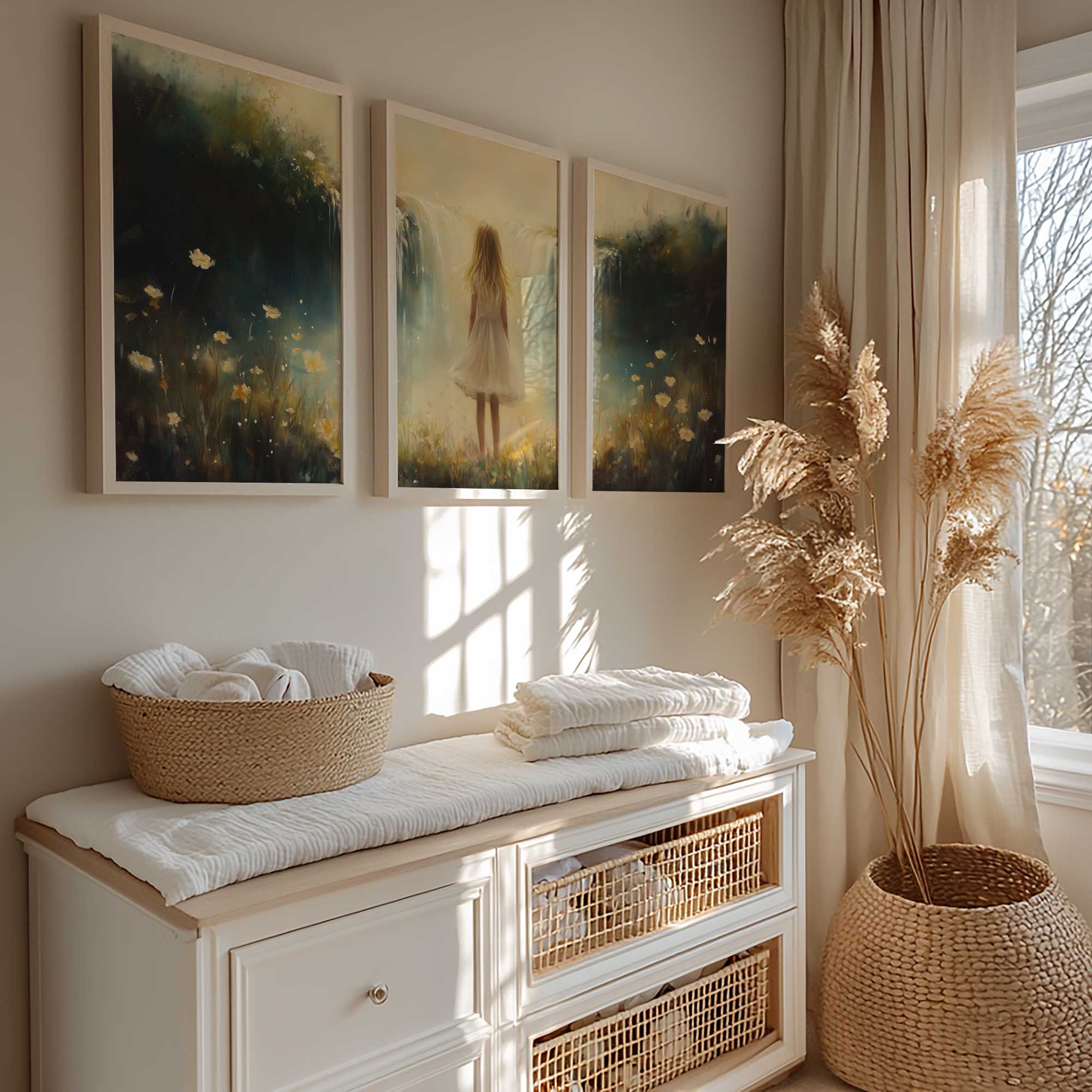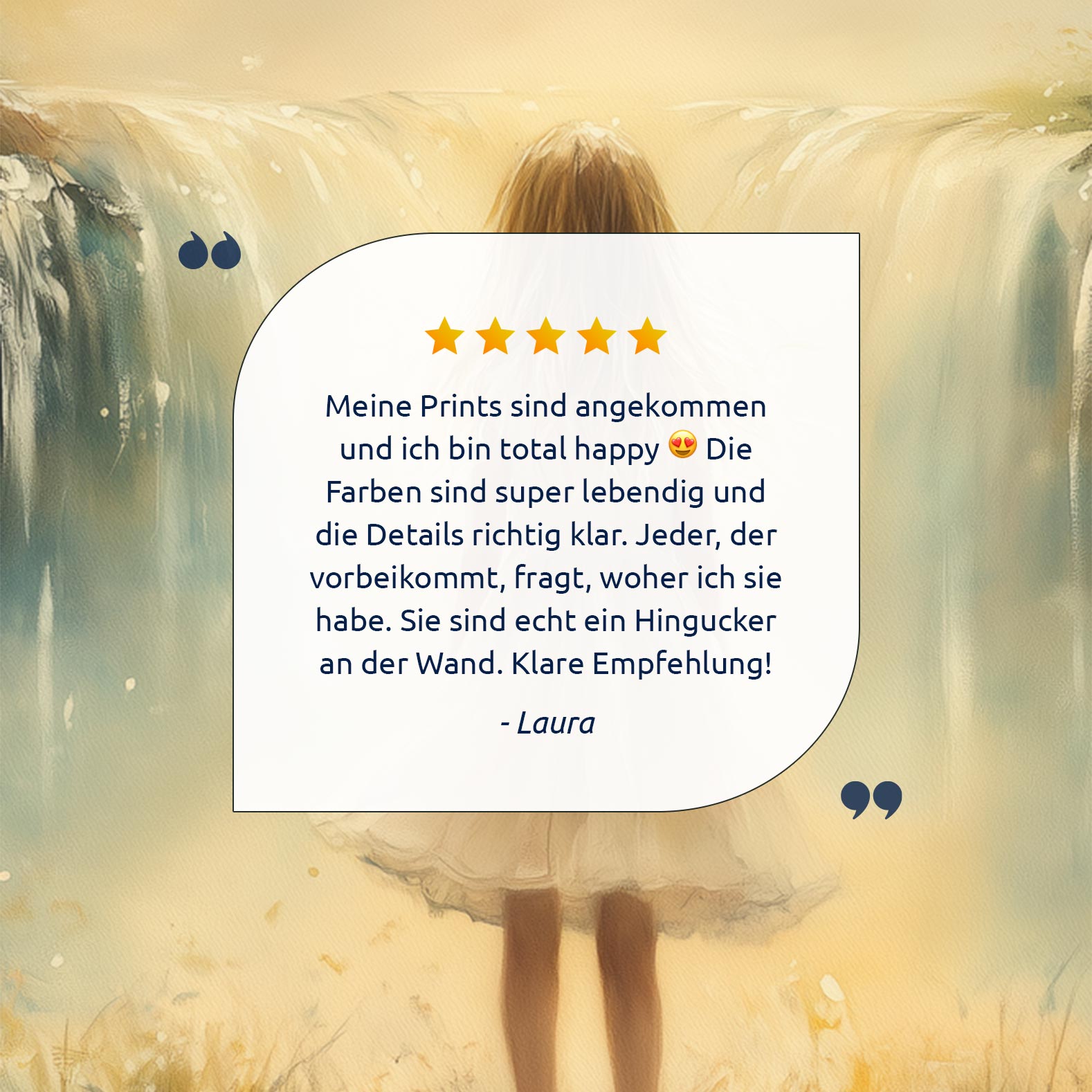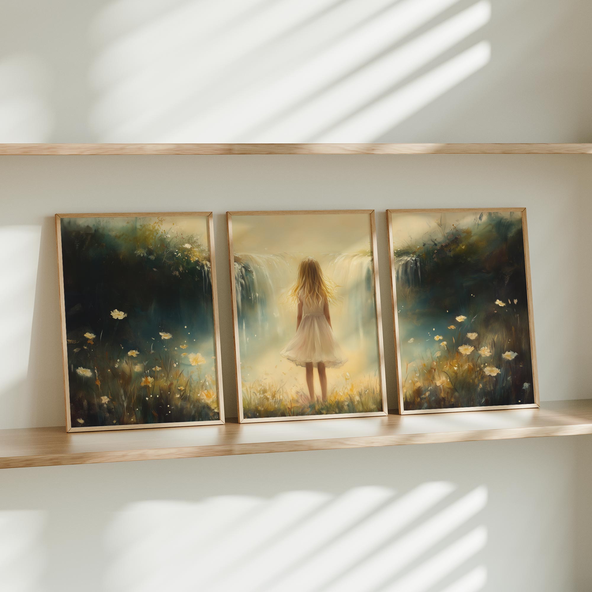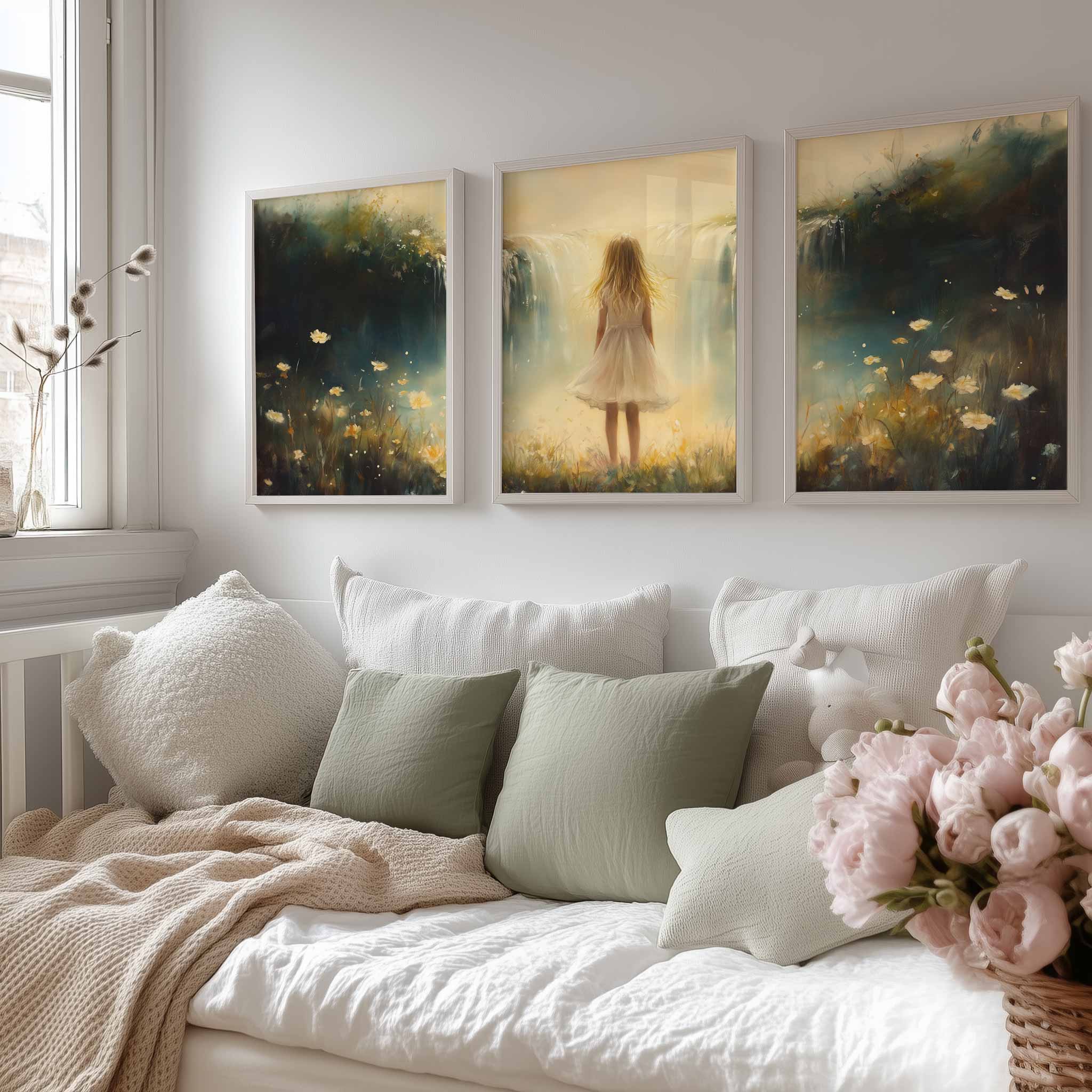 Dromerig Meisje bij Waterval – Pastel Natuurtafereel
