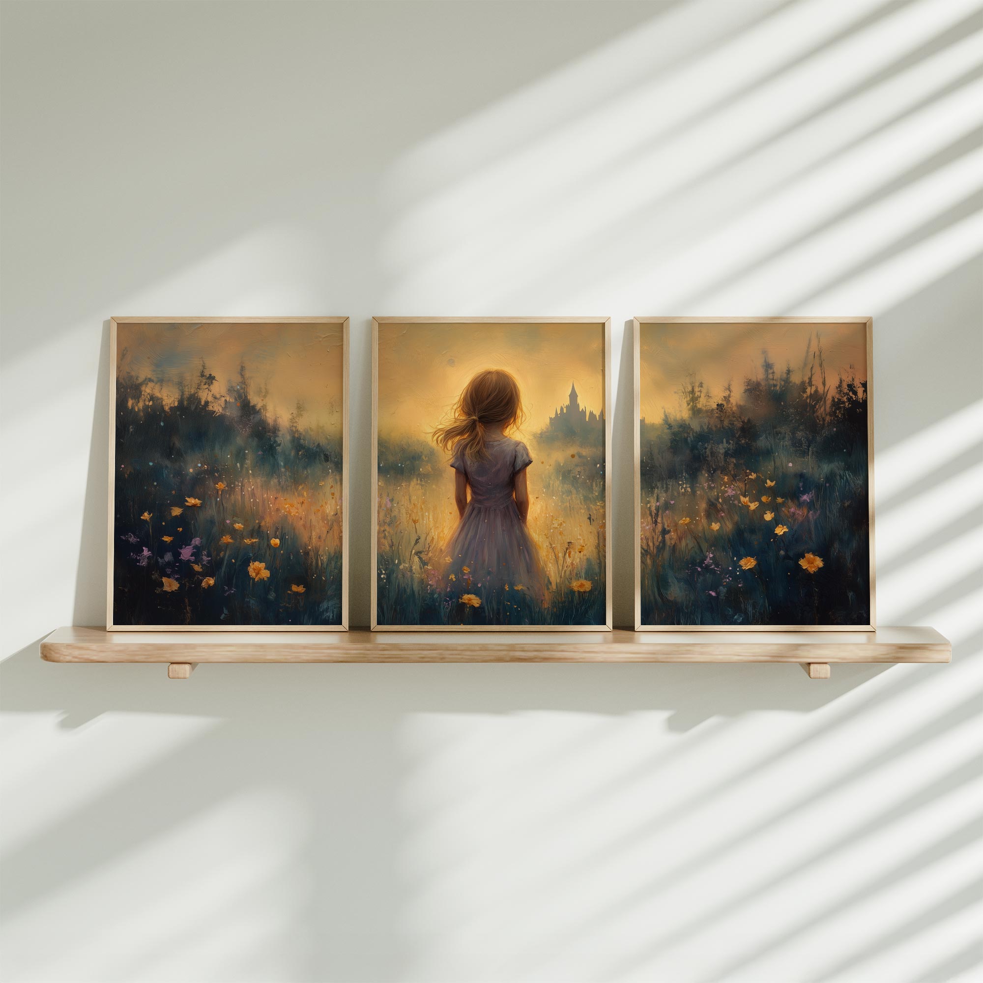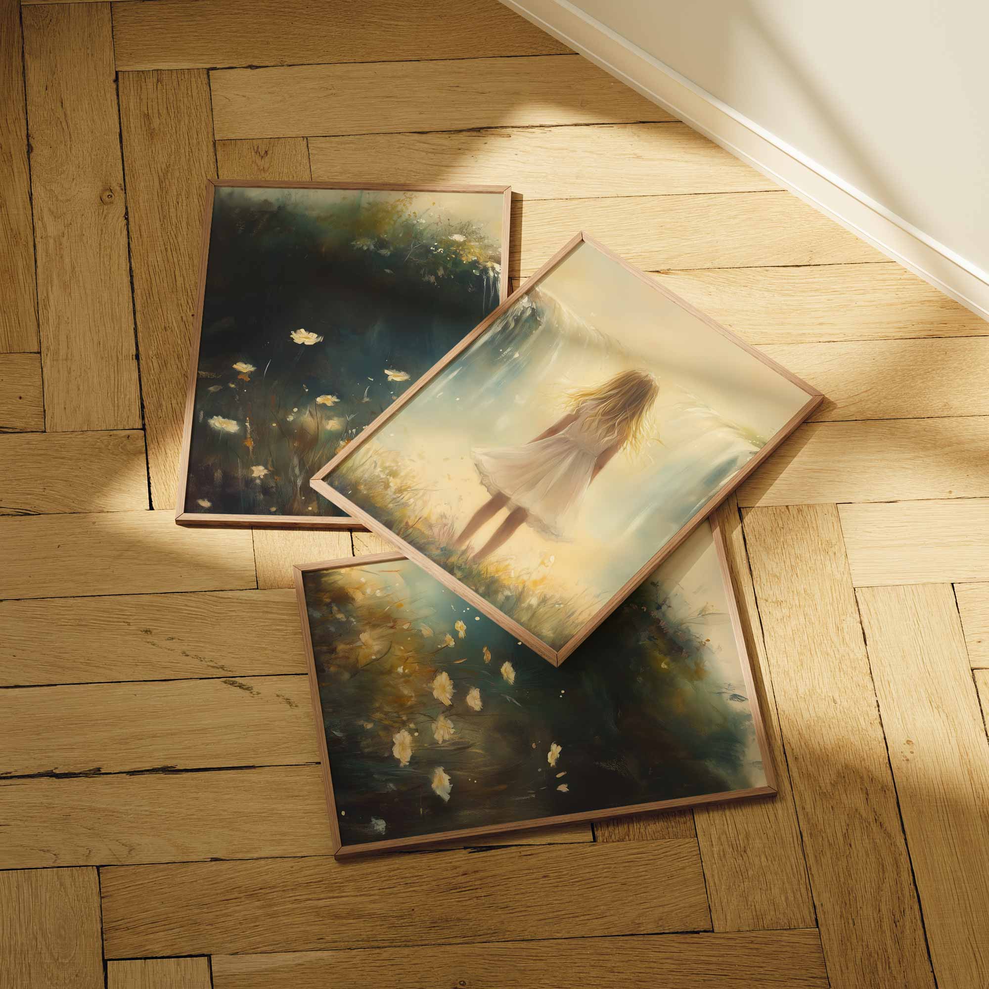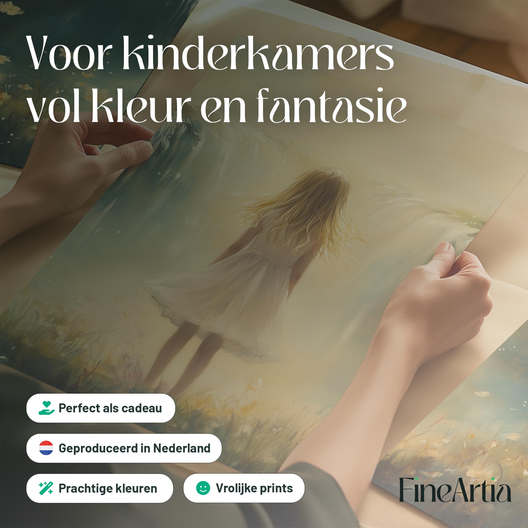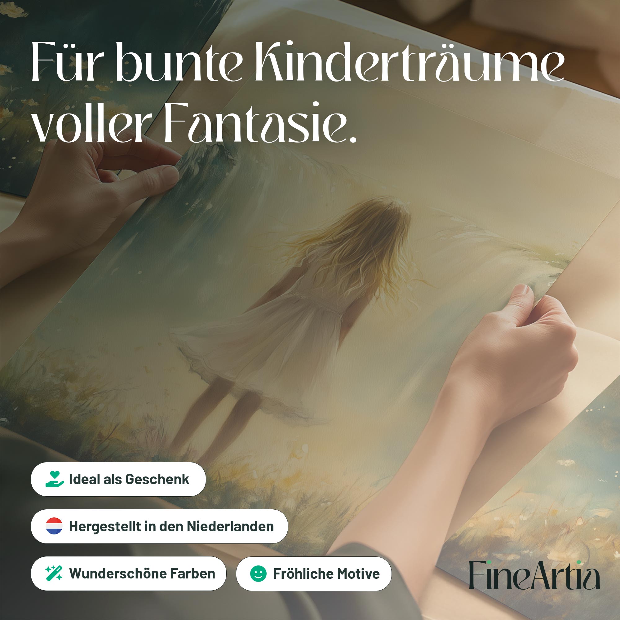 Dromerig Meisje bij Waterval – Pastel Natuurtafereel