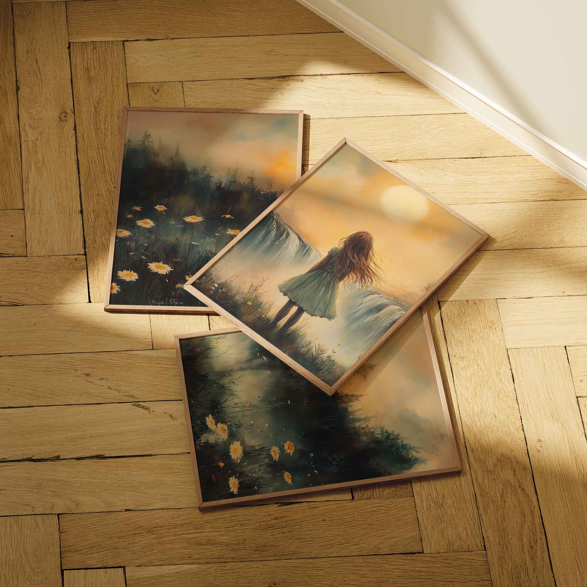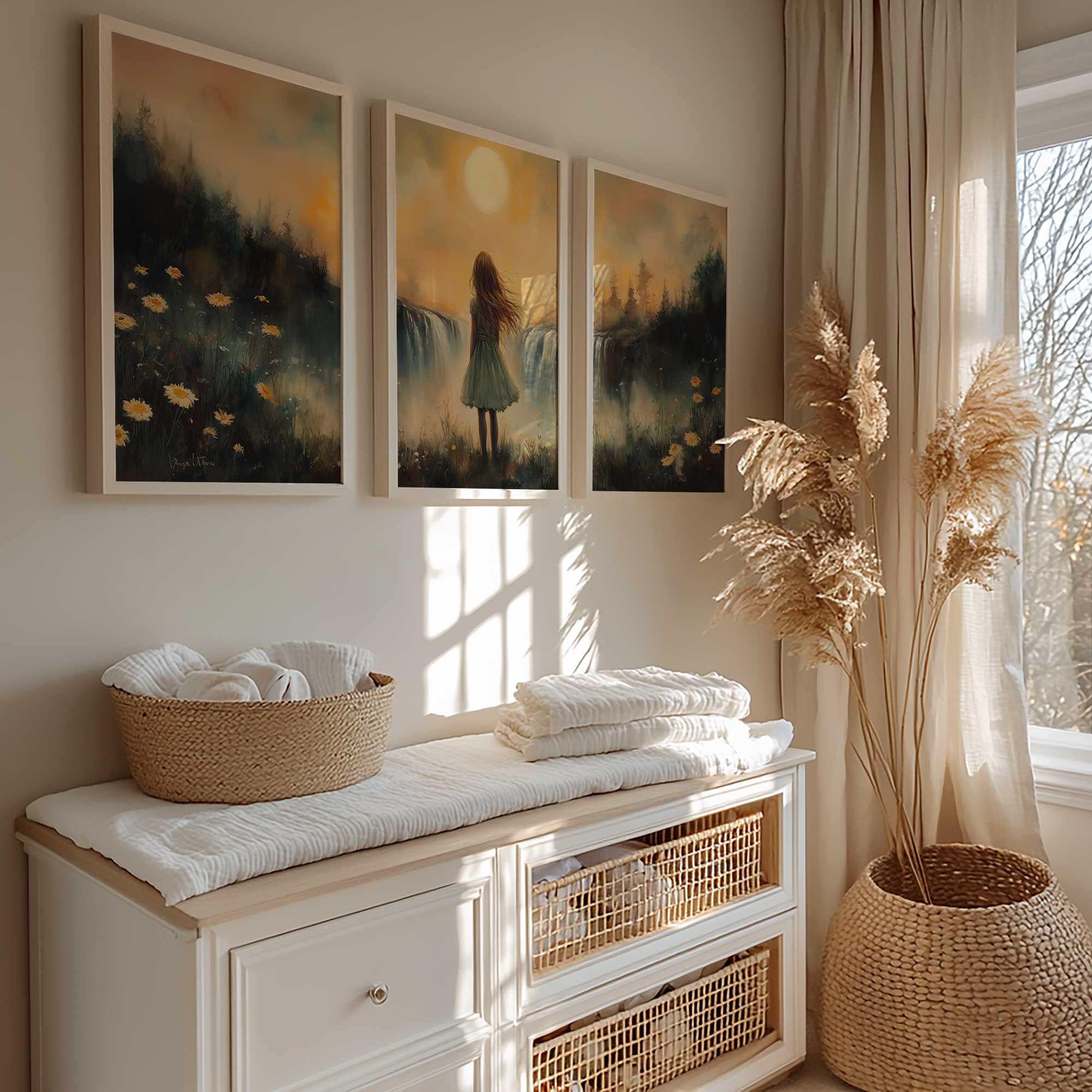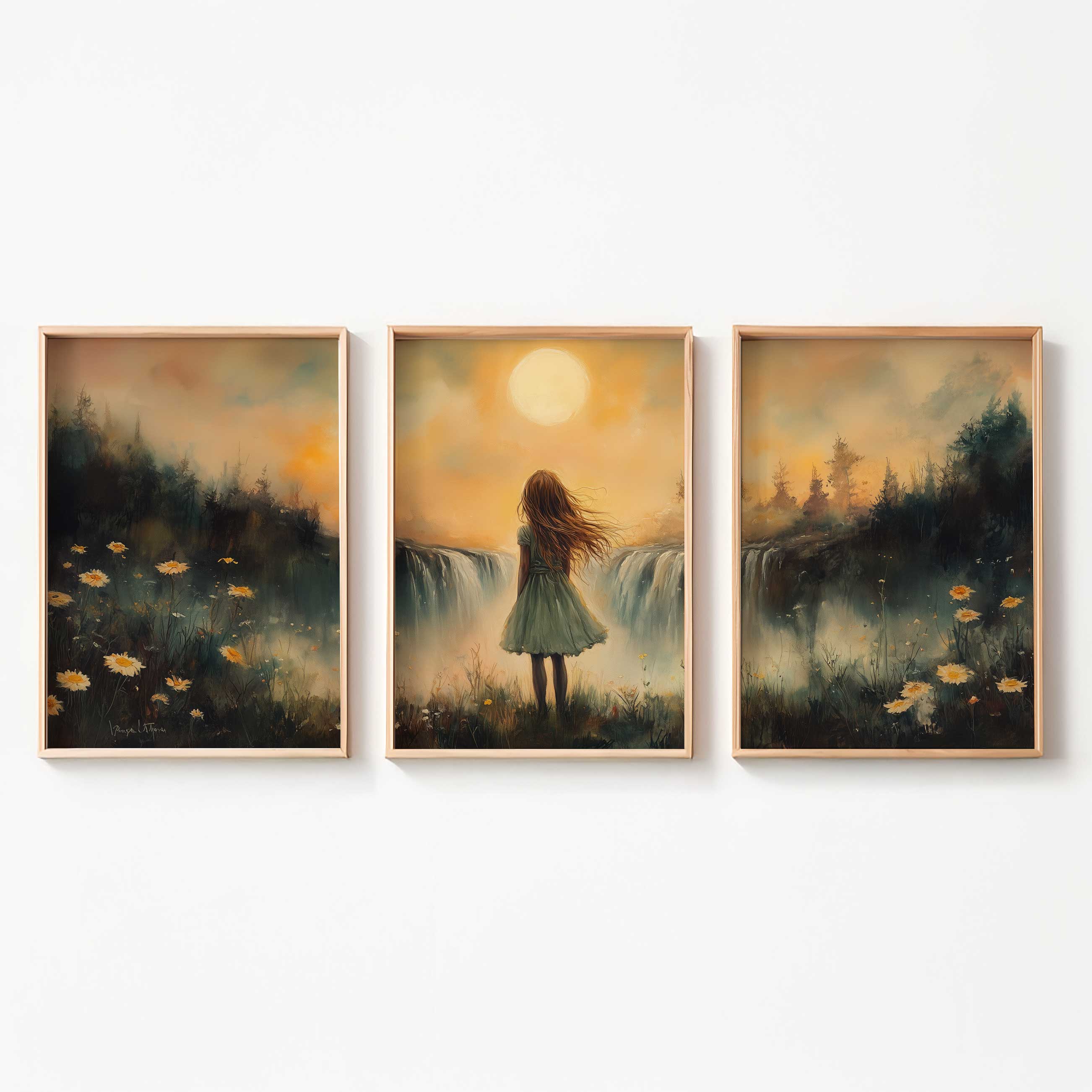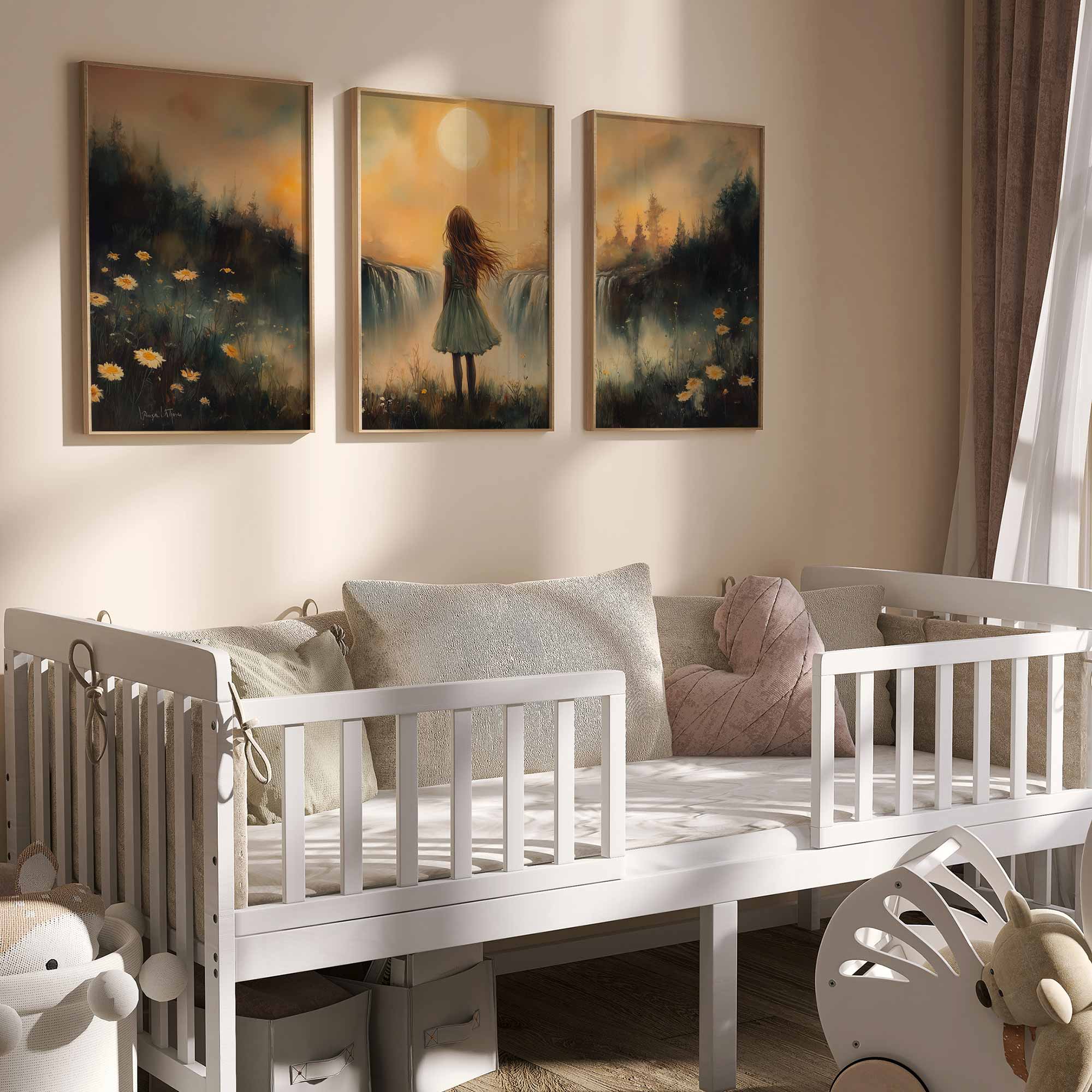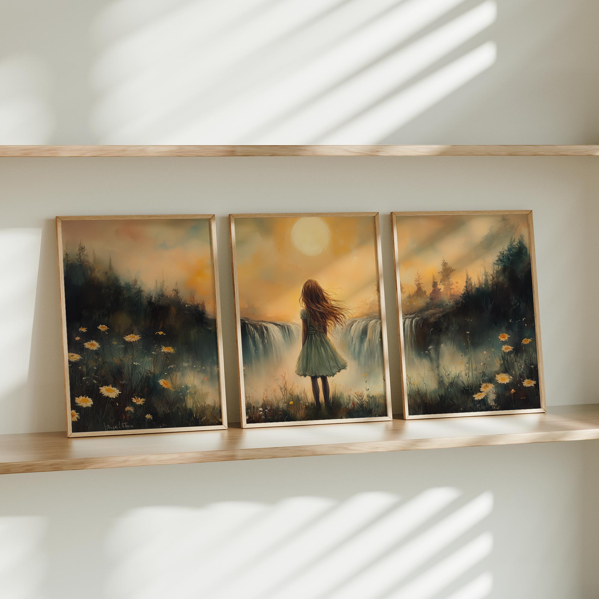 Dromerig Meisje bij Waterval – Pastel Sprookje