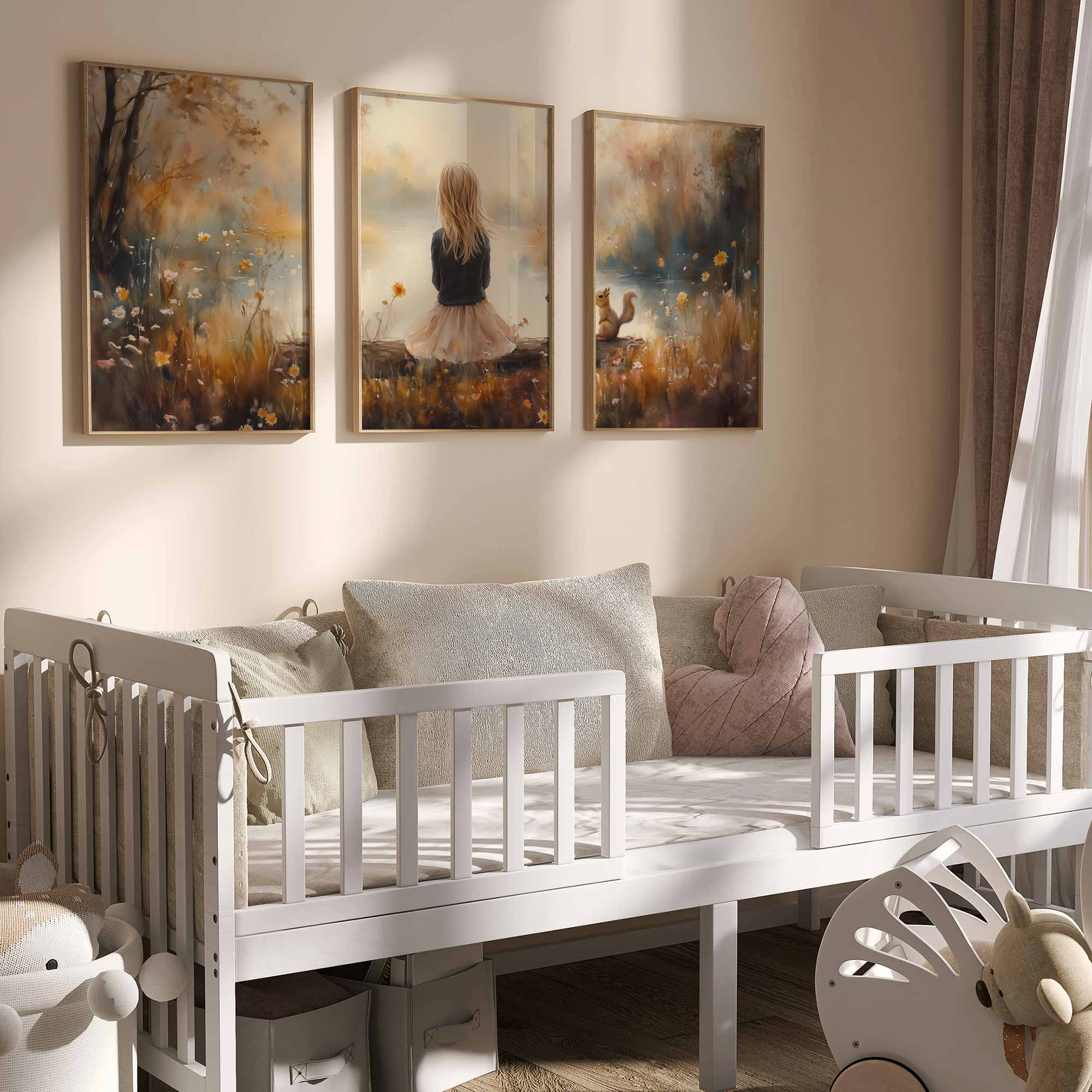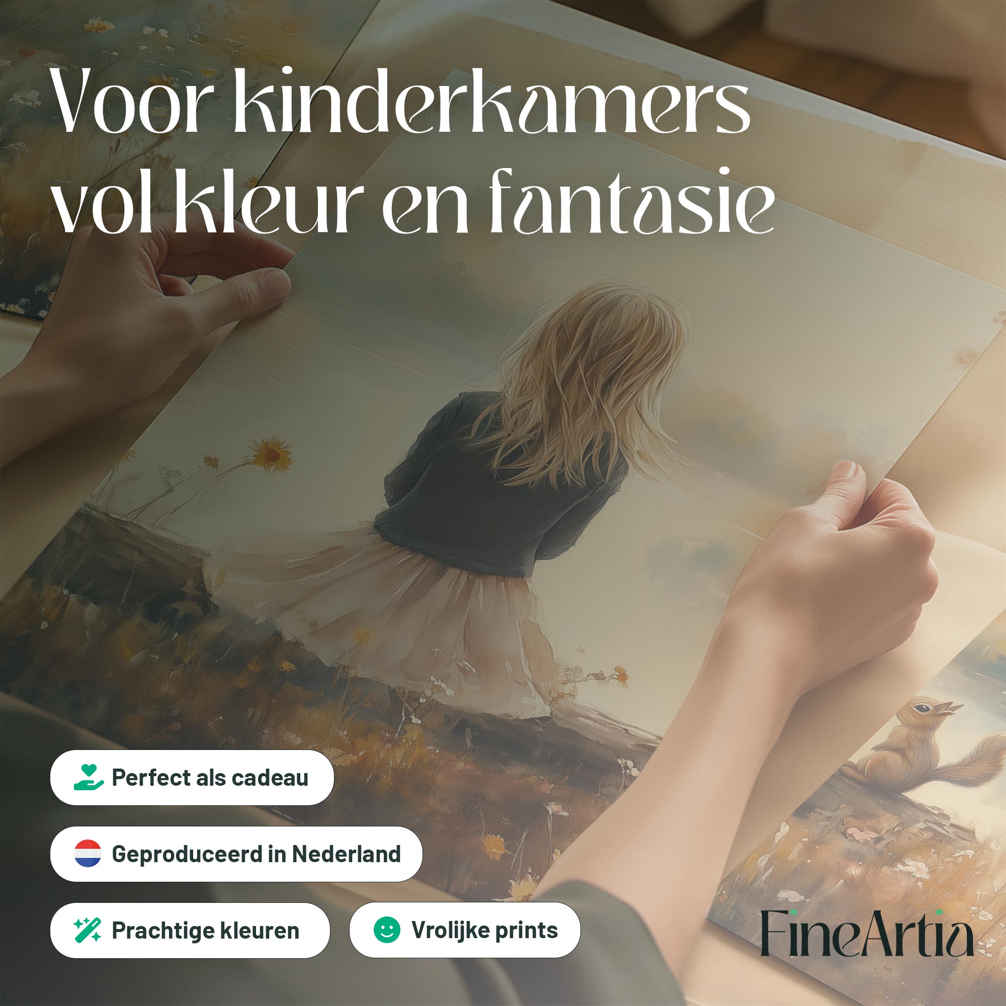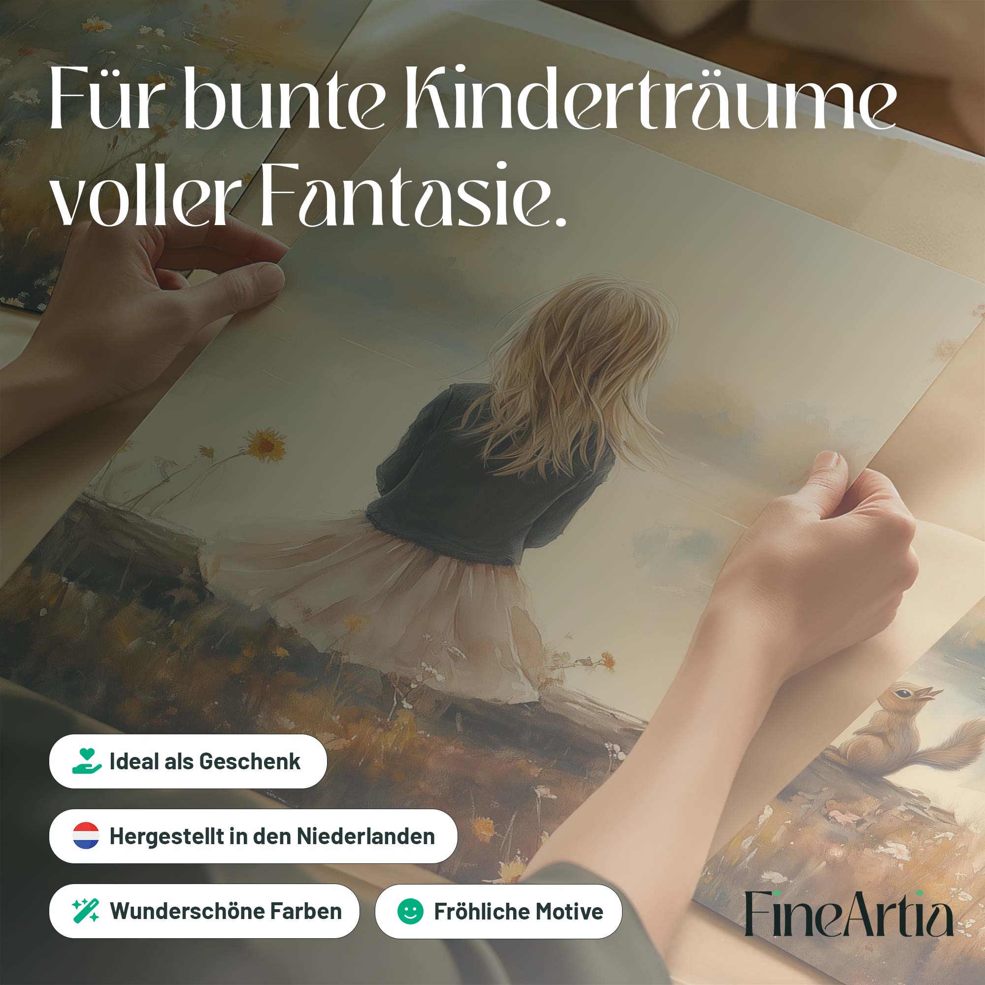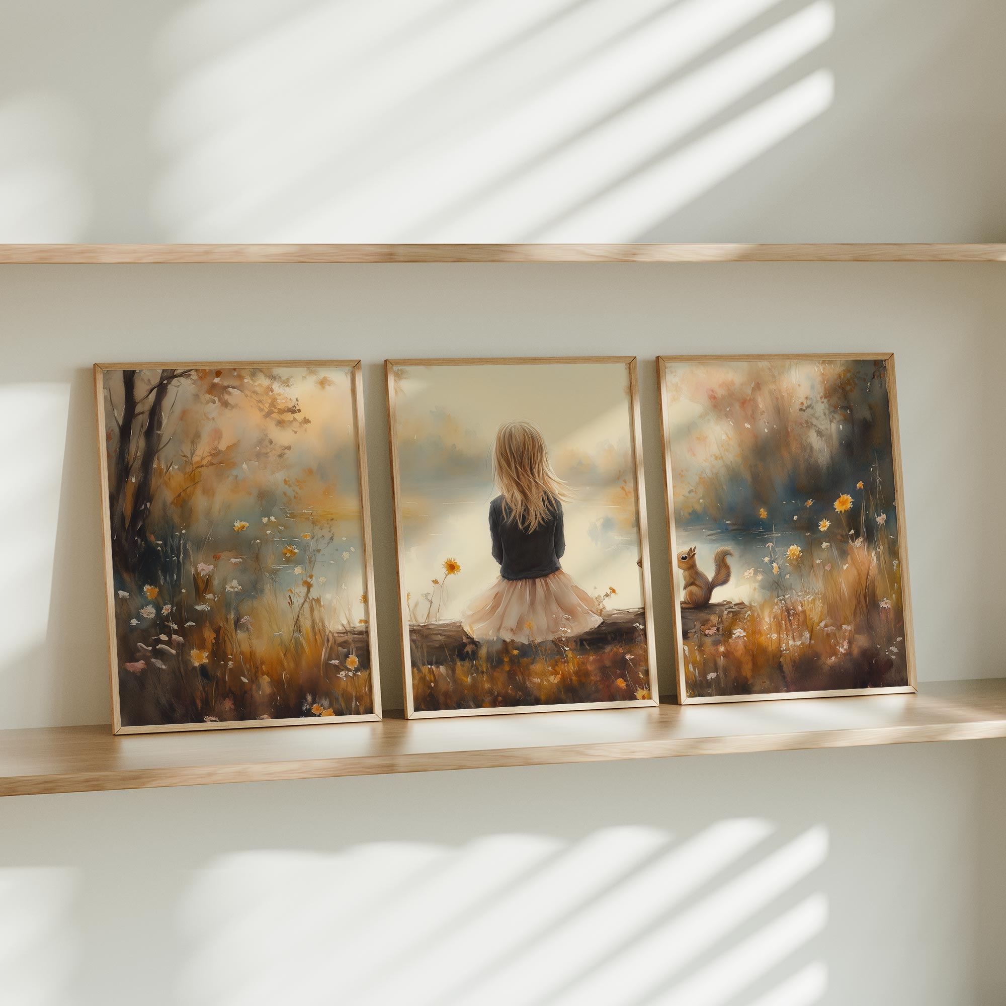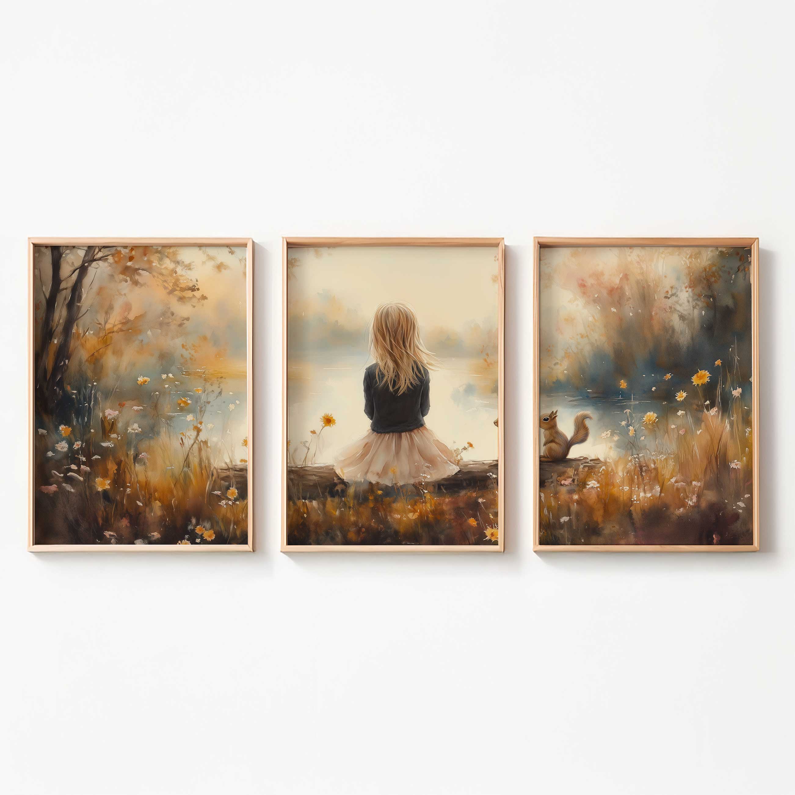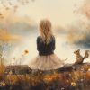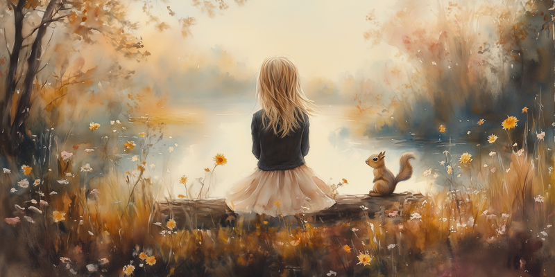 Dromerig Meisje en Eekhoorn in Pastel Landschap