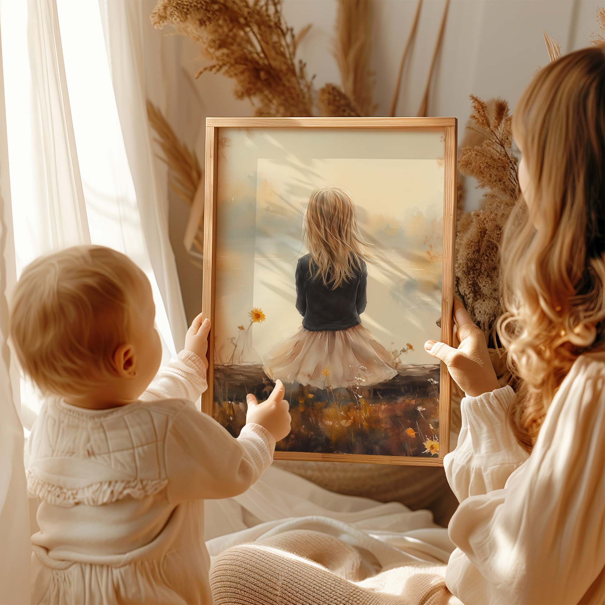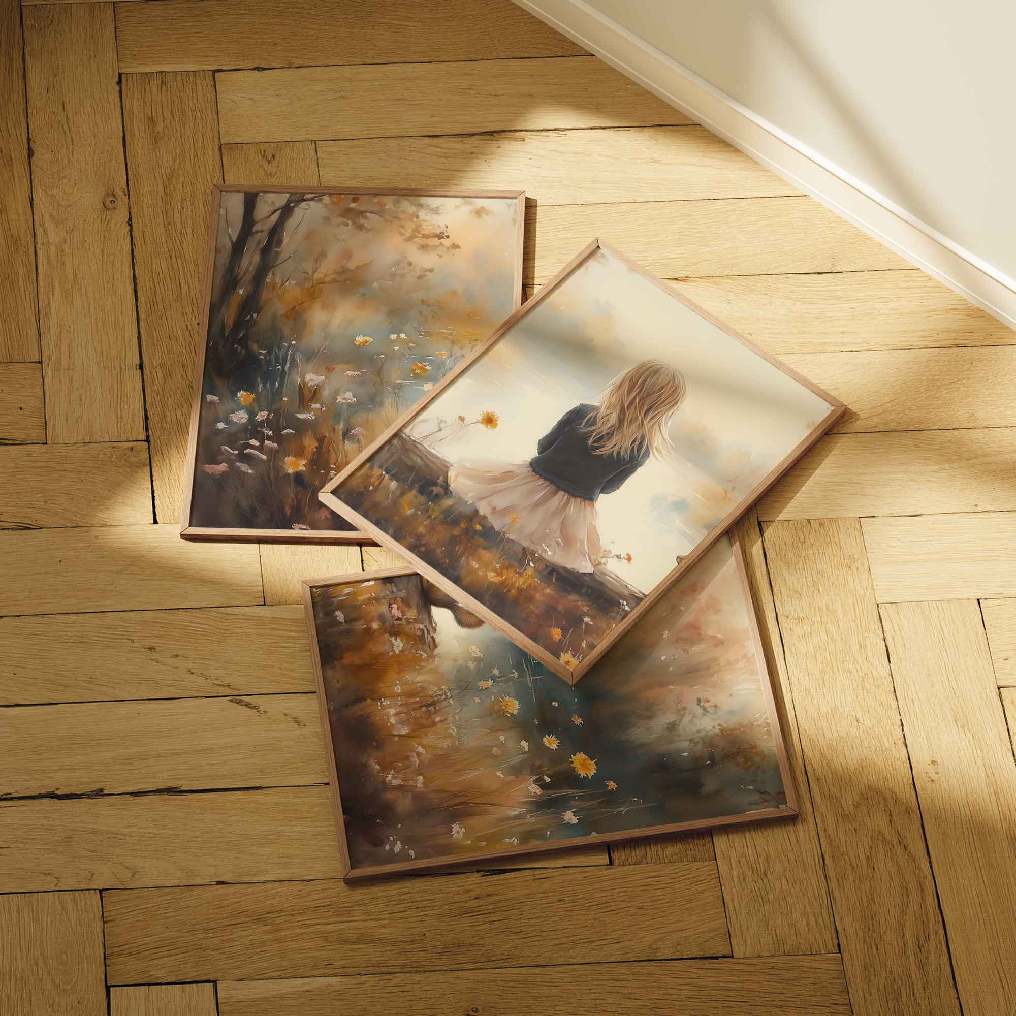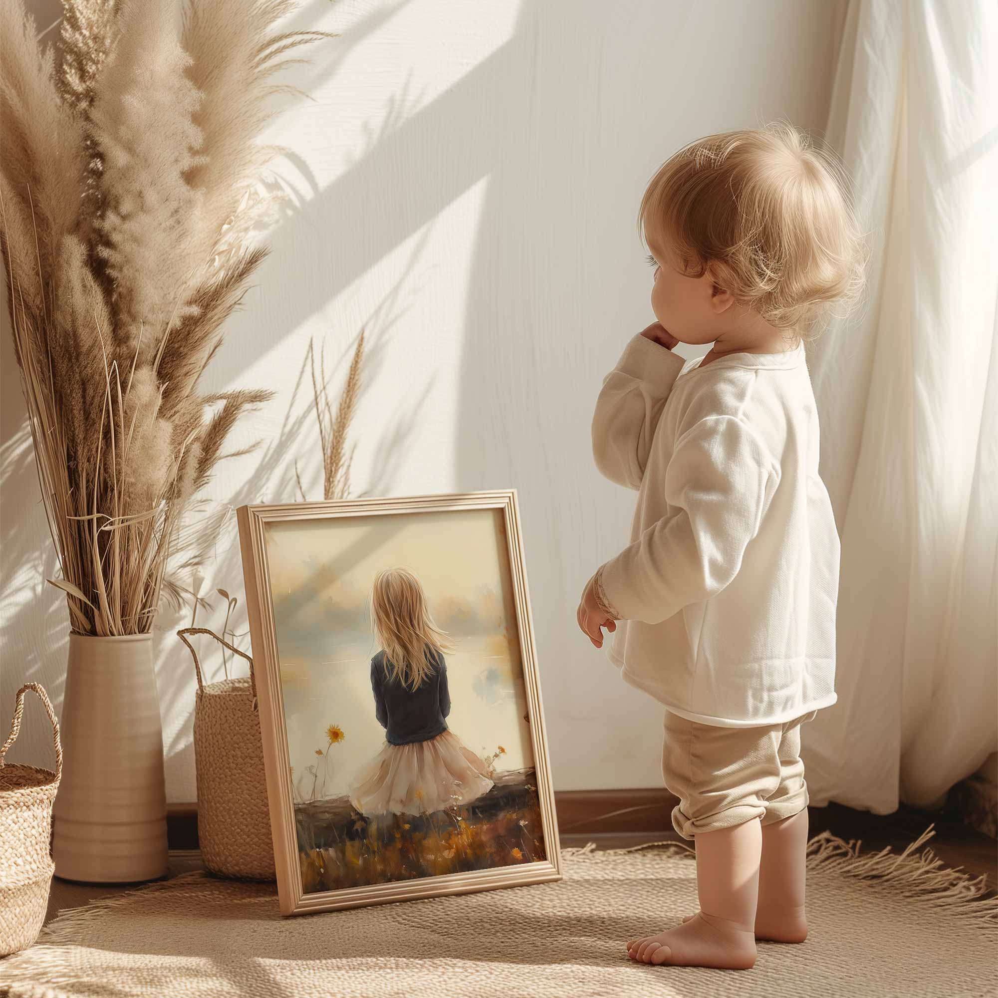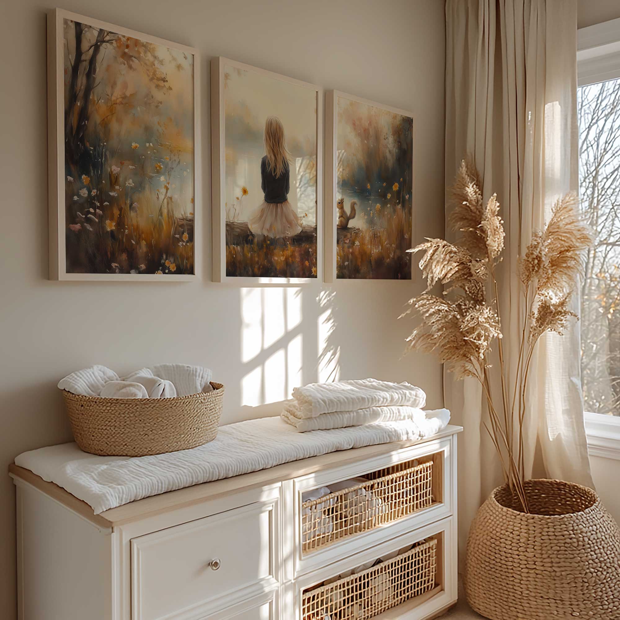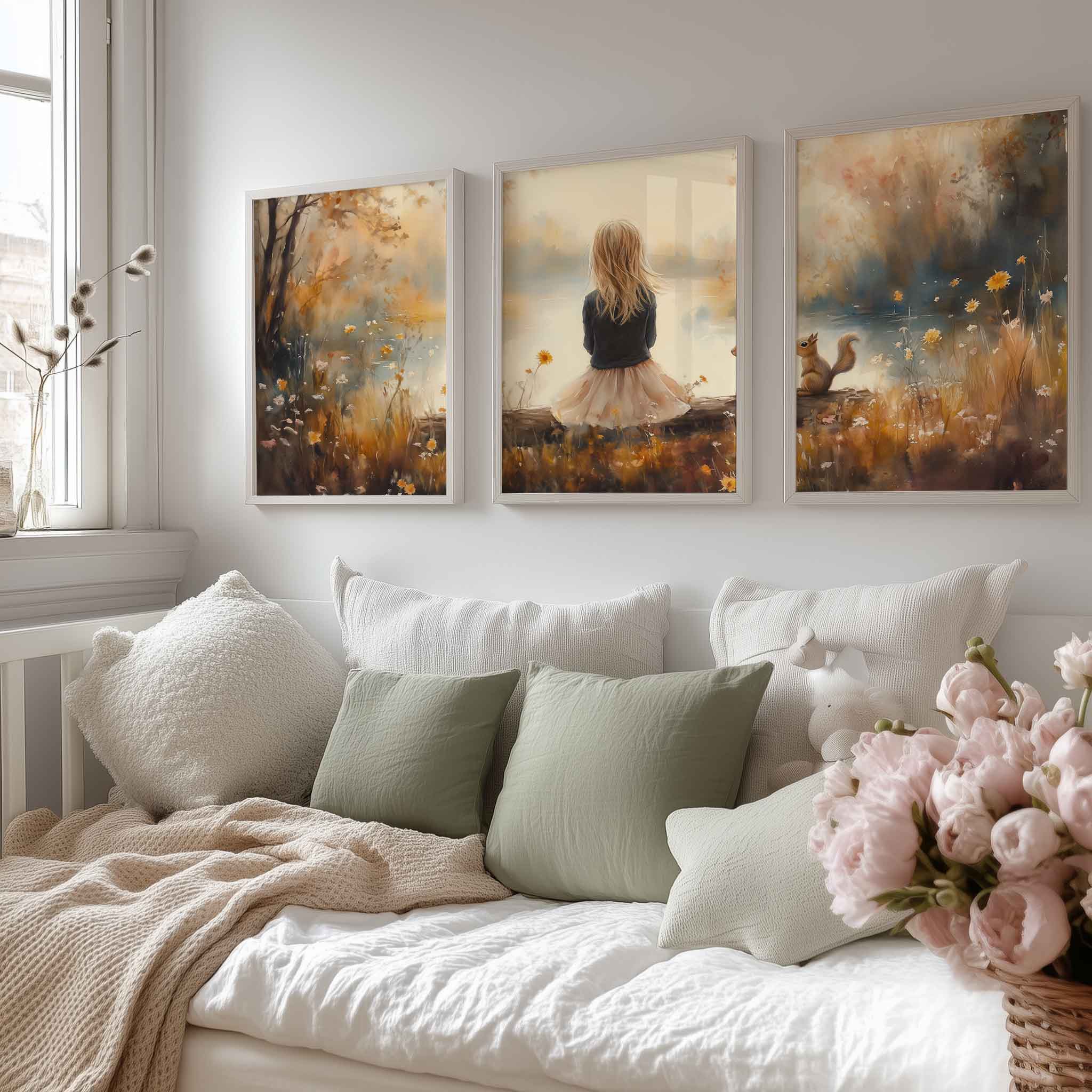 Dromerig Meisje en Eekhoorn in Pastel Landschap