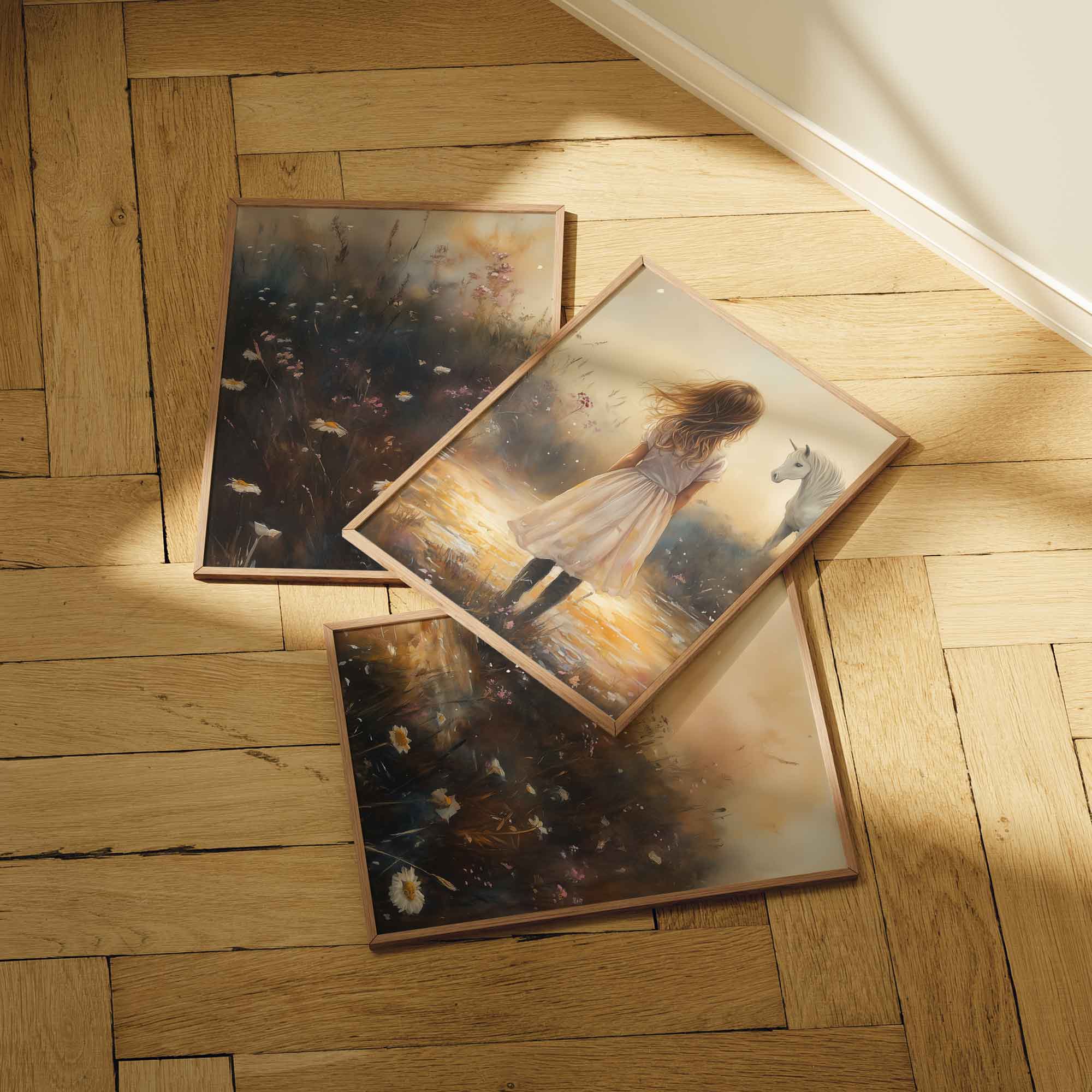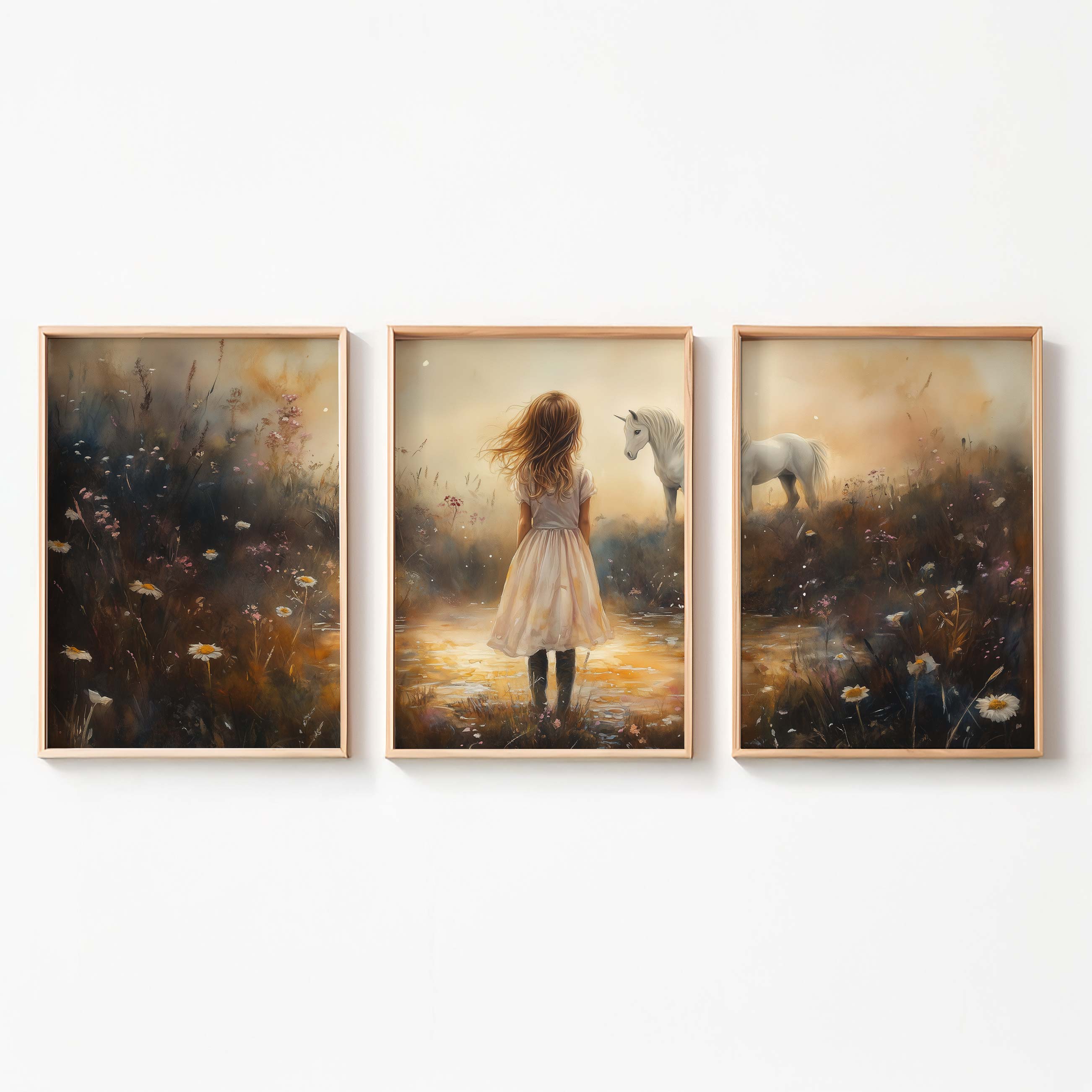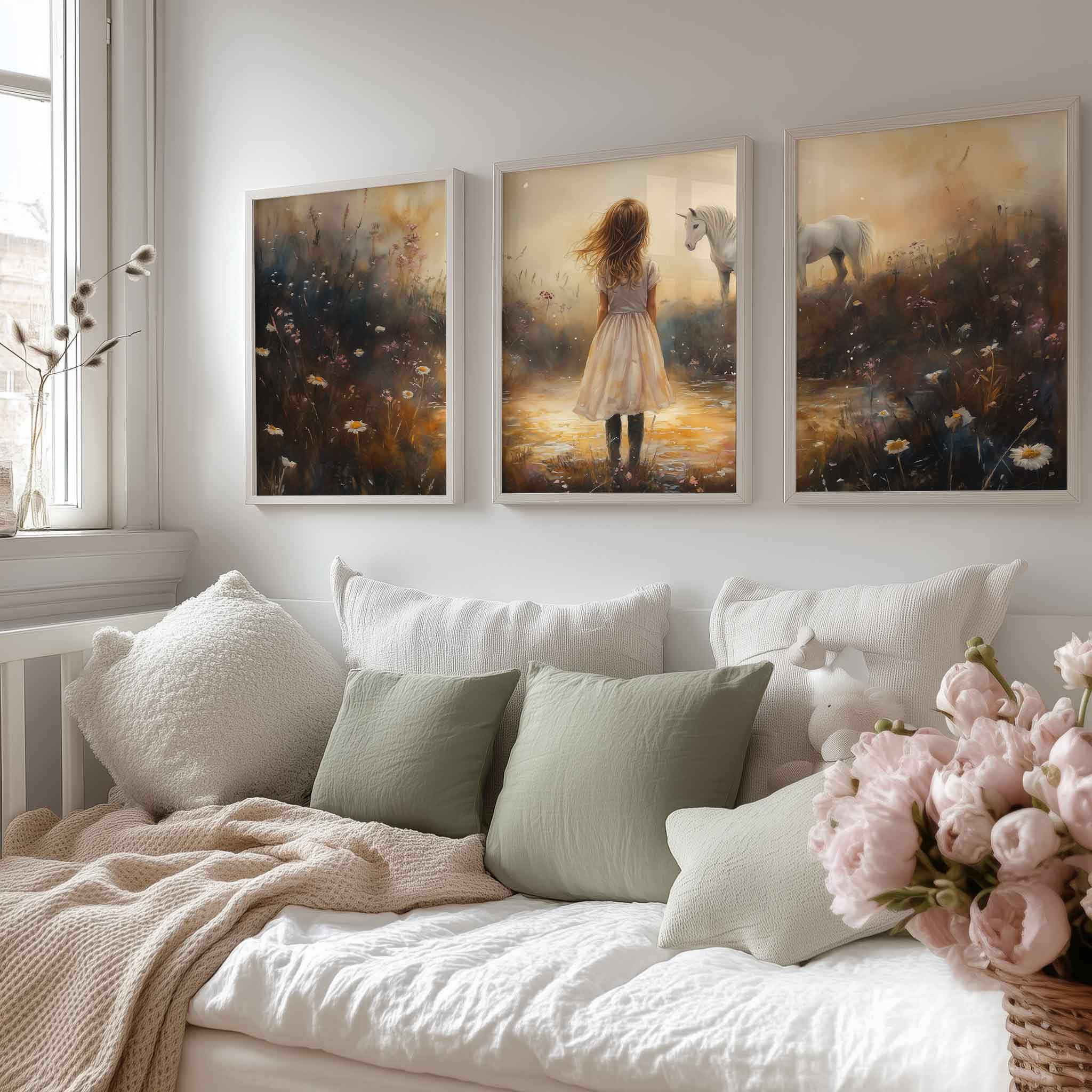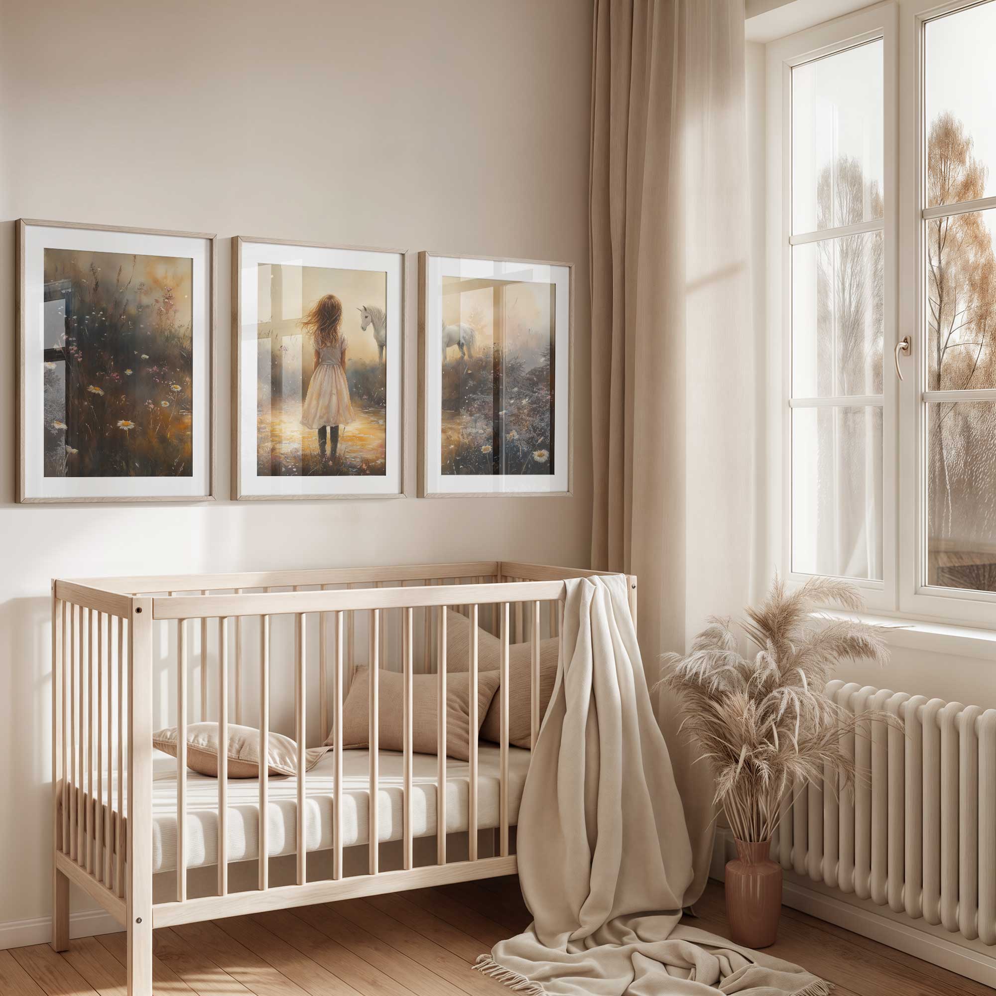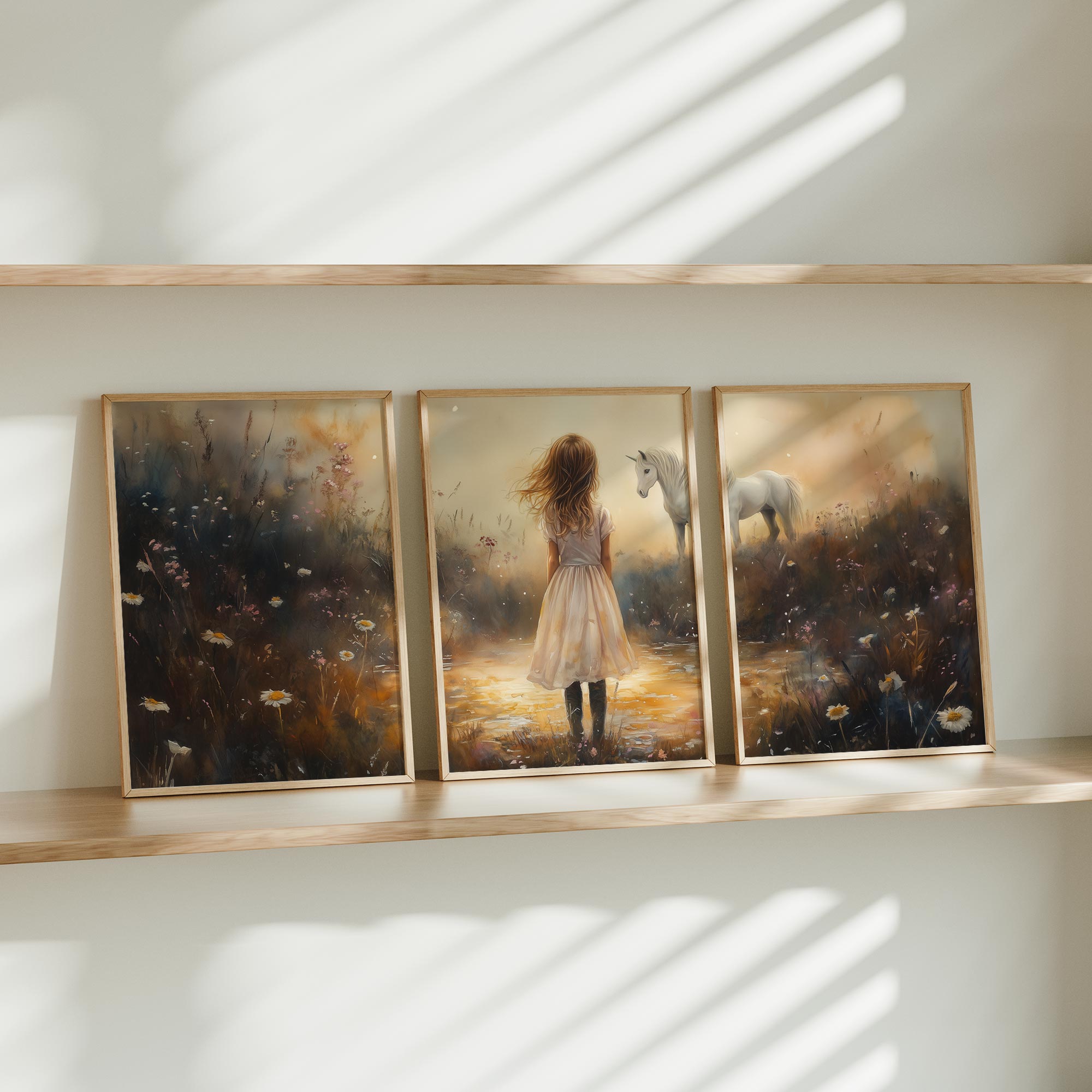 Dromerig Meisje en Witte Paard in Pastel Sfeer