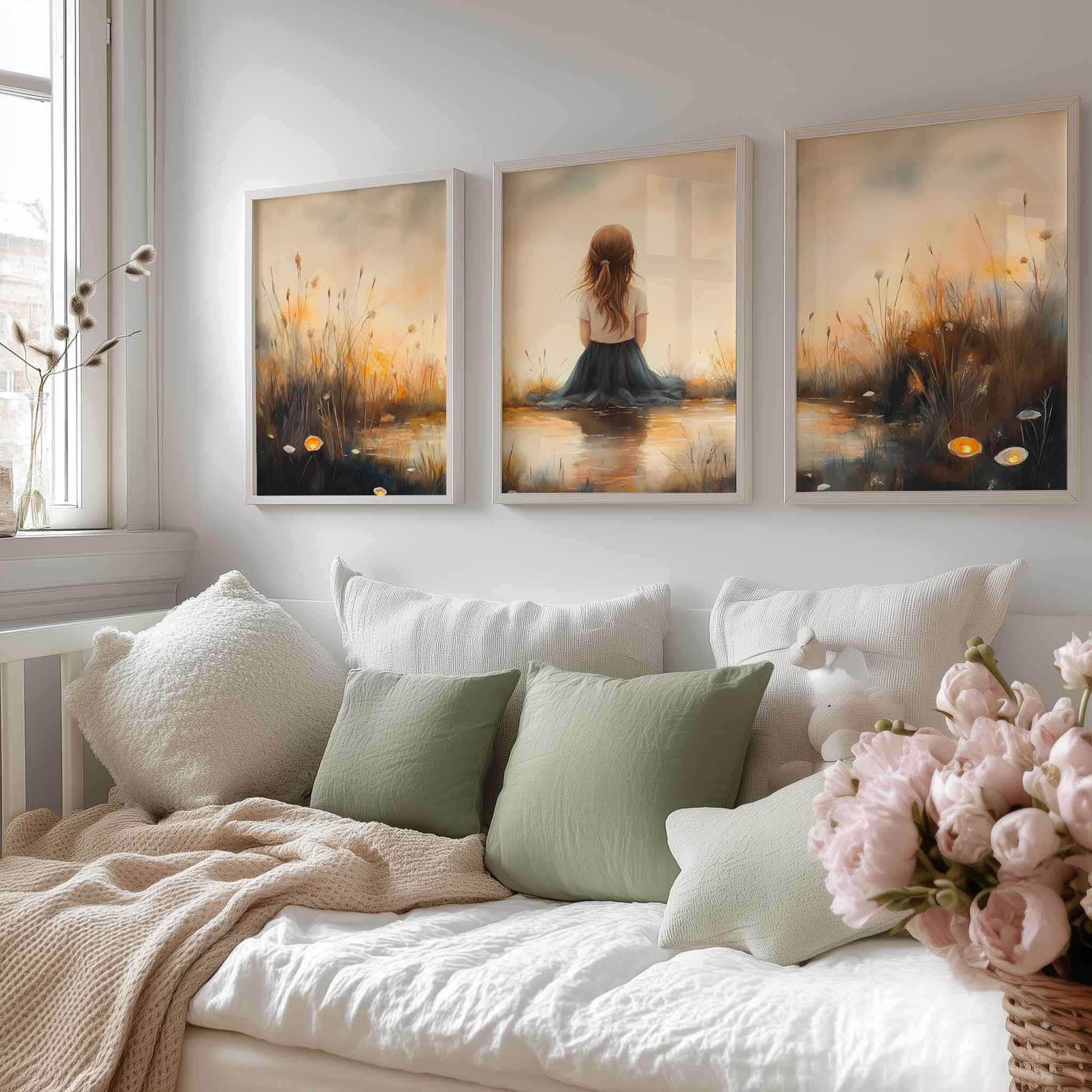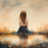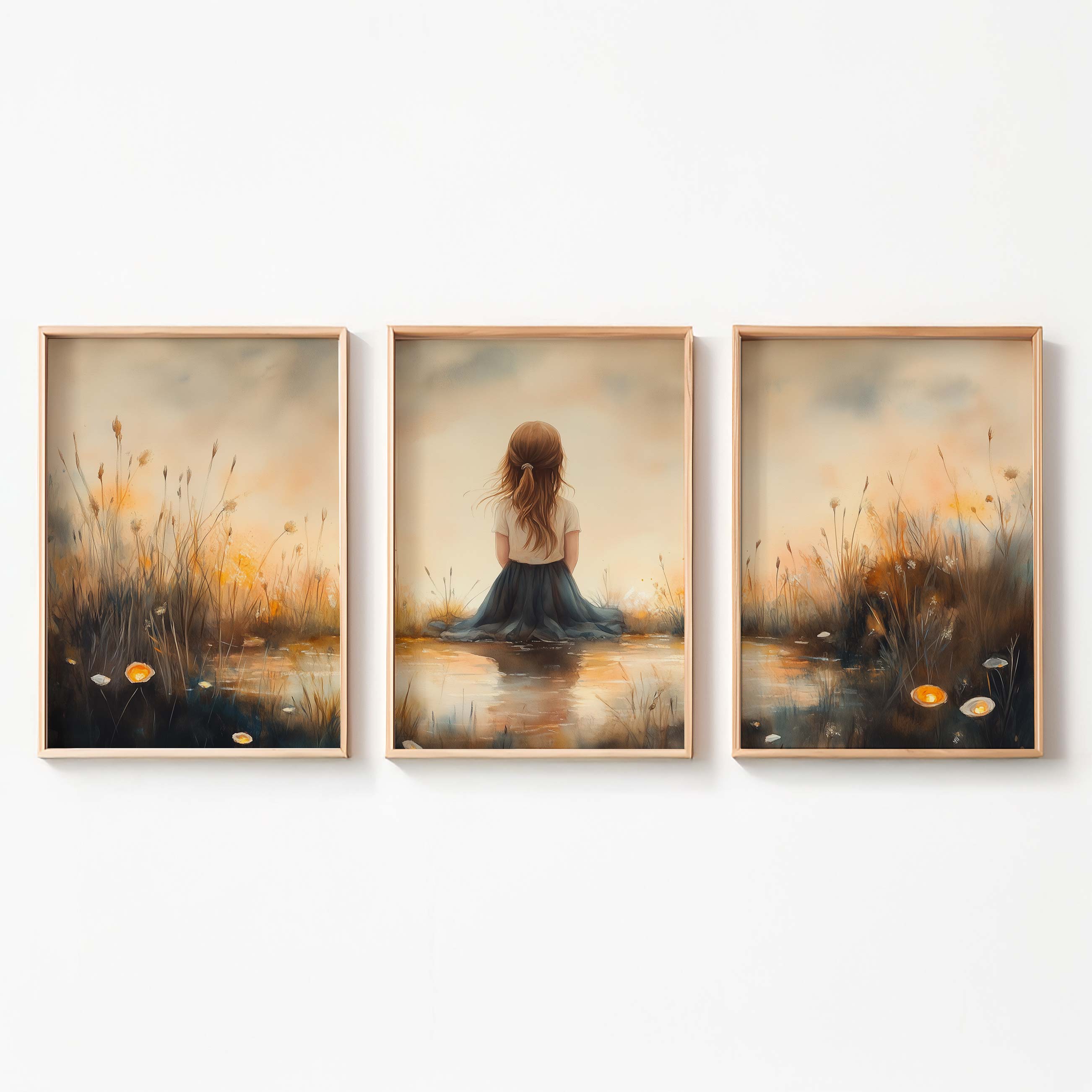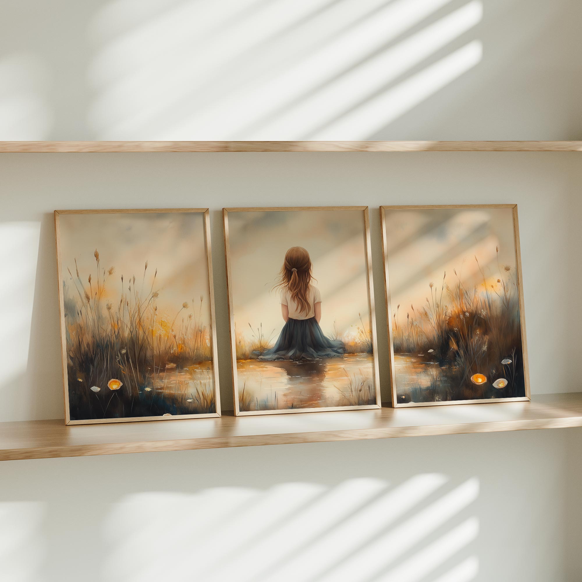Terug naar collectie Posters Dromerig Meisje in Bloeiend Gras – Warme Zonovergoten Sfeer